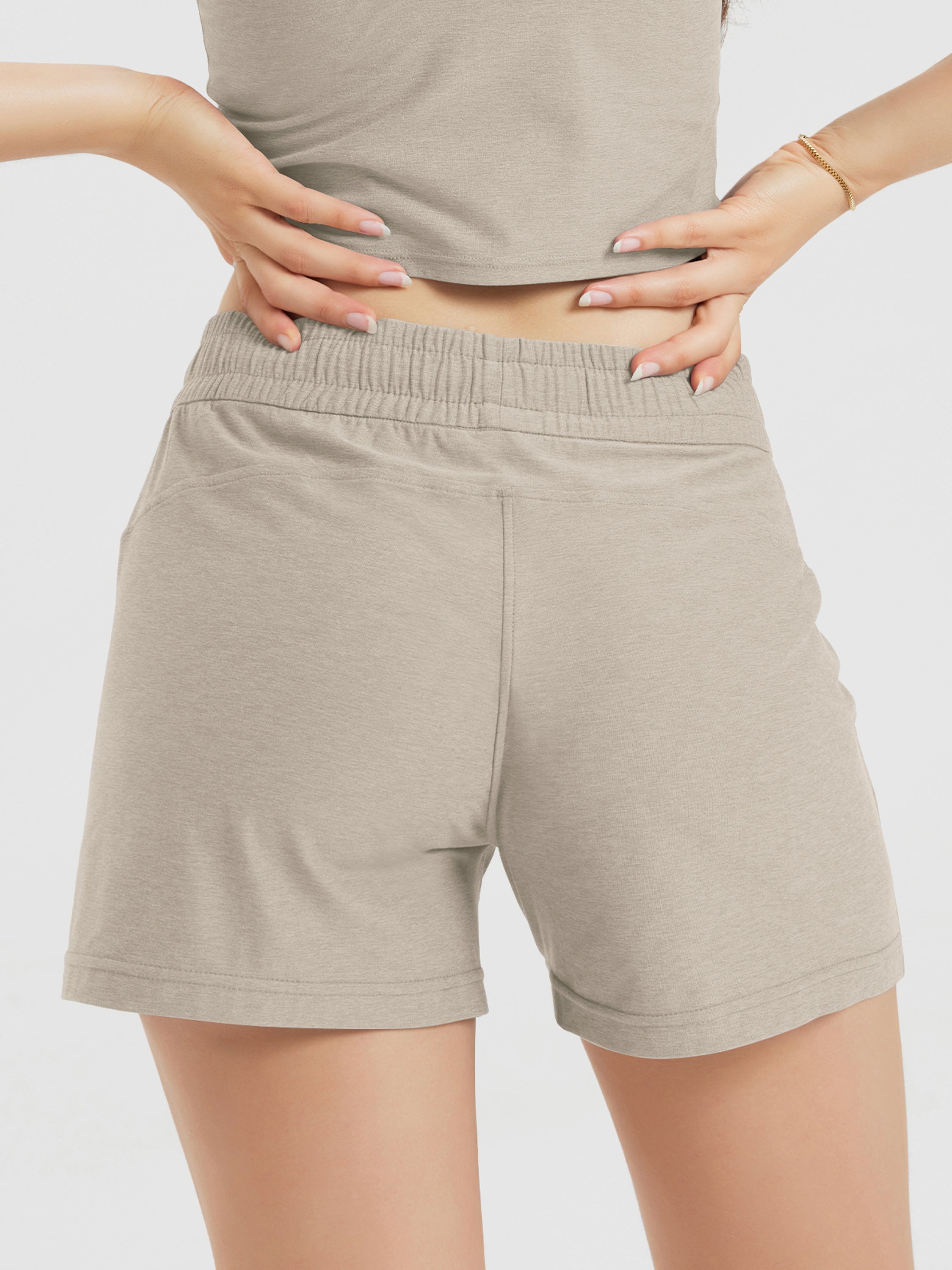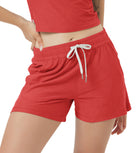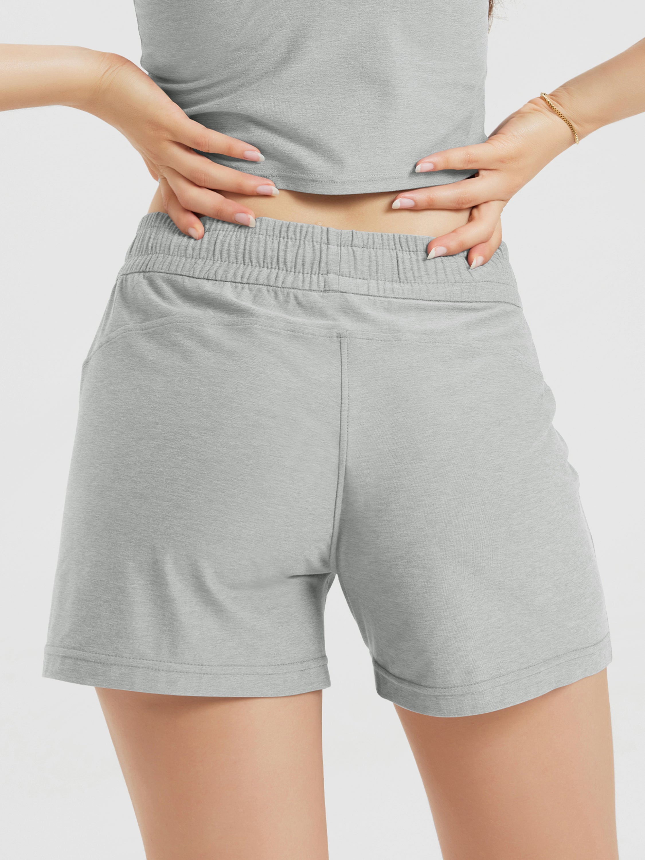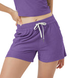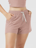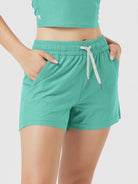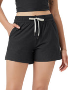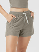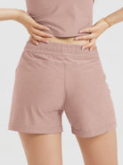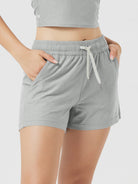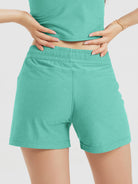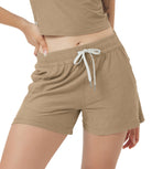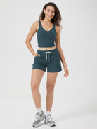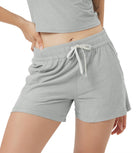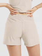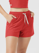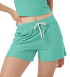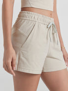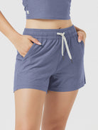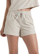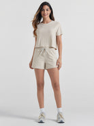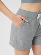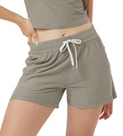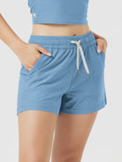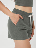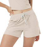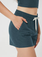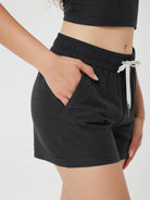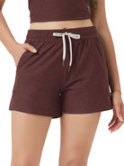 Designed with a soft, wide waistband and adjustable drawstring, these mid-rise shorts stay in place without digging in—offering flexible comfort for lounging or movement.