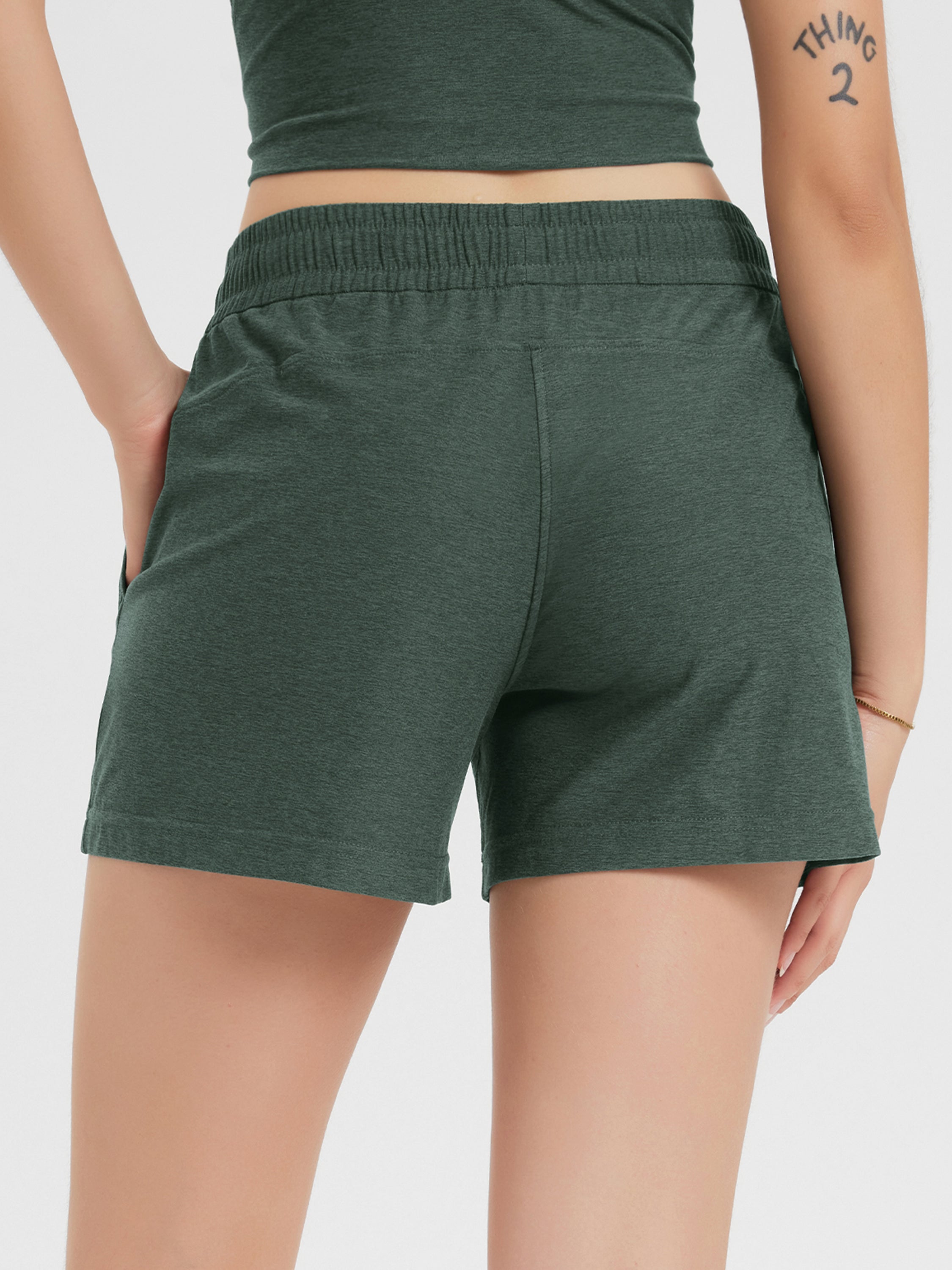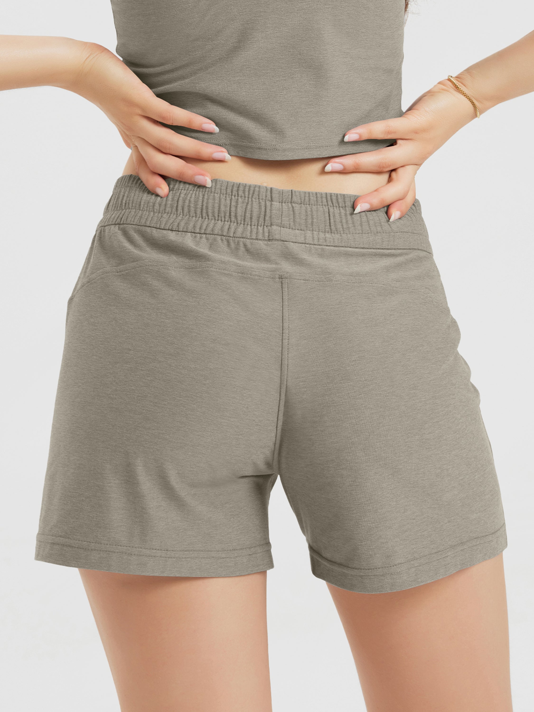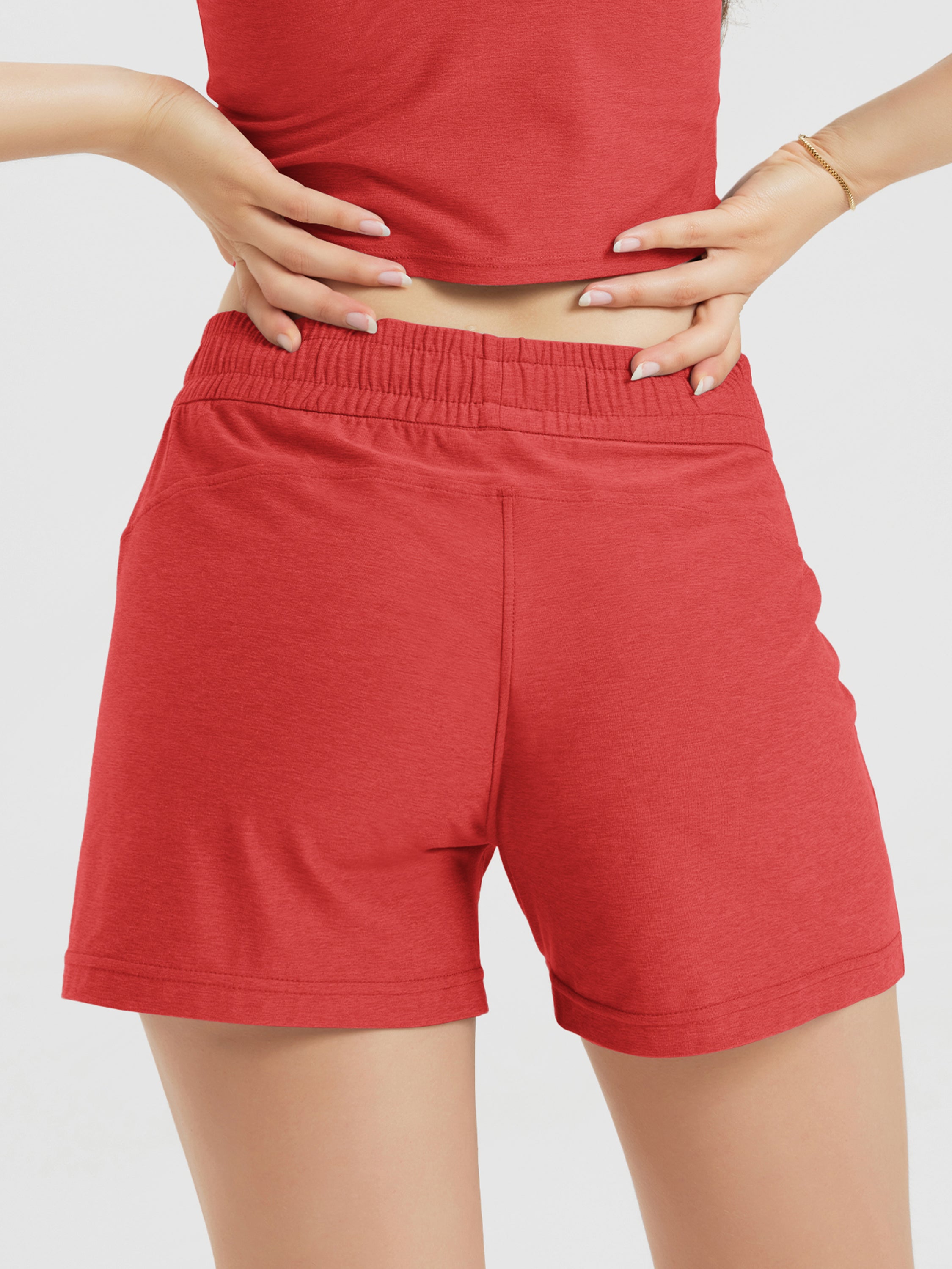 Designed with a soft, wide waistband and adjustable drawstring, these mid-rise shorts stay in place without digging in—offering flexible comfort for lounging or movement.