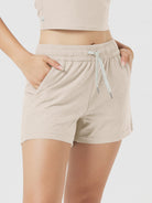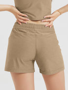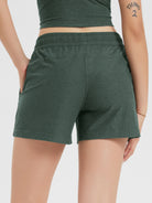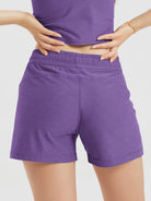 These women’s workout lounge shorts feature two practical side pockets for daily essentials, finished with a subtle ODODOS logo that adds a polished edge to your sporty look.