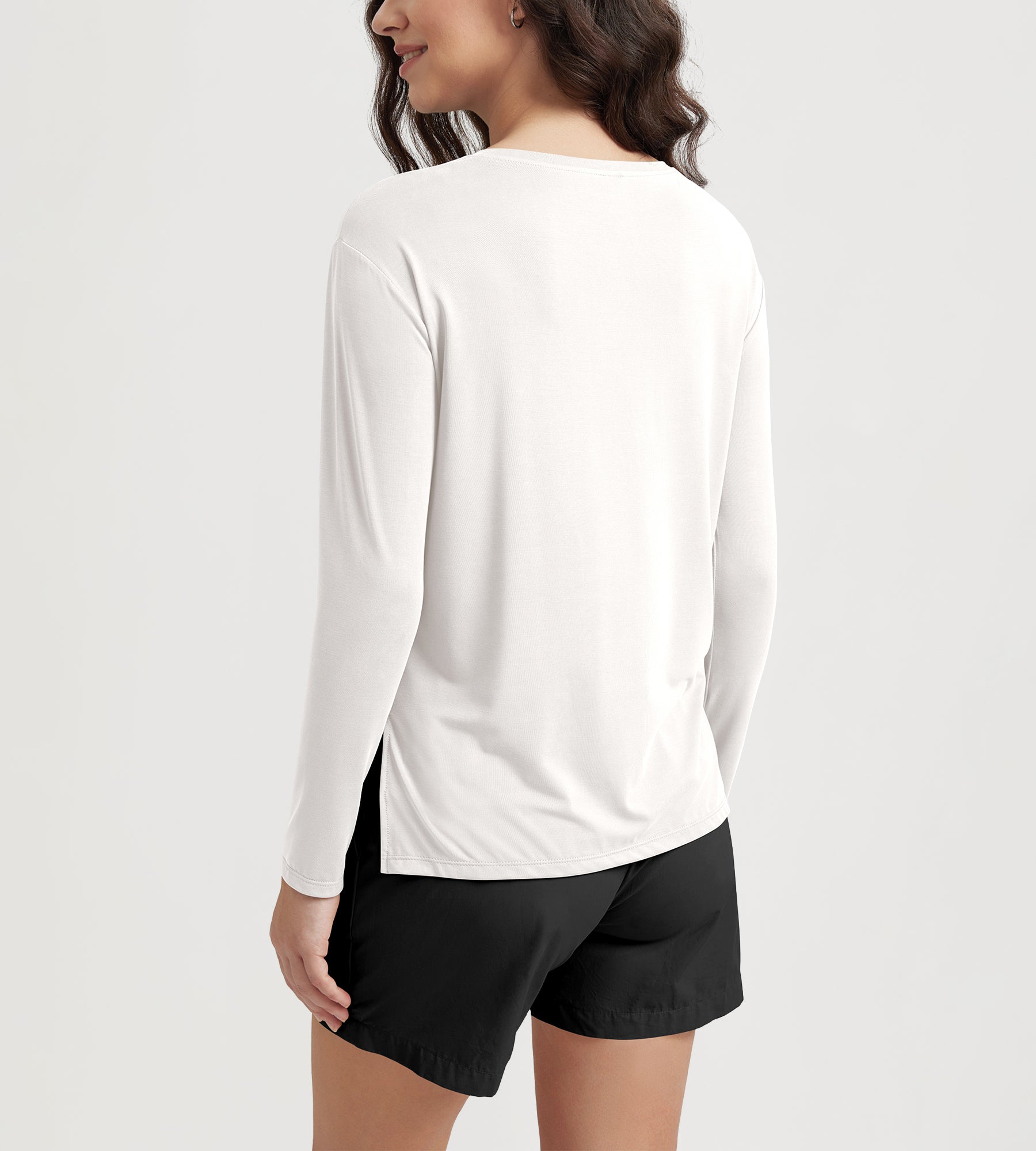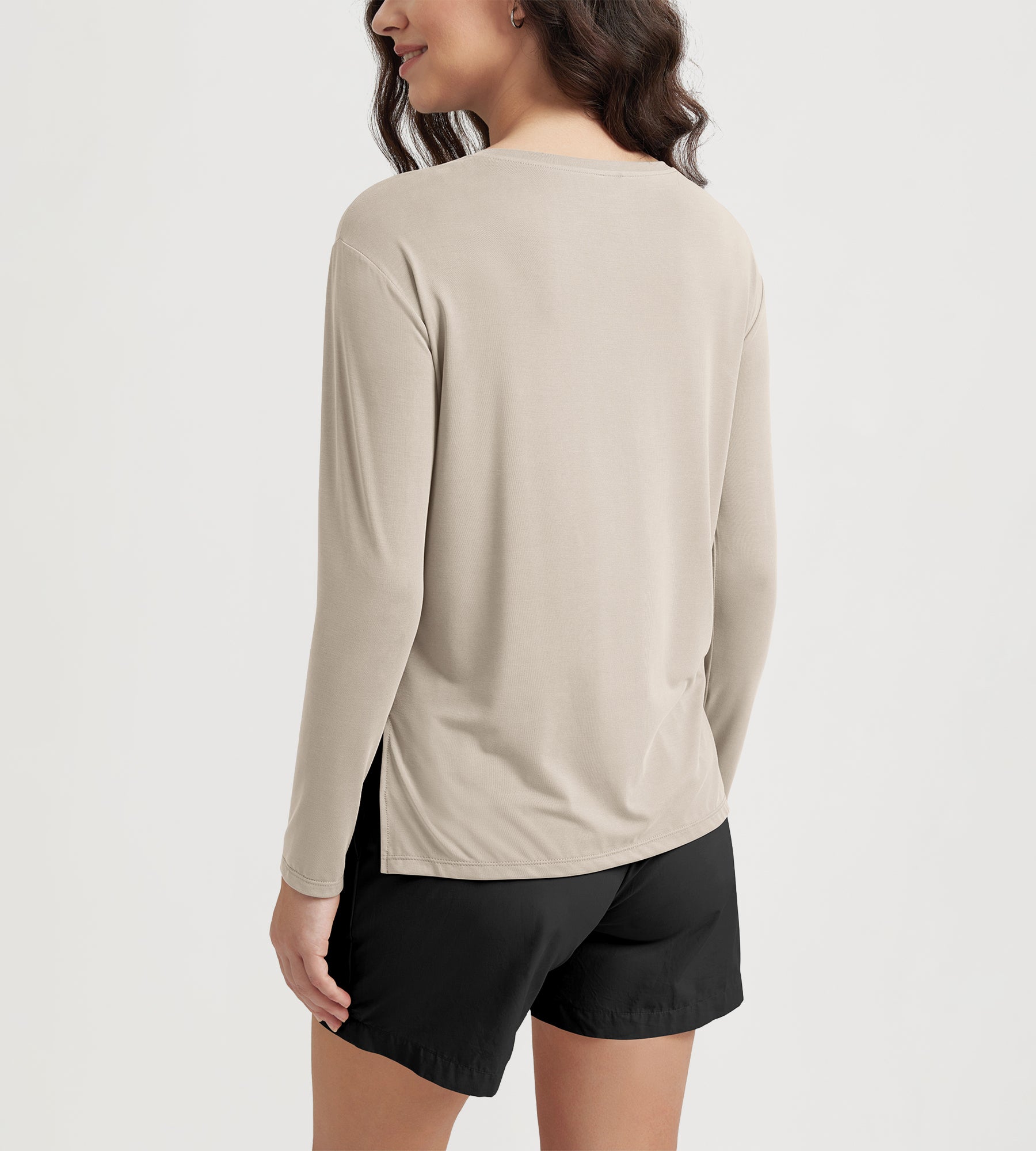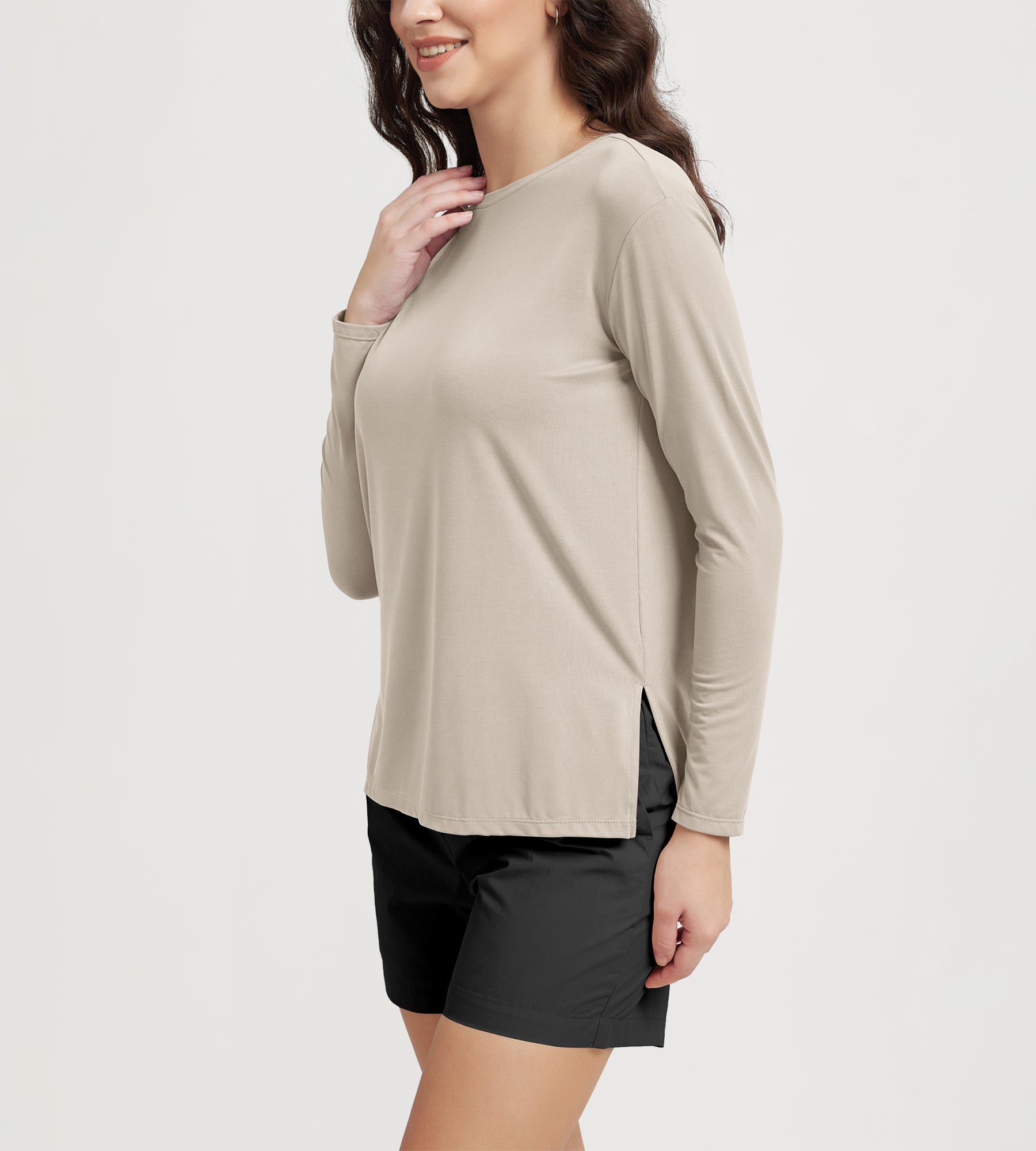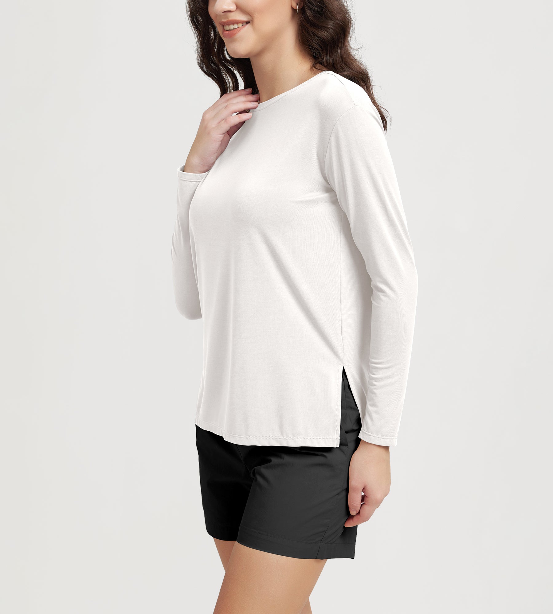 Women's Boat Neck Long Sleeve Shirt, Side Slit, Casual Top for Yoga & Lounge