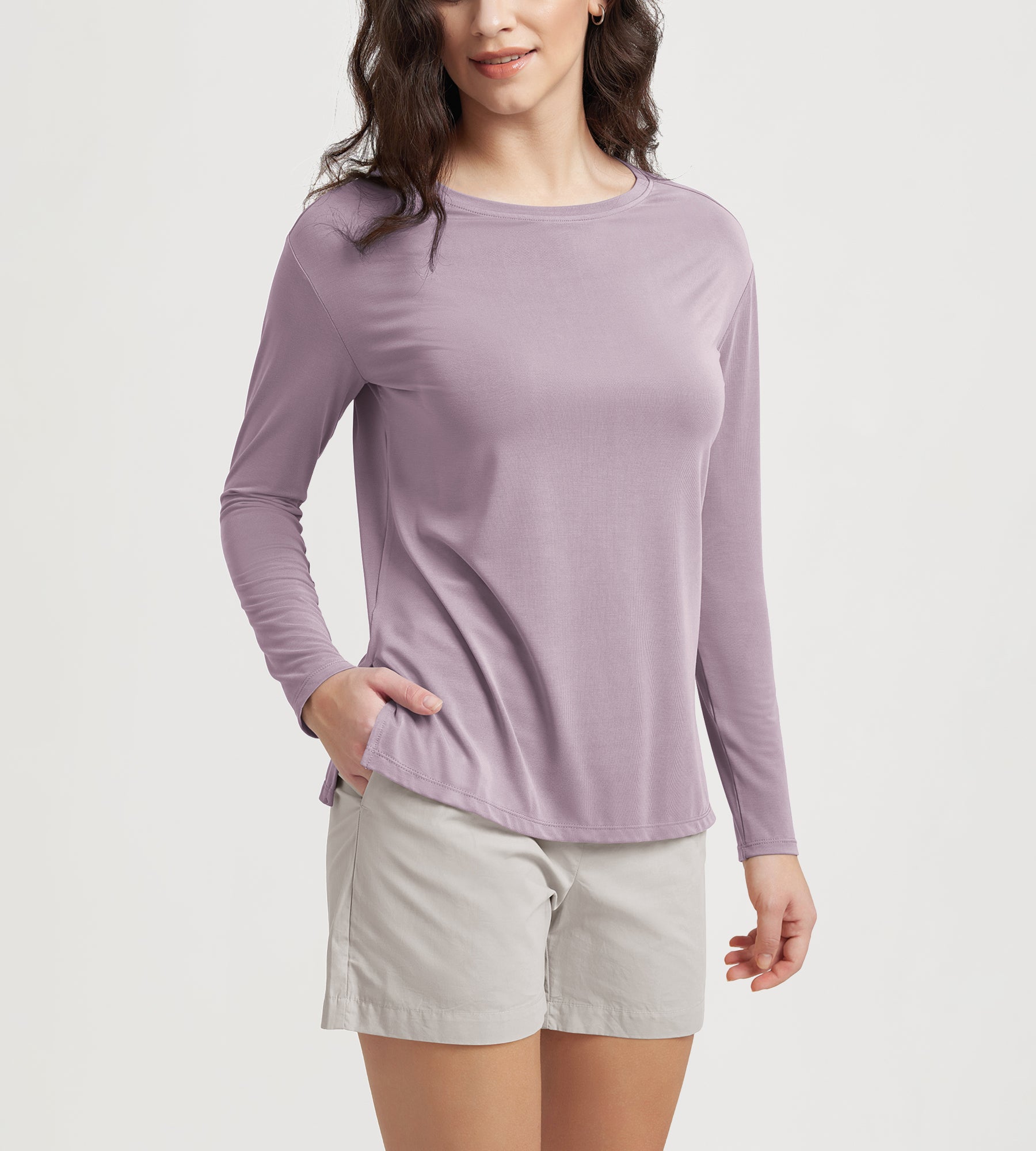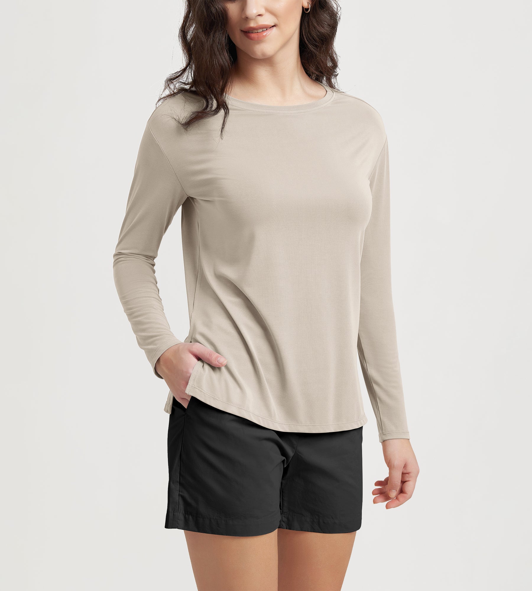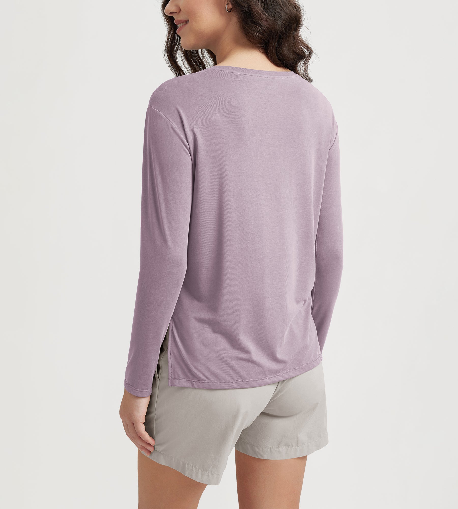 Women's Boat Neck Long Sleeve Shirt, Side Slit, Casual Top for Yoga & Lounge