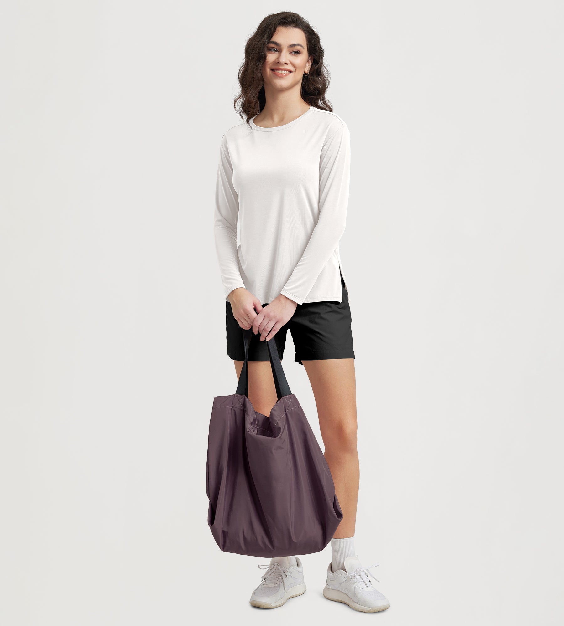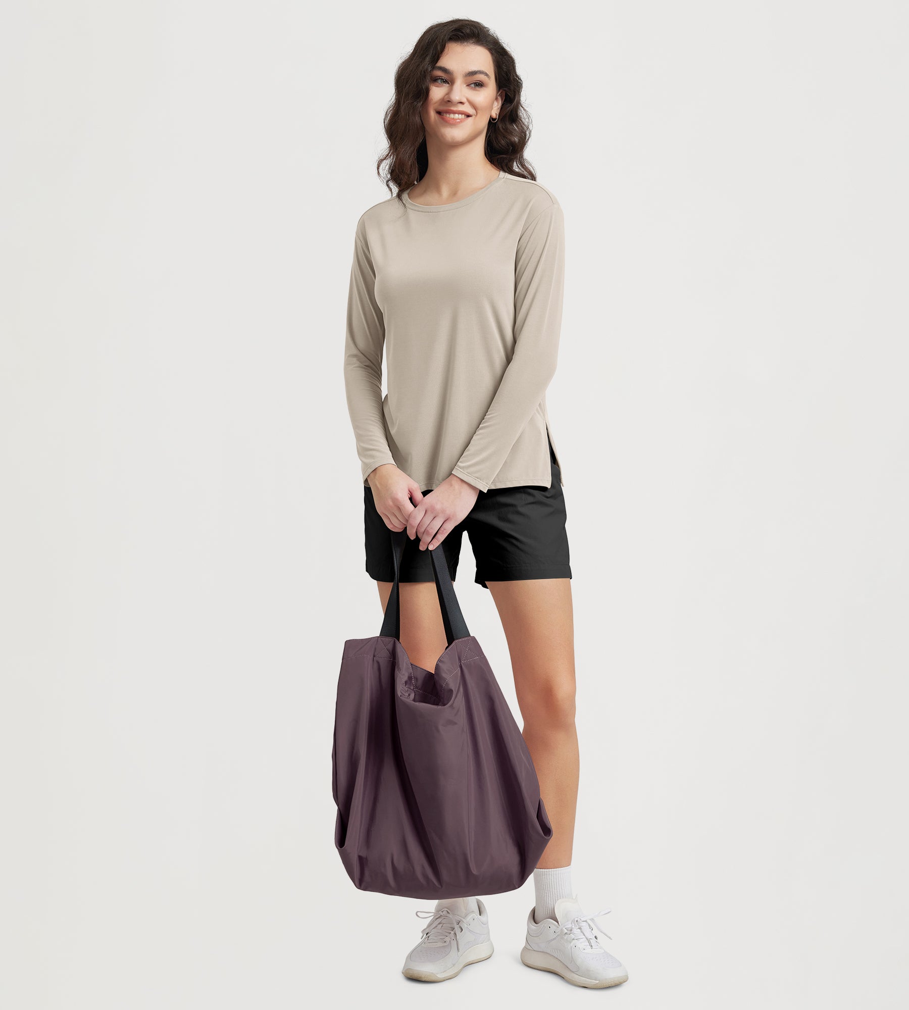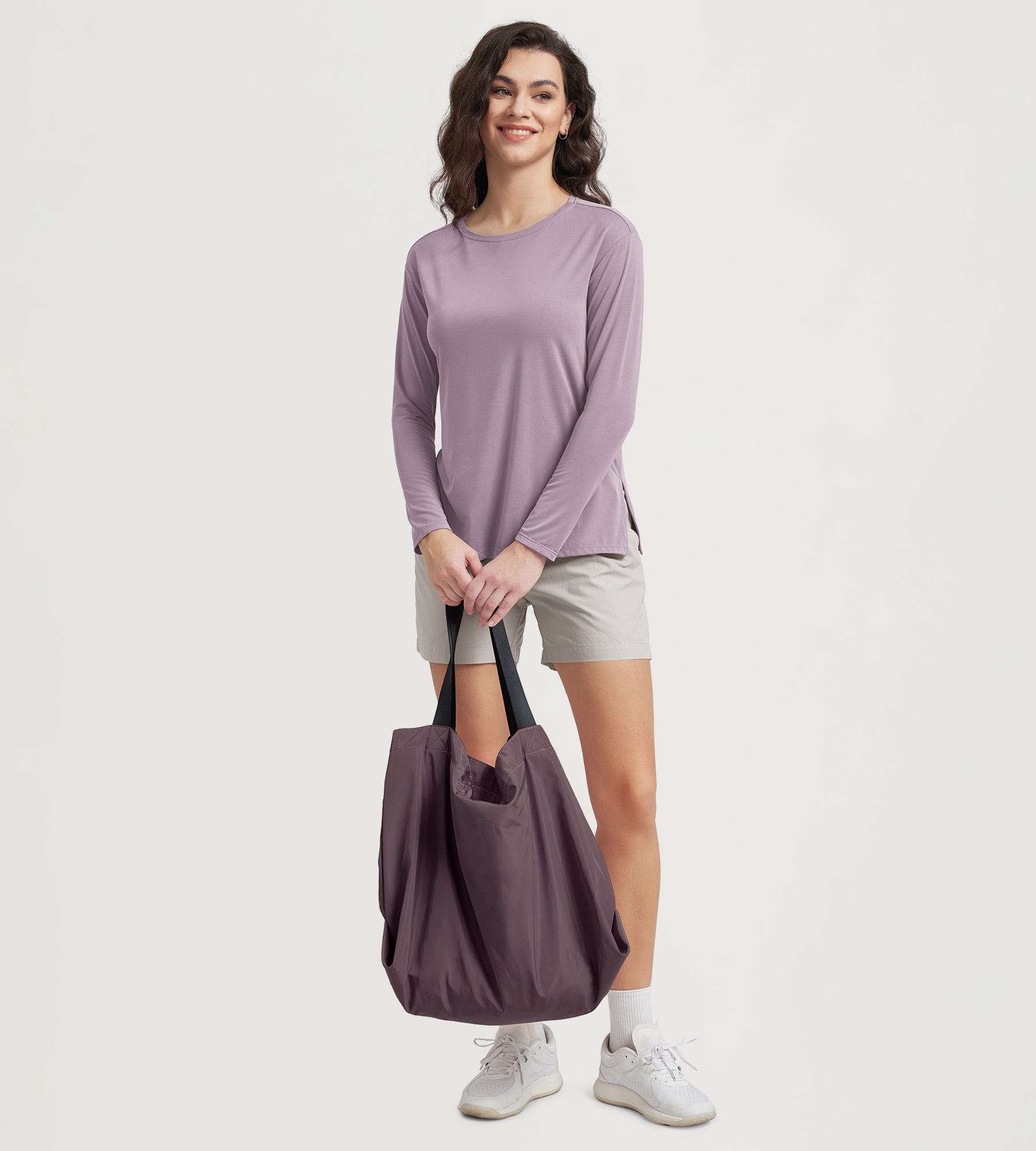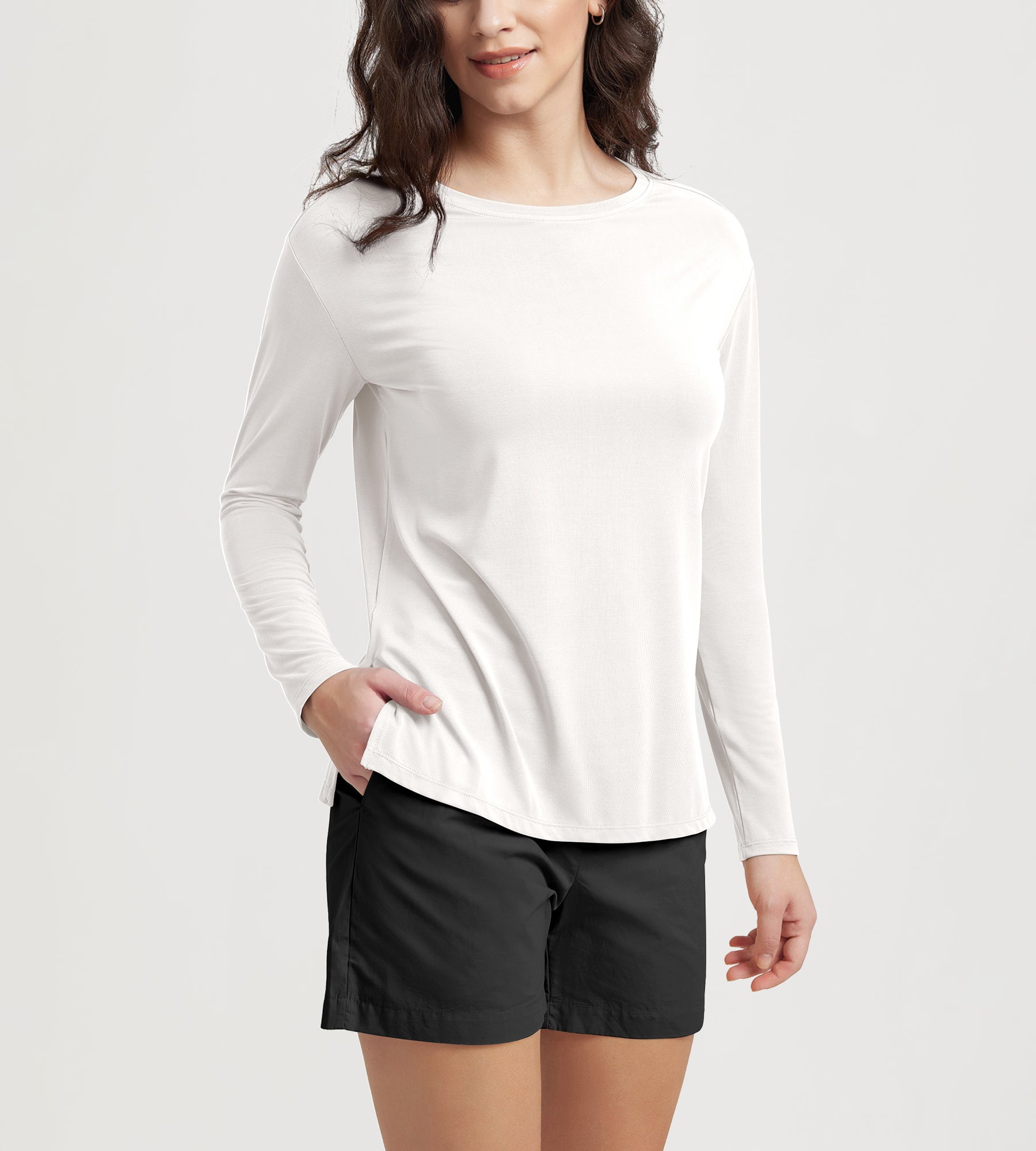 Women's Boat Neck Long Sleeve Shirt, Side Slit, Casual Top for Yoga & Lounge
