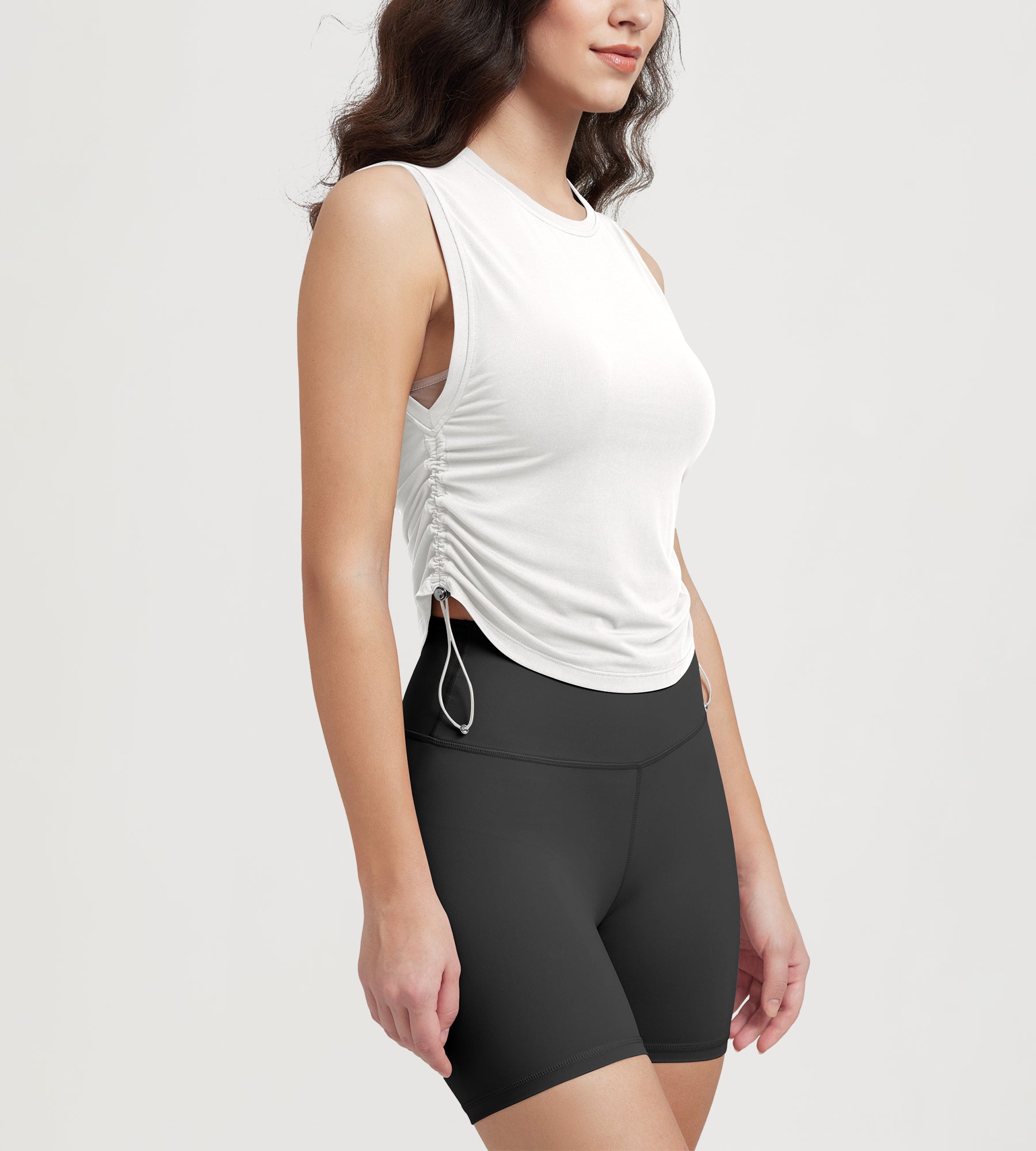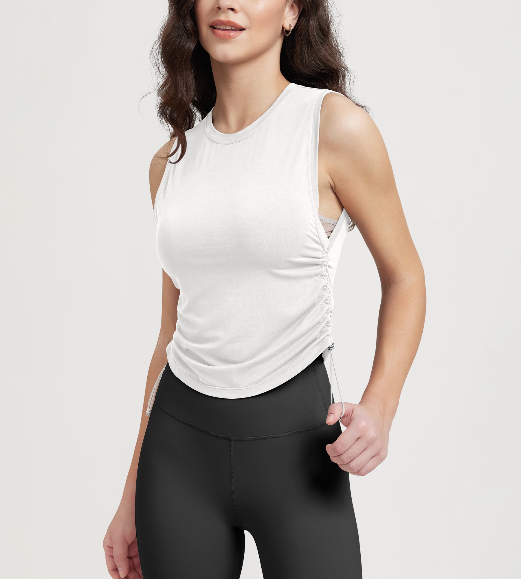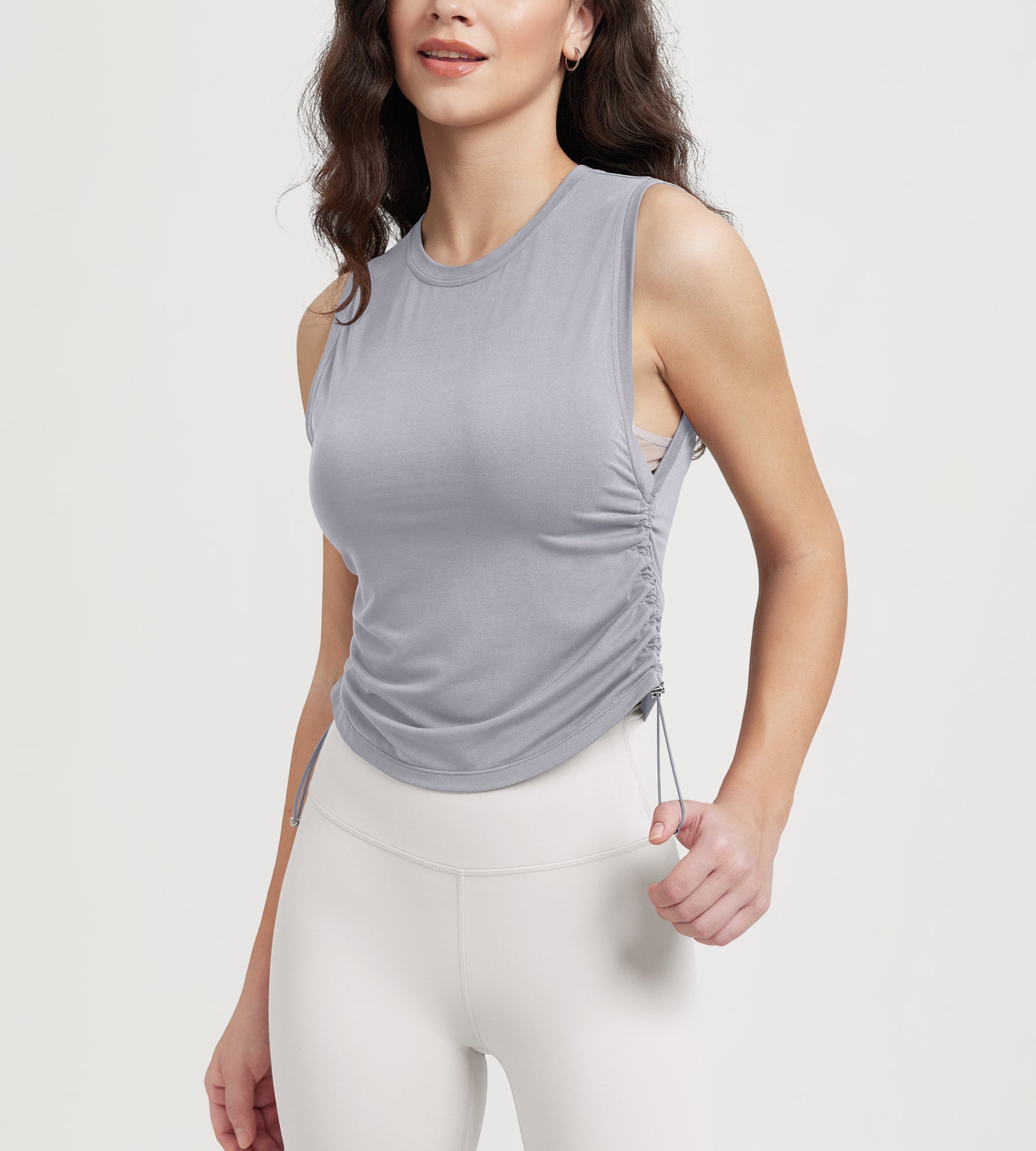 Women's Side Ruched Tee Sleeveless Shirts Crew Neck Tank Tops