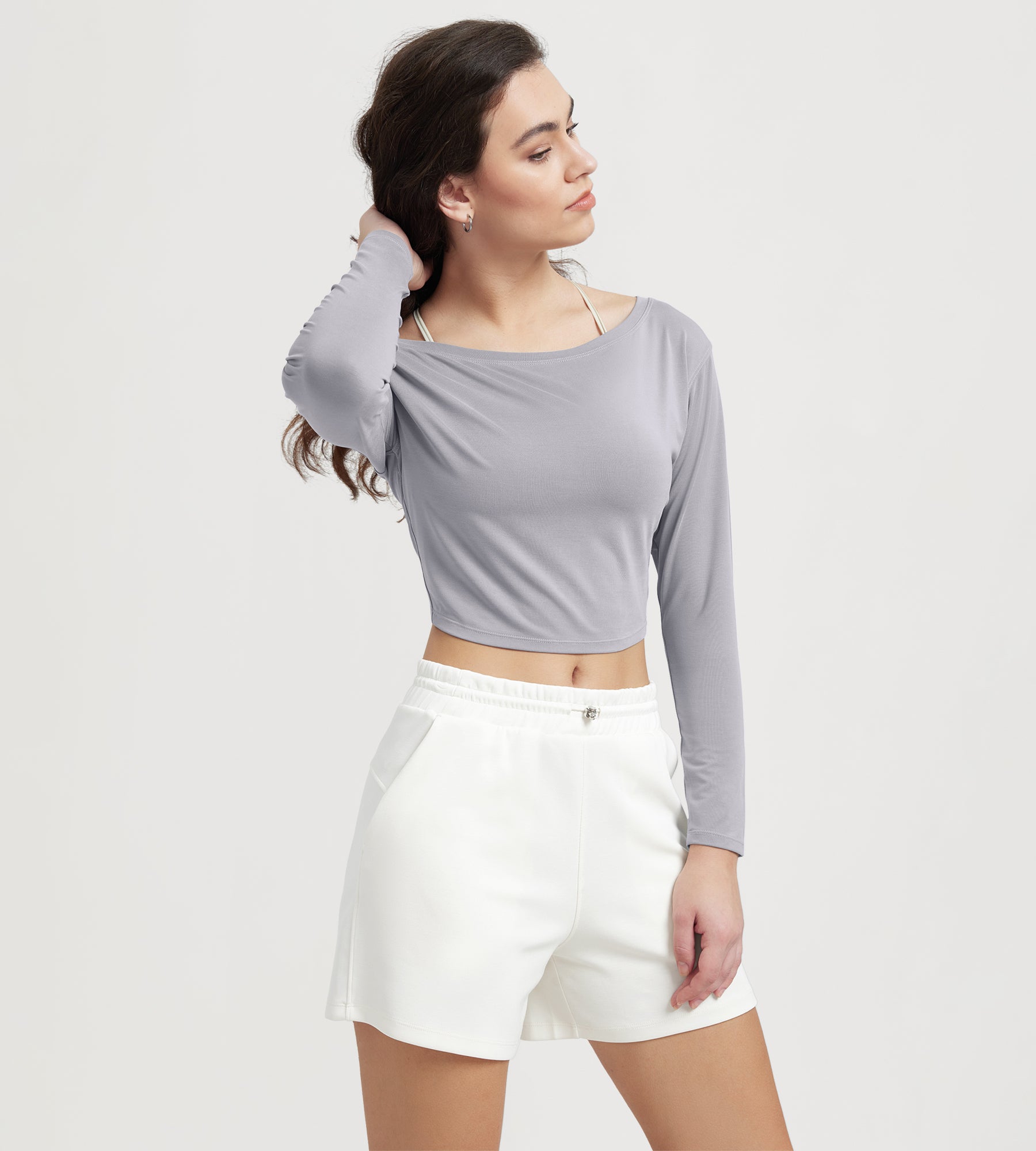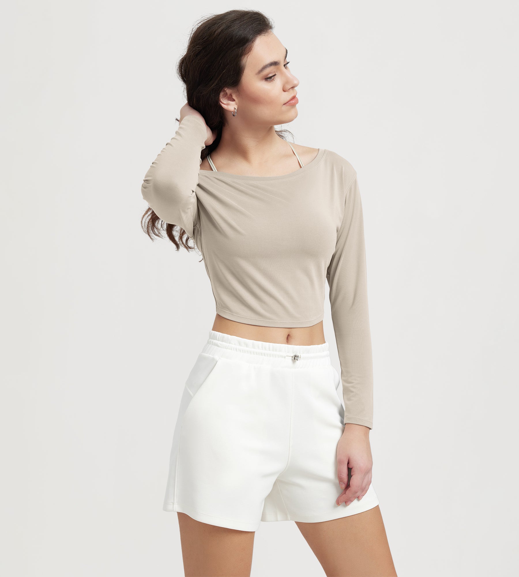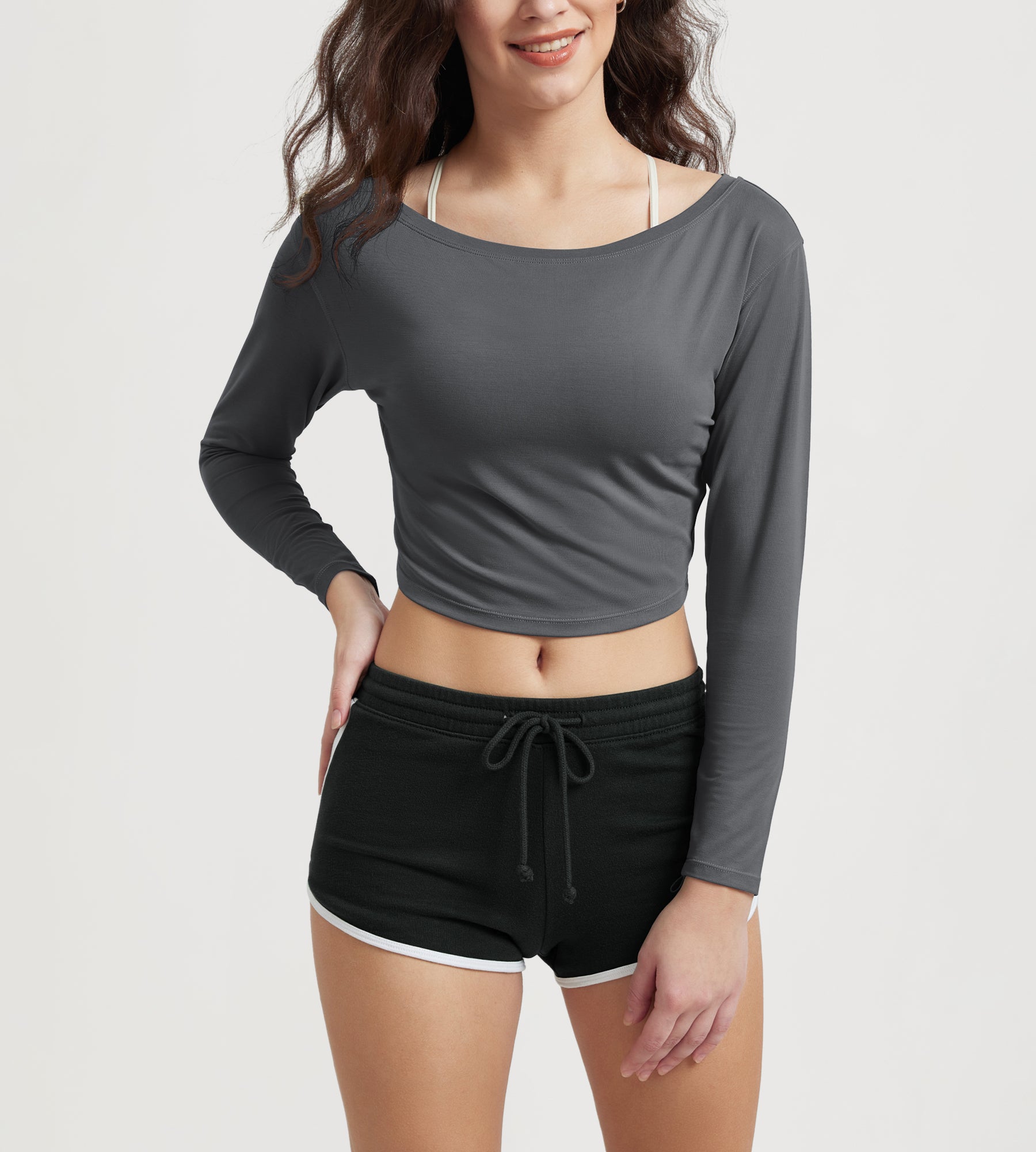 Women's Neck Cropped T-Shirts V-Waist Comfort Long Sleeve Tops