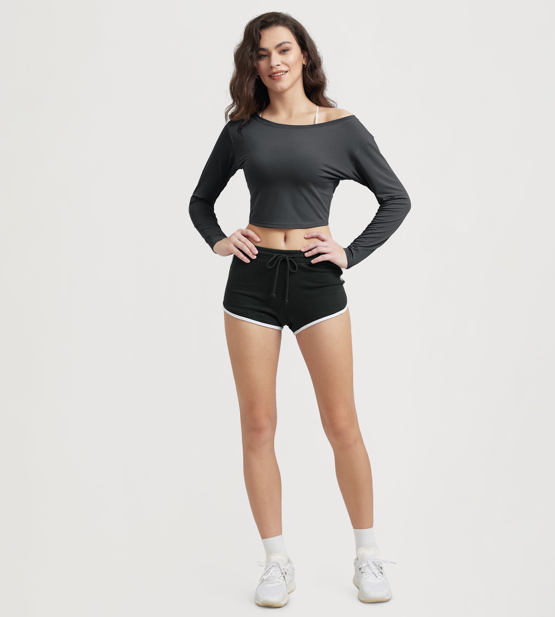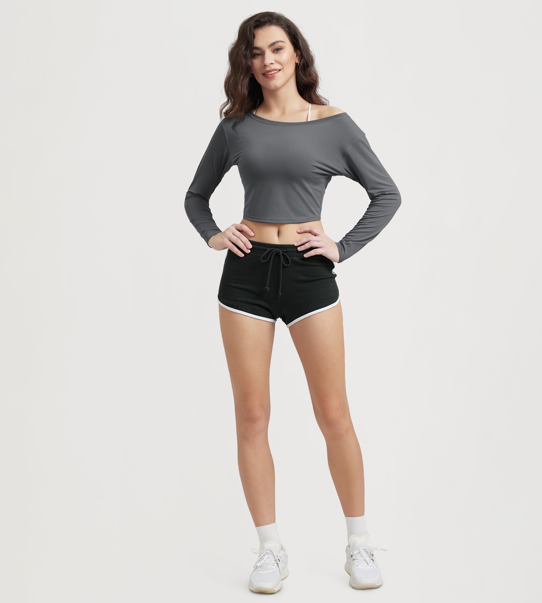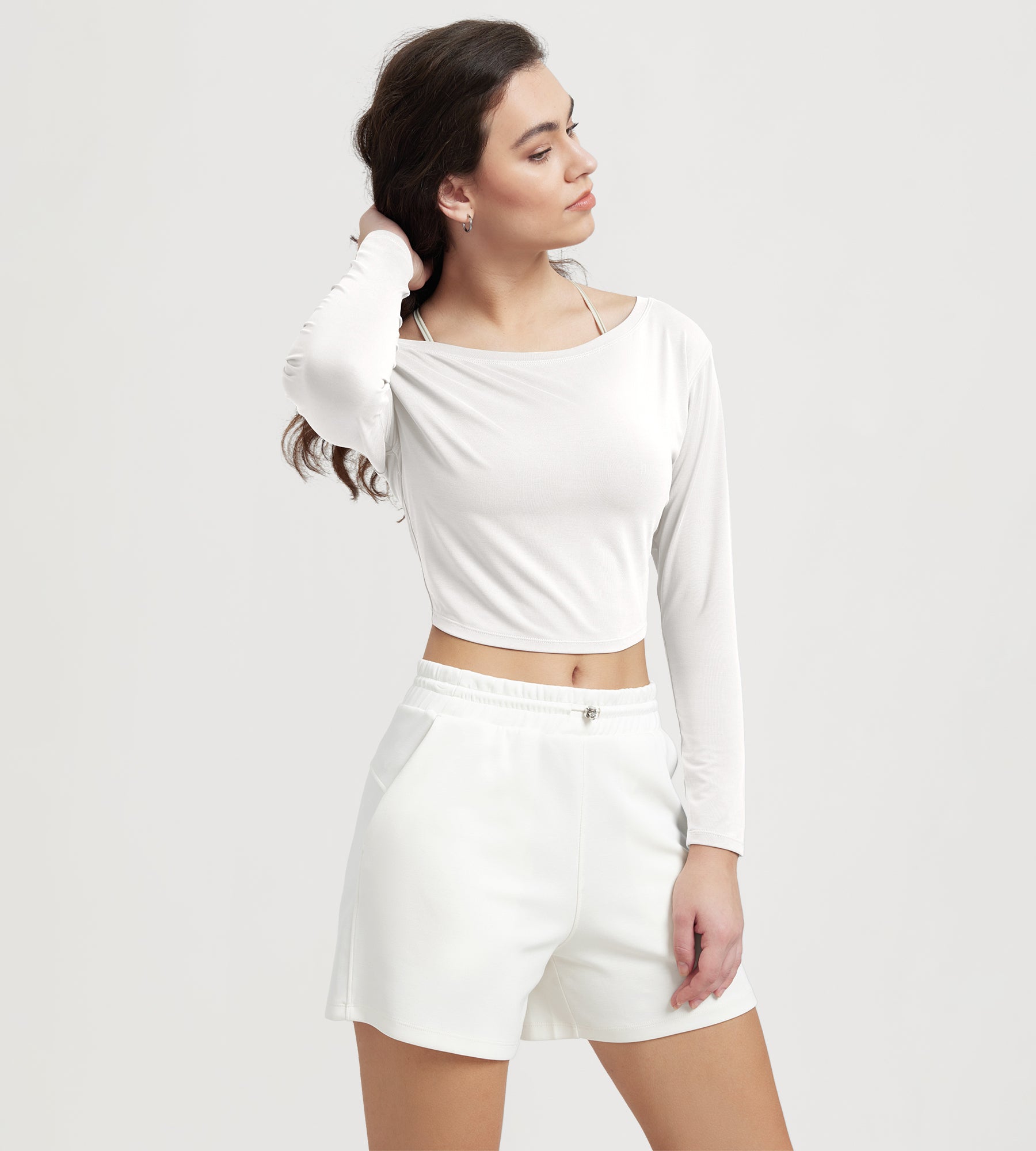 Women's Neck Cropped T-Shirts V-Waist Comfort Long Sleeve Tops
