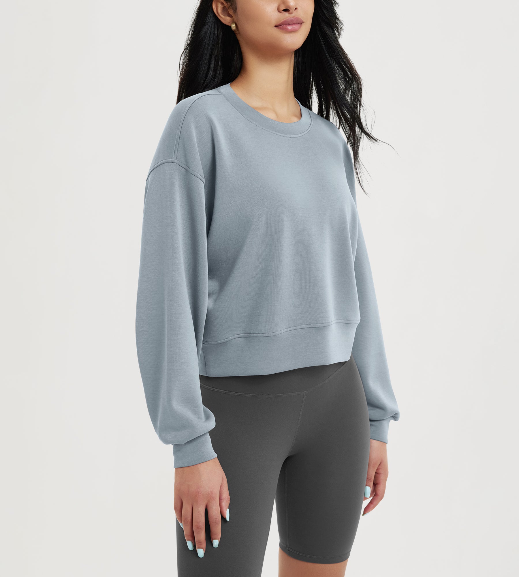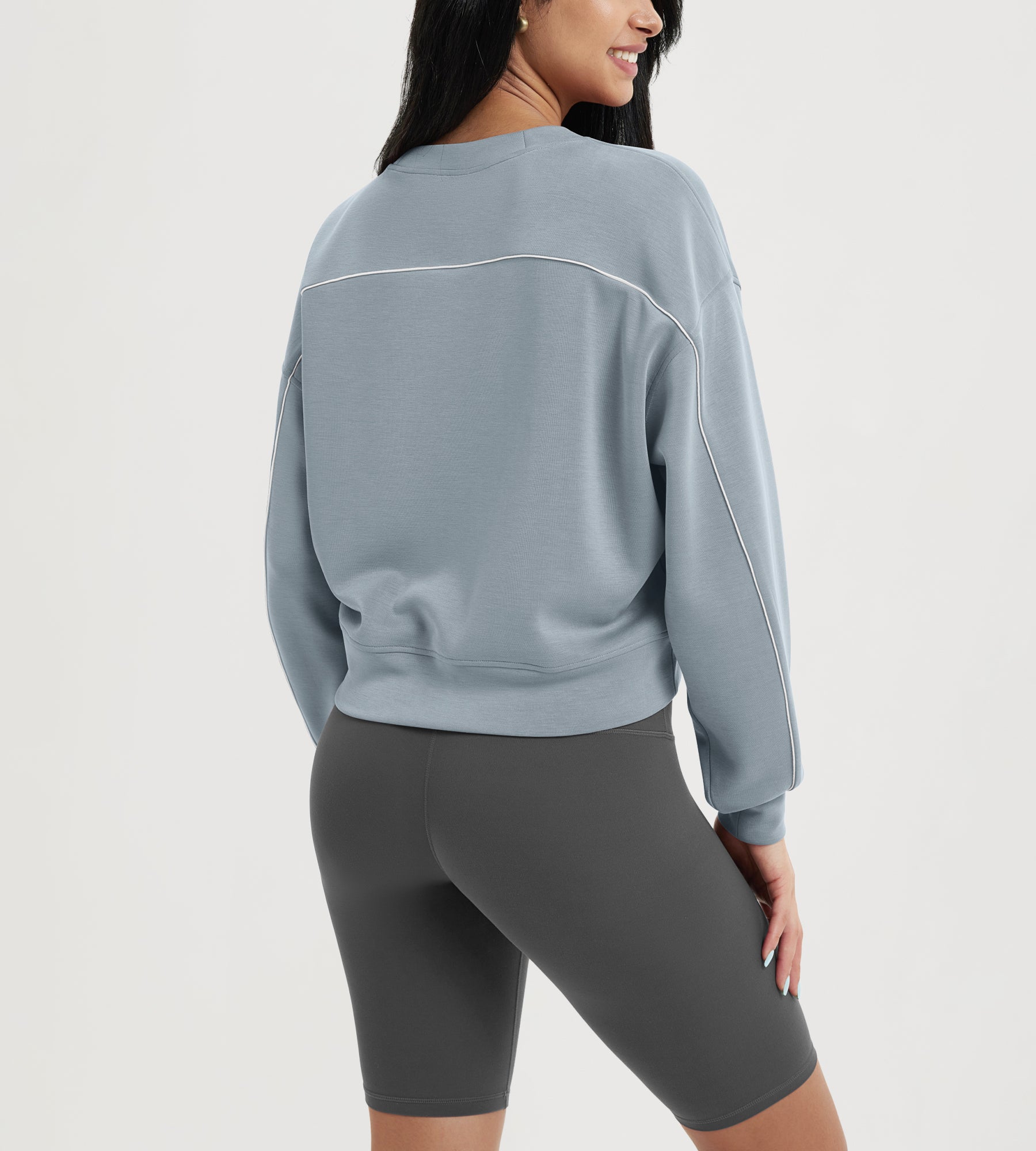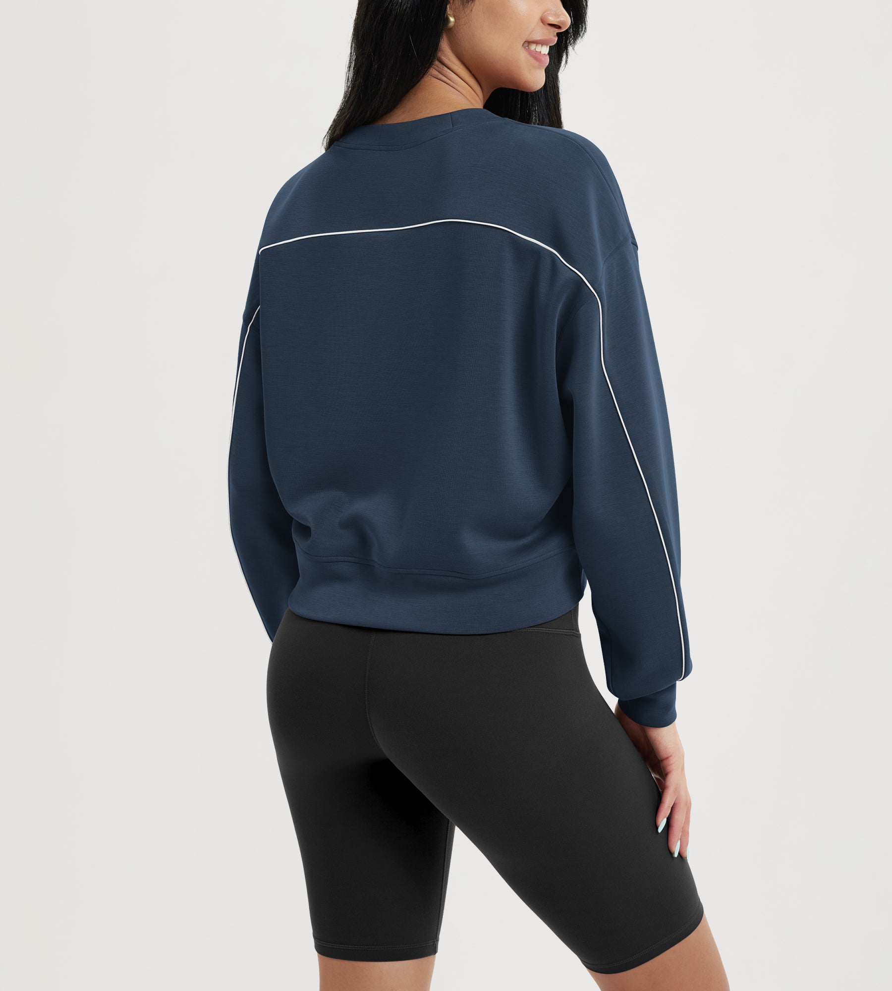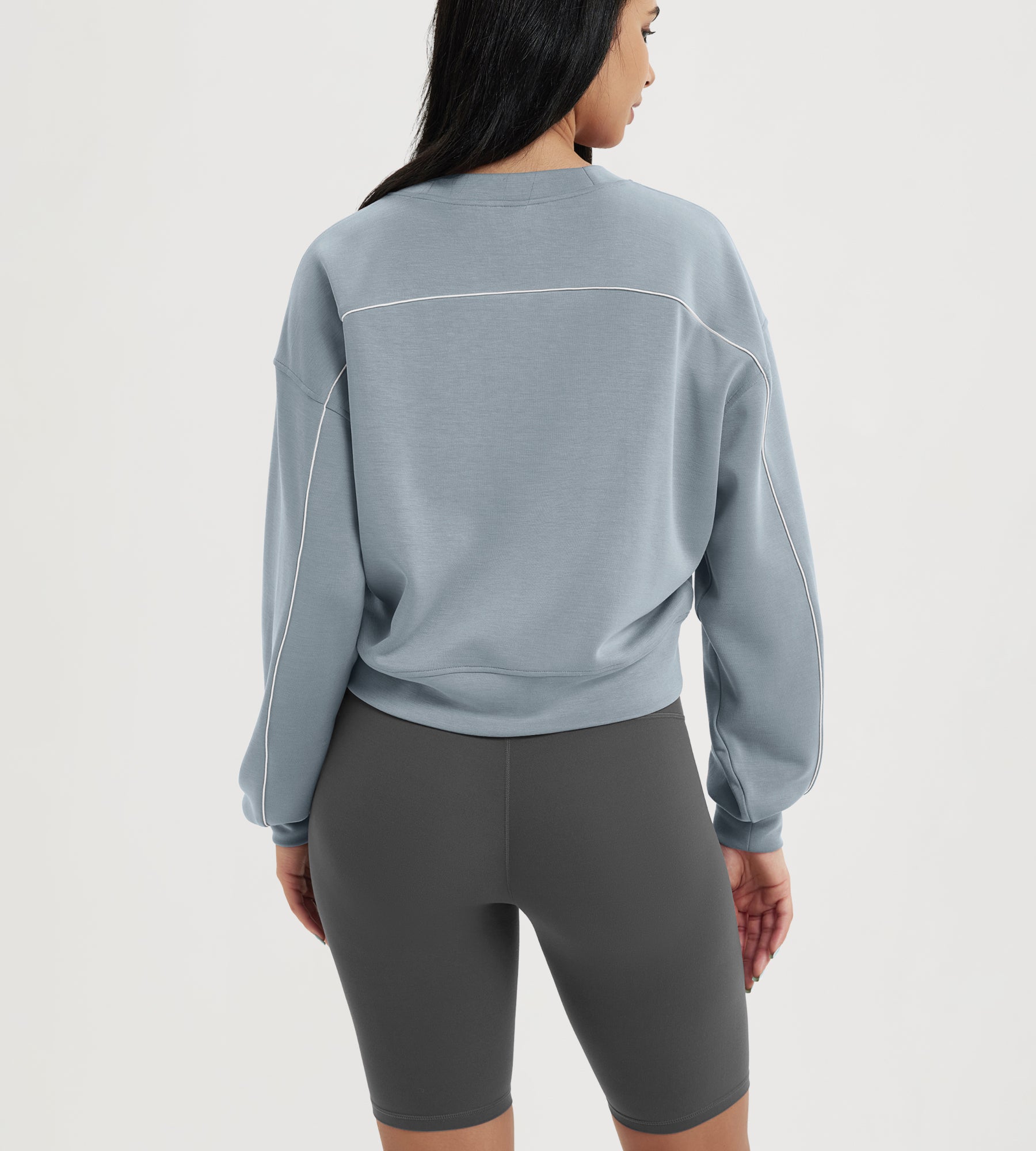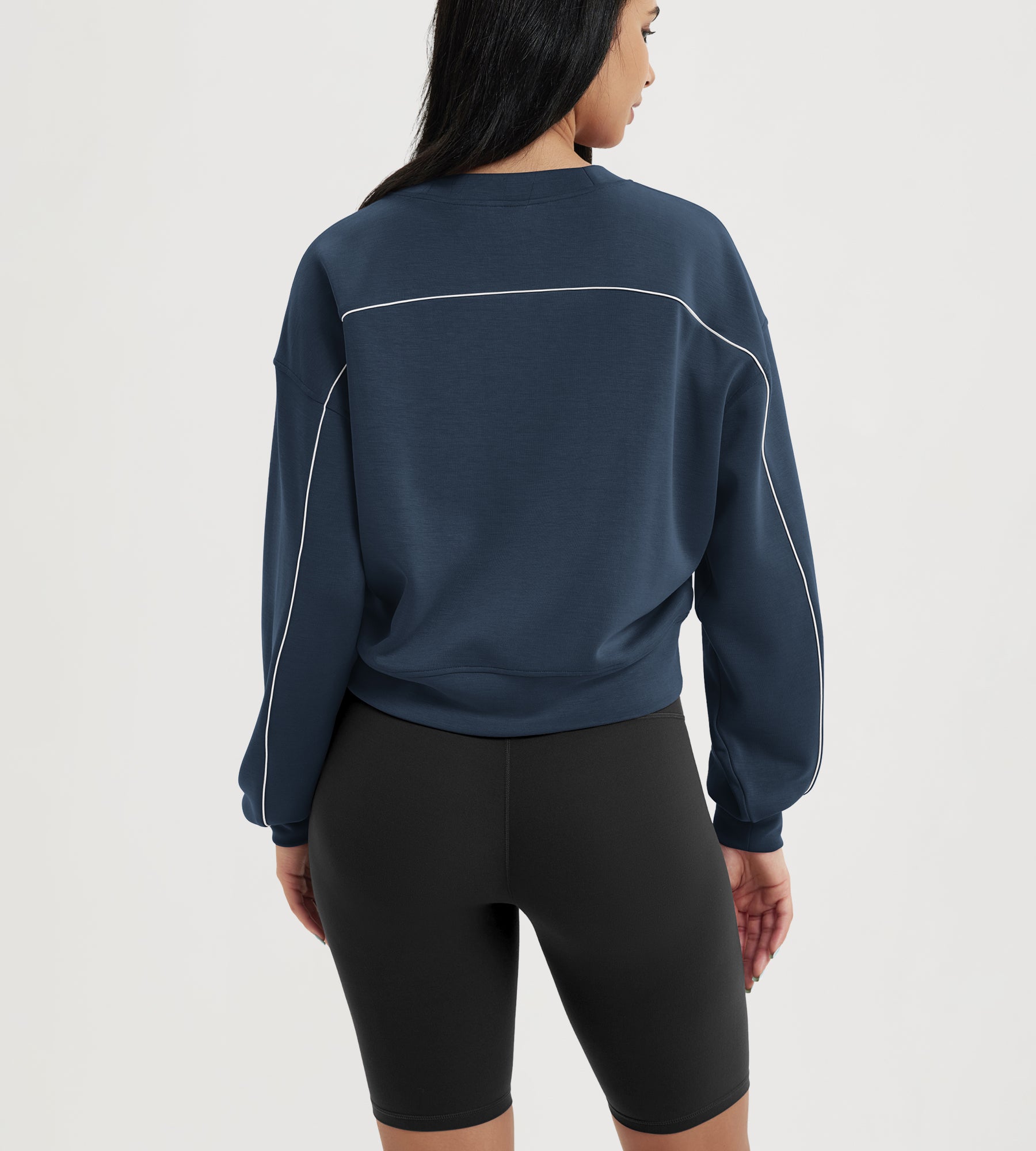 ODODOS Modal Soft Long Sleeve Cropped Sweatshirts with piping