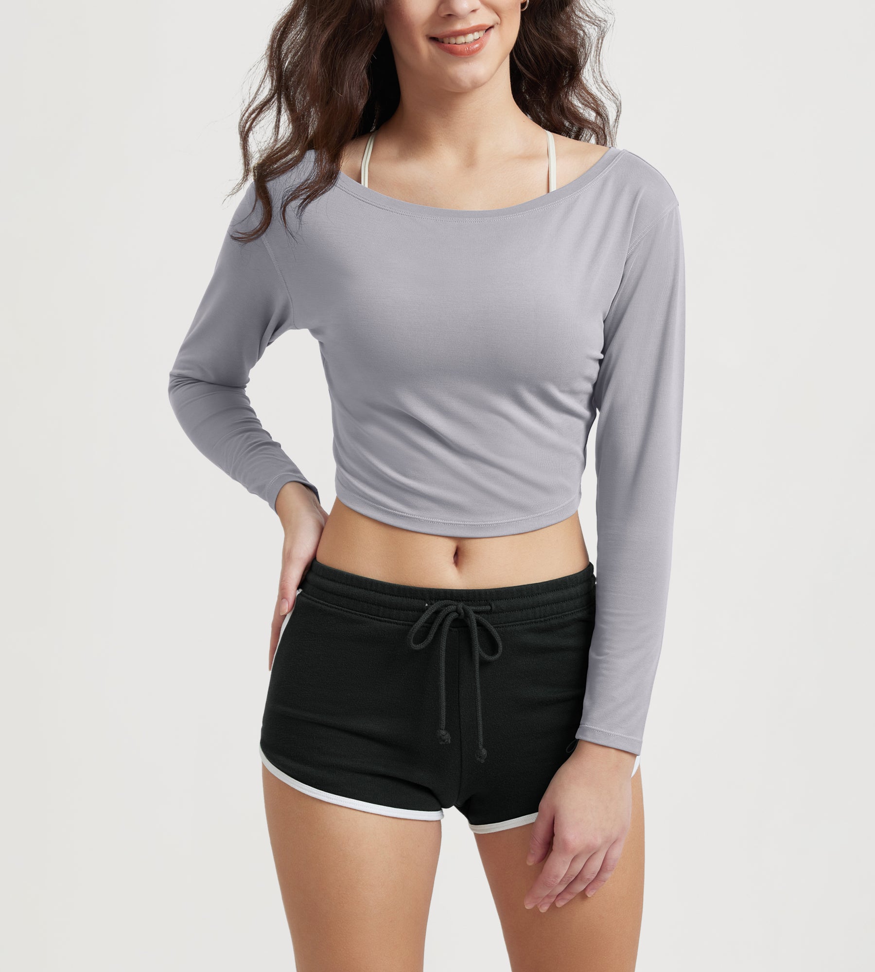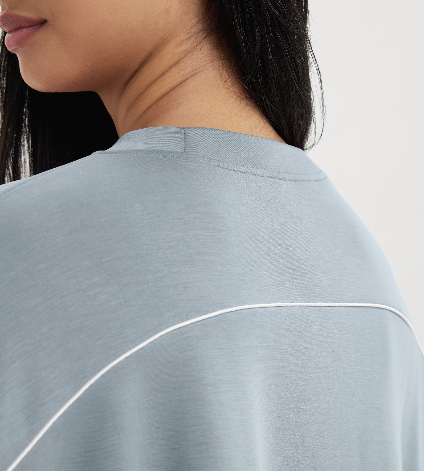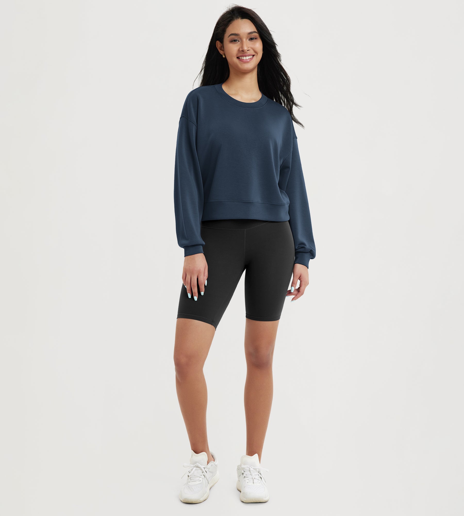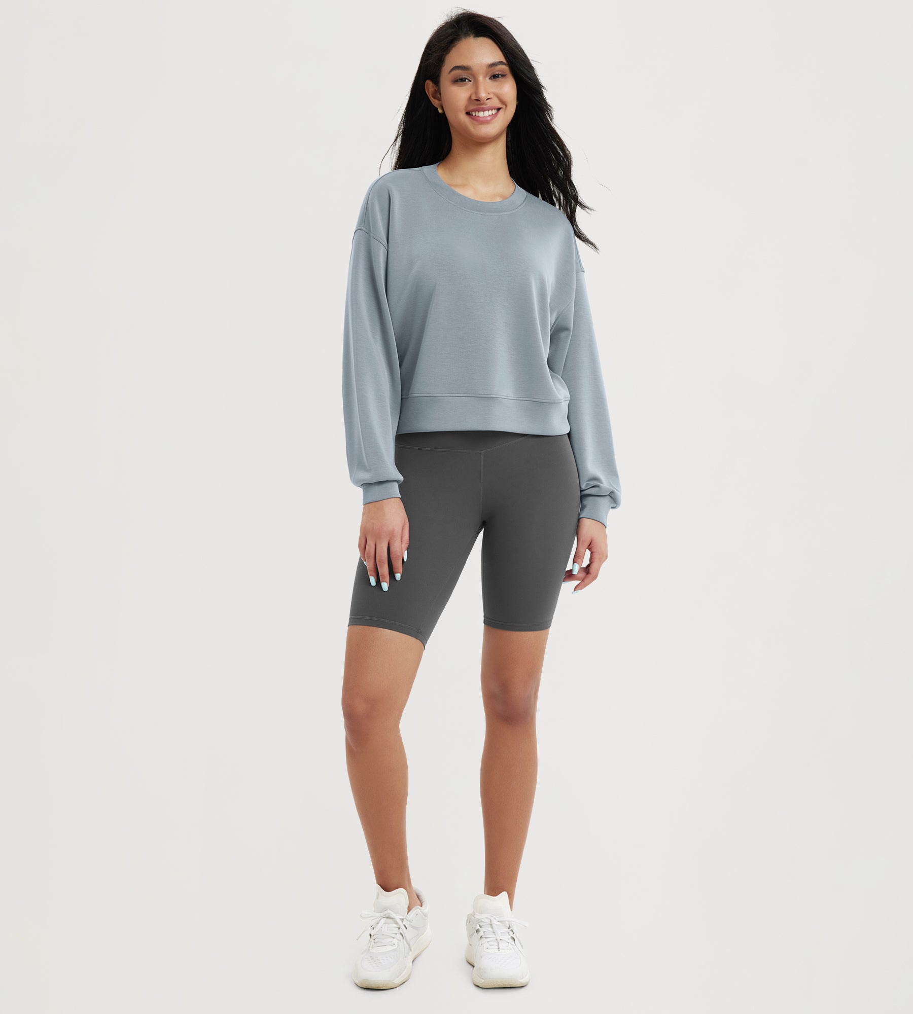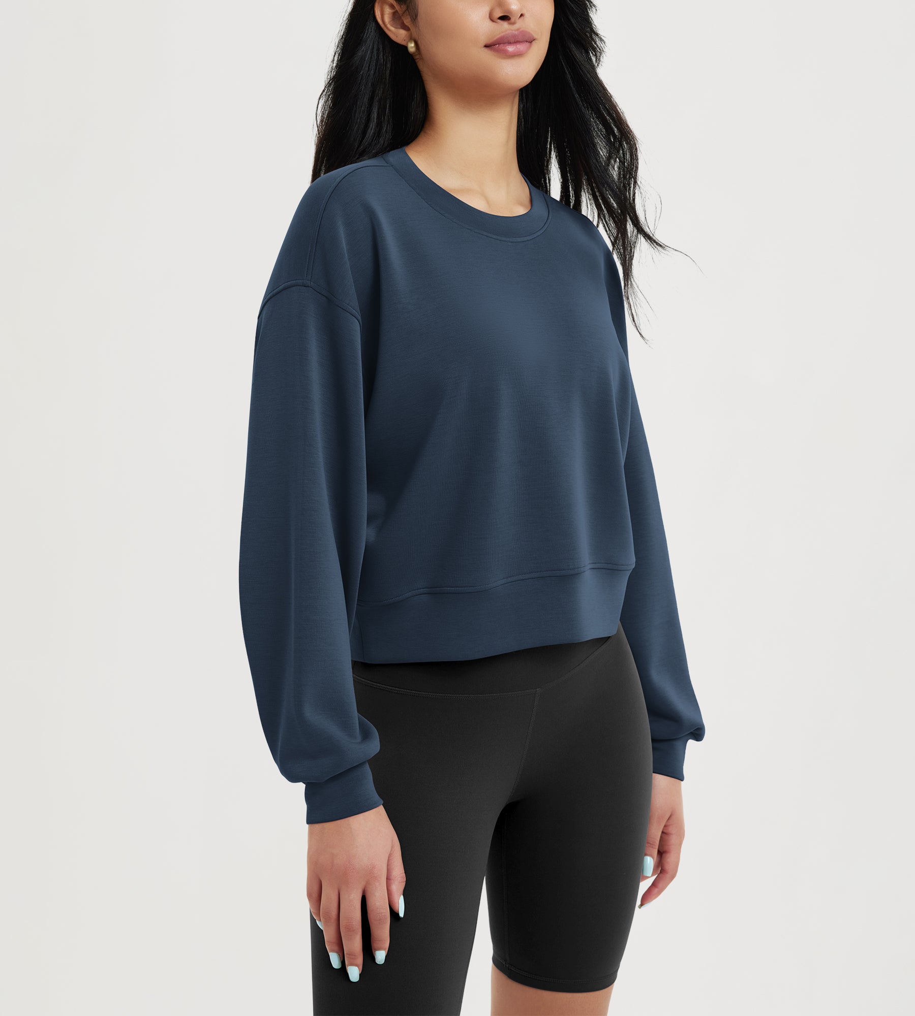 ODODOS Modal Soft Long Sleeve Cropped Sweatshirts with piping