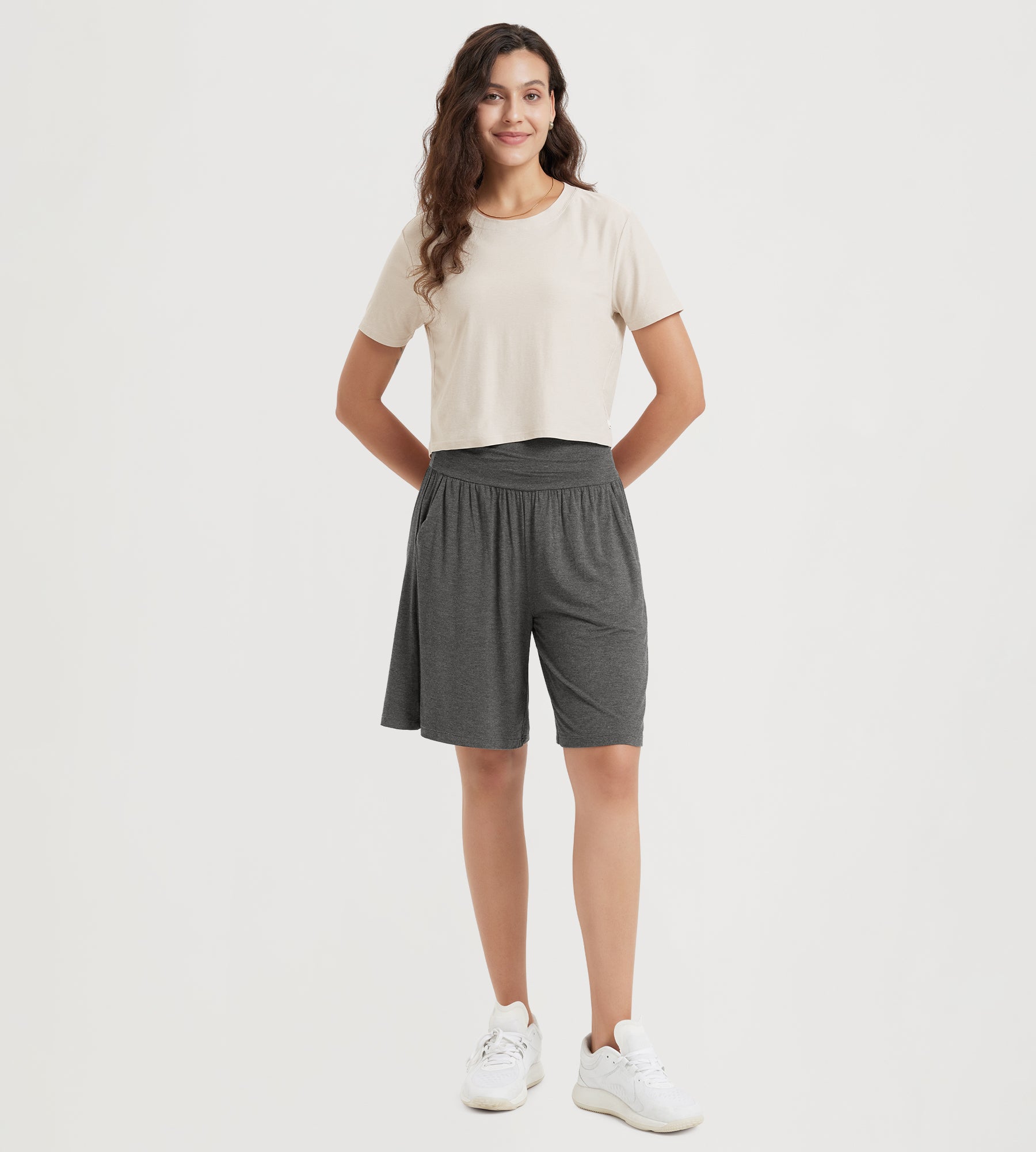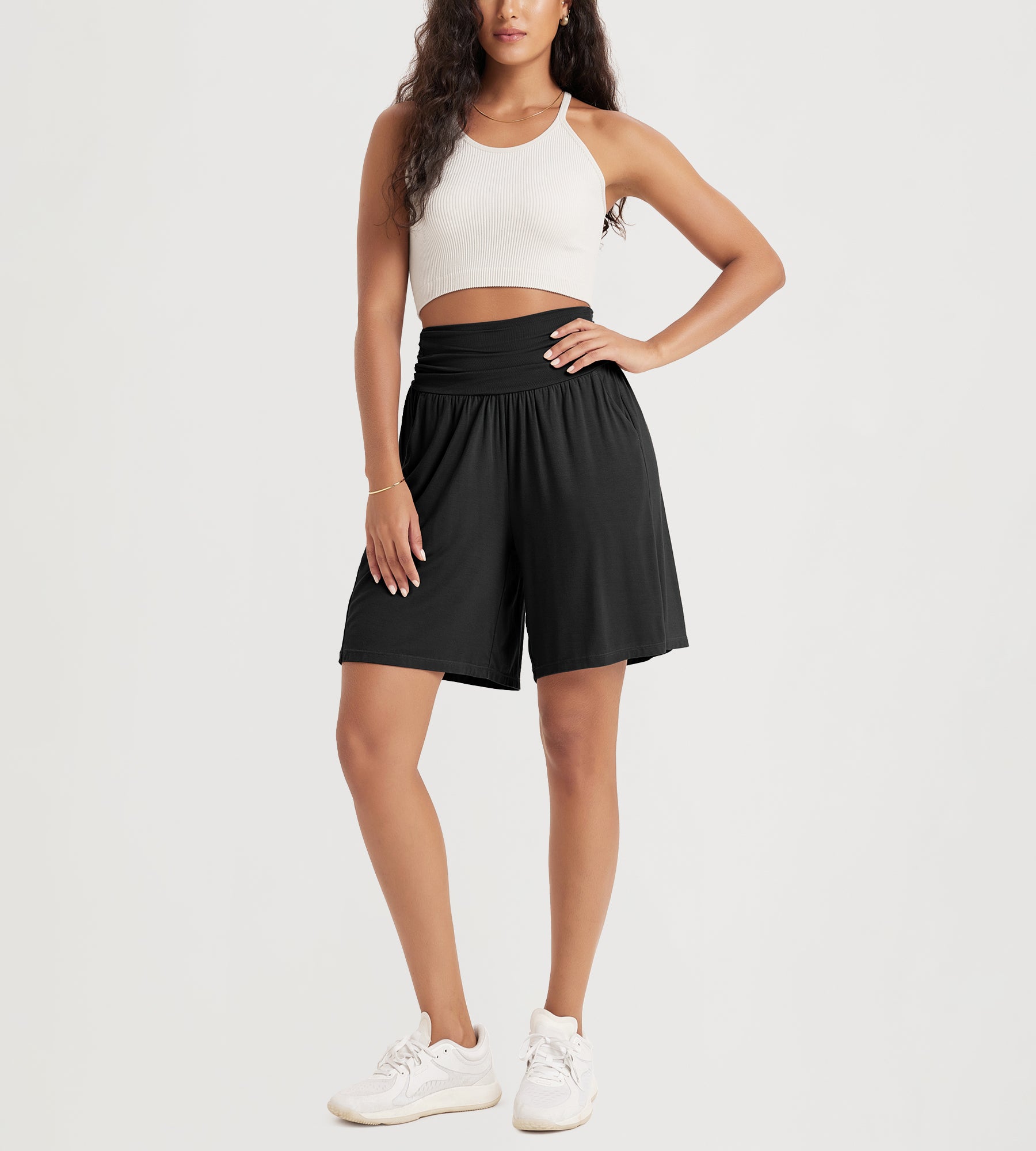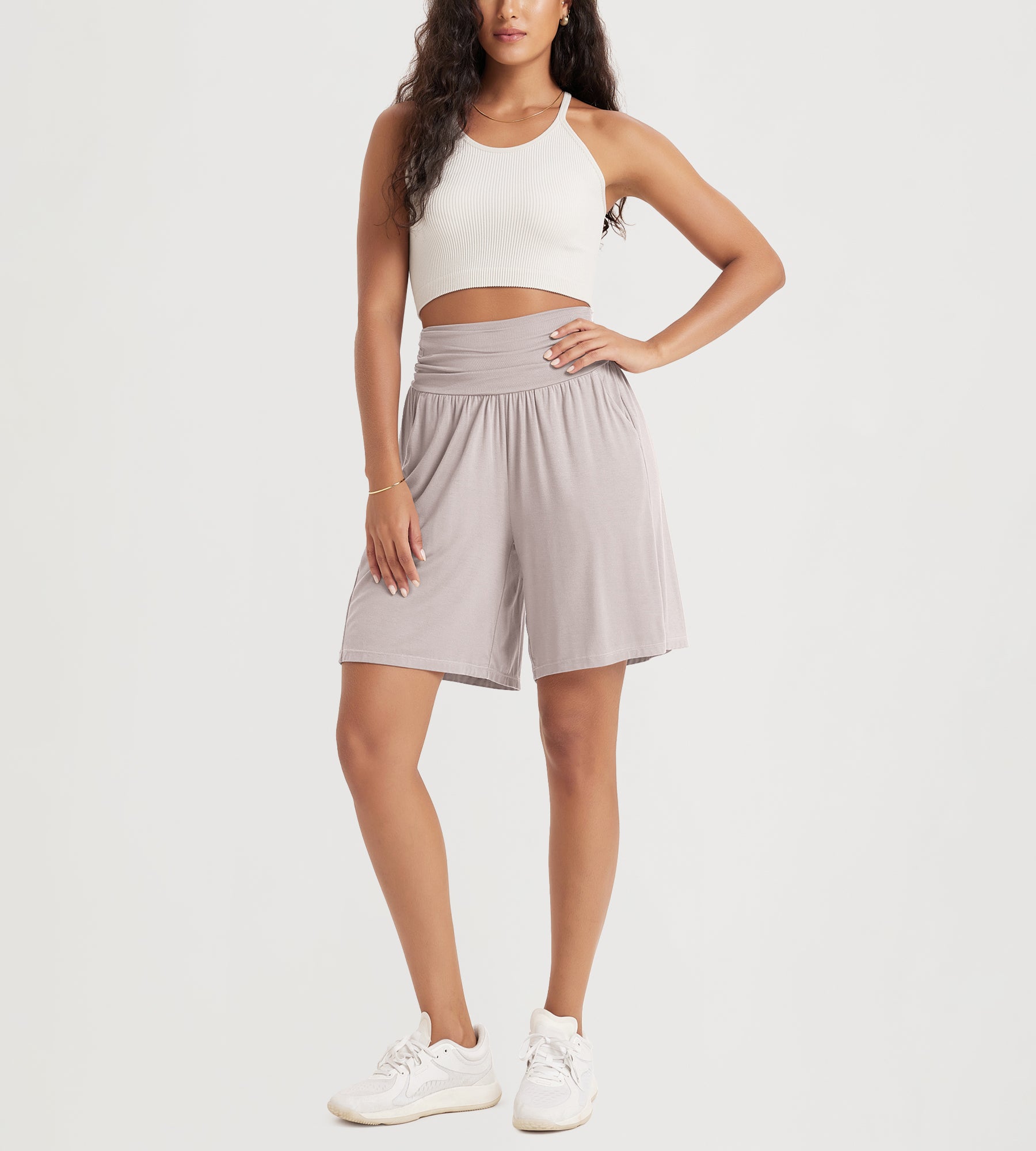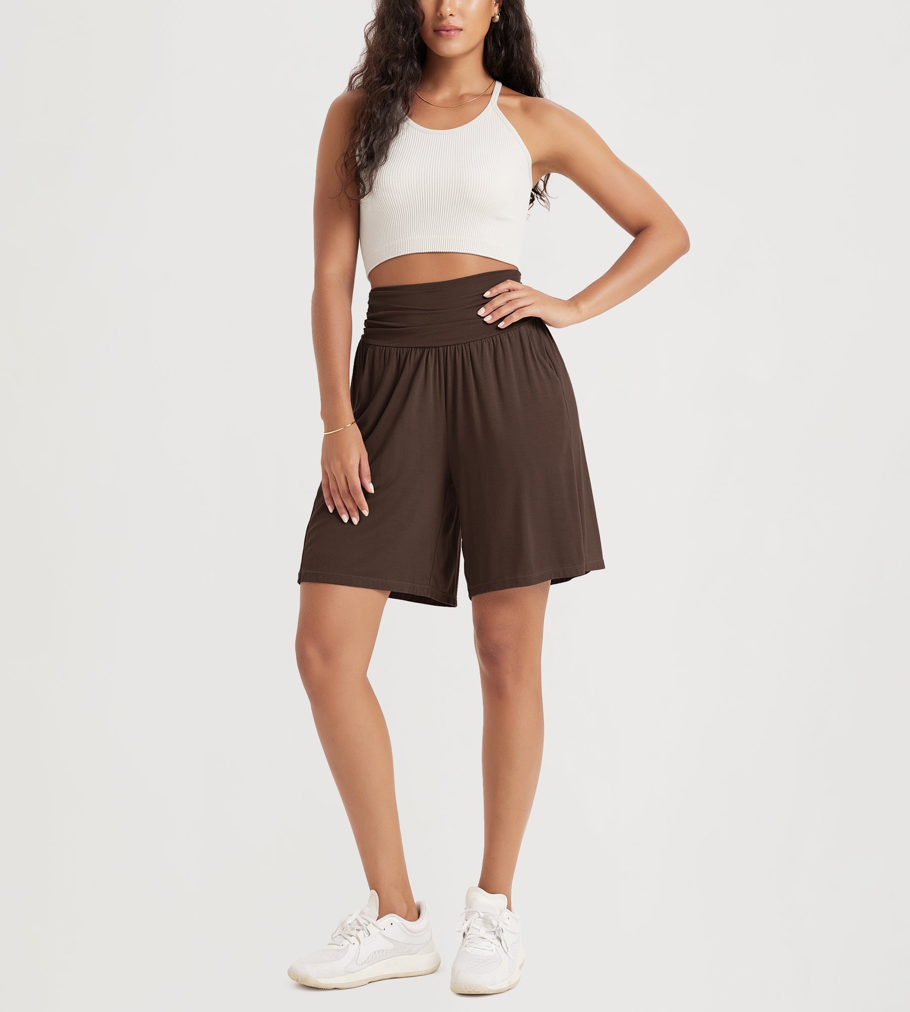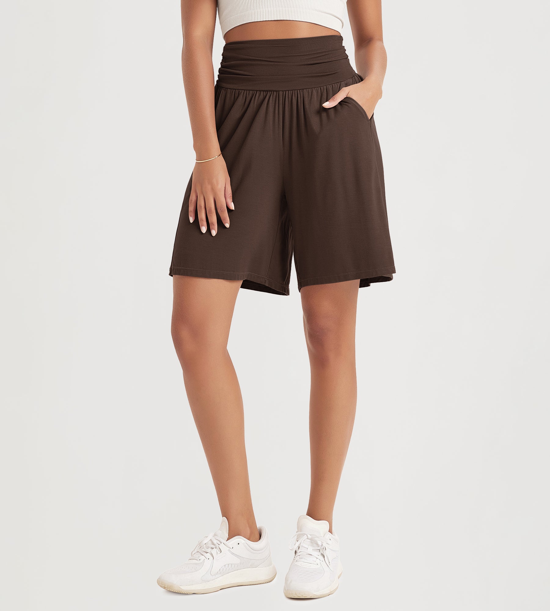 ODODOS 8" Women's Wide Leg Lounge Shorts with Pockets