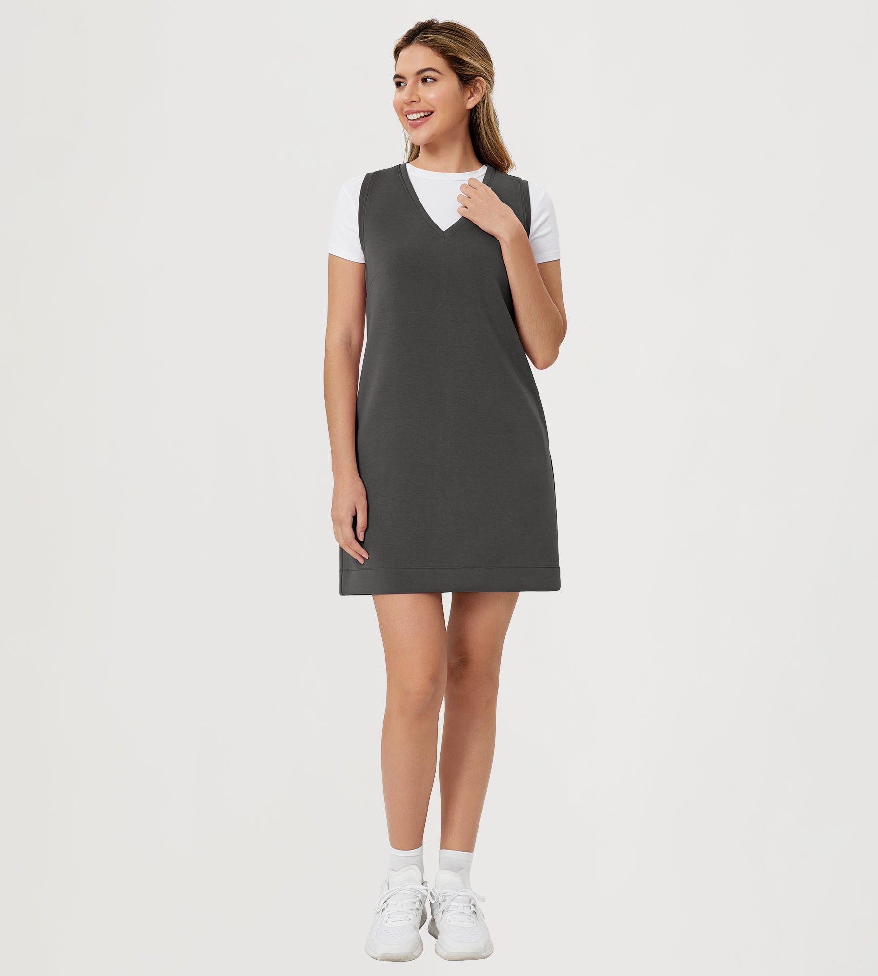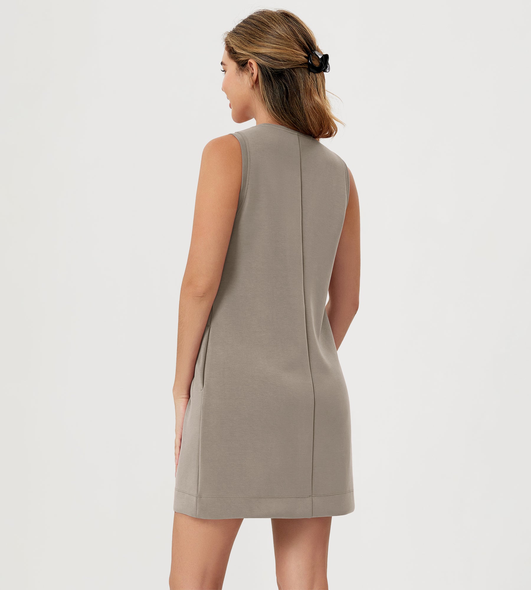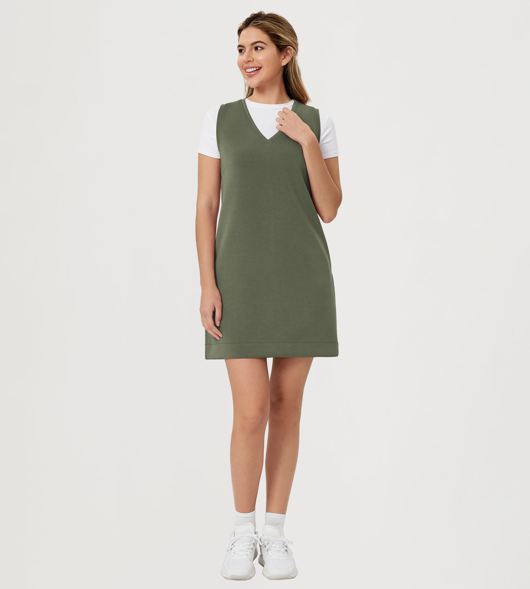 ODODOS V-Neck Tank Dress Sleeveless with Pocket