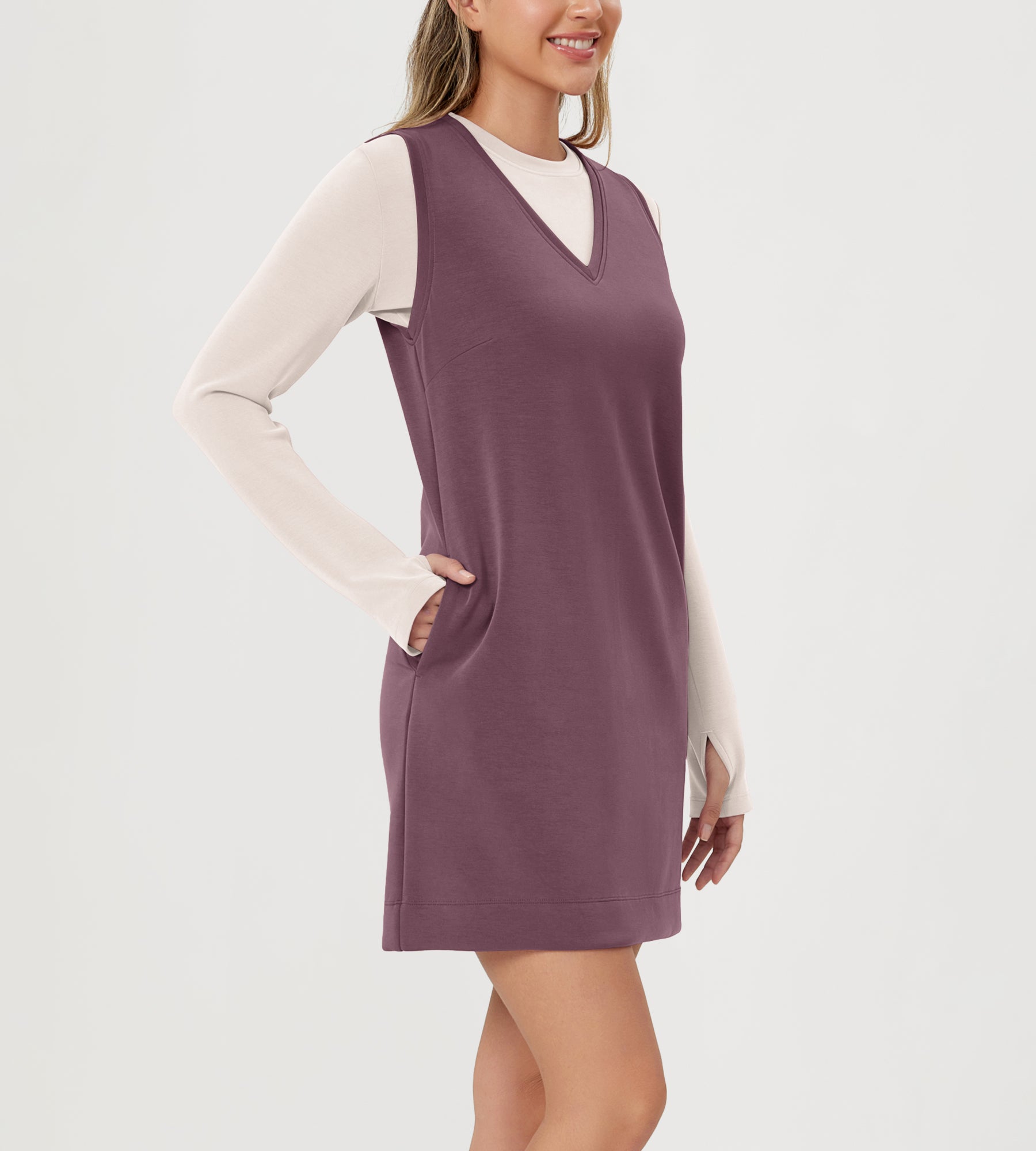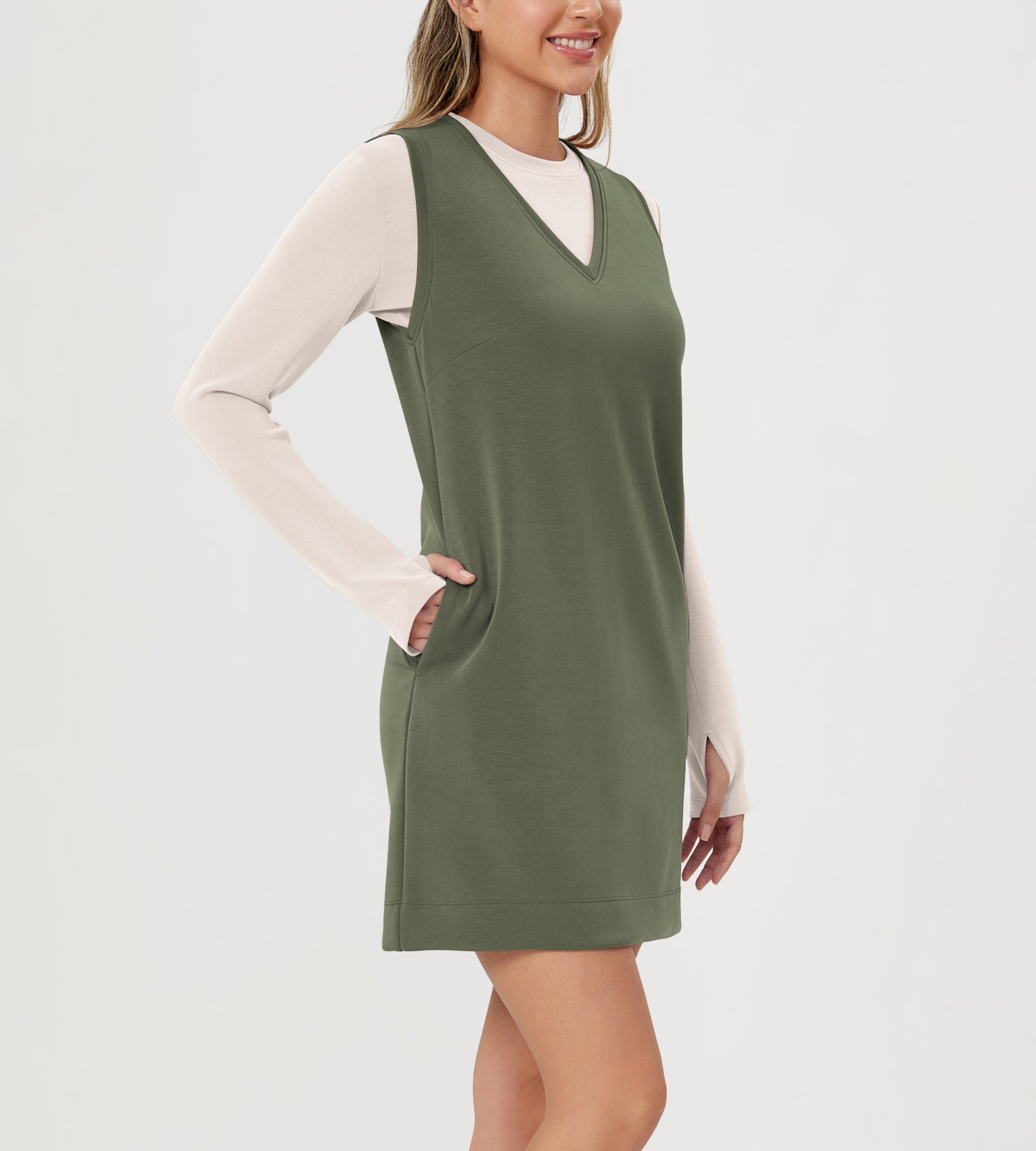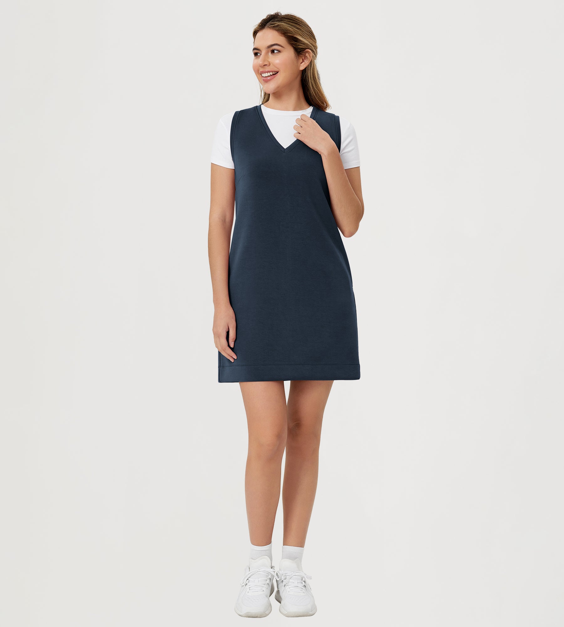 ODODOS V-Neck Tank Dress Sleeveless with Pocket