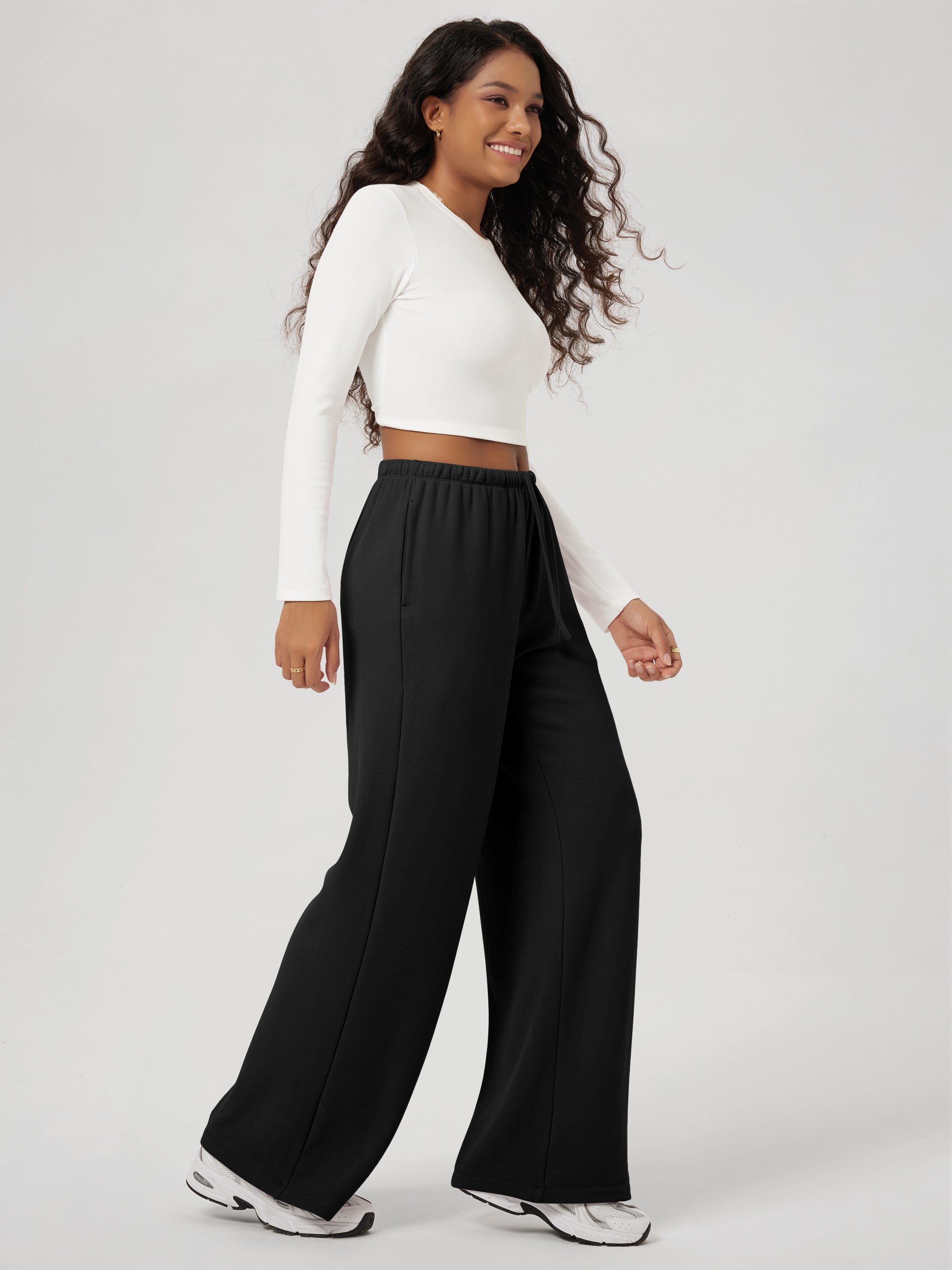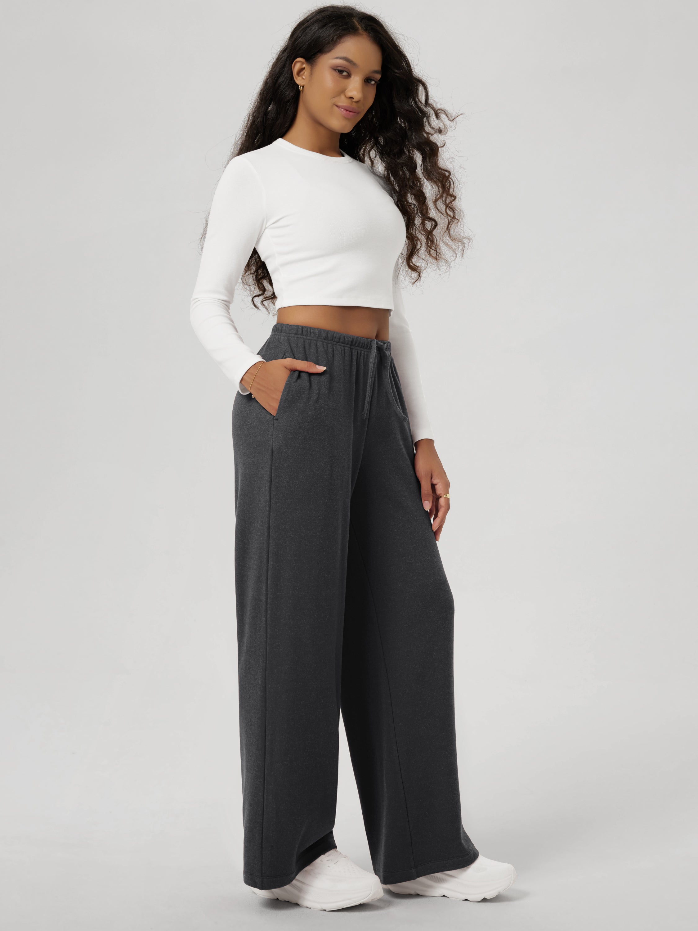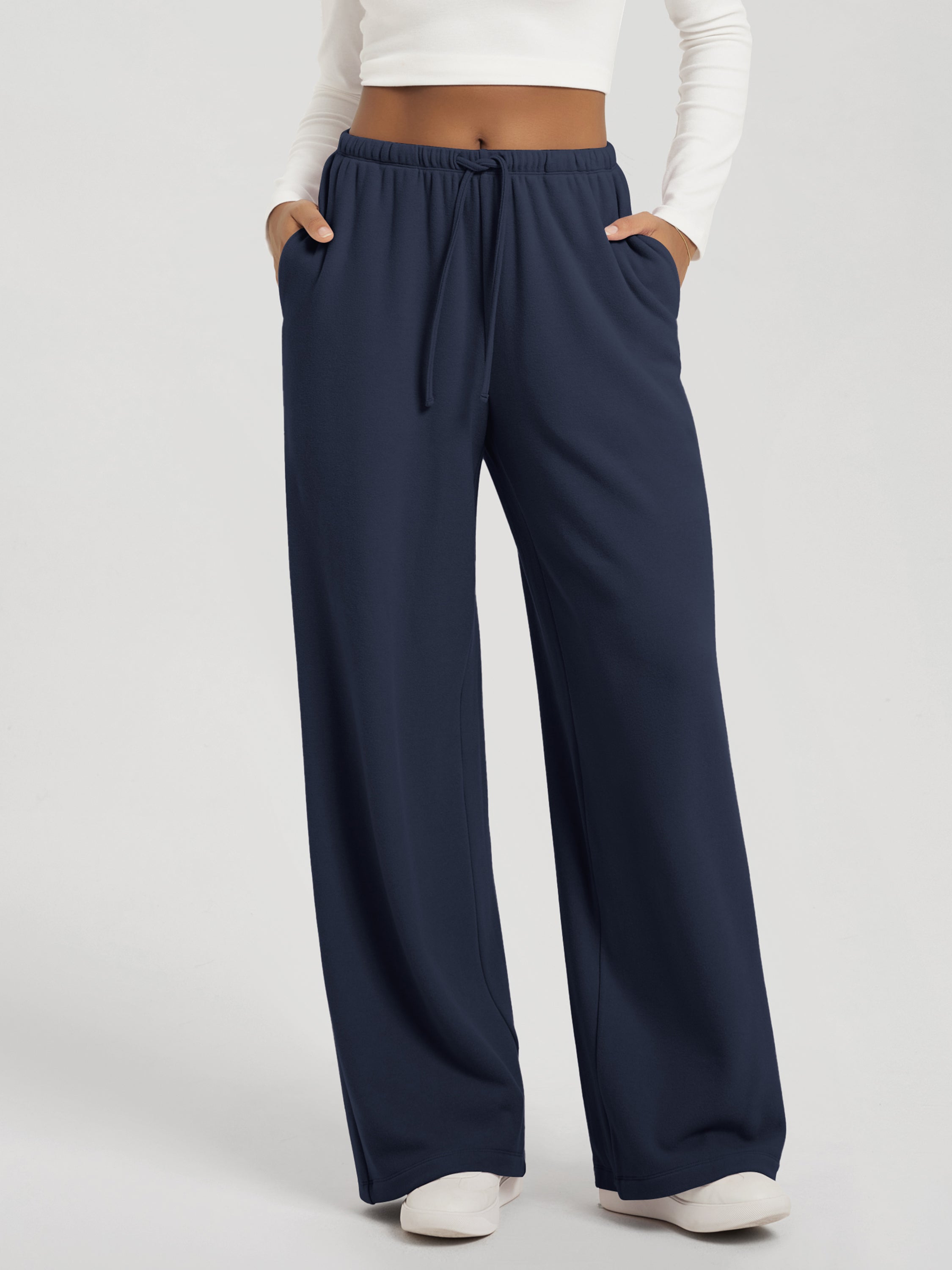 29" Stretch Fleece Wide Leg Sweatpants with Pockets