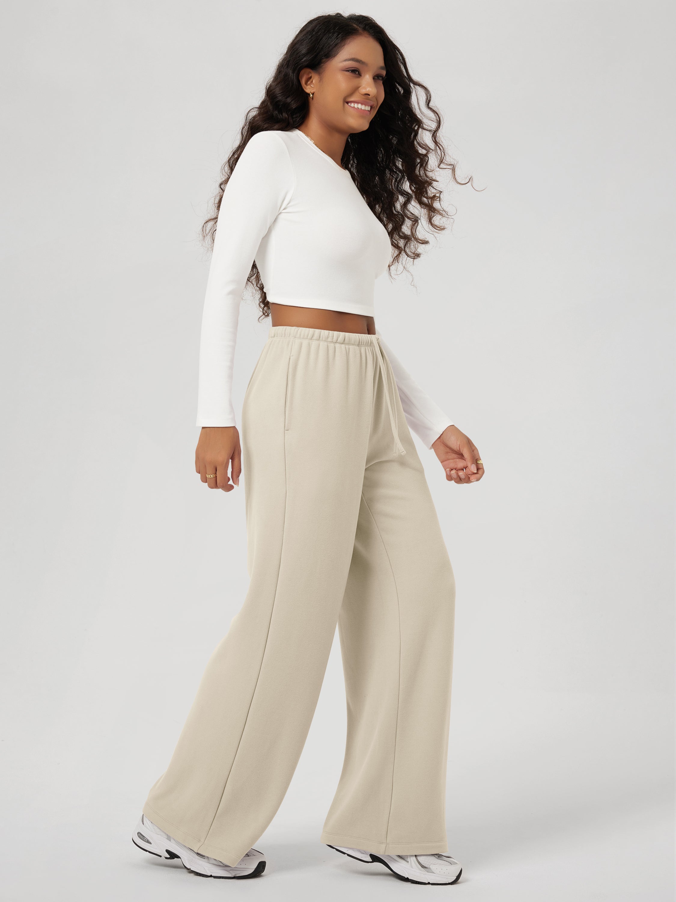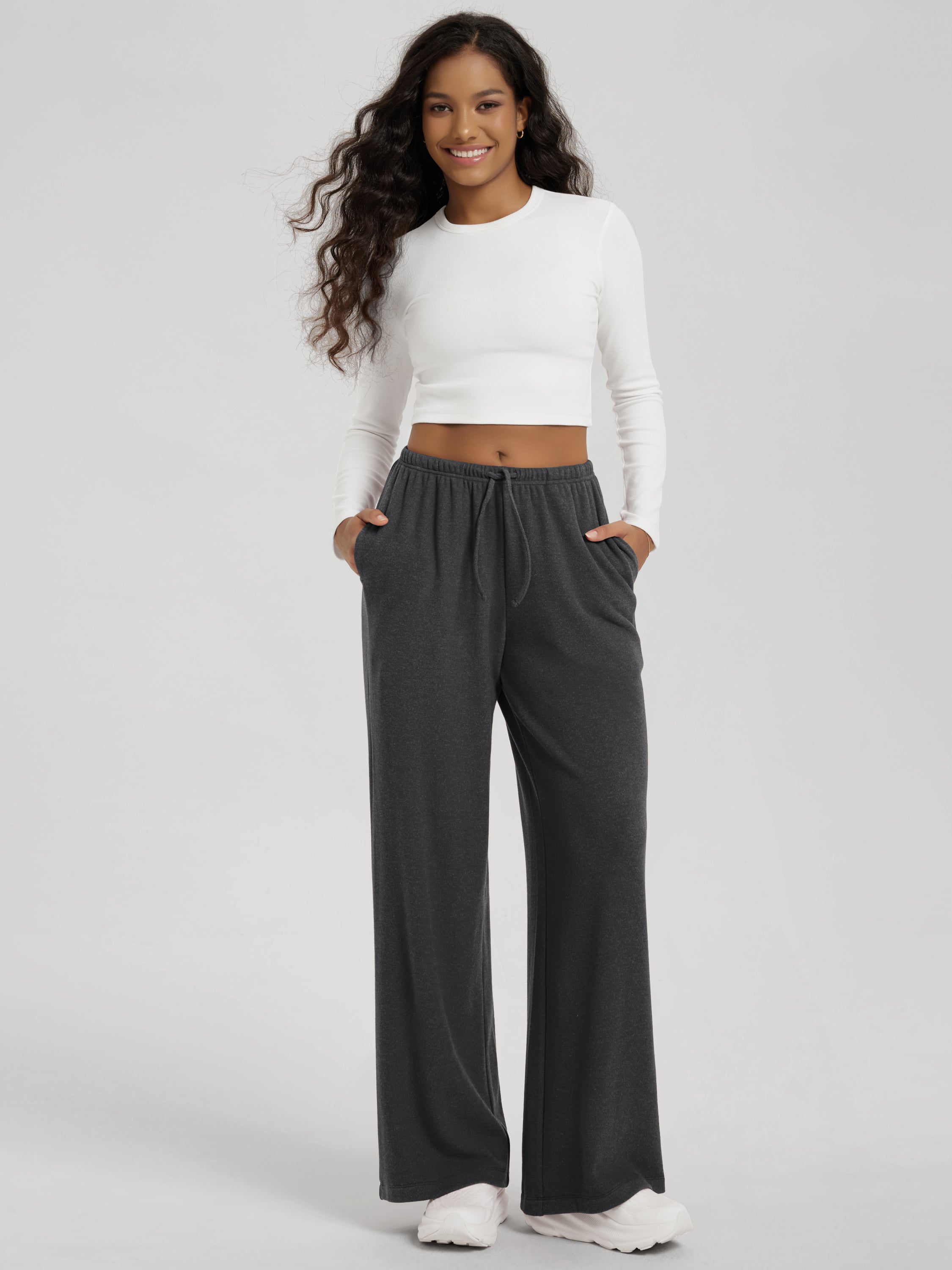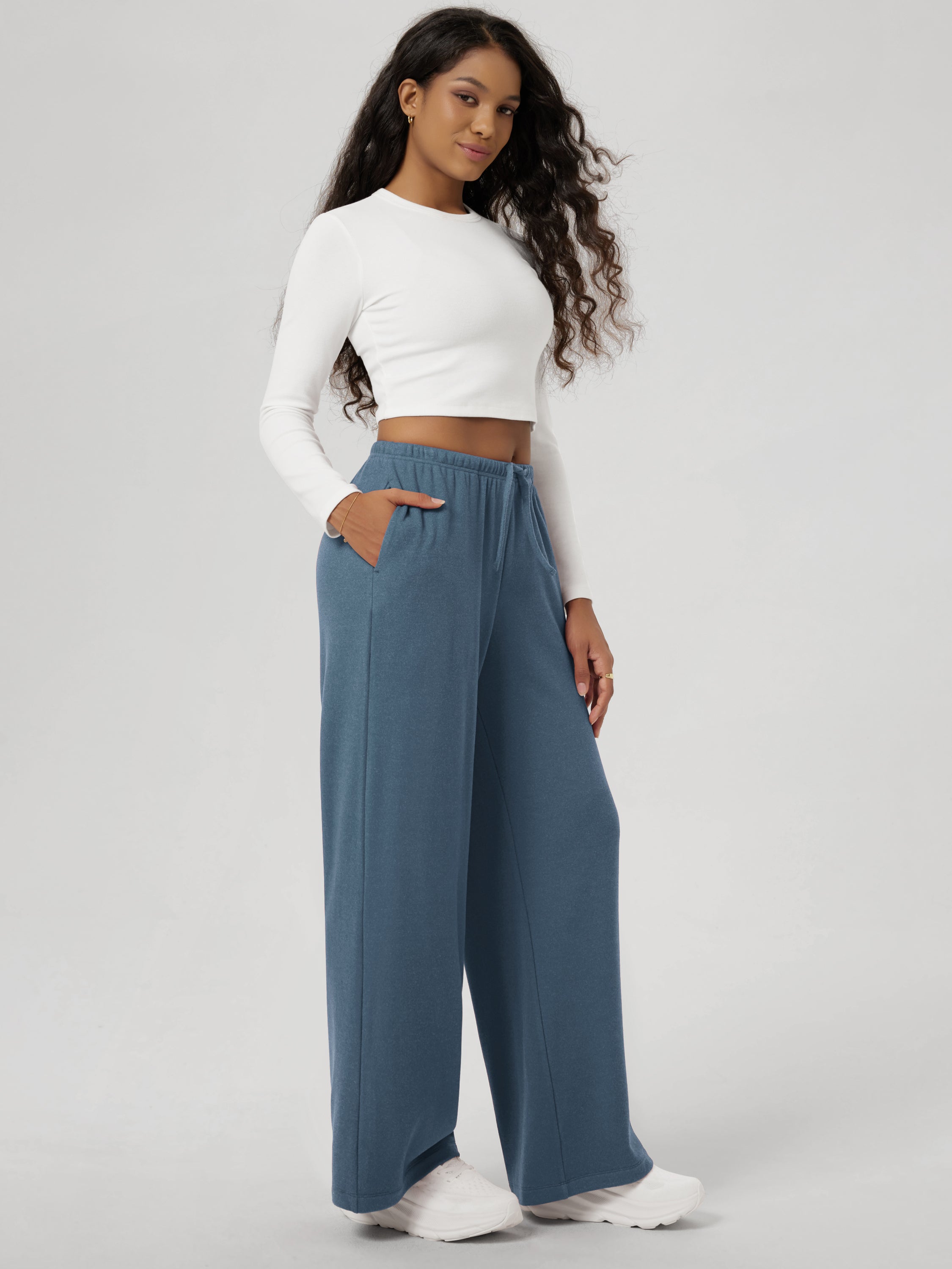 29" Stretch Fleece Wide Leg Sweatpants with Pockets