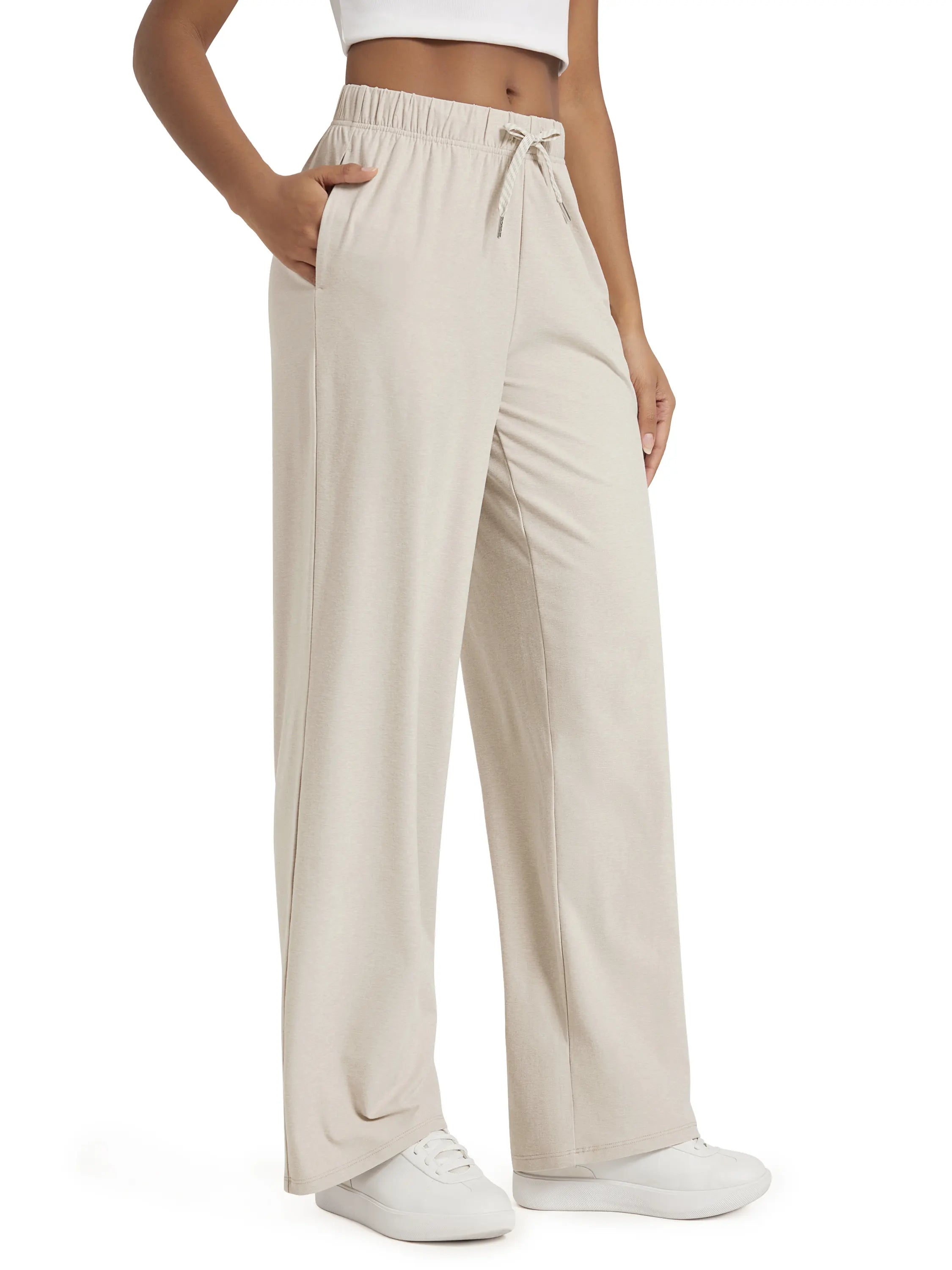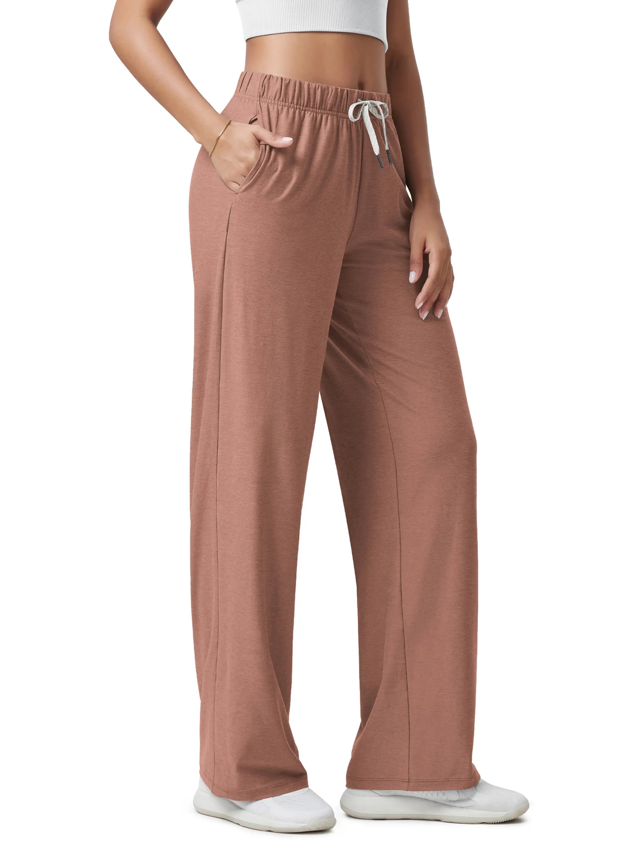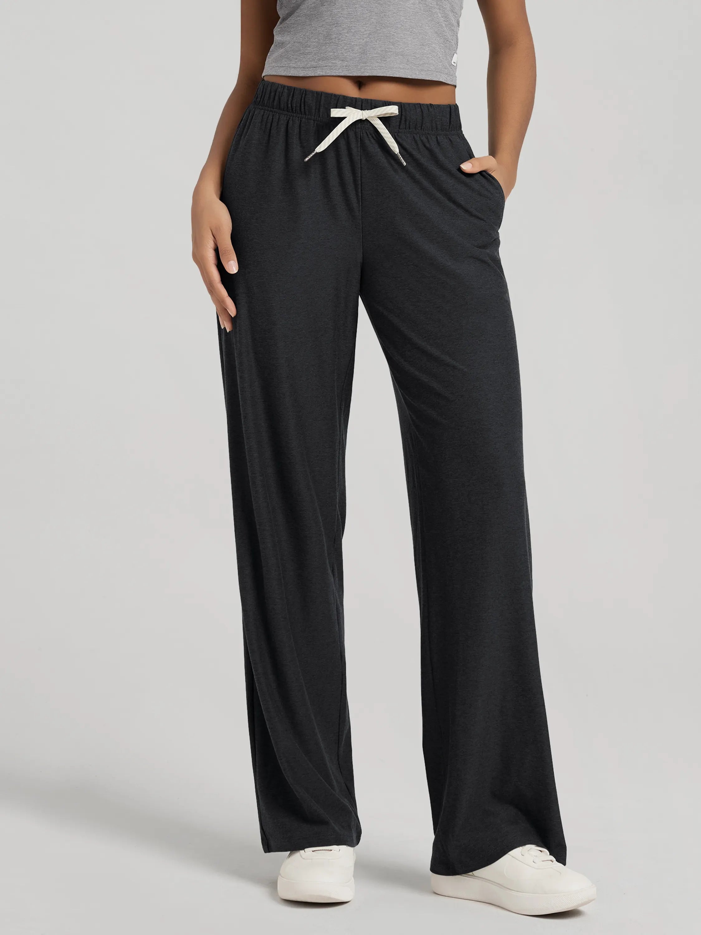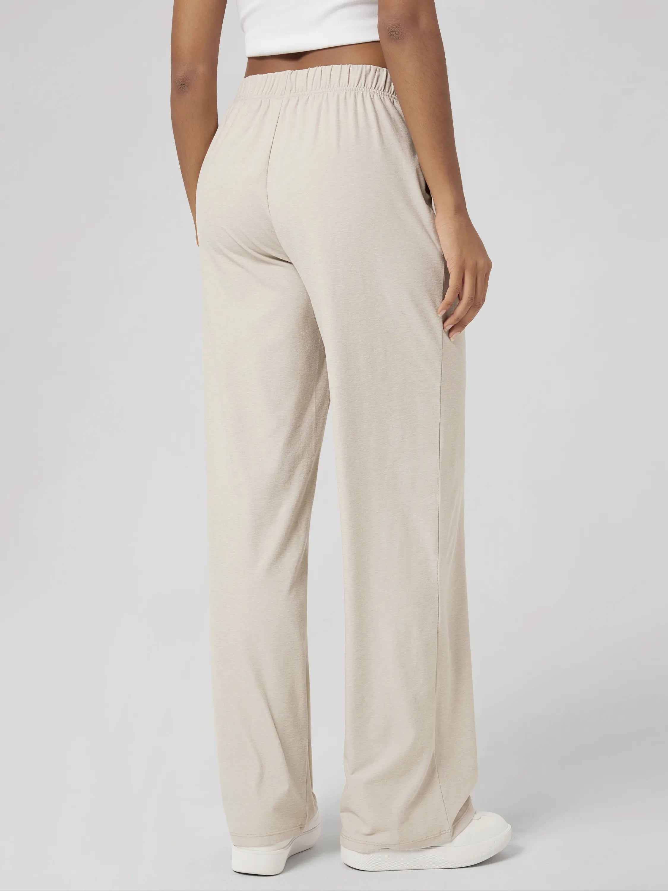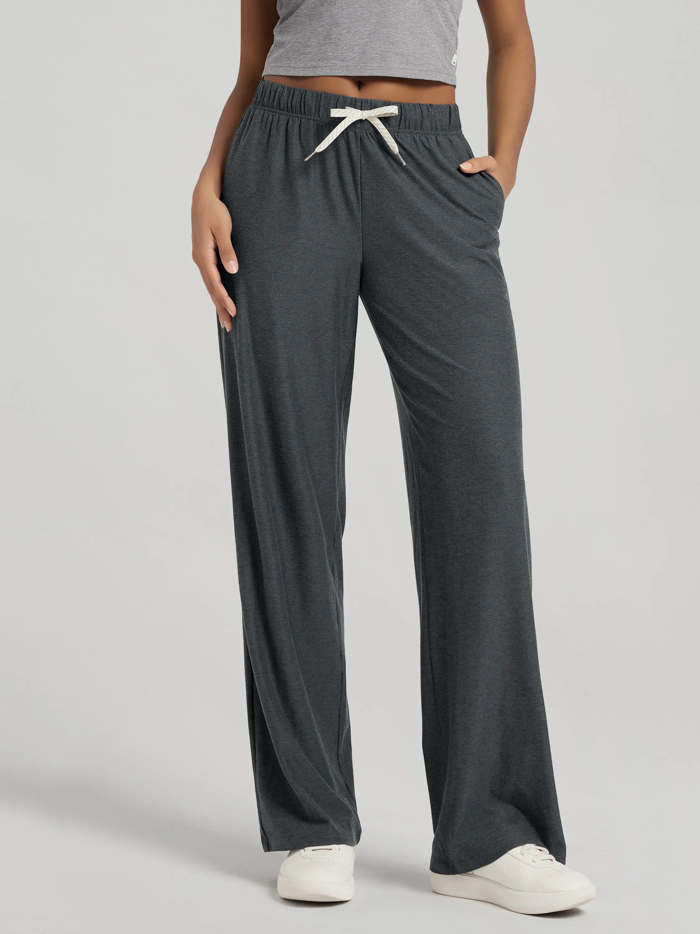 These 31-inch straight leg pants feature a high-rise cut that flatters all shapes. Designed for everyday ease, from running errands to long-haul flights, these are your go-to casual lounge pants with pockets.