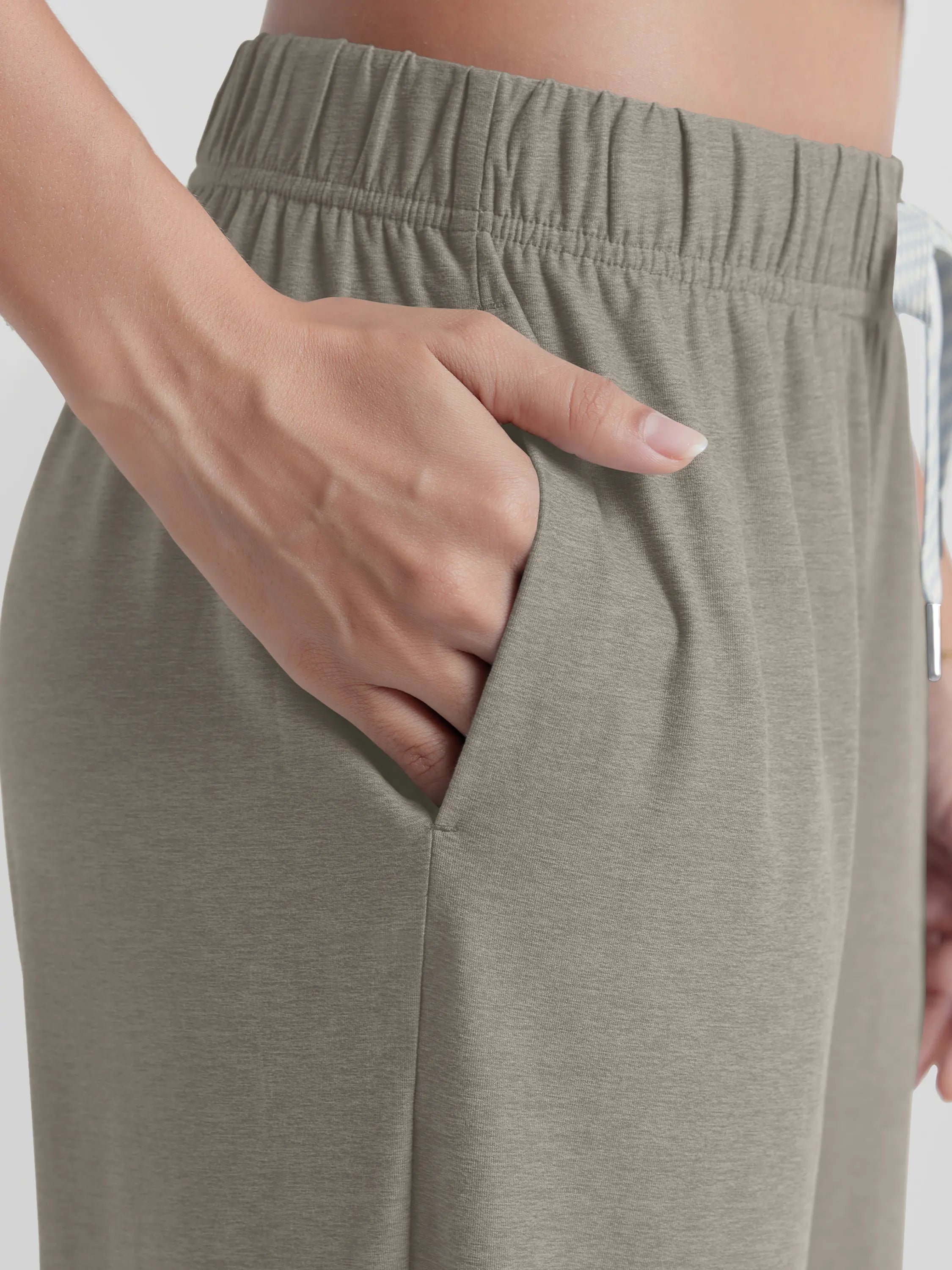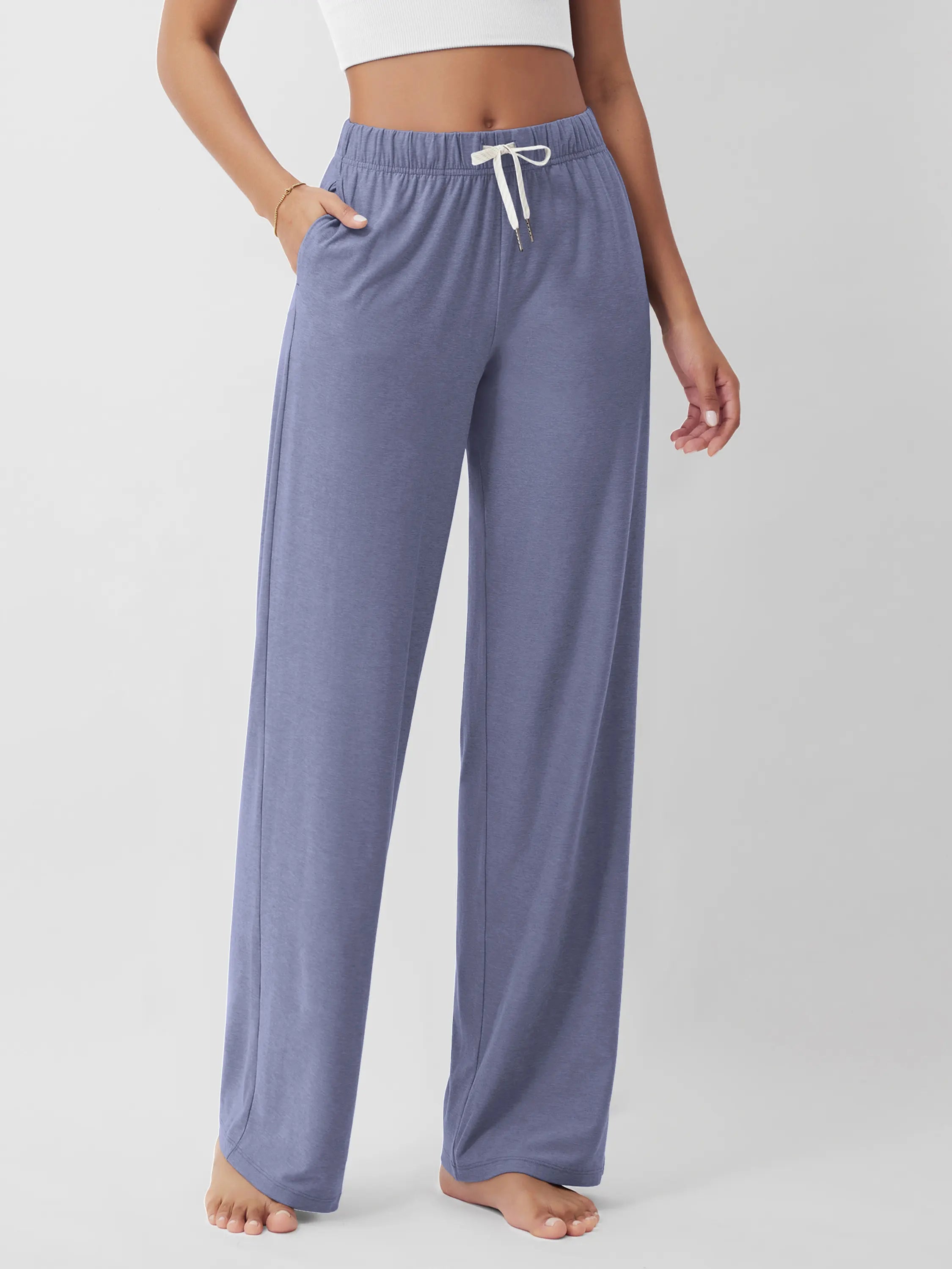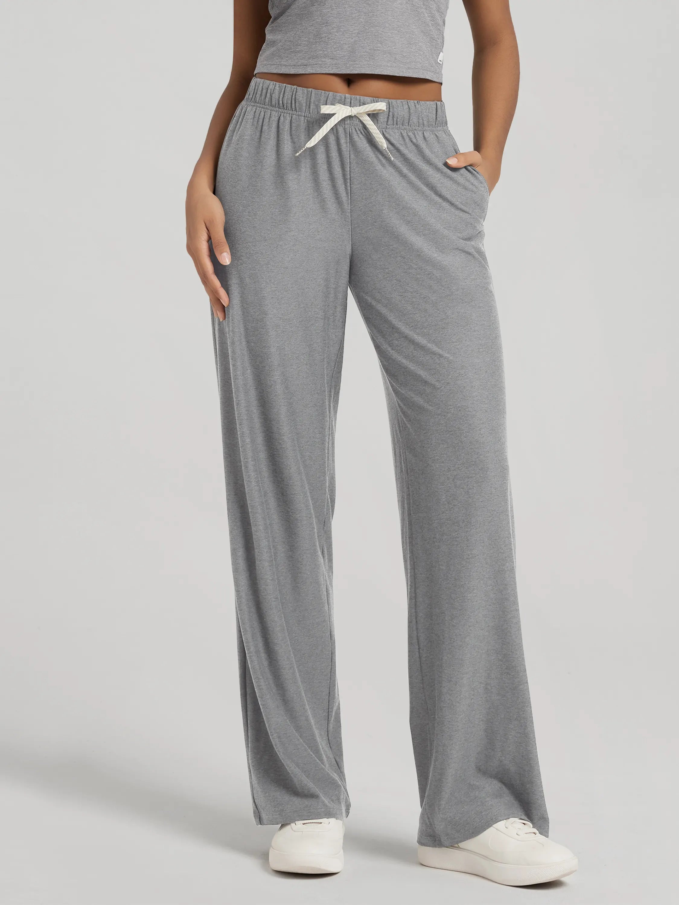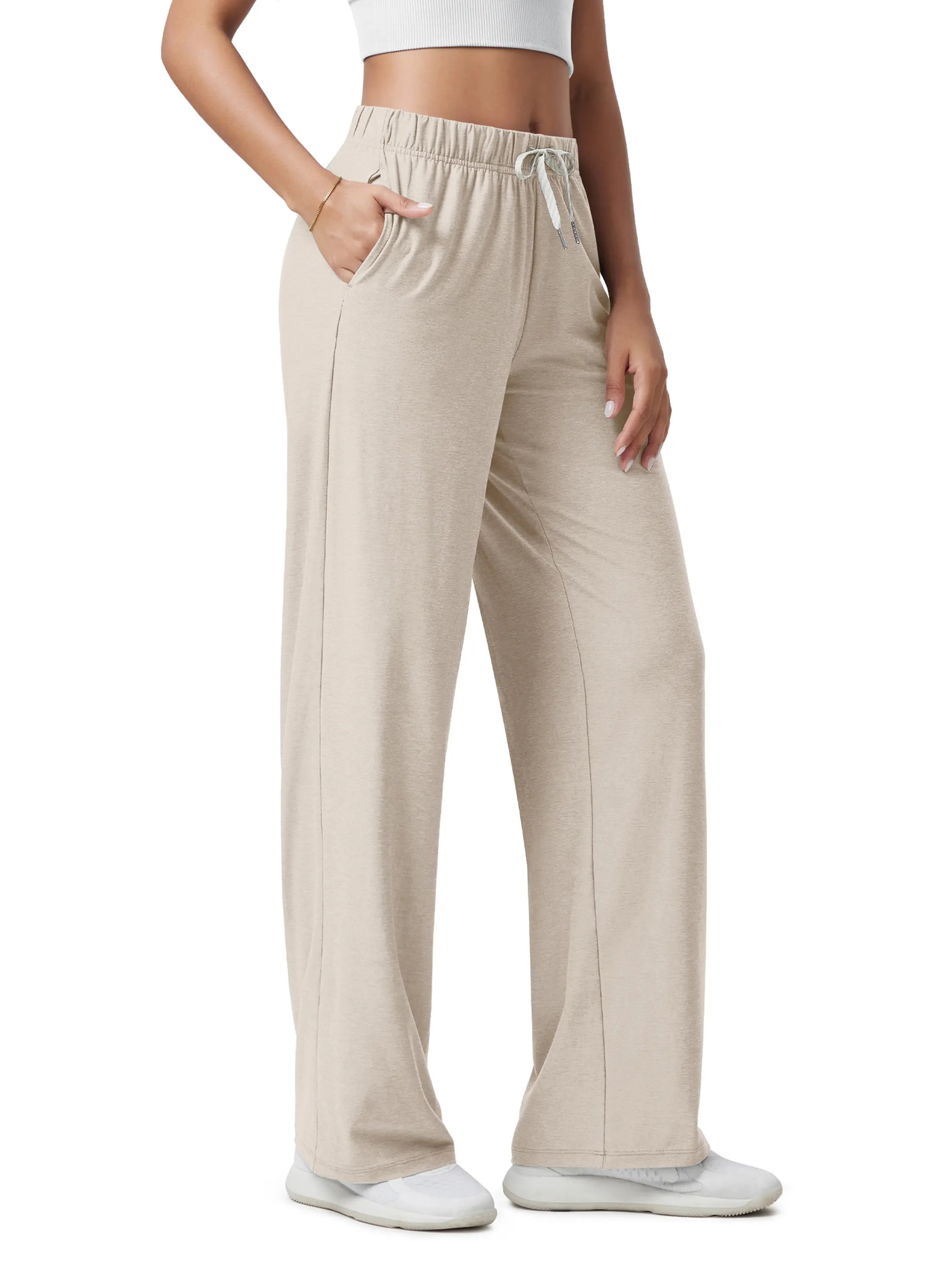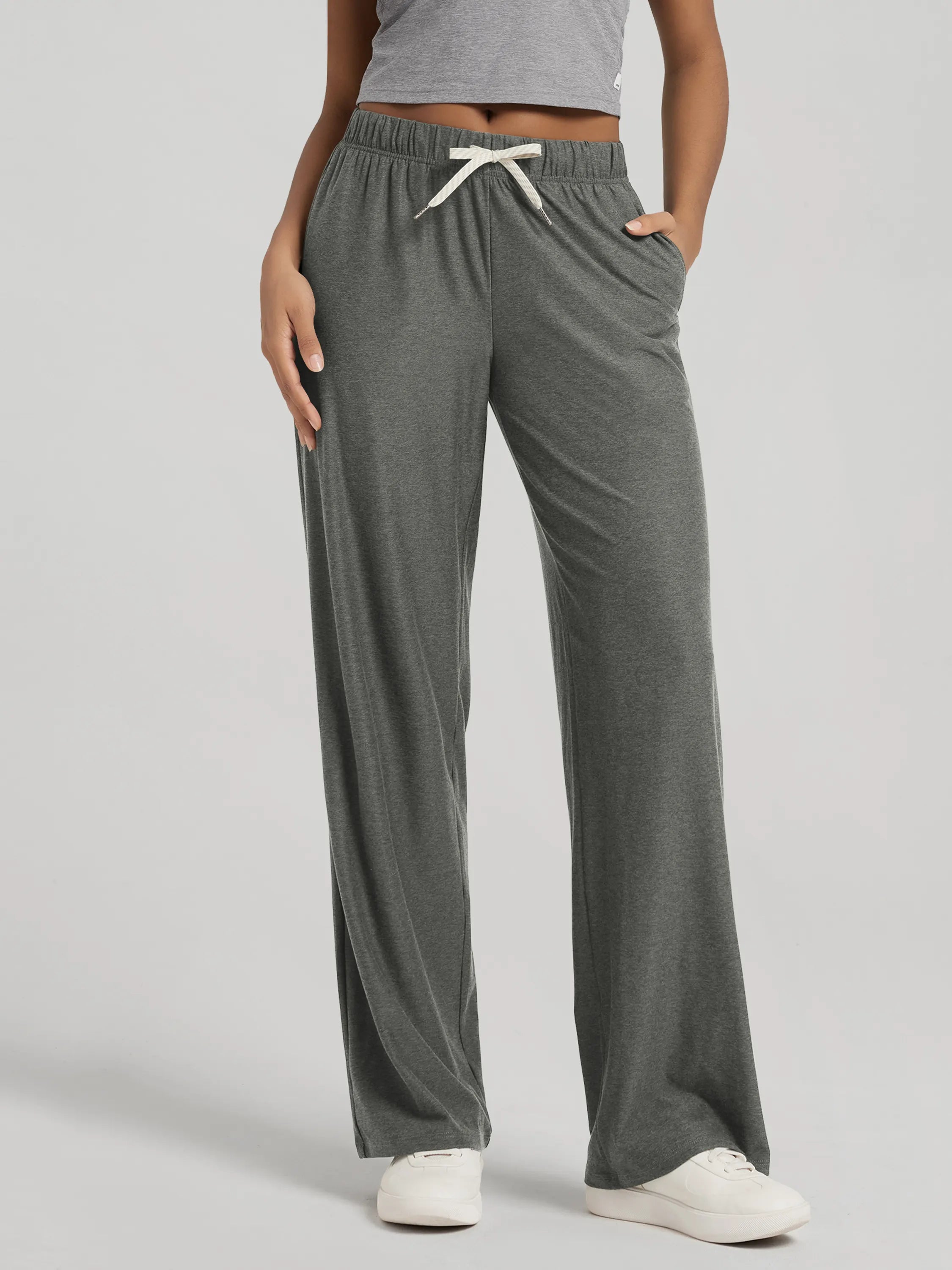 These 31-inch straight leg pants feature a high-rise cut that flatters all shapes. Designed for everyday ease, from running errands to long-haul flights, these are your go-to casual lounge pants with pockets.