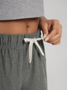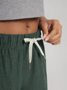 · CUSTOM-TIE WAISTBAND: A wide, mid-high rise waistband with an easy-tie drawcord ensures a no-dig, stay-in-place feel that moves with you—part of the relaxed-fit design.