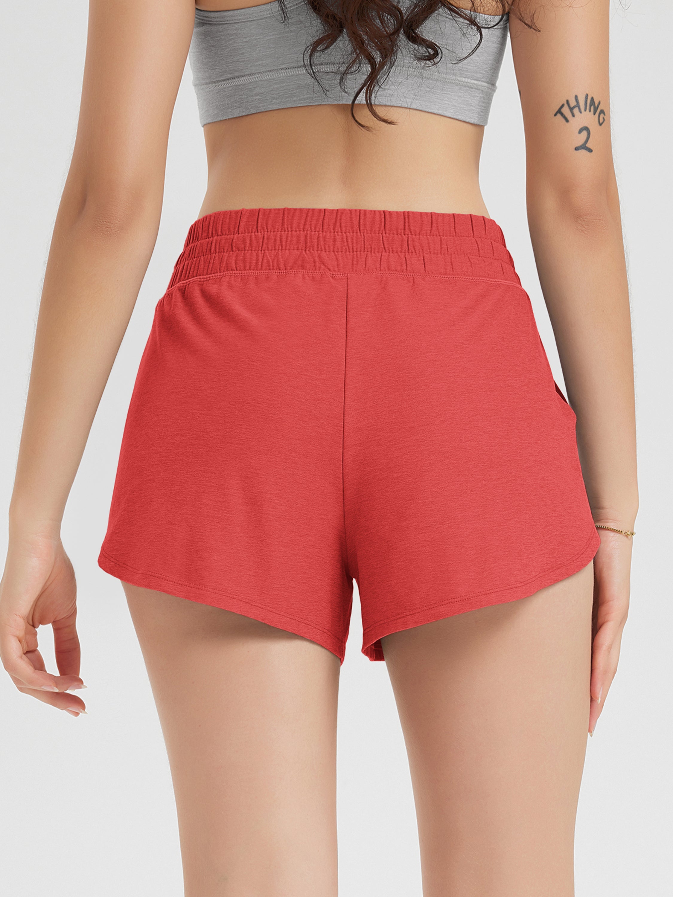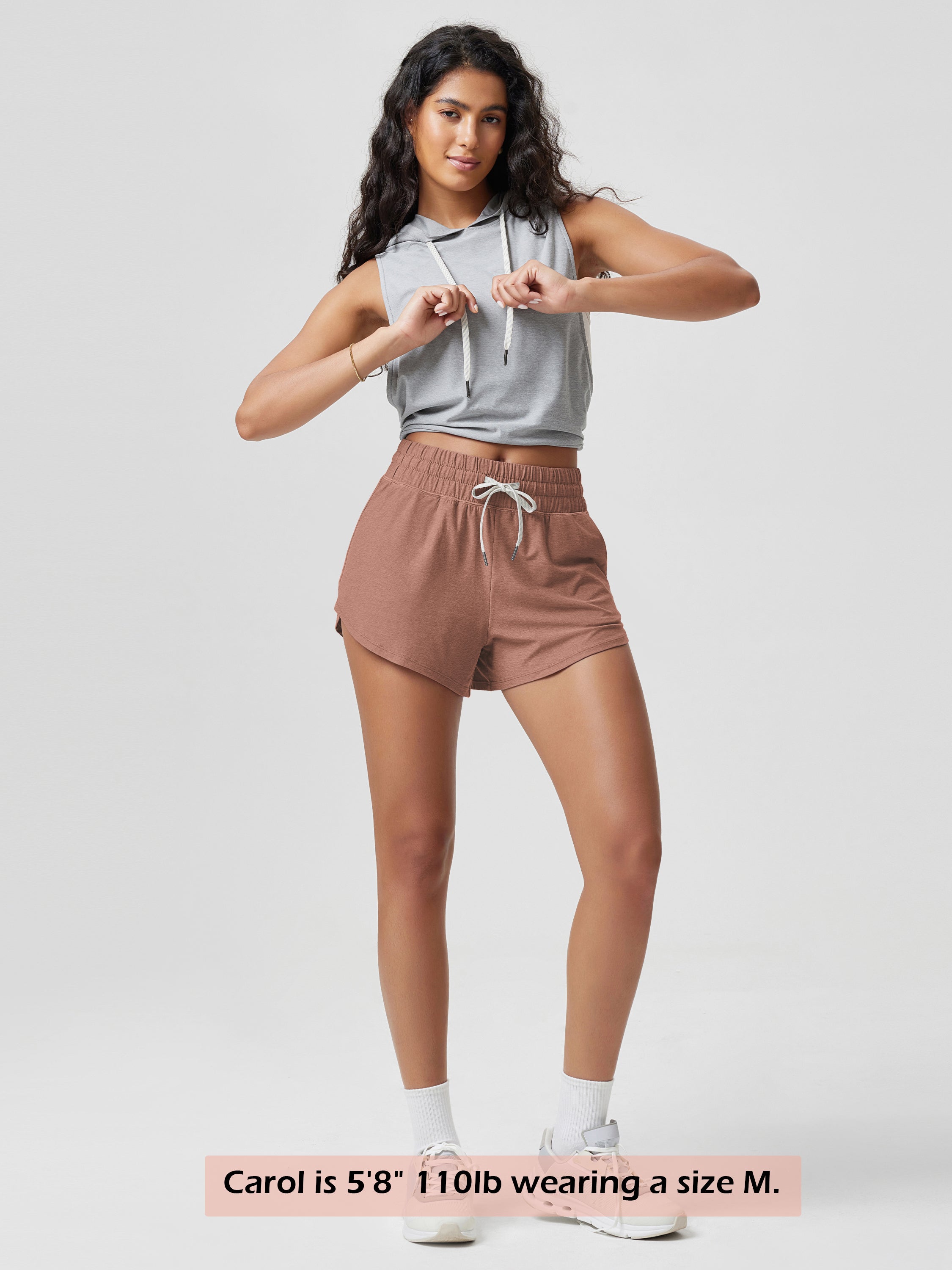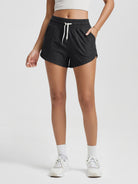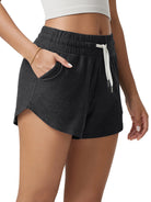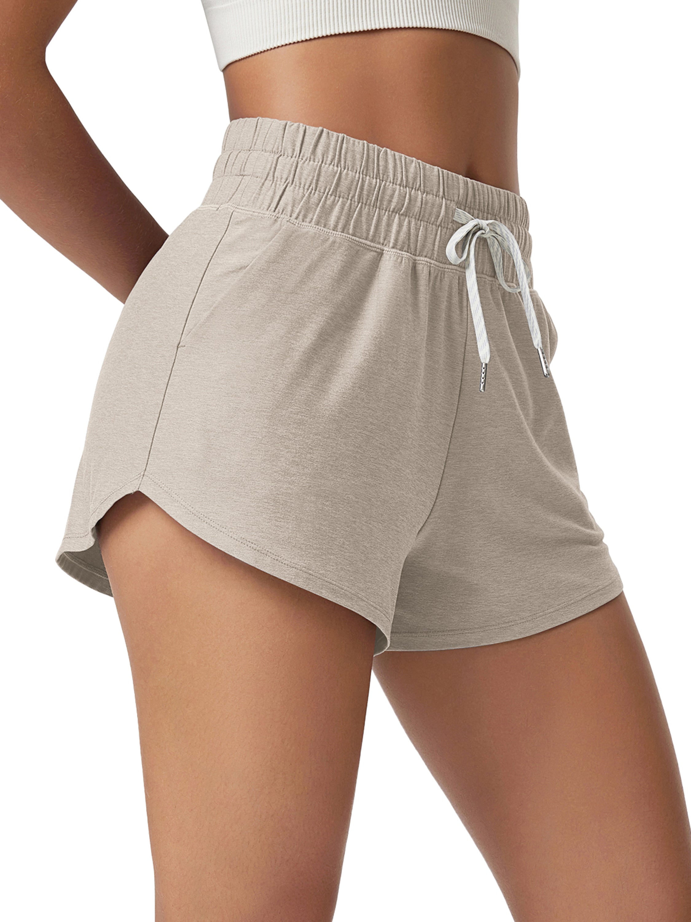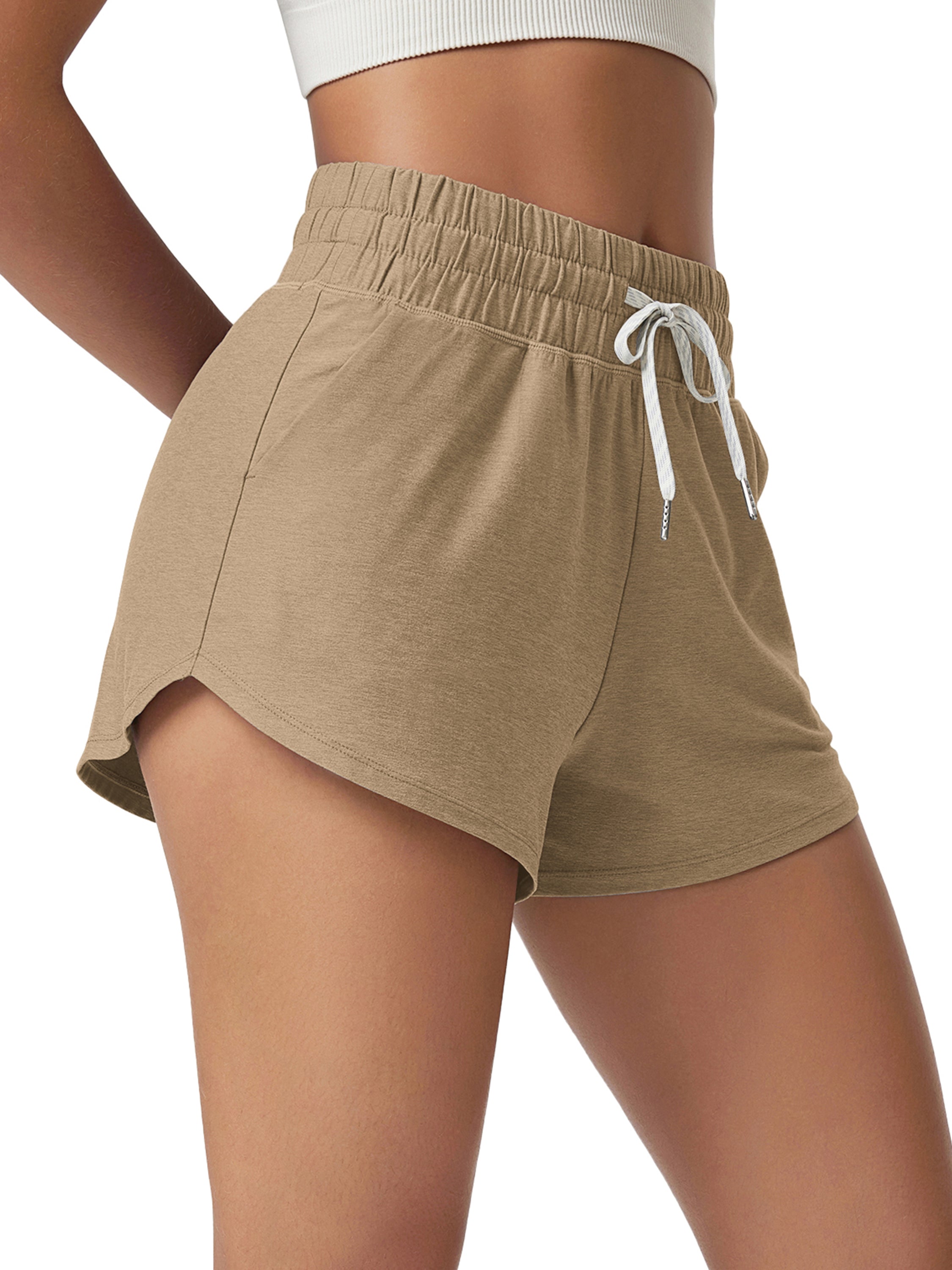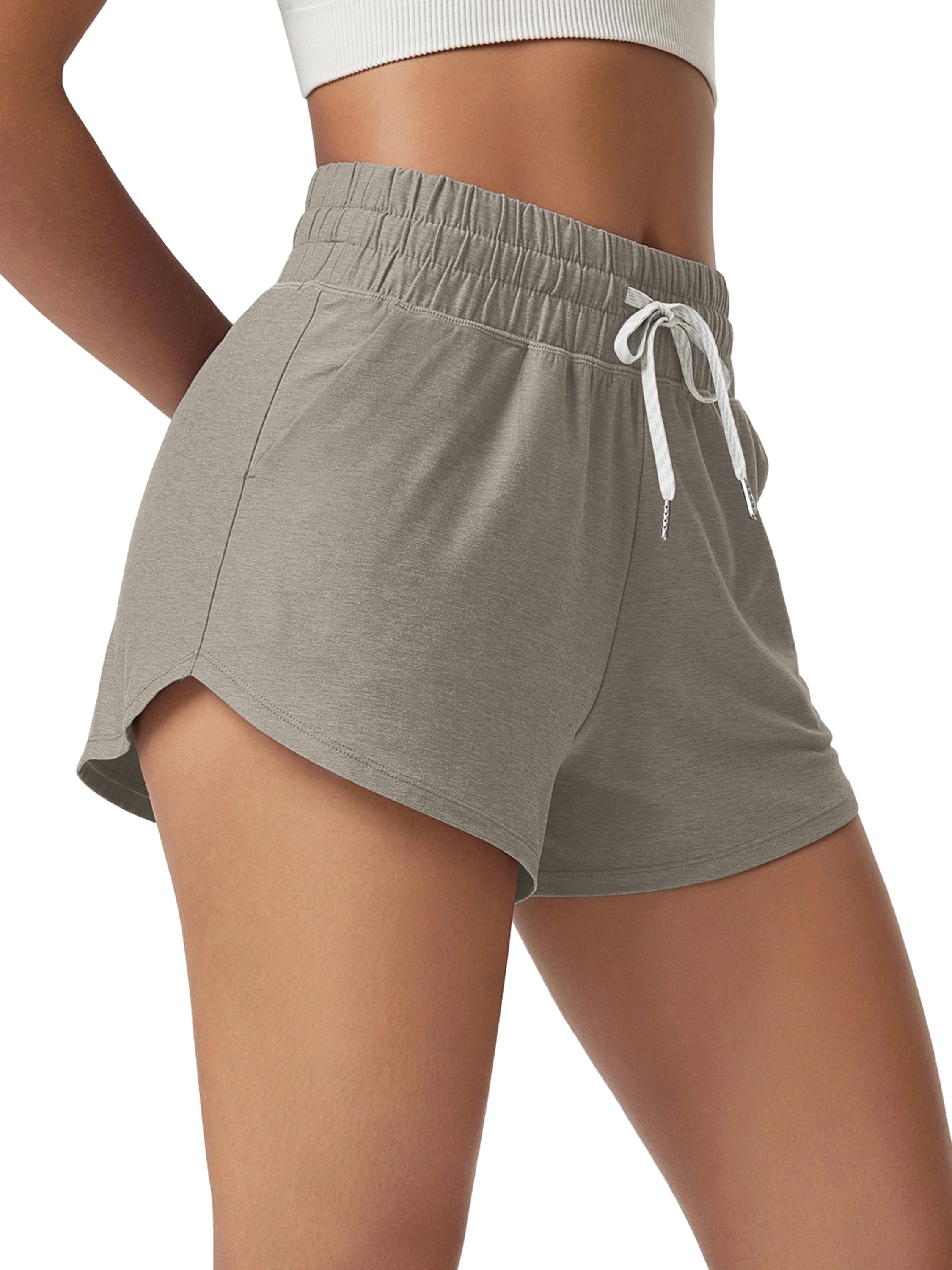 · V-CUT HEM & POCKETS: 3" inseam and curved V-cut leg openings for easy movement, two side pockets for convenience, and a mid-rise elastic waistband with adjustable drawcord for a secure fit.