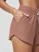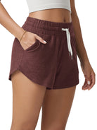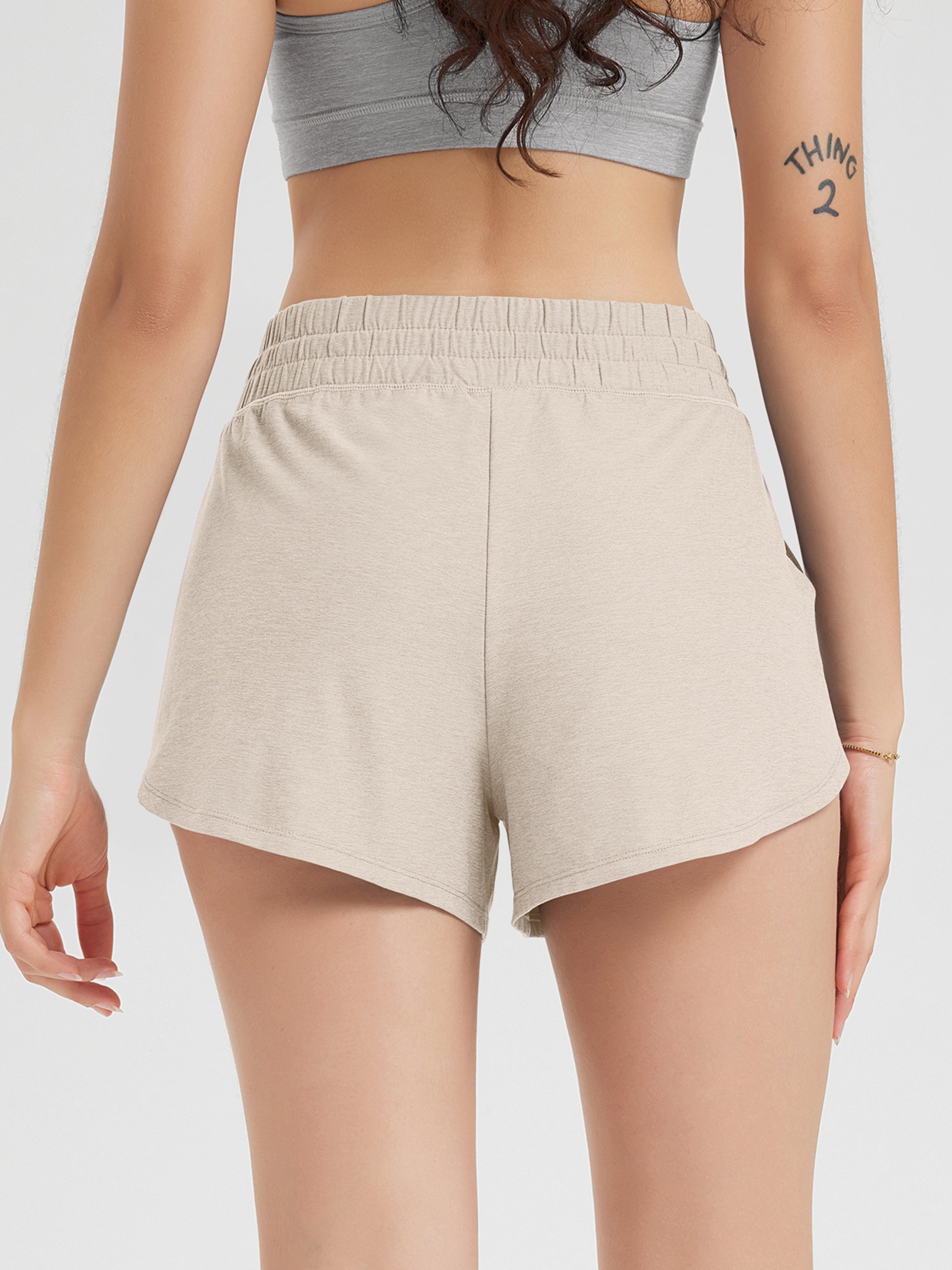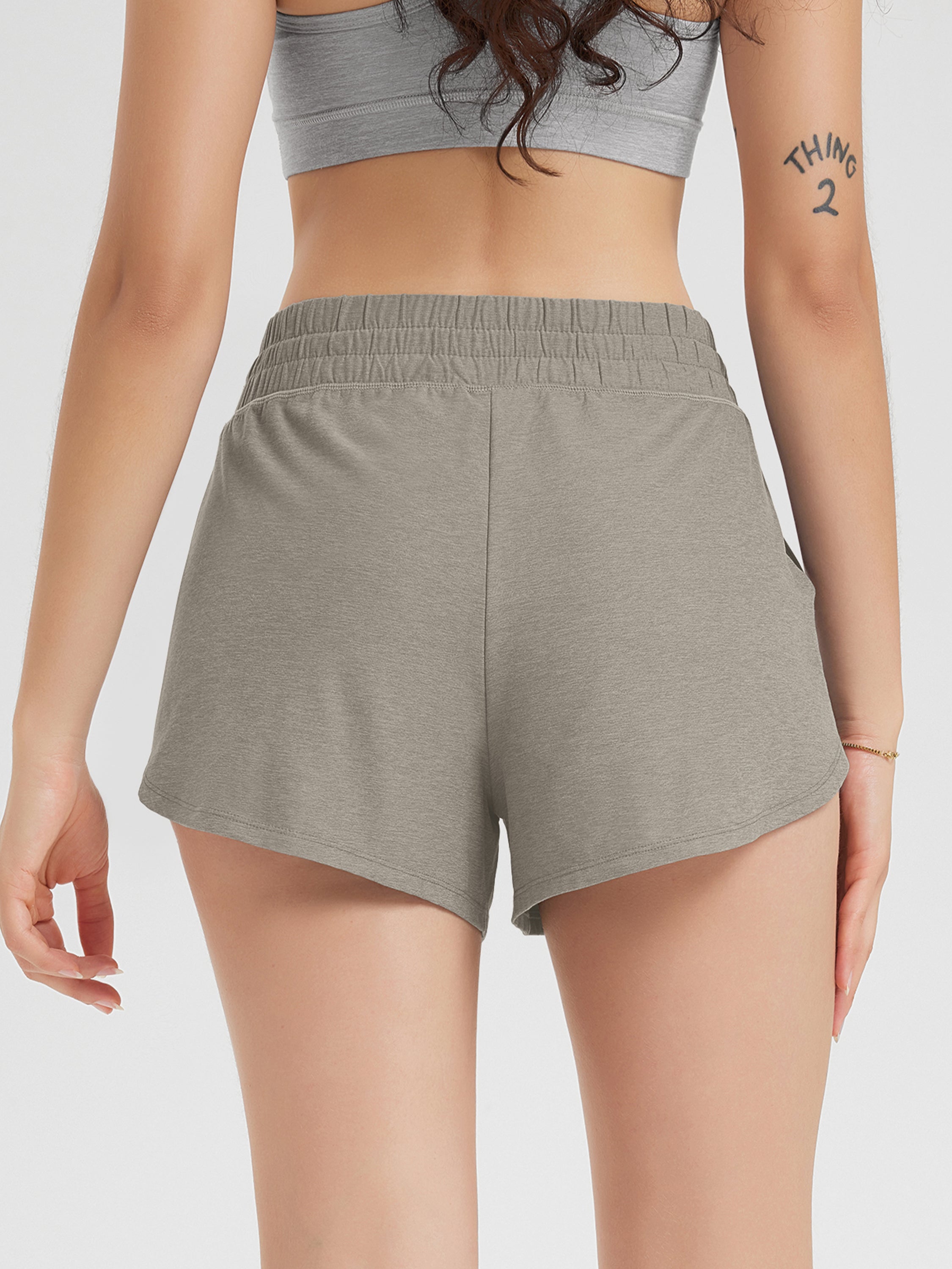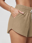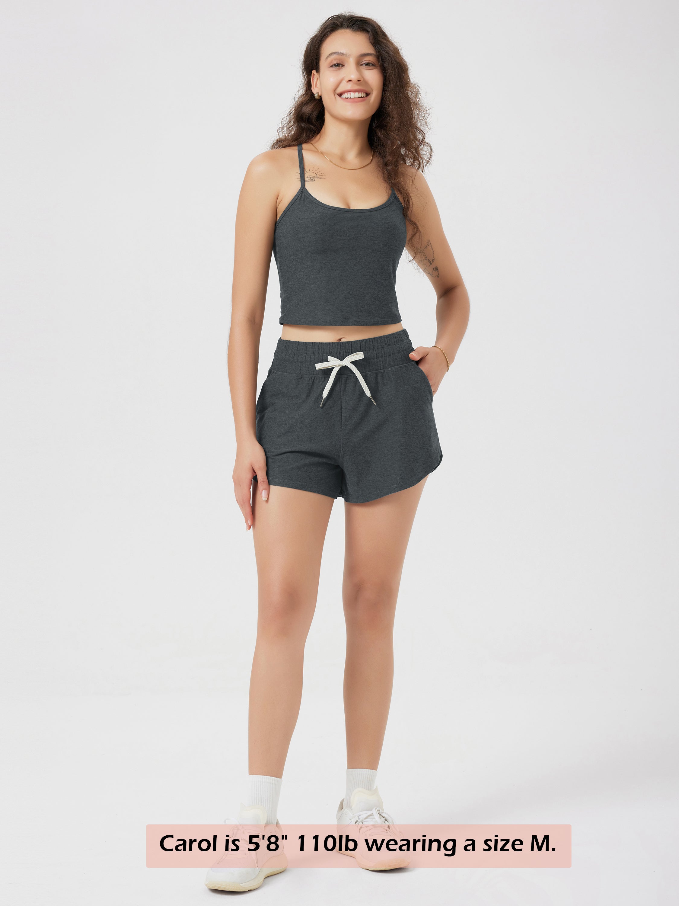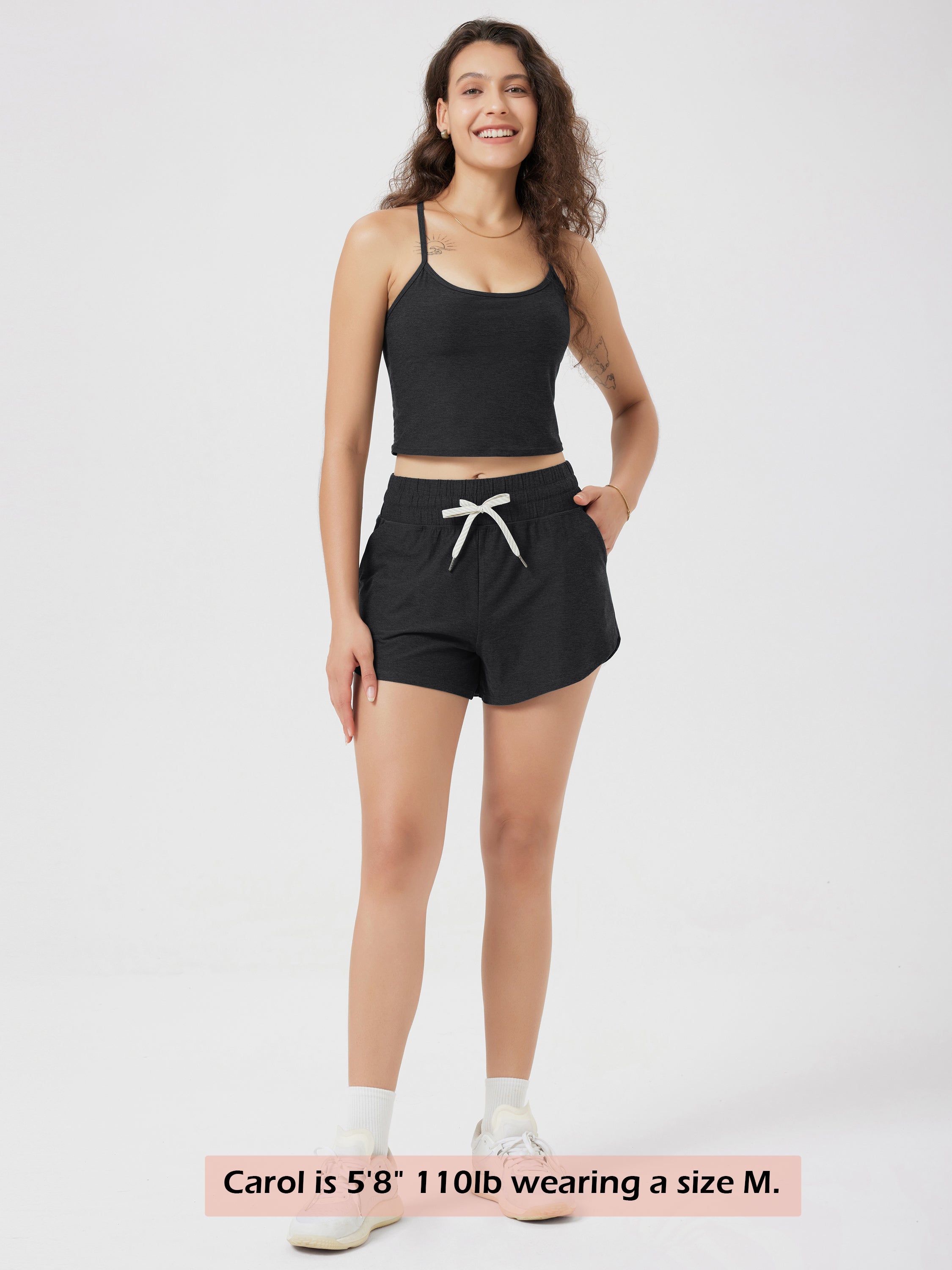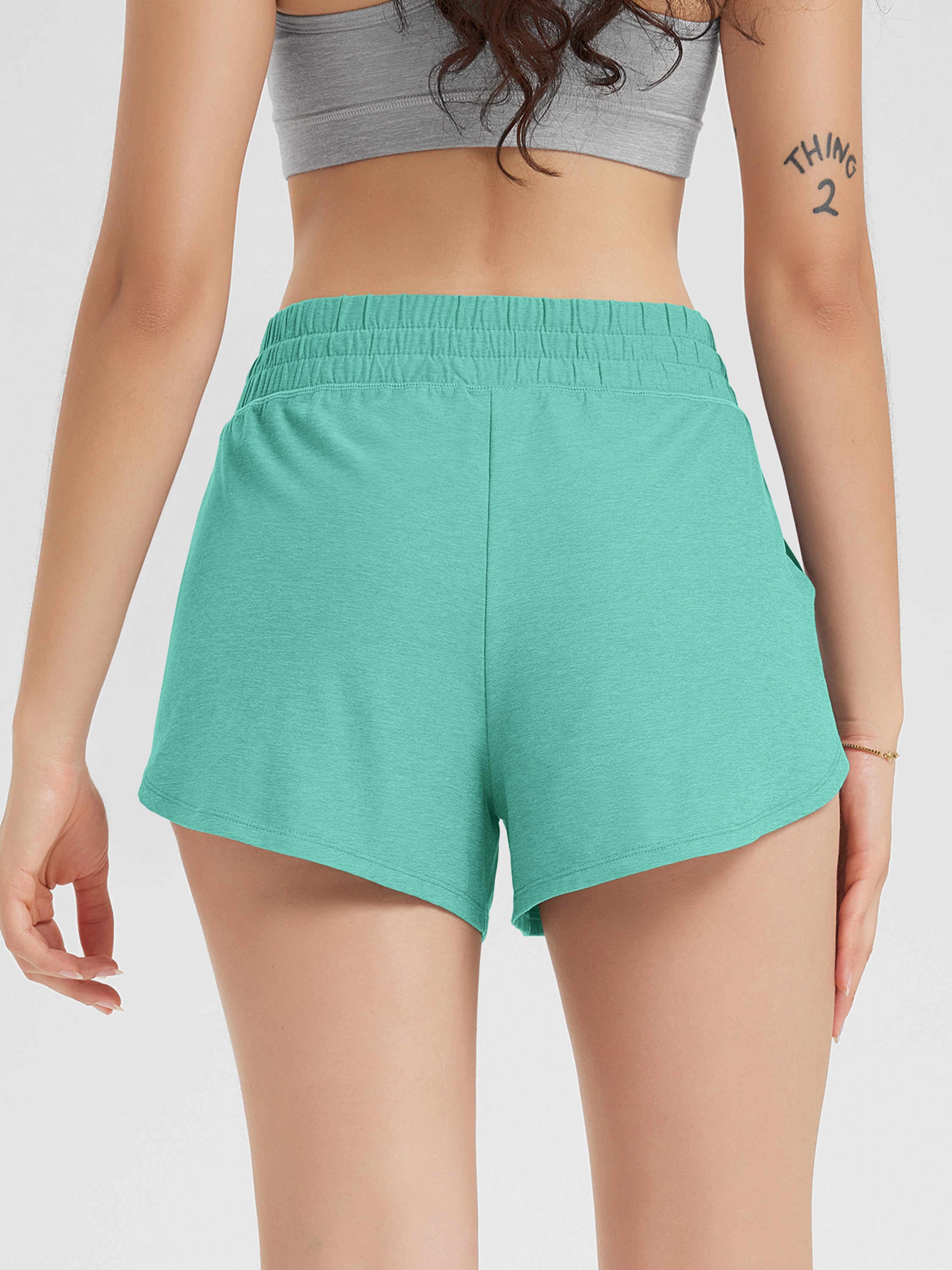 · V-CUT HEM & POCKETS: 3" inseam and curved V-cut leg openings for easy movement, two side pockets for convenience, and a mid-rise elastic waistband with adjustable drawcord for a secure fit.