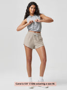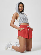 Featuring a mid-rise waistband and adjustable drawcord, these shorts provide a no-slip fit that stays in place. We recommend sizing up for a more relaxed fit.