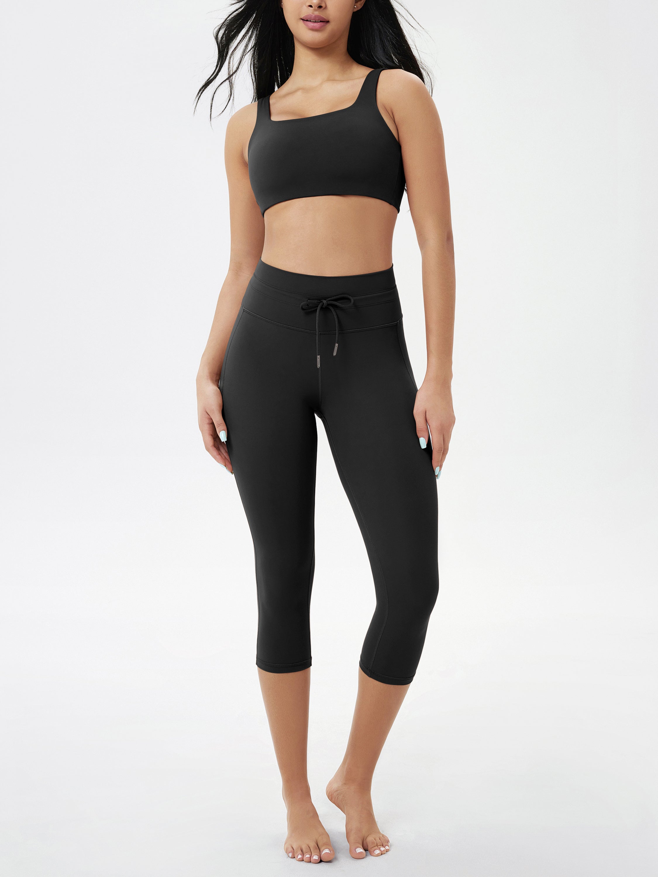 ODODOS ODLIFT 19" Inseam High Waist Drawstring Tie Capris Leggings