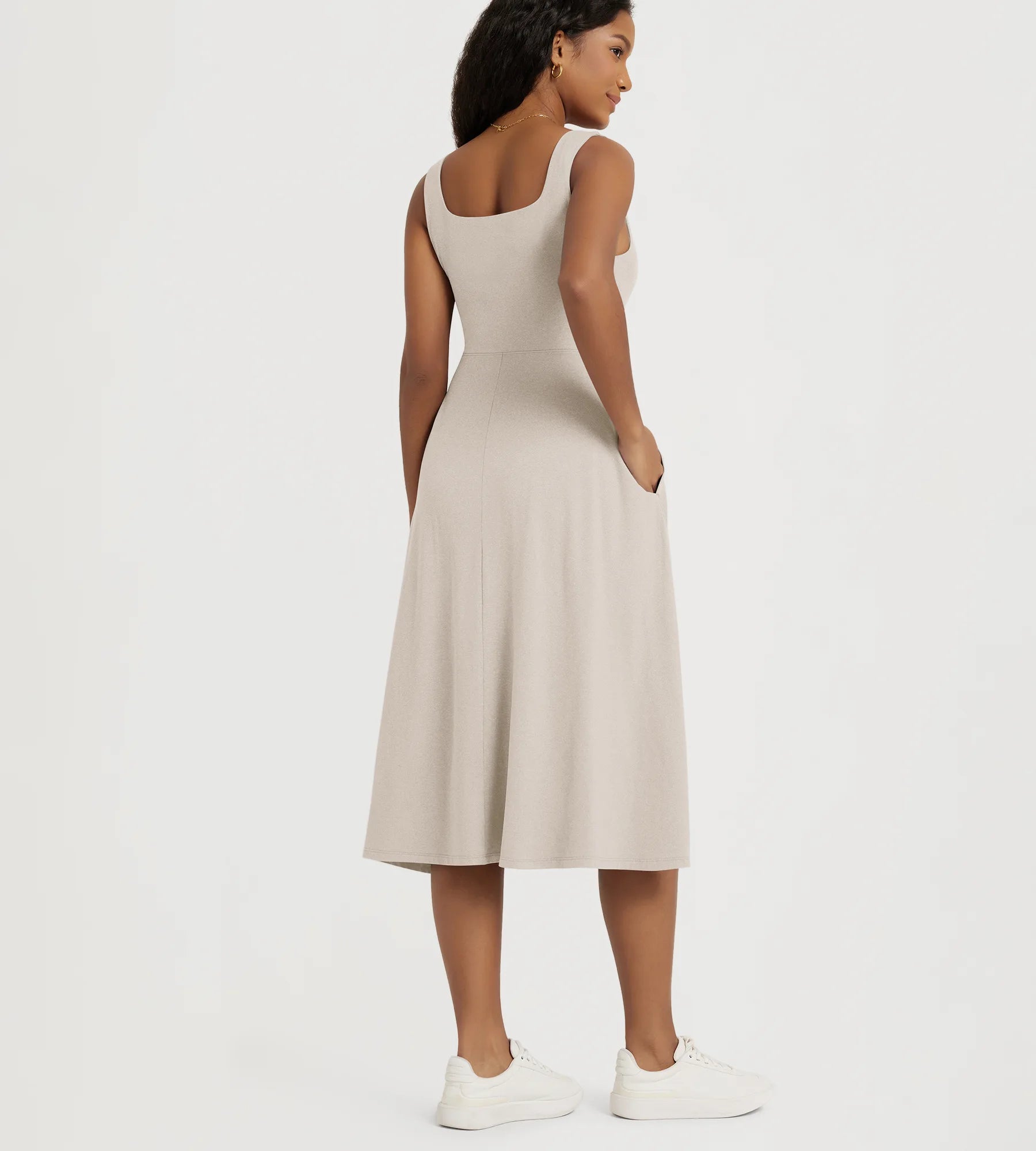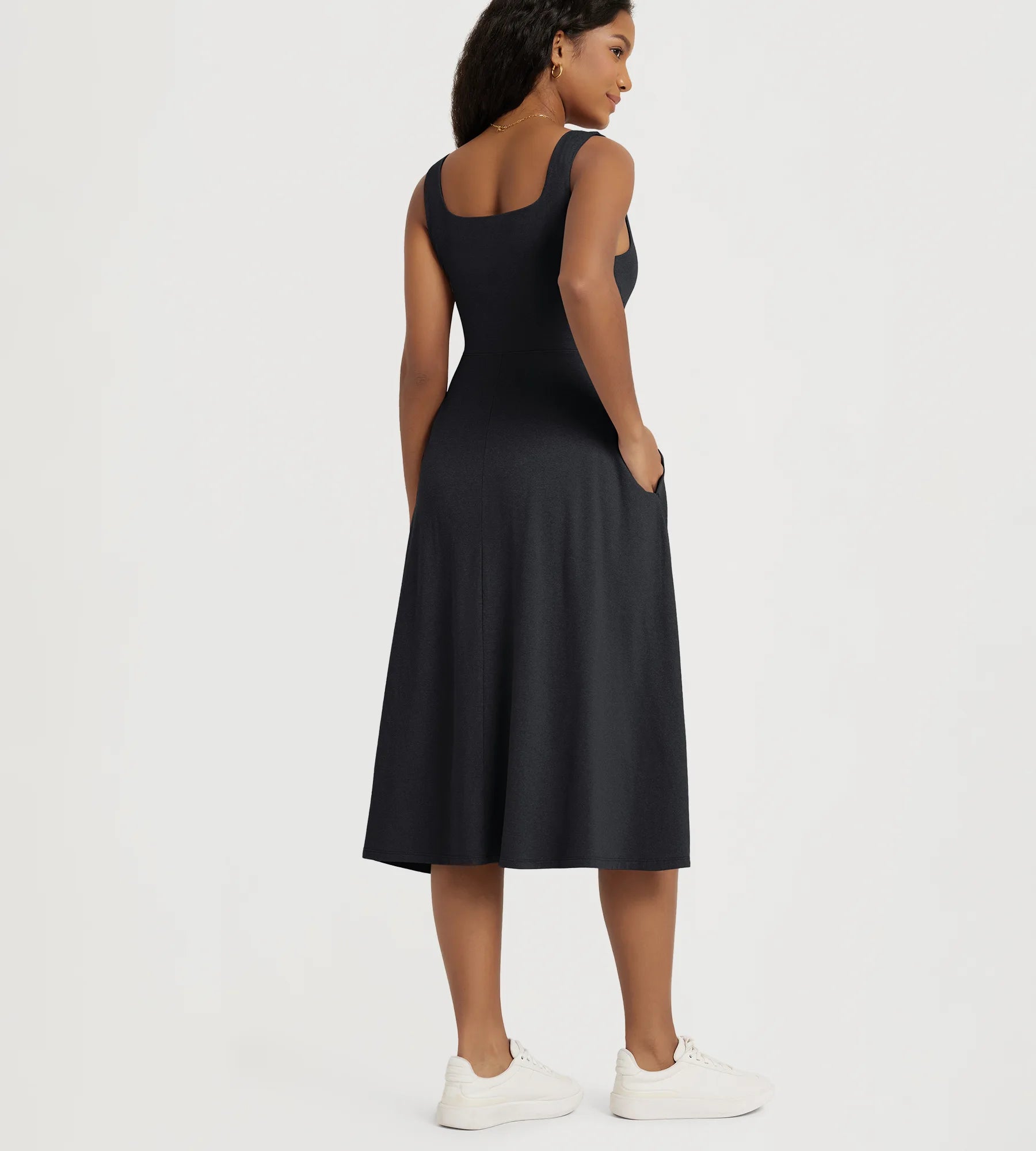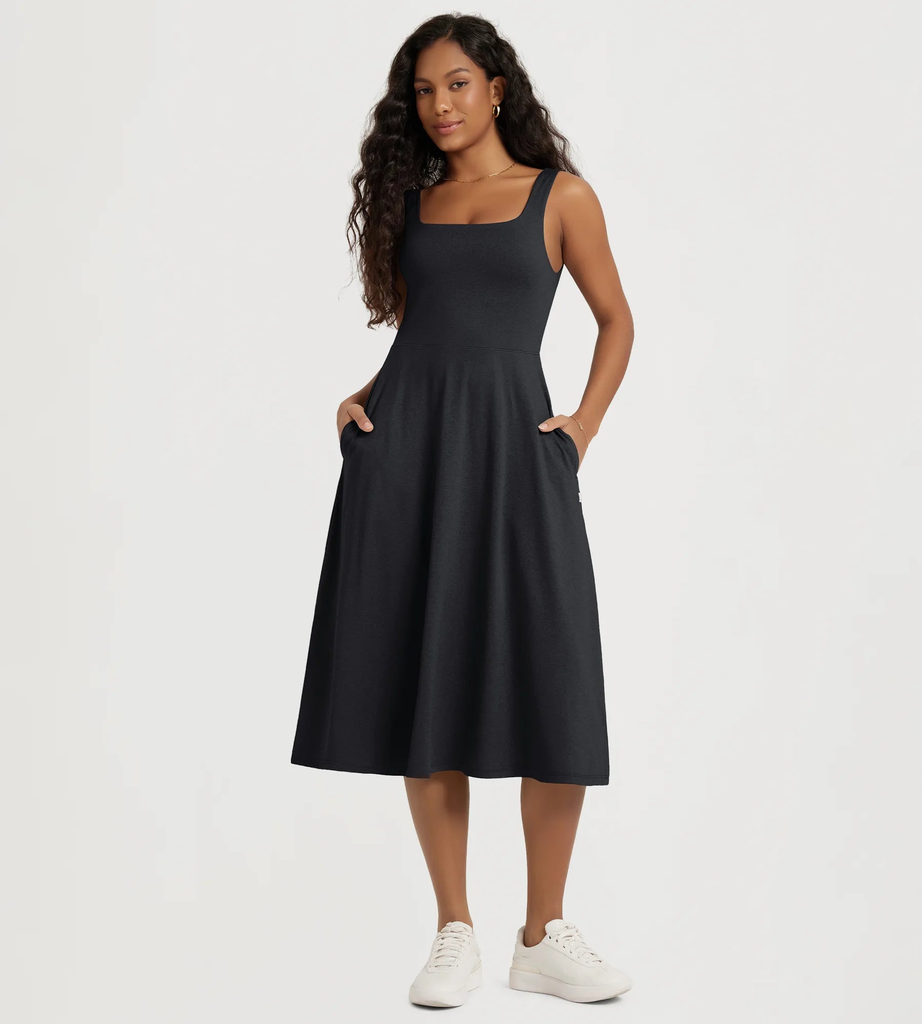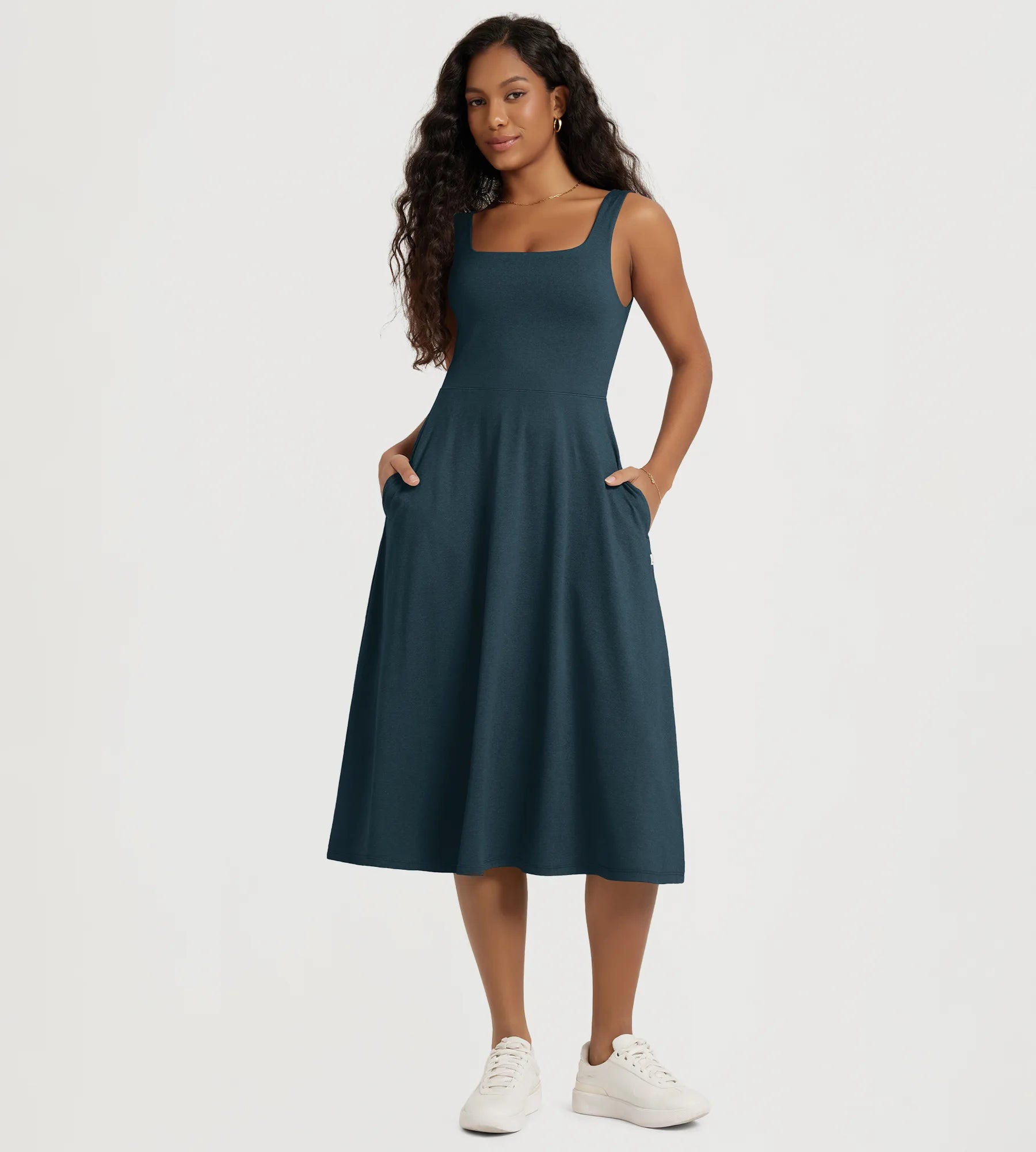 Stratum Square Neck Midi Dress with Pockets