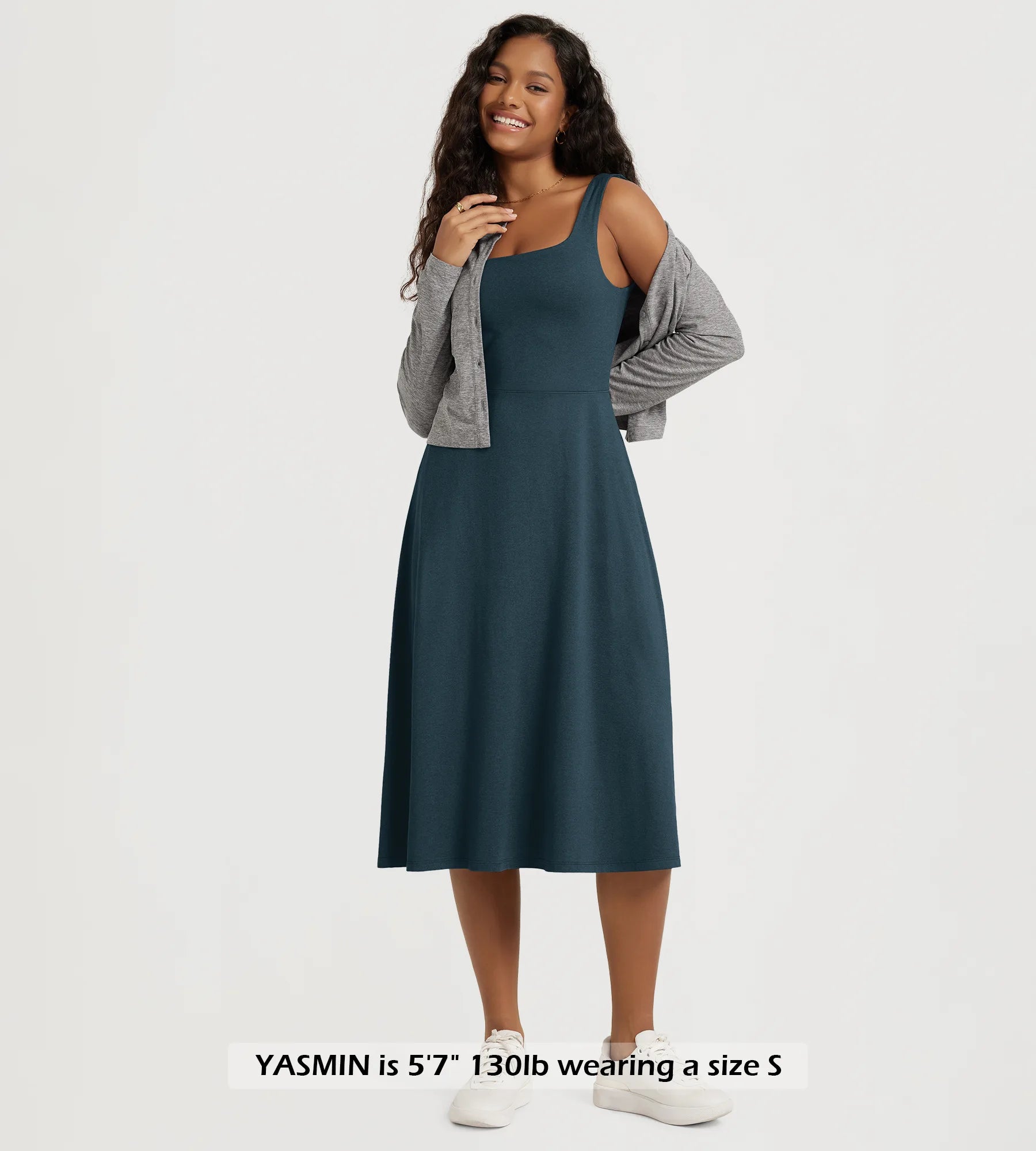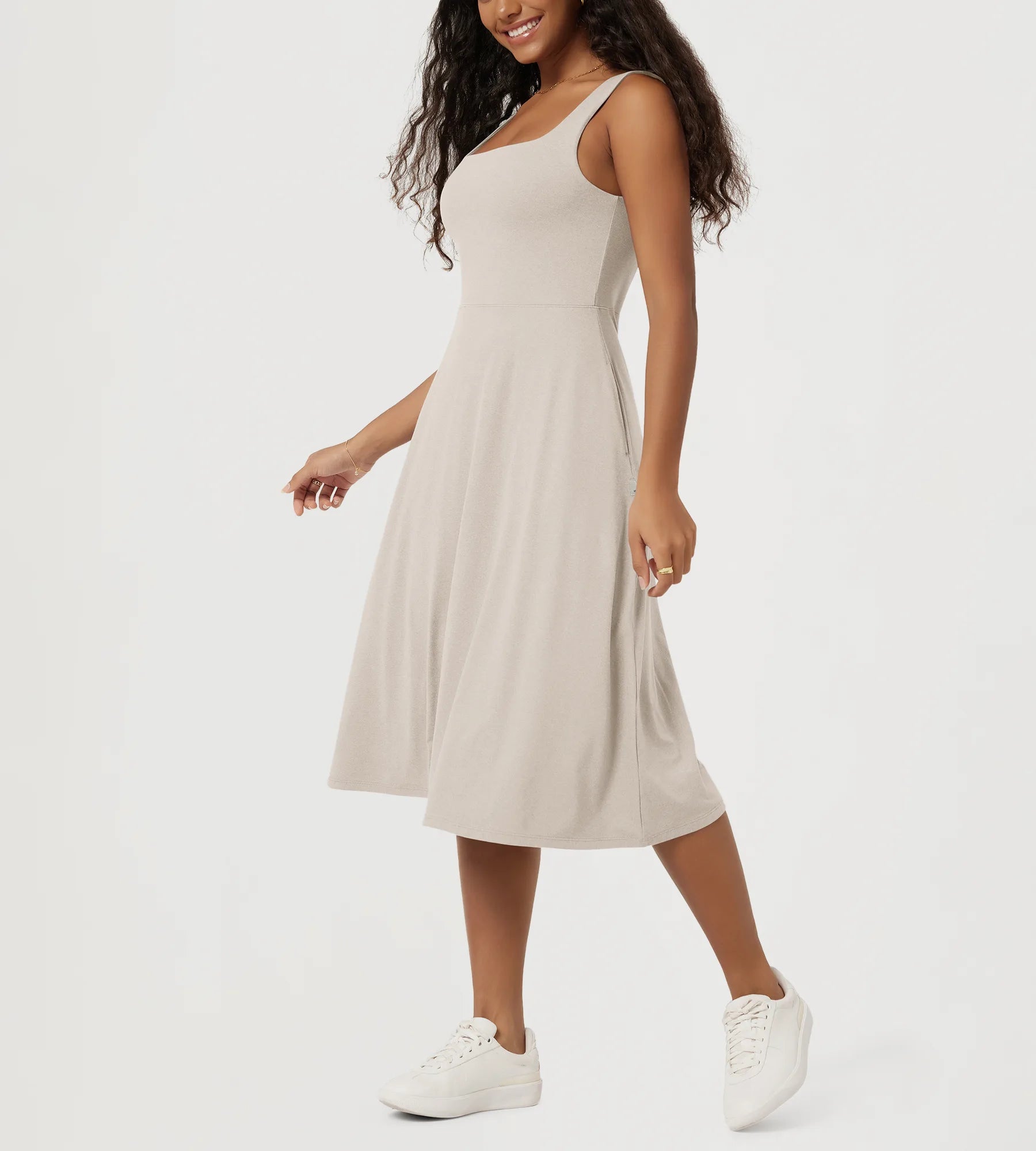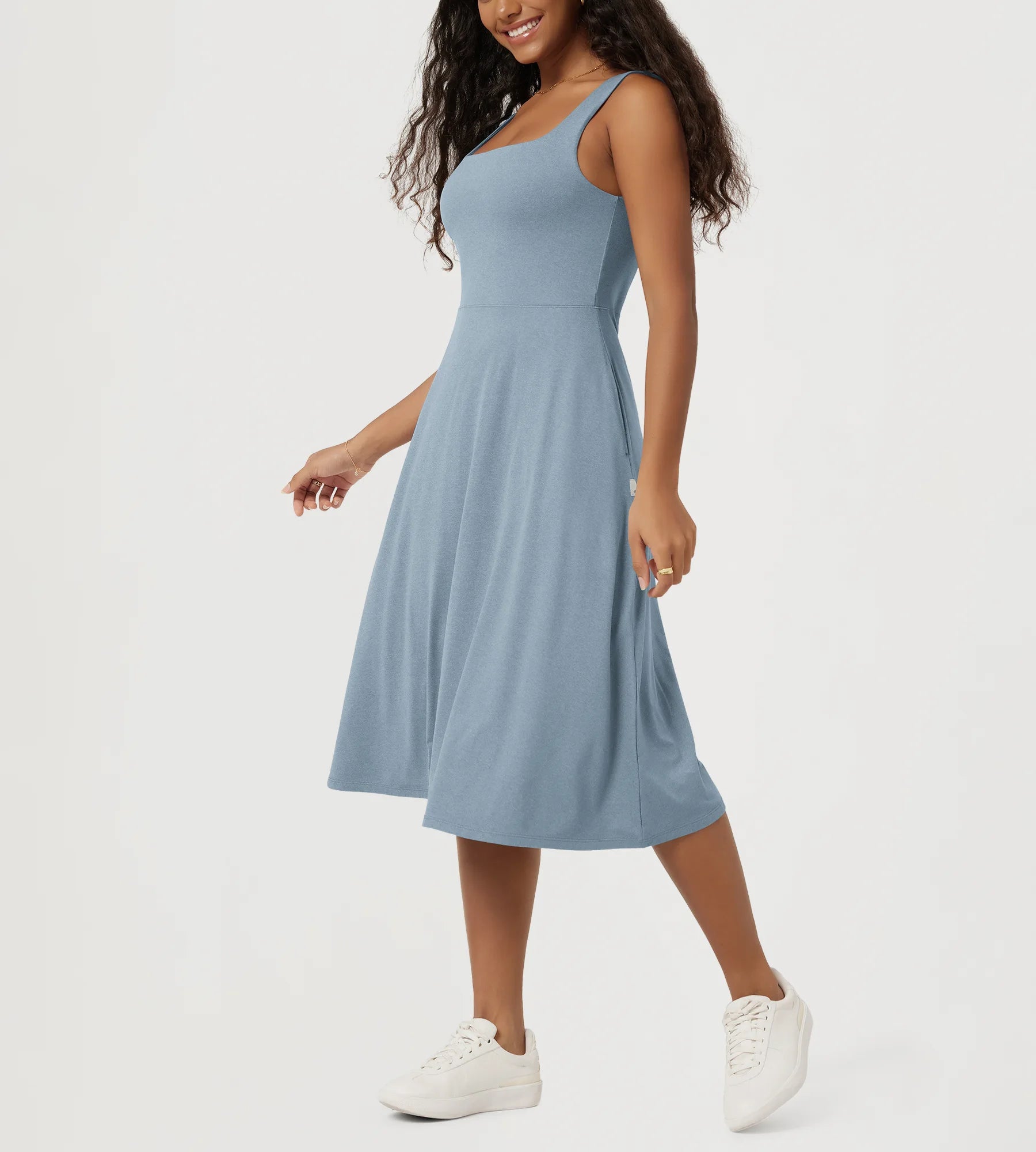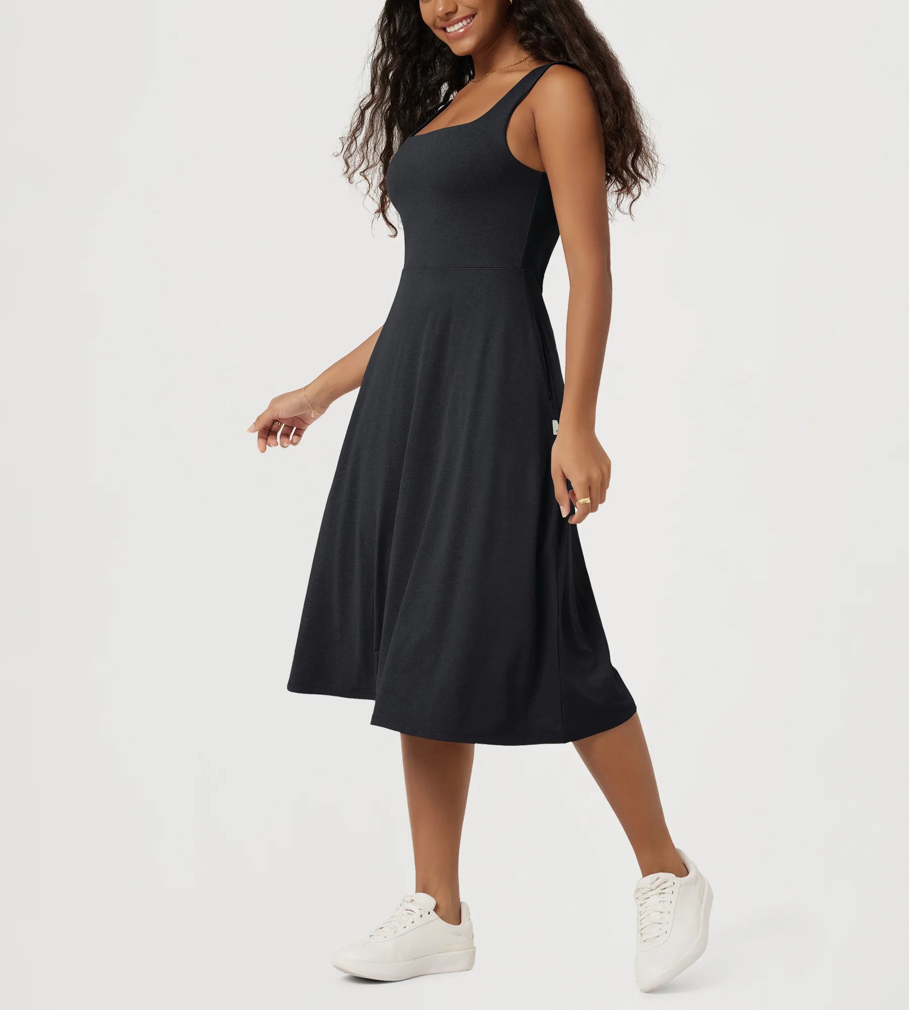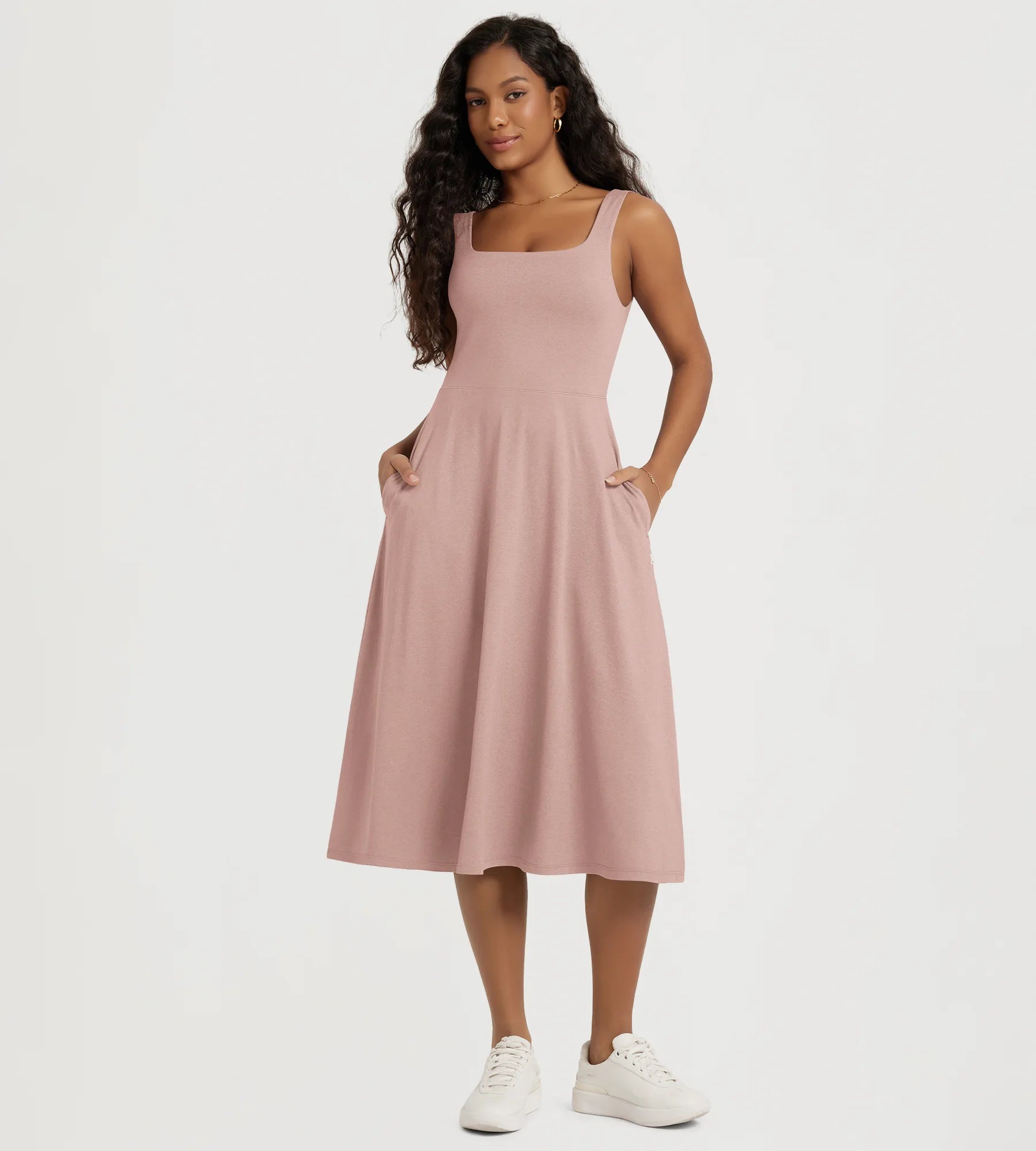 Stratum Square Neck Midi Dress with Pockets