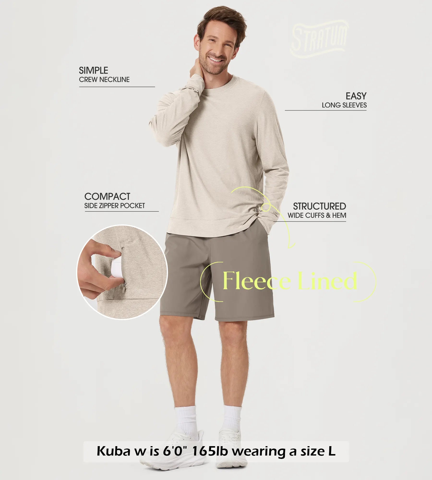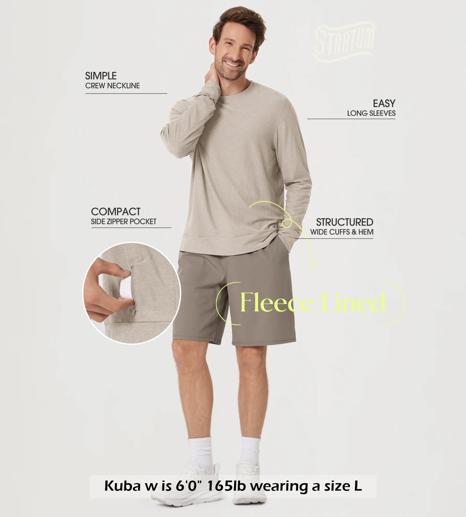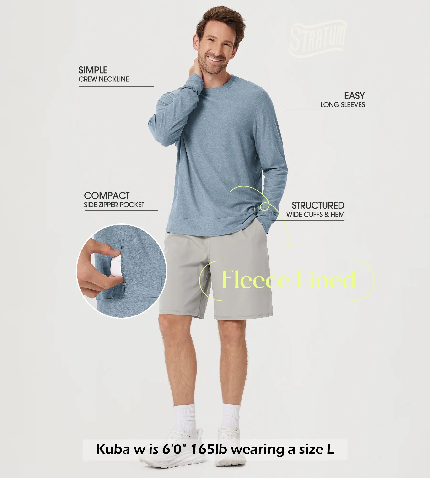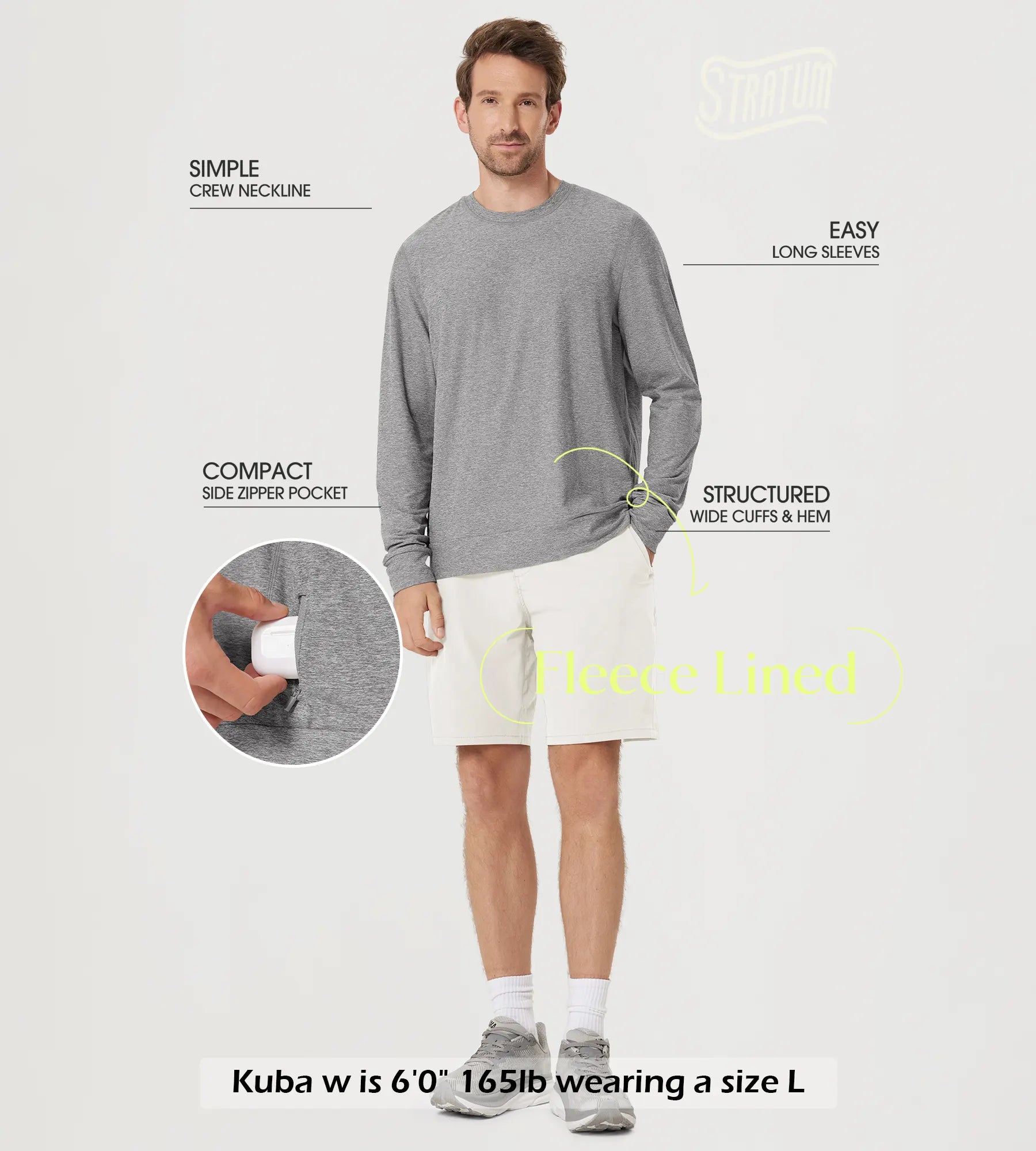 Stratum Men's Crewneck Shirt with Side Zip Pocket