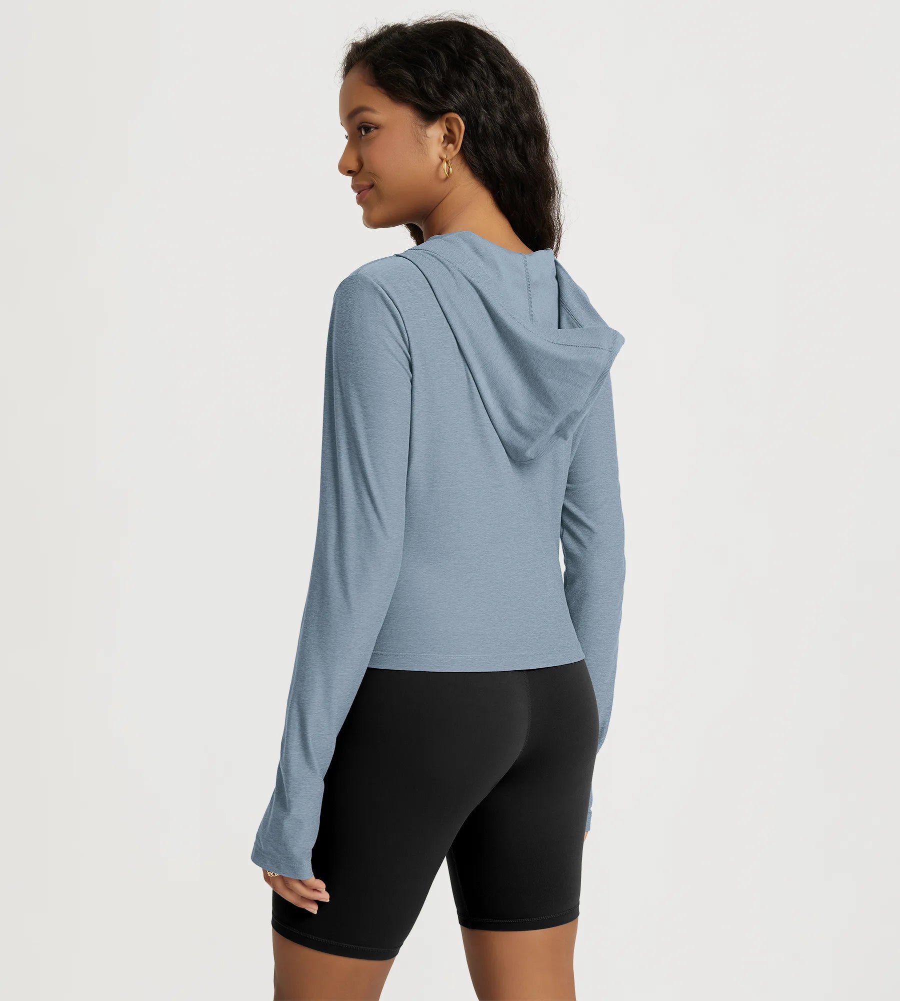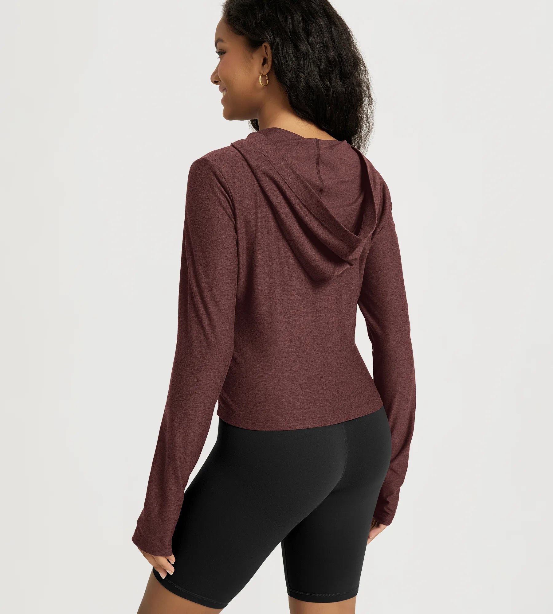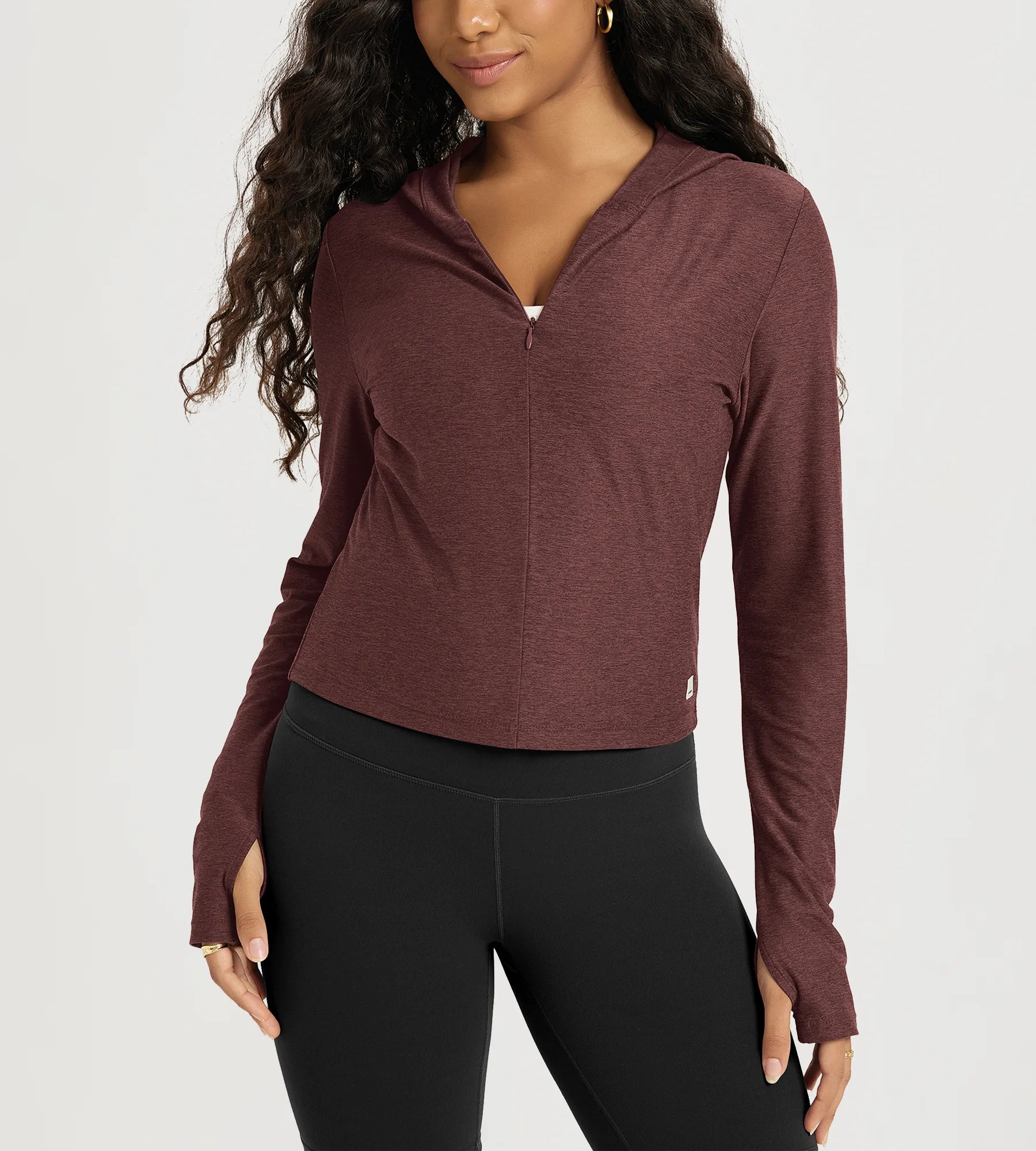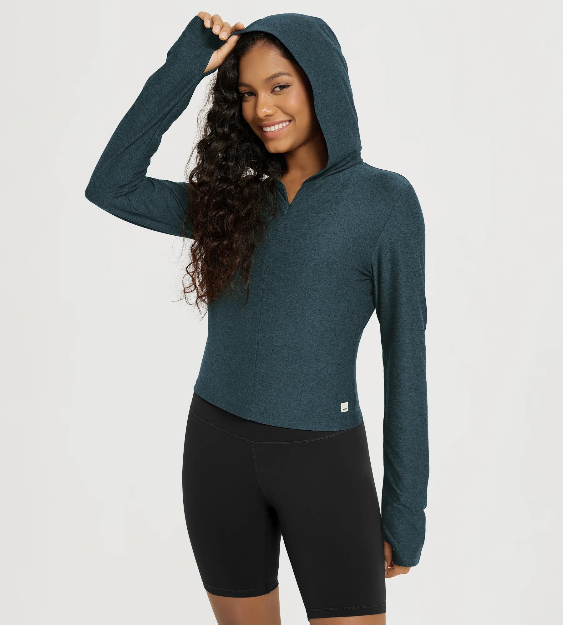 Slim Half-Zip Crop Hoodie with Thumb Hole