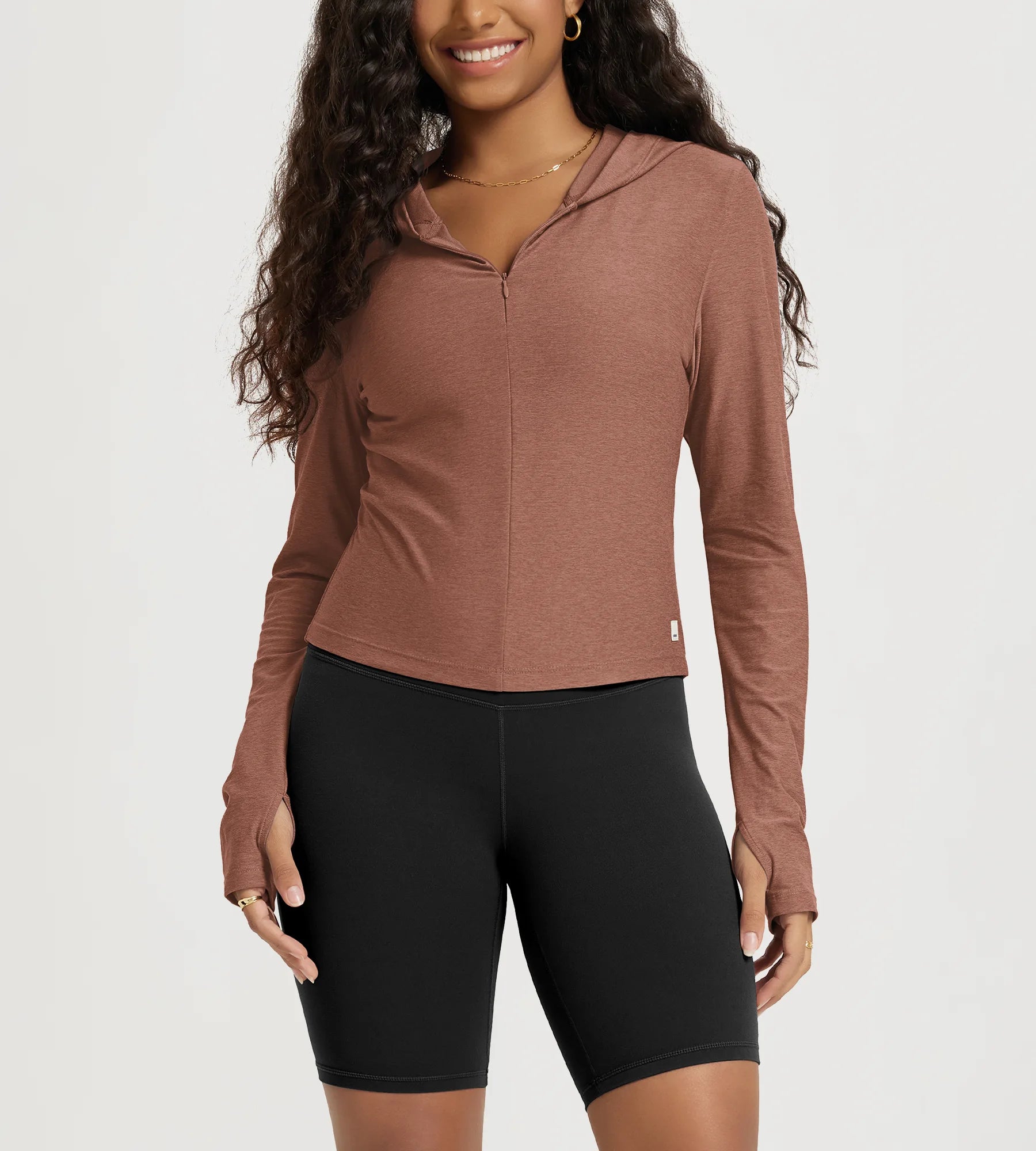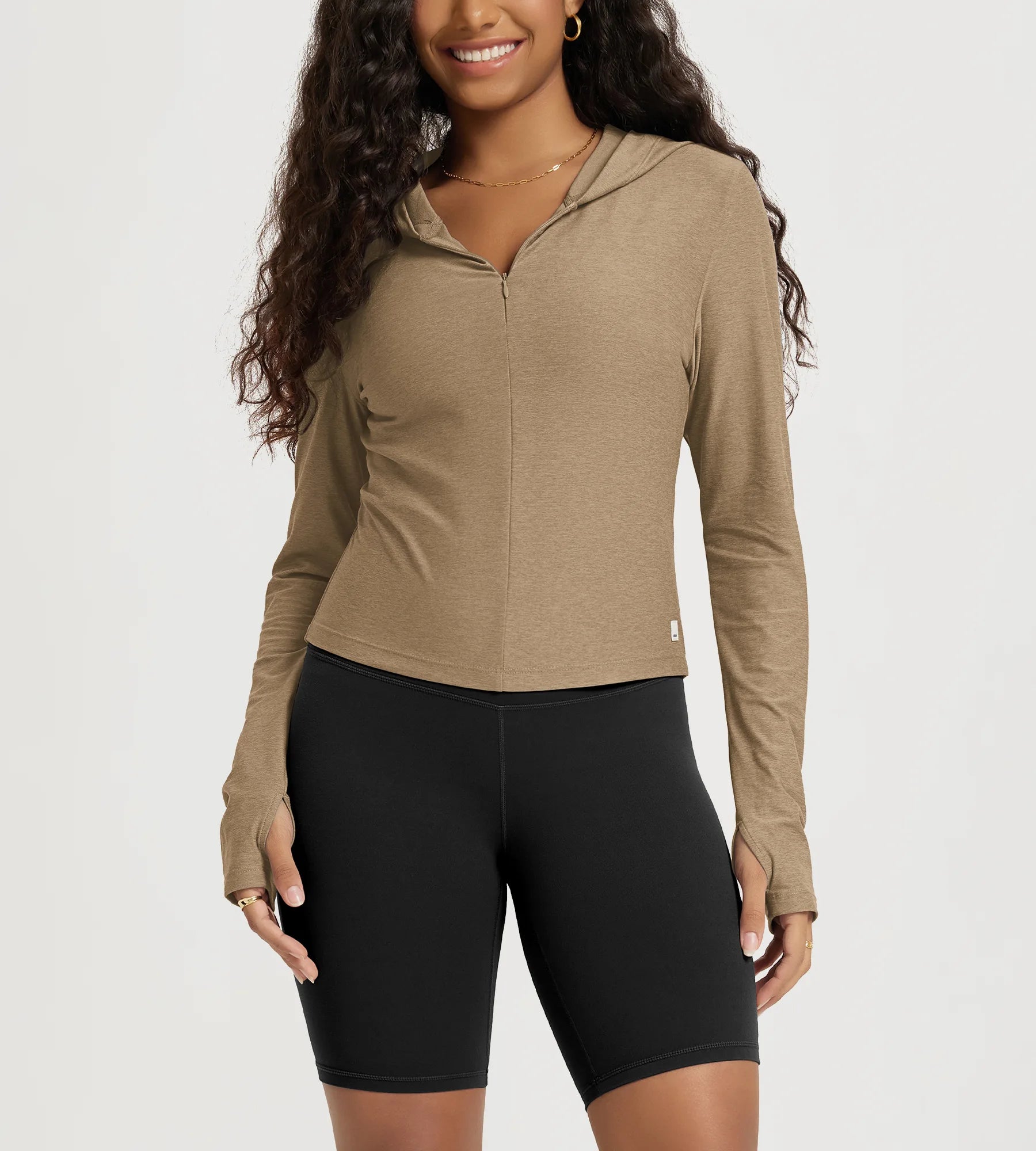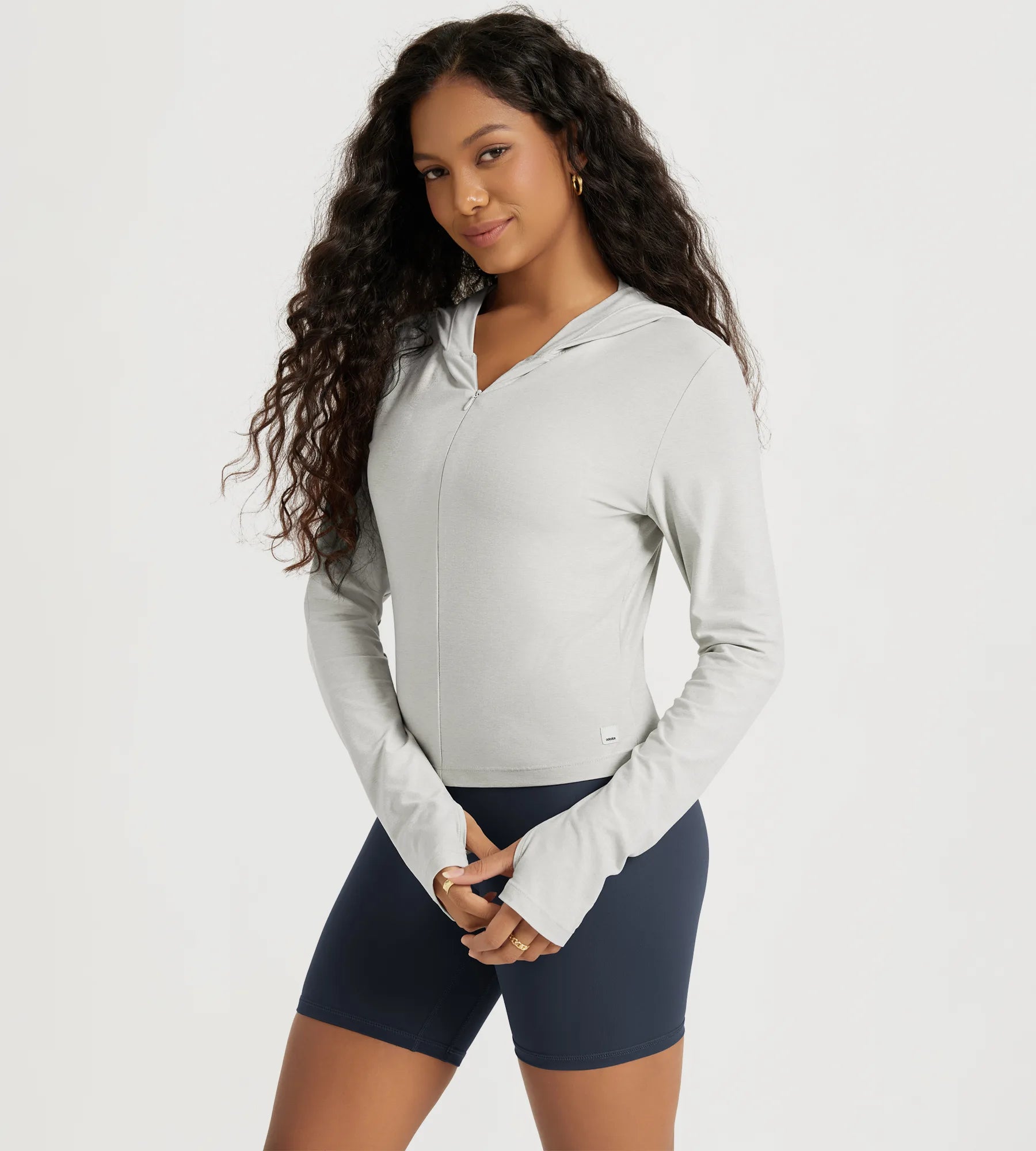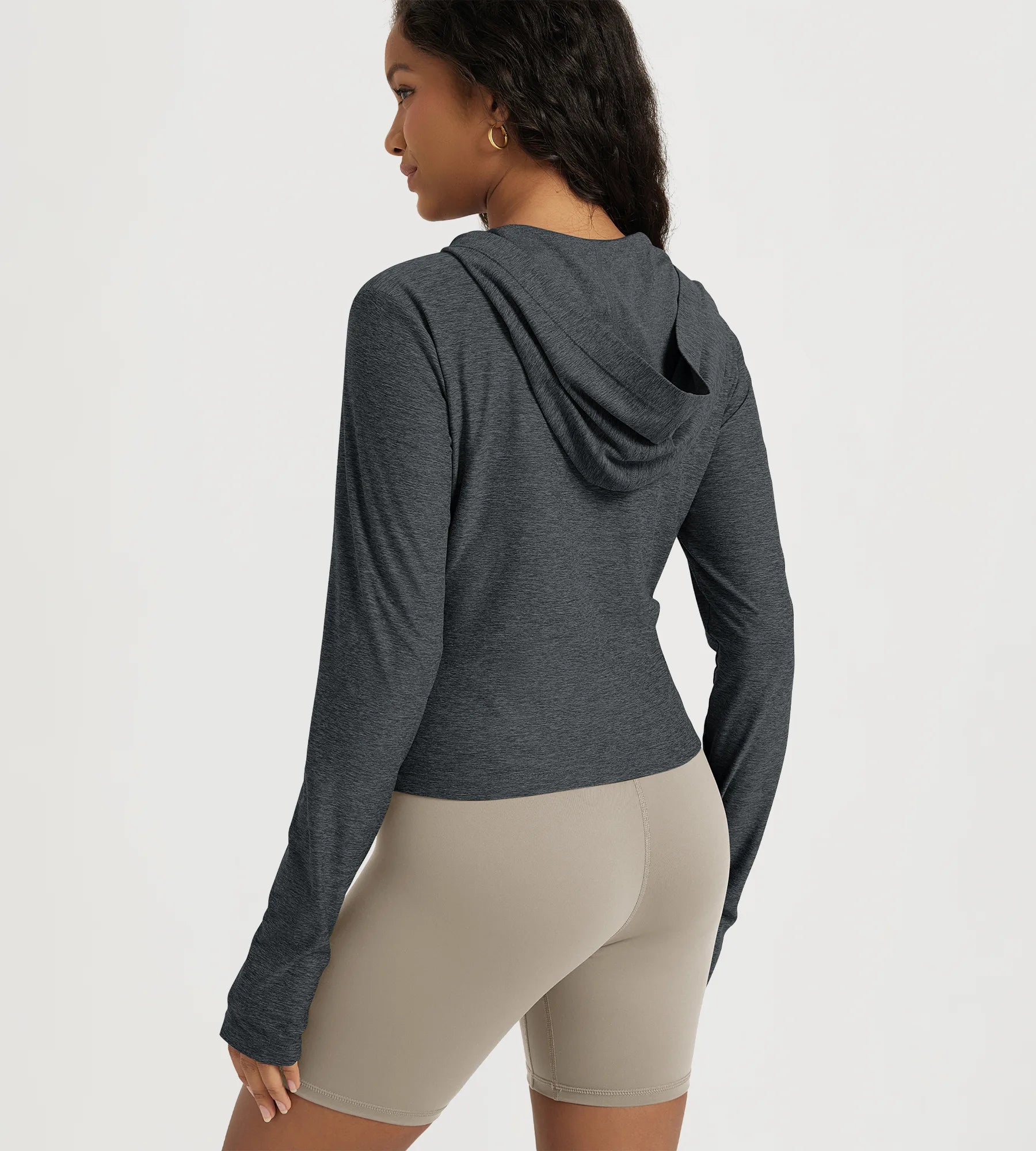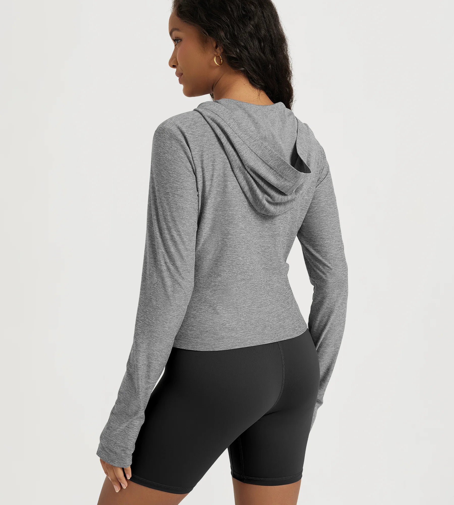 Slim Half-Zip Crop Hoodie with Thumb Hole
