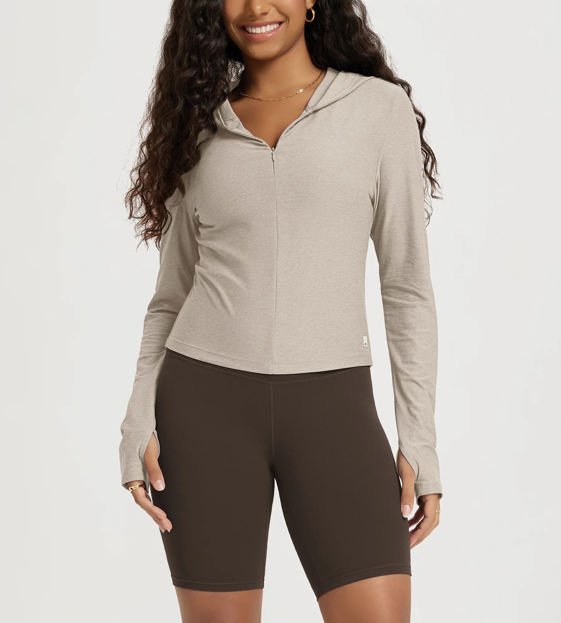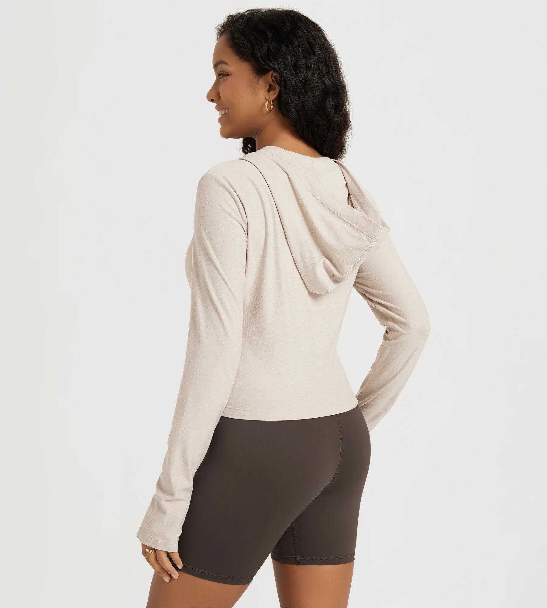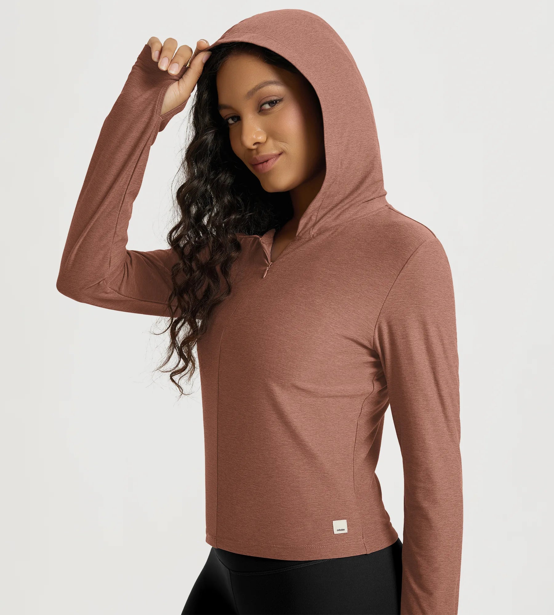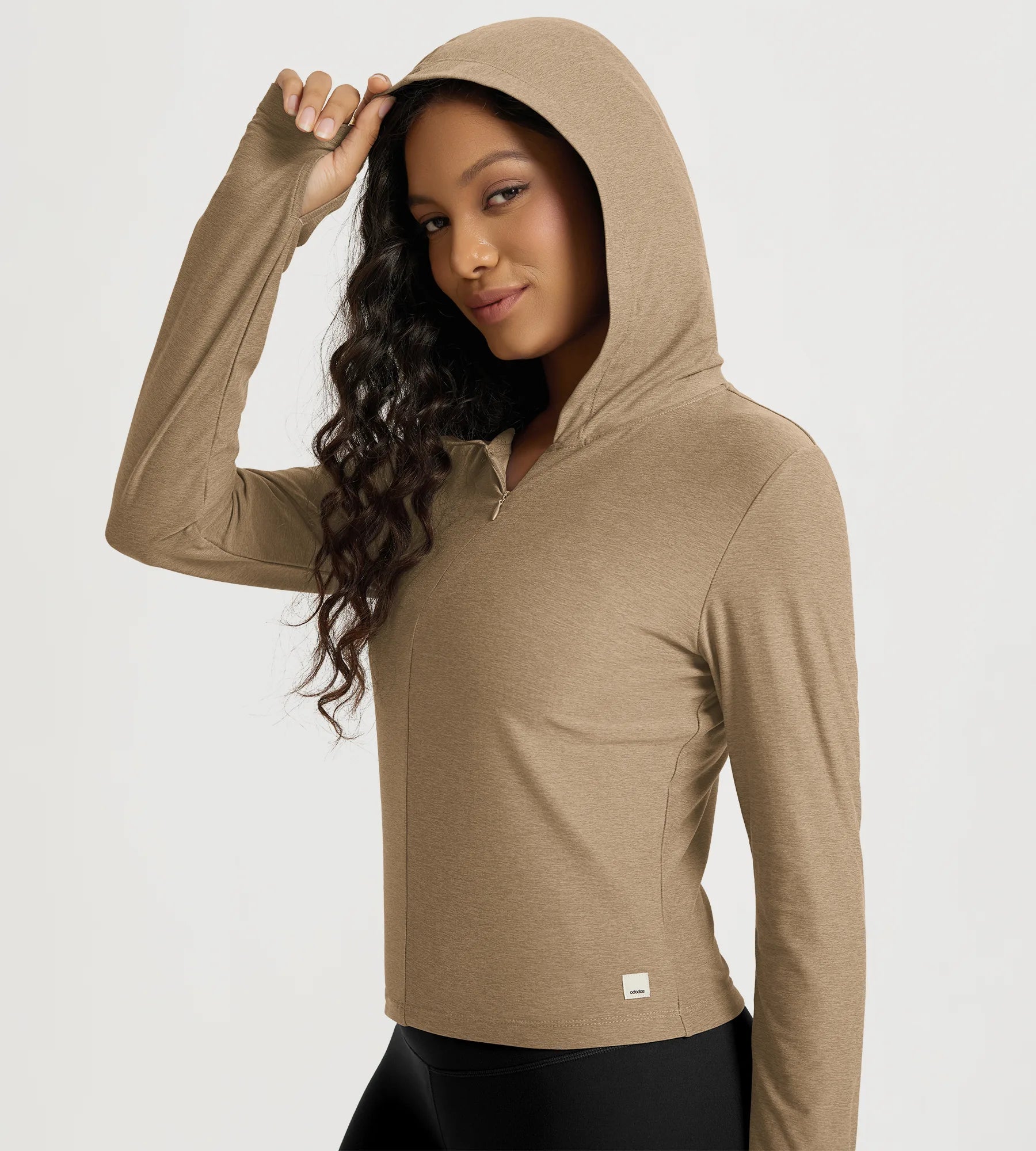 Slim Half-Zip Crop Hoodie with Thumb Hole