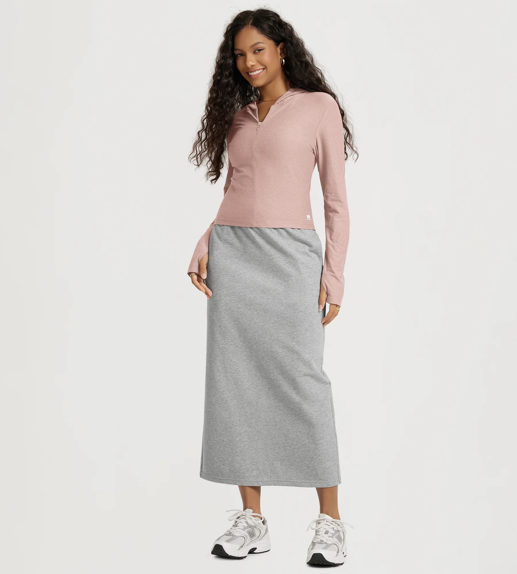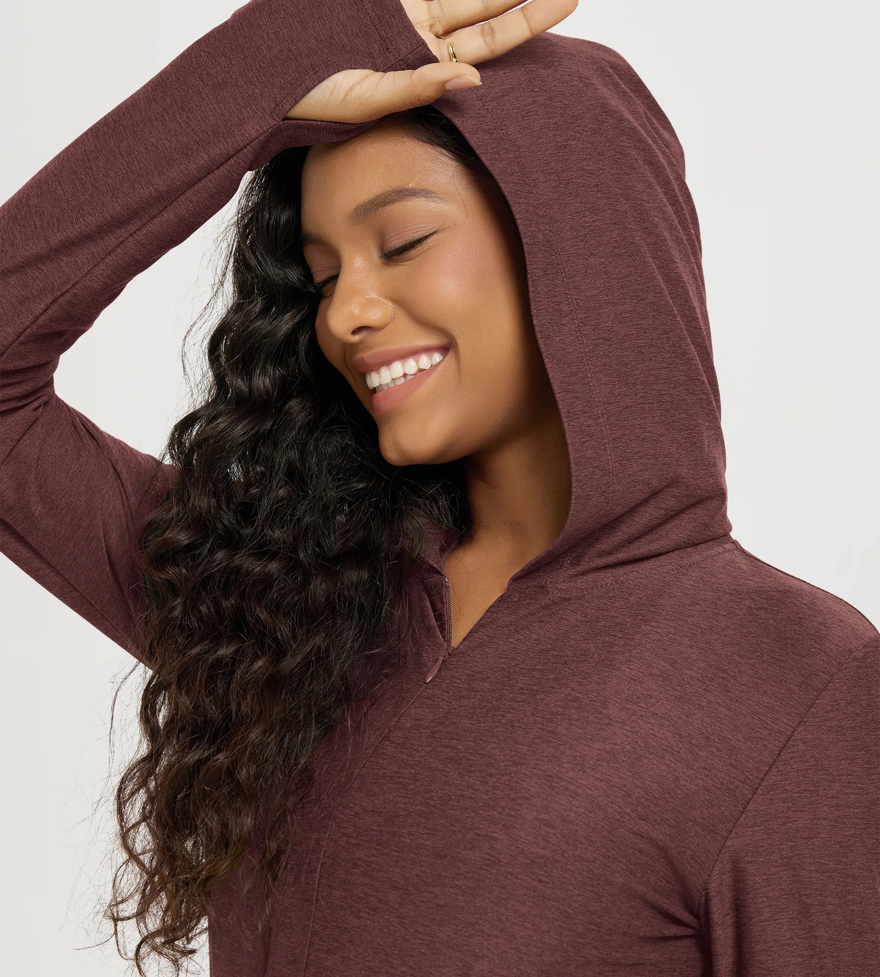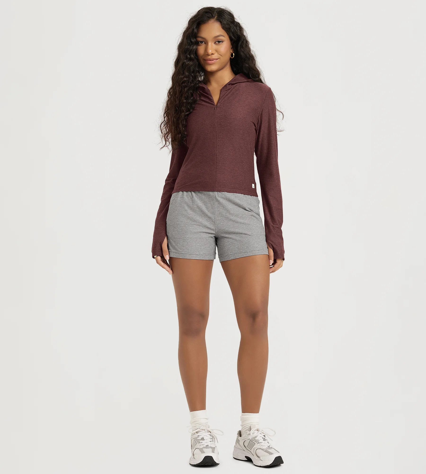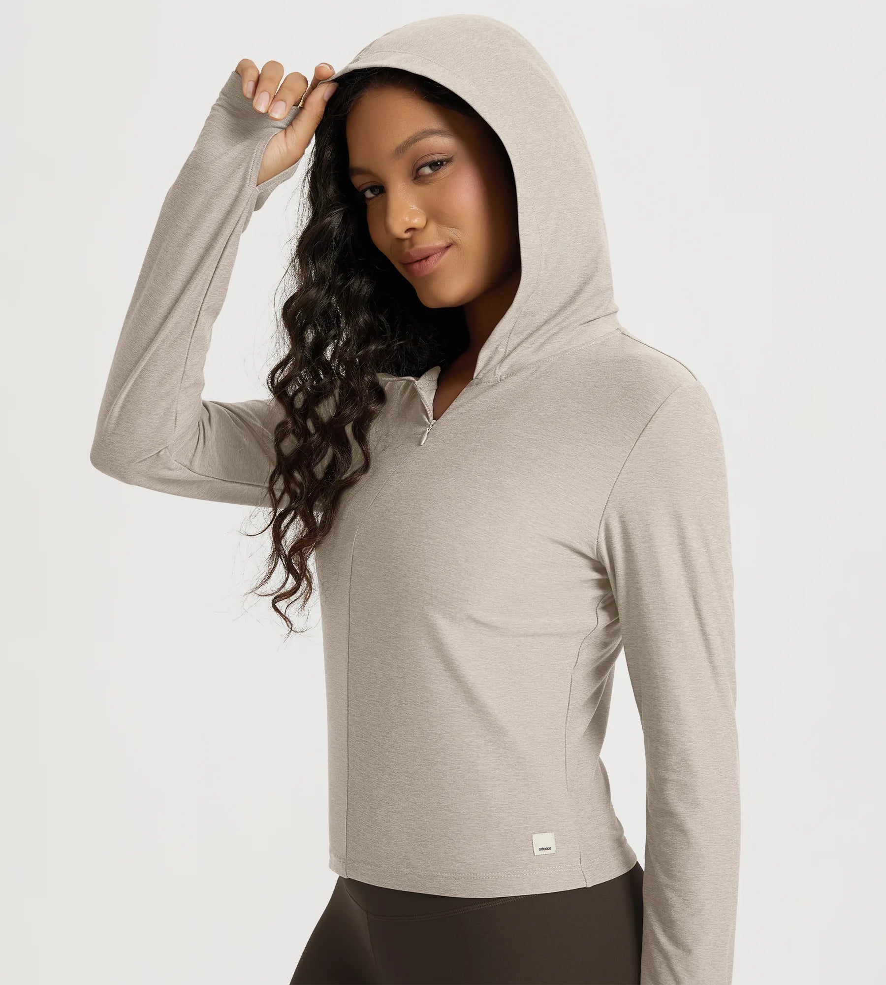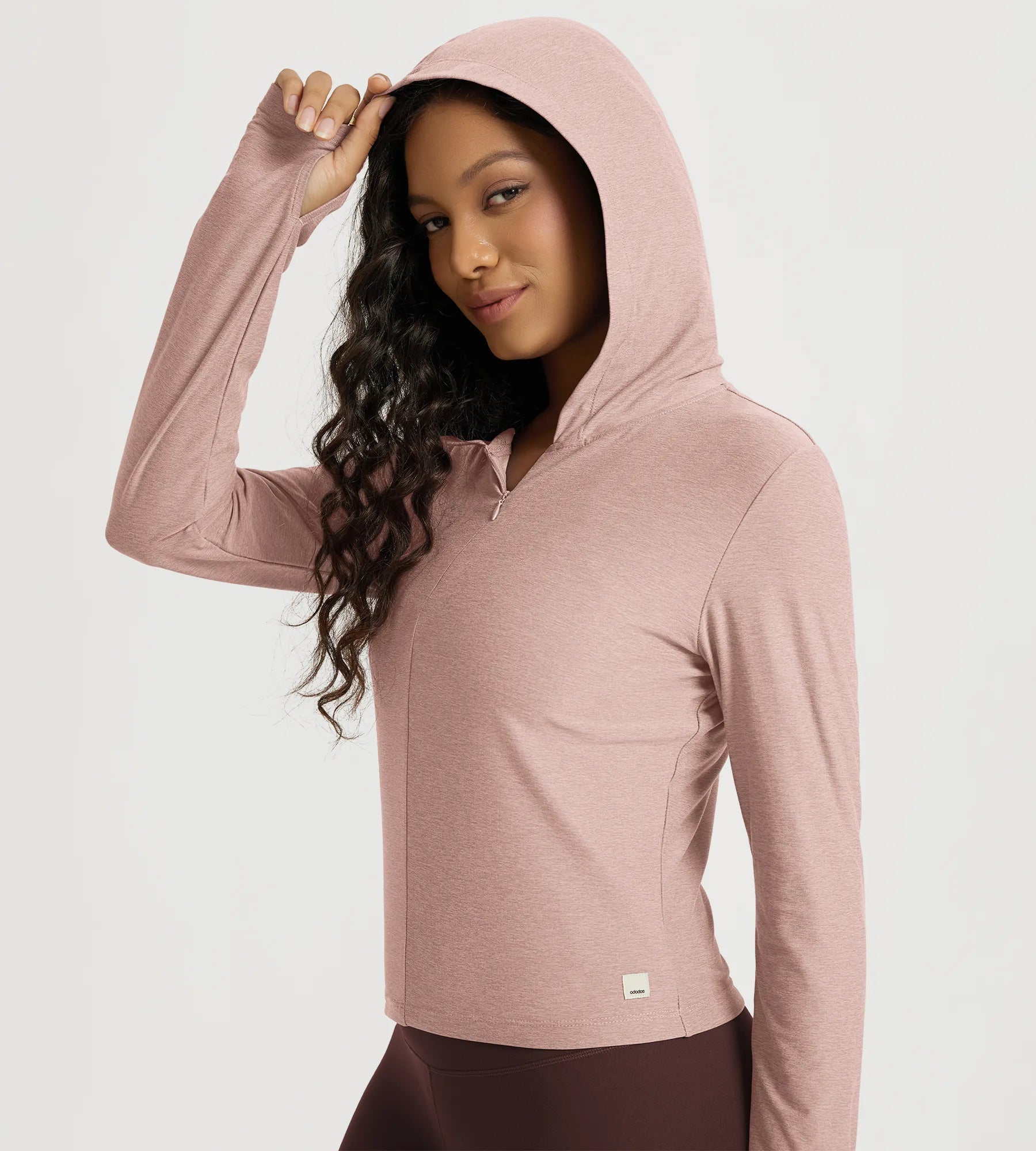 Slim Half-Zip Crop Hoodie with Thumb Hole