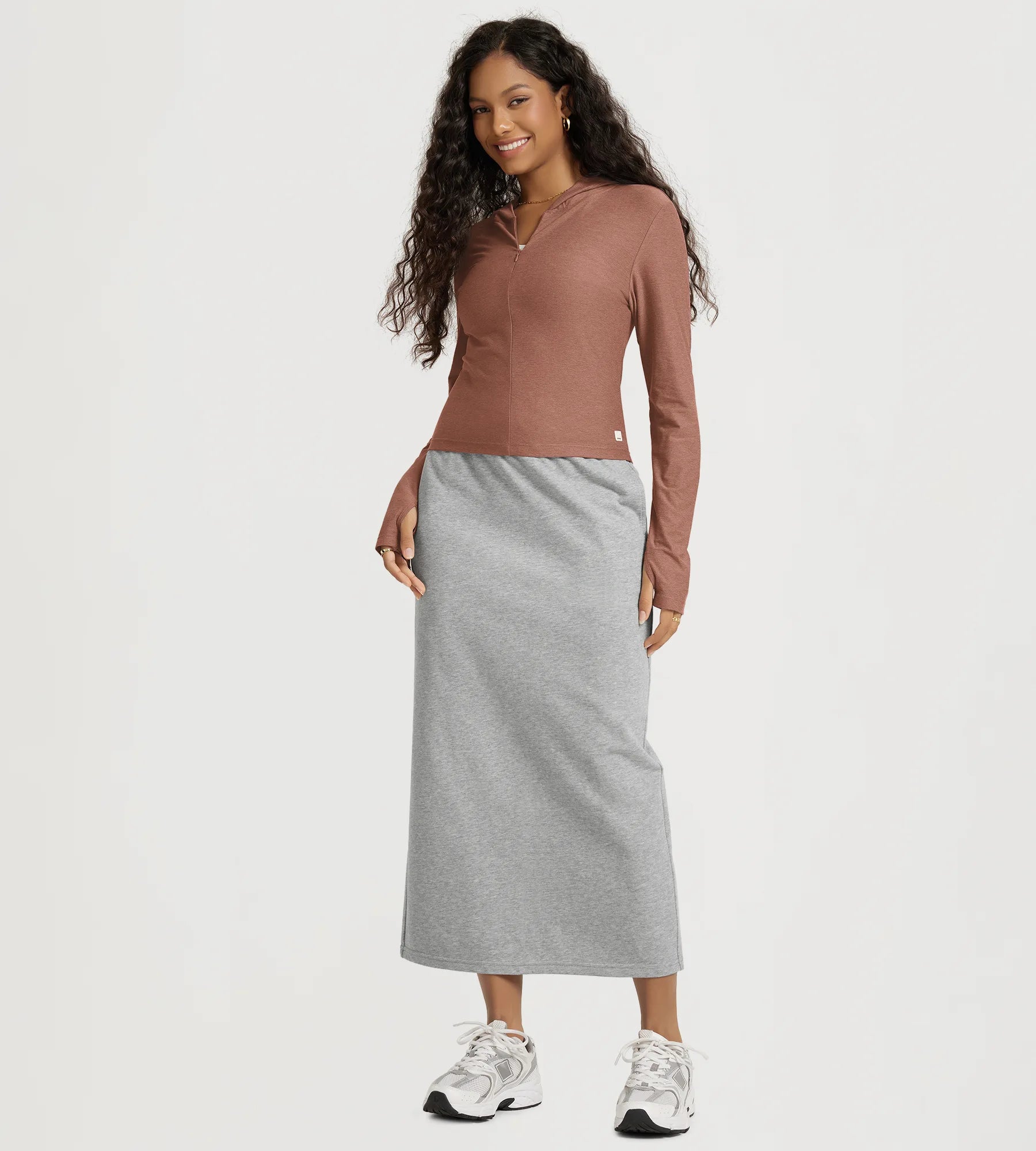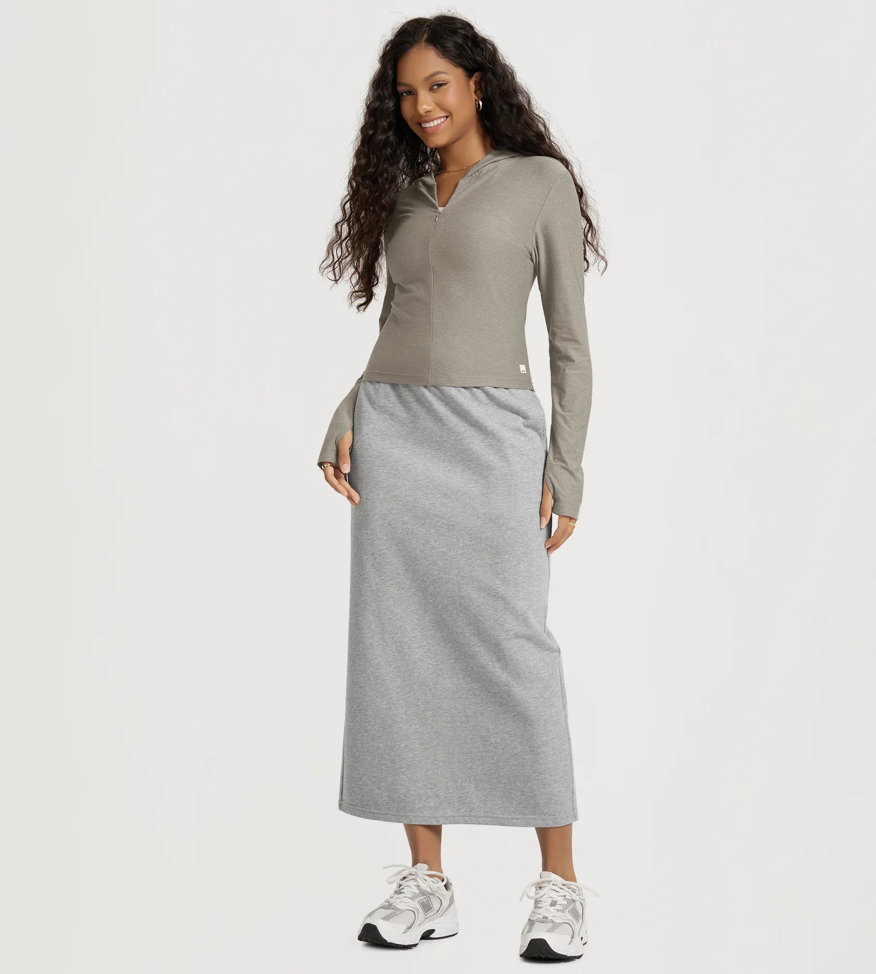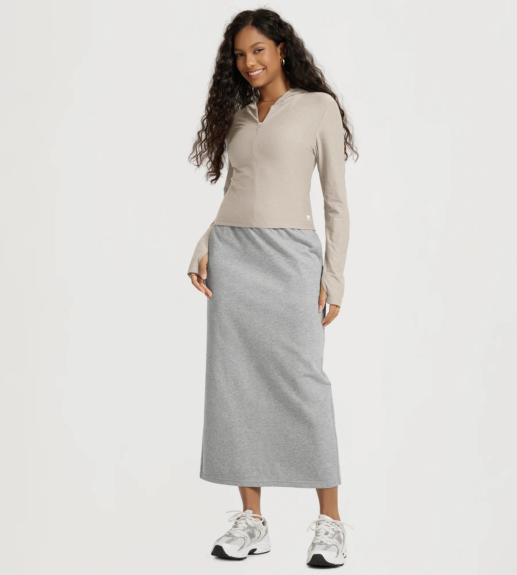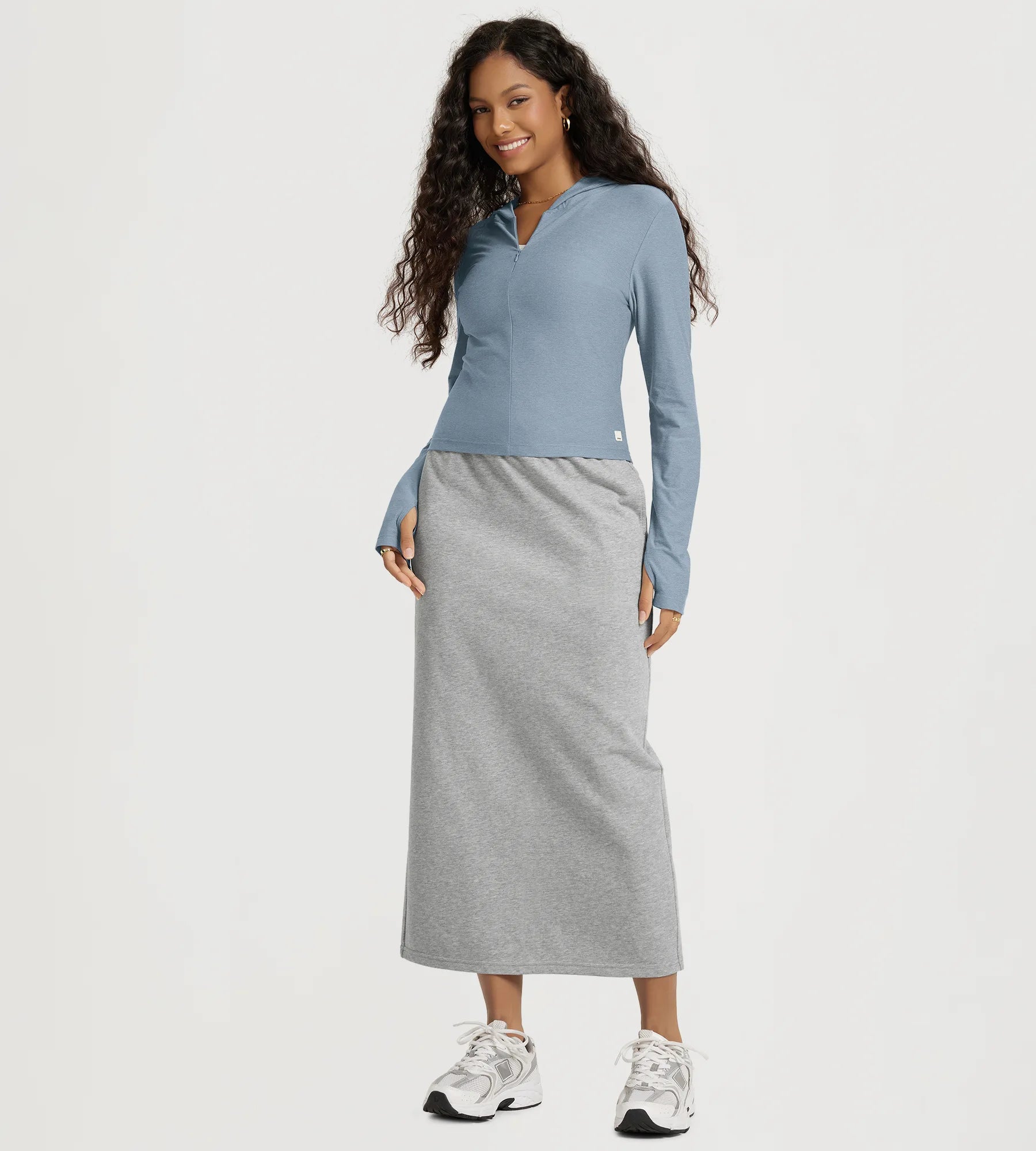 Slim Half-Zip Crop Hoodie with Thumb Hole