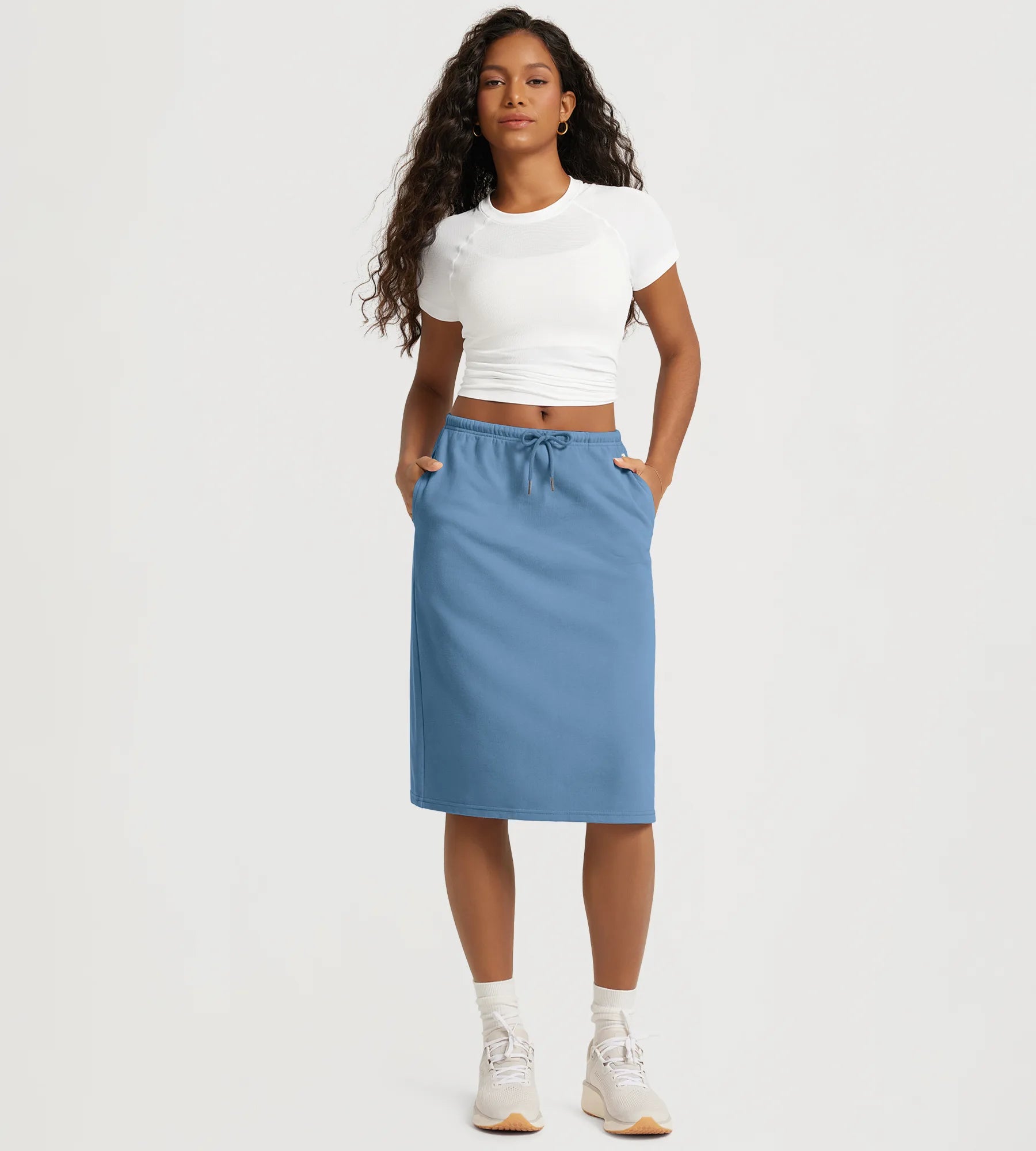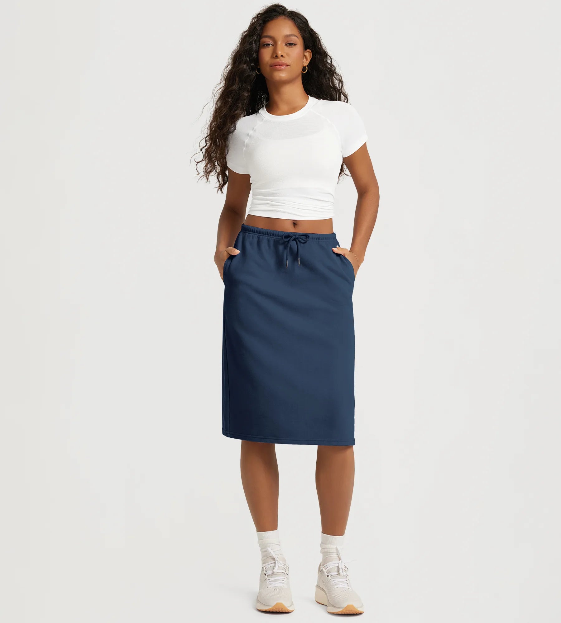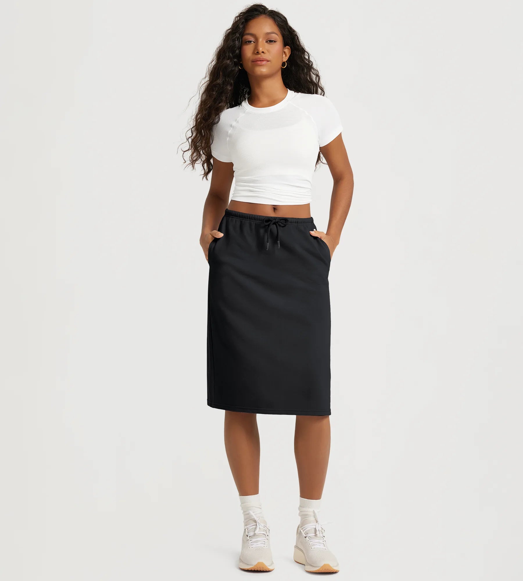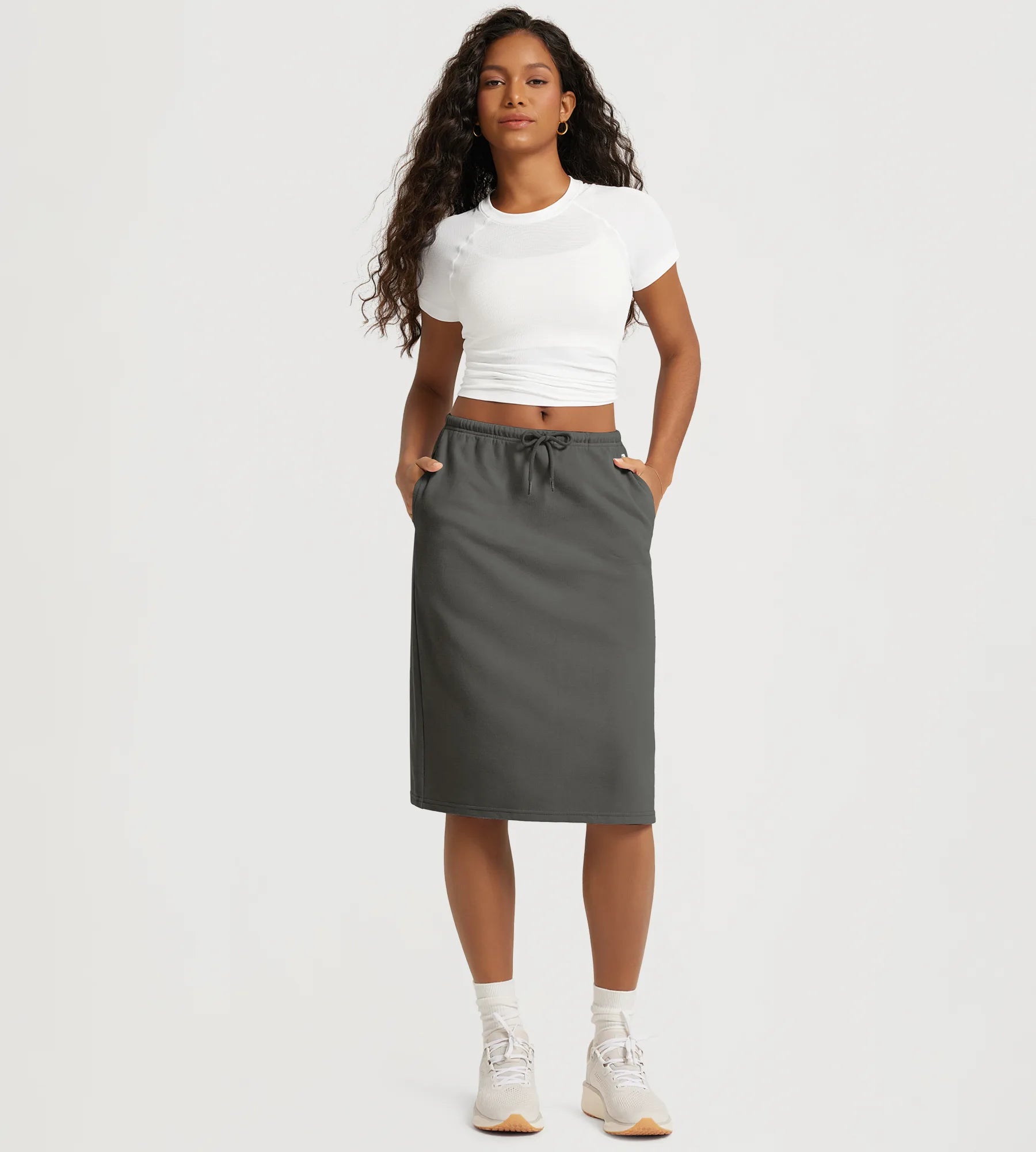 Back Split Drawstring Tie Midi Skirt with Pockets