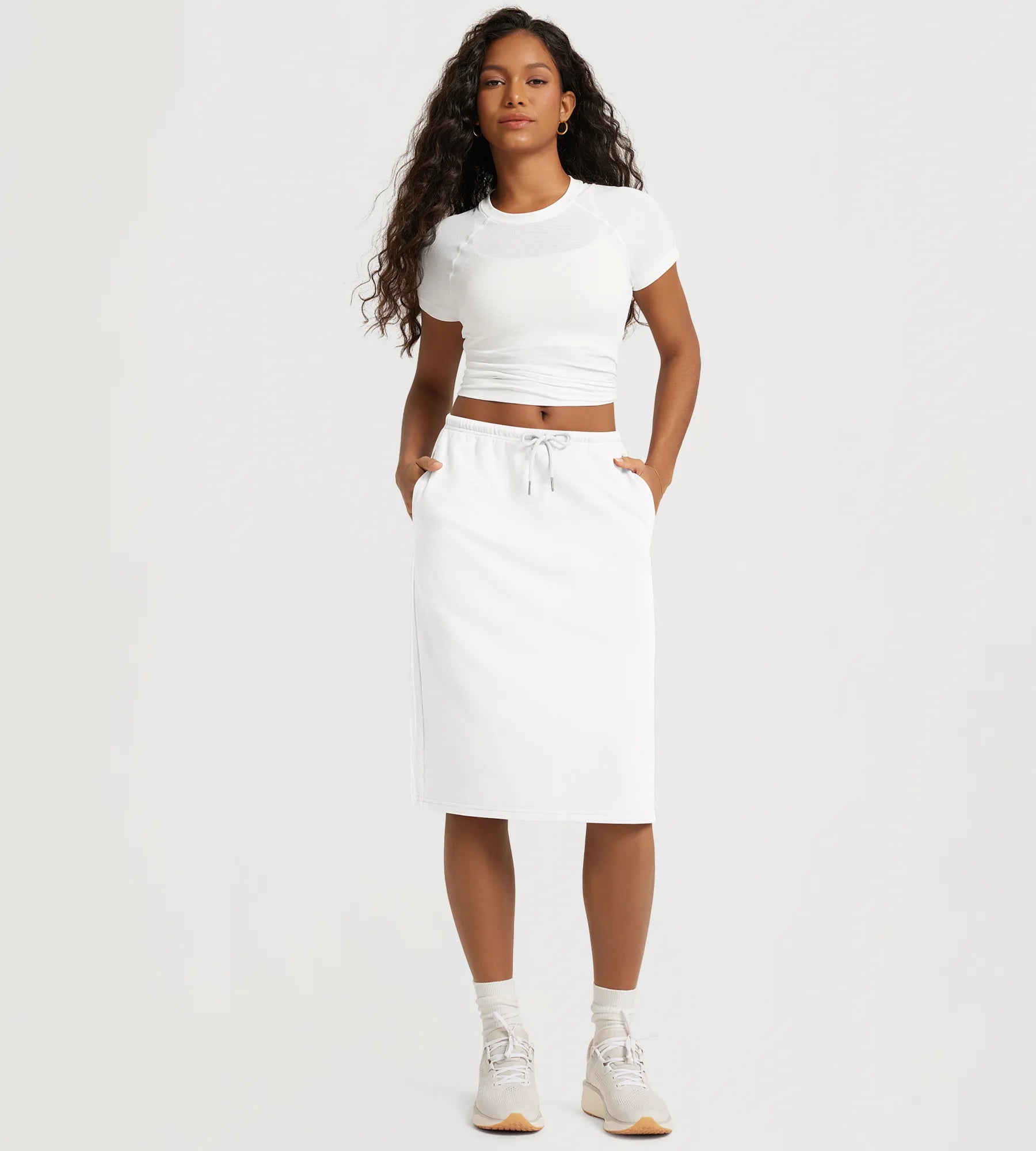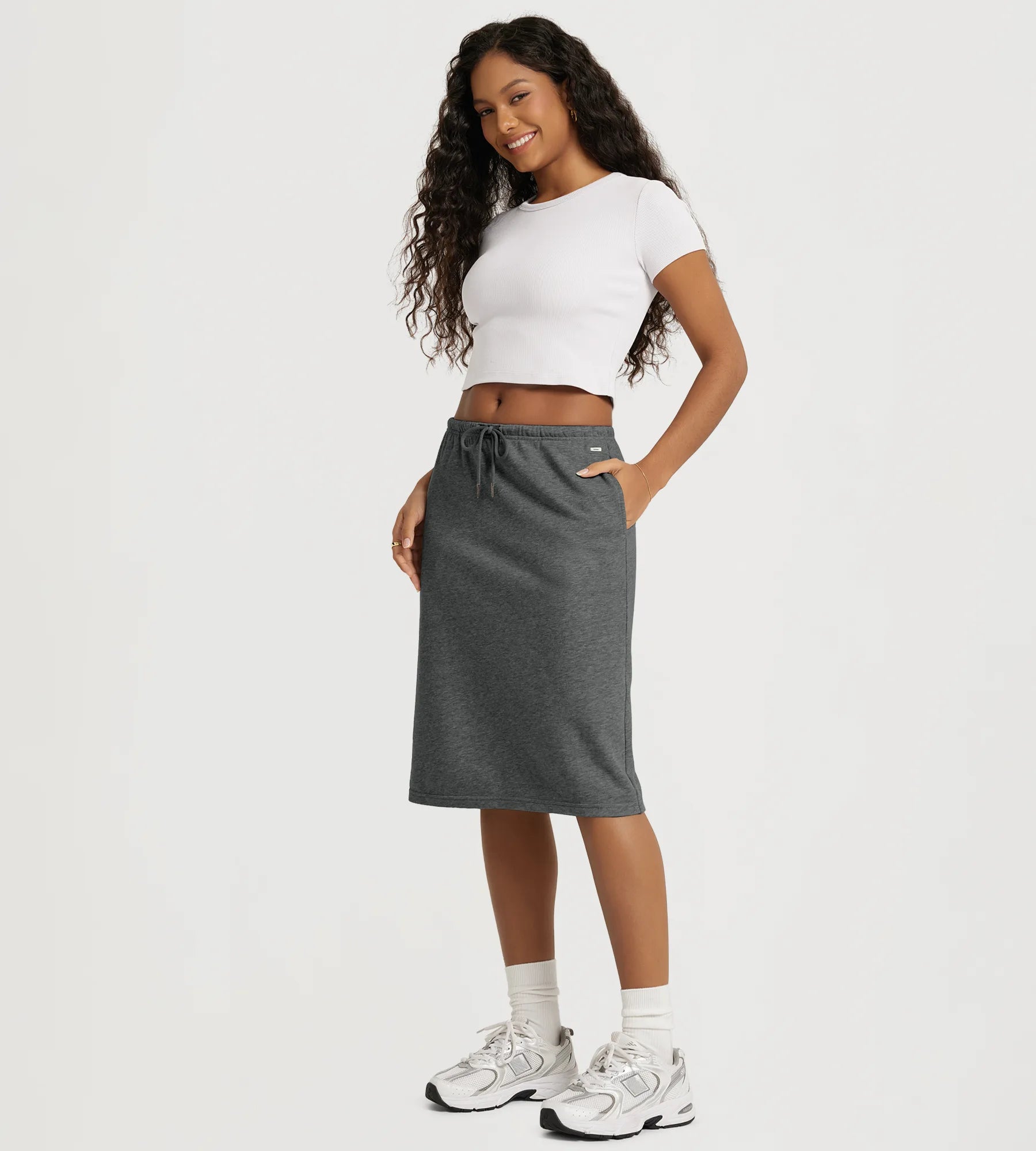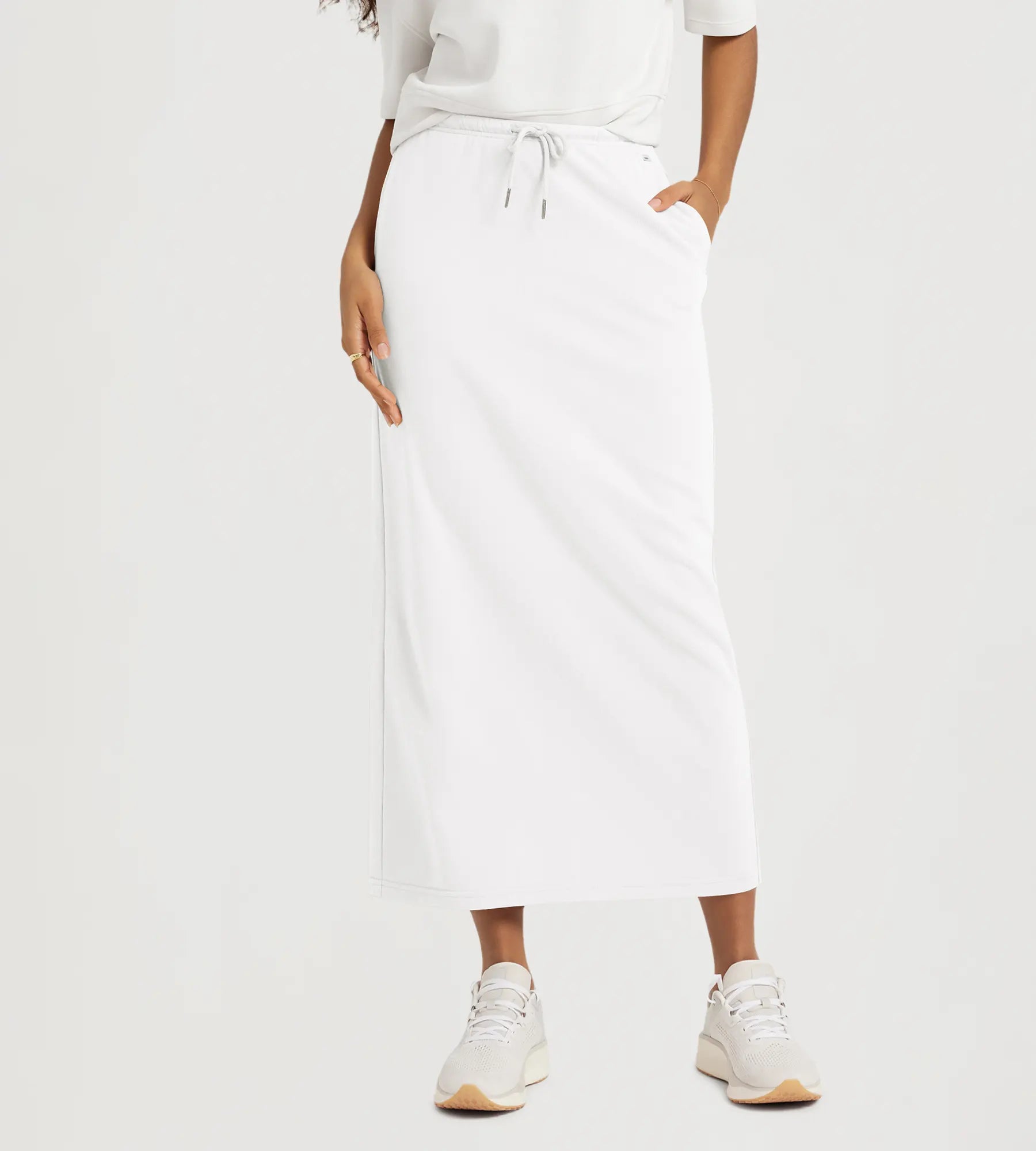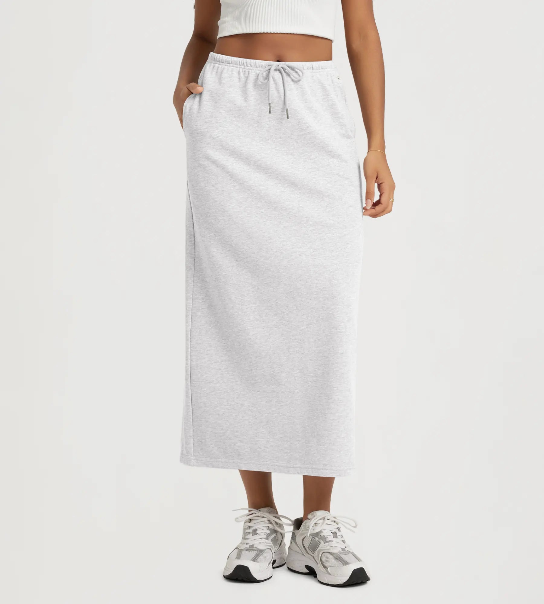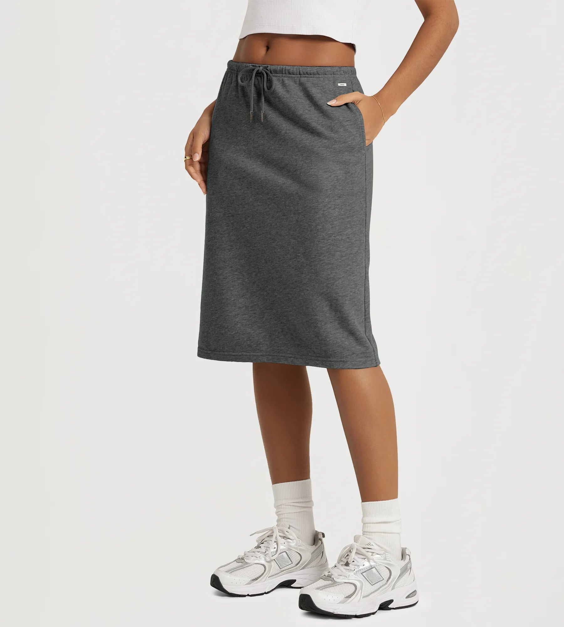 Back Split Drawstring Tie Midi Skirt with Pockets