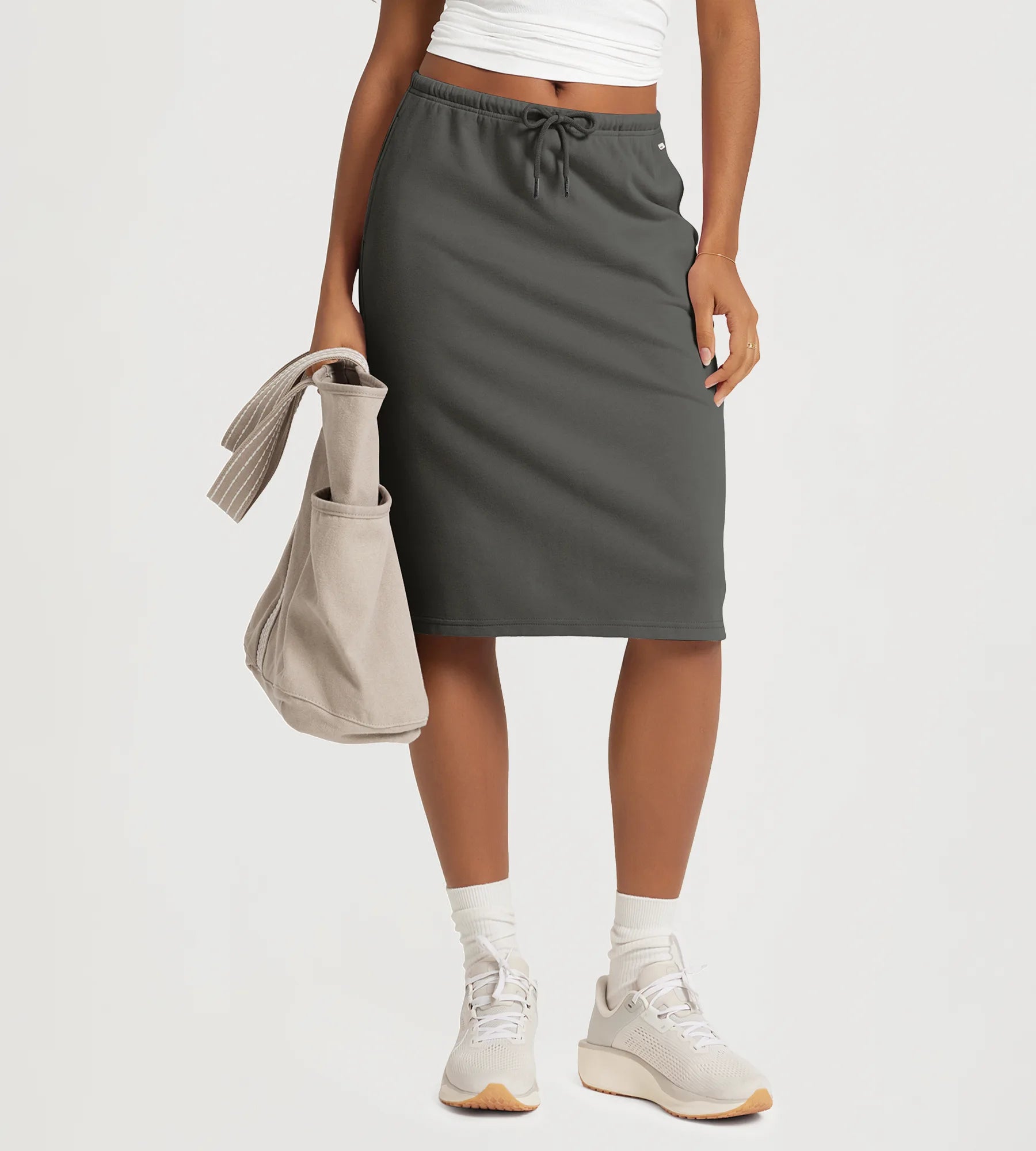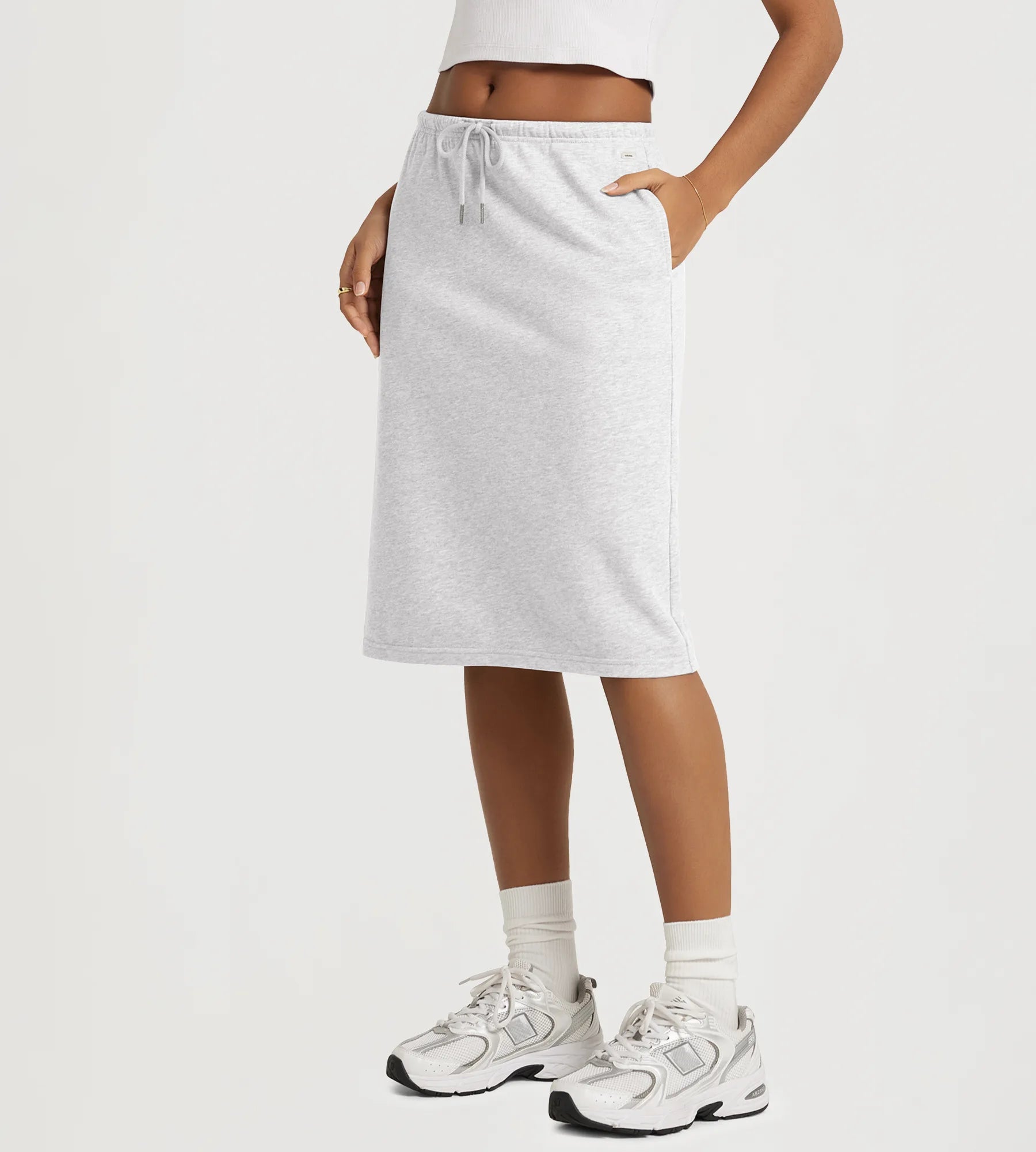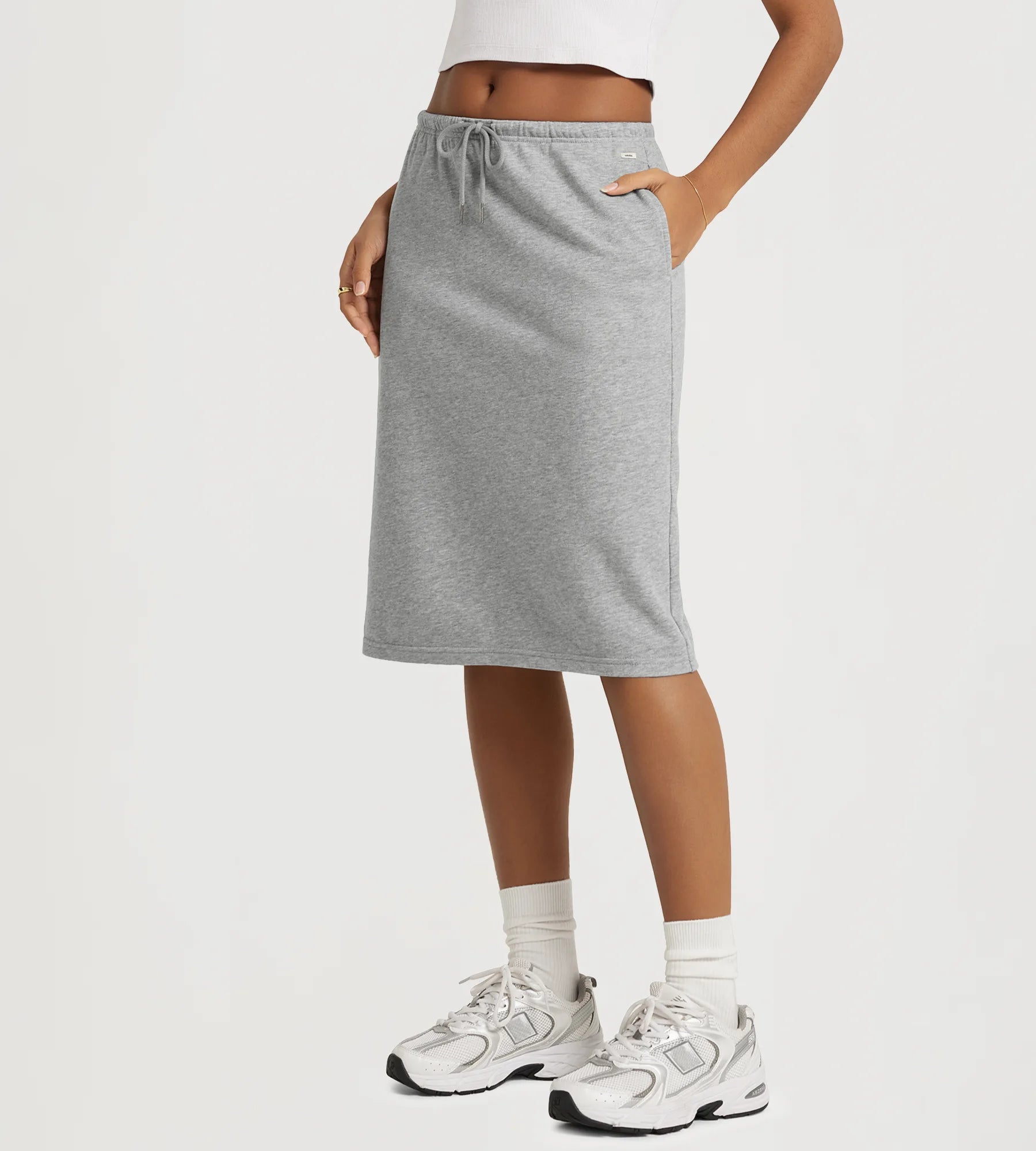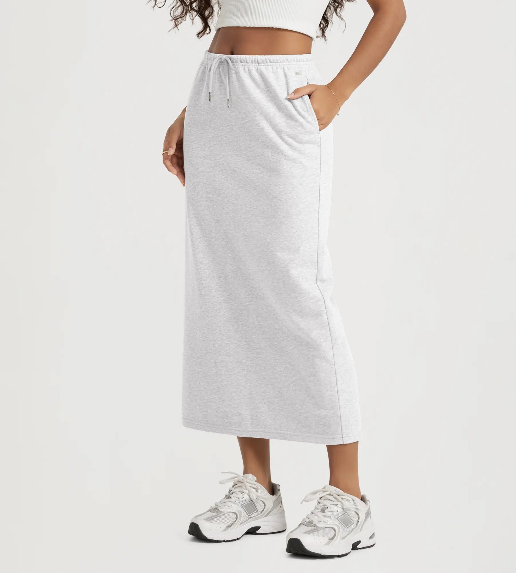 Back Split Drawstring Tie Midi Skirt with Pockets