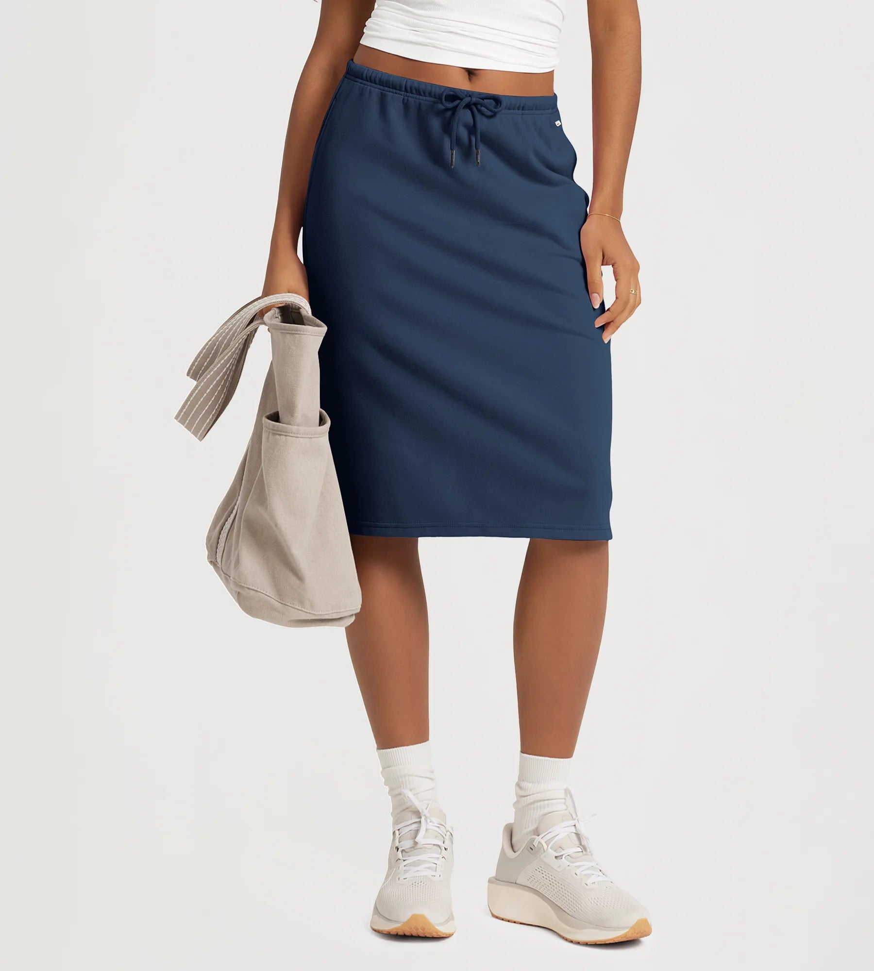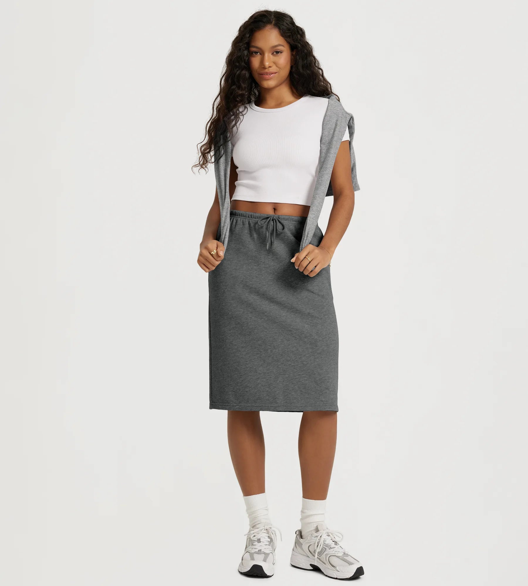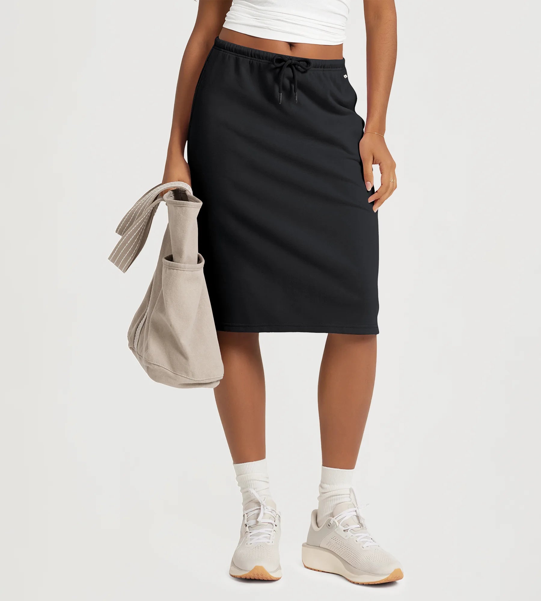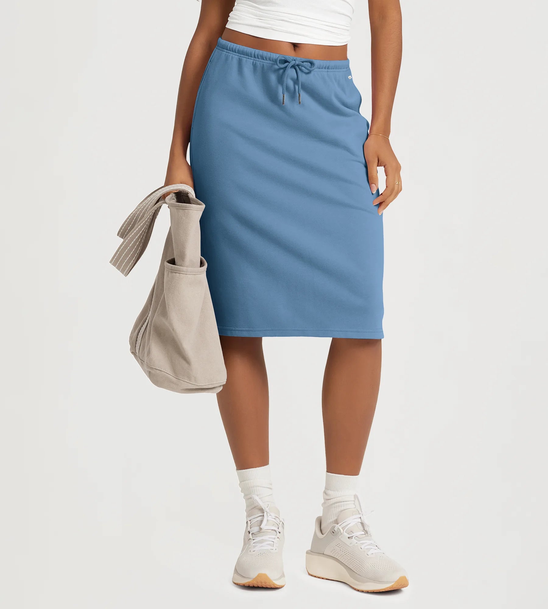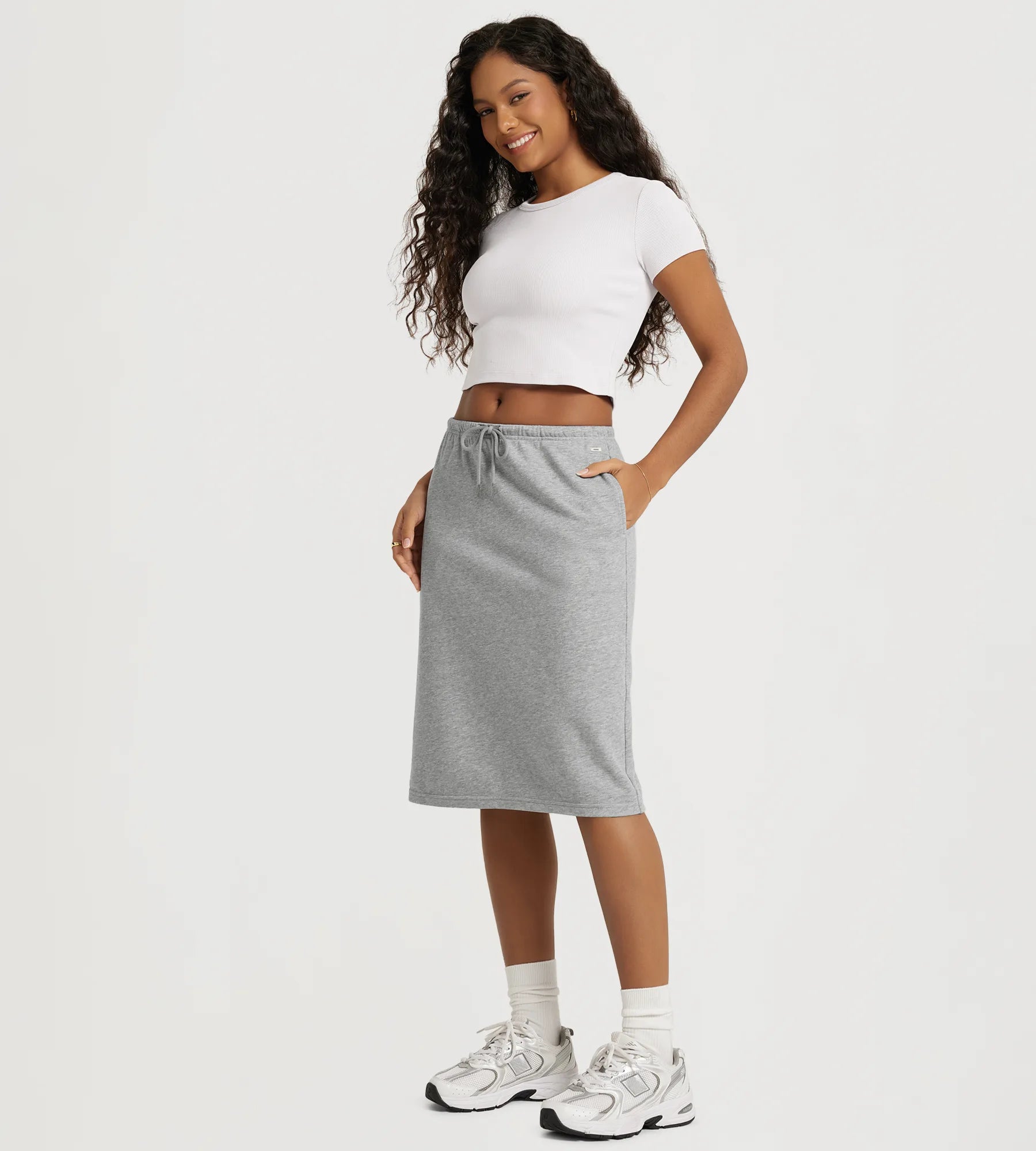 Back Split Drawstring Tie Midi Skirt with Pockets