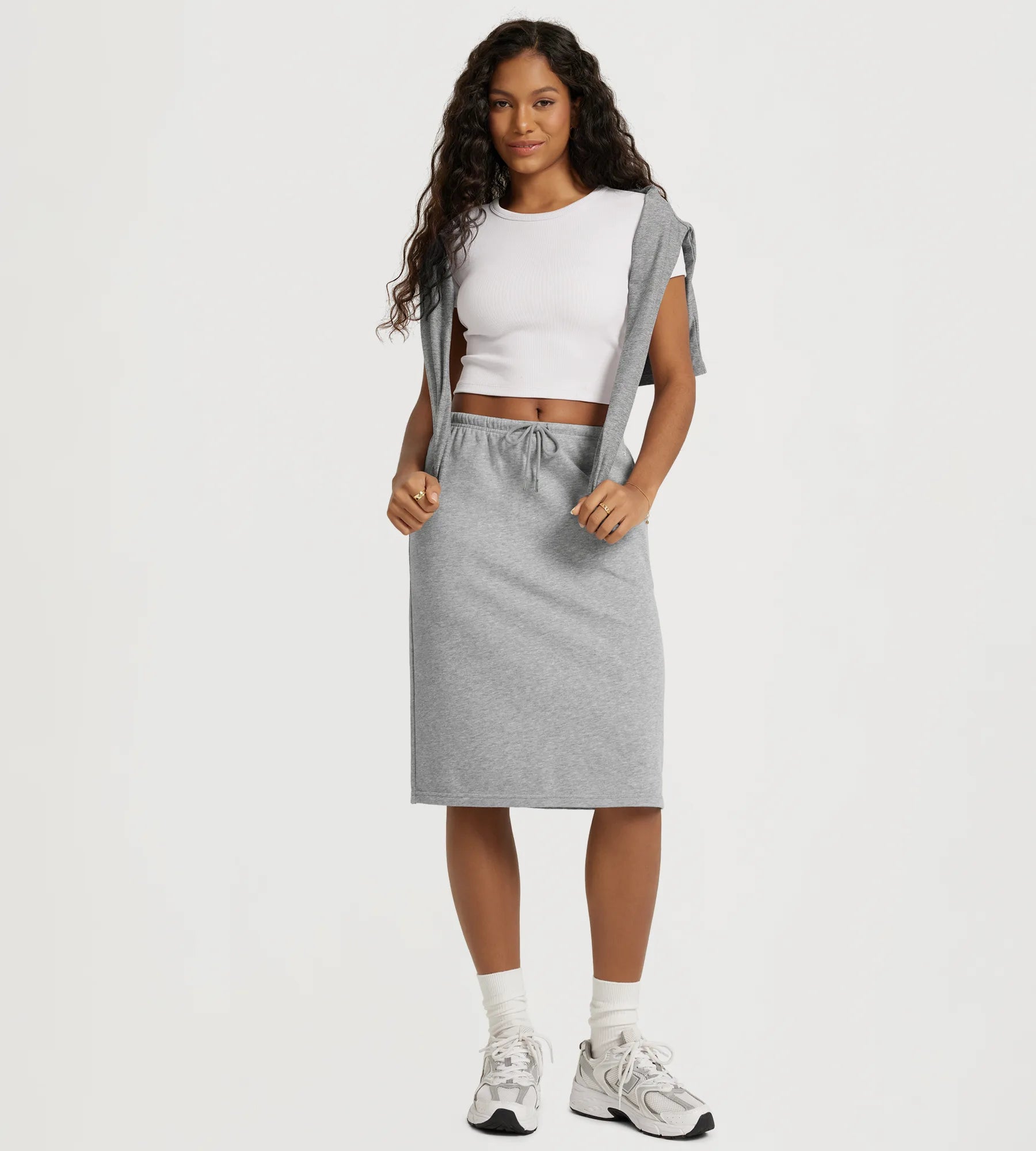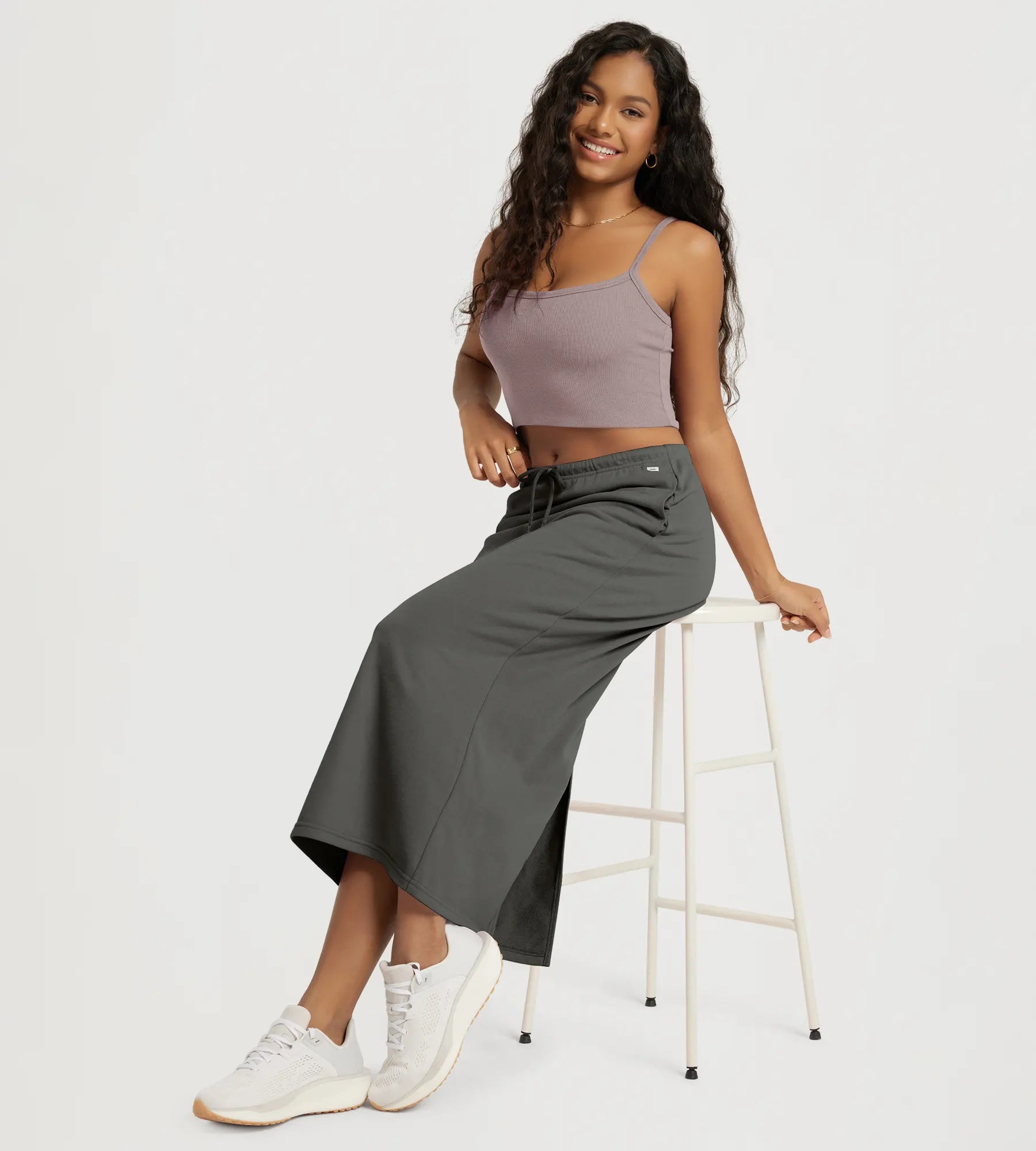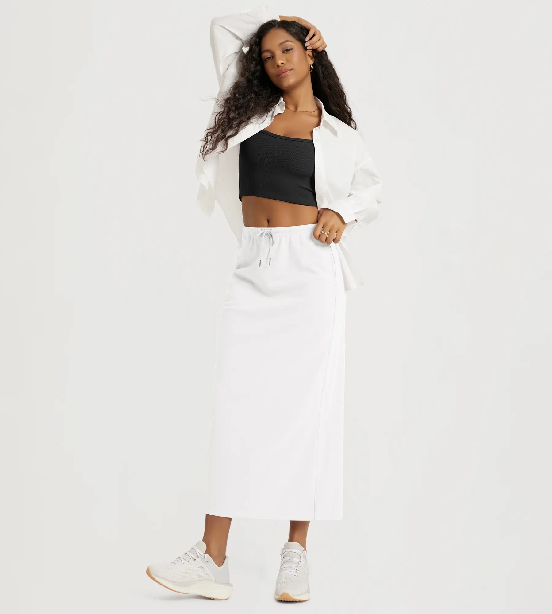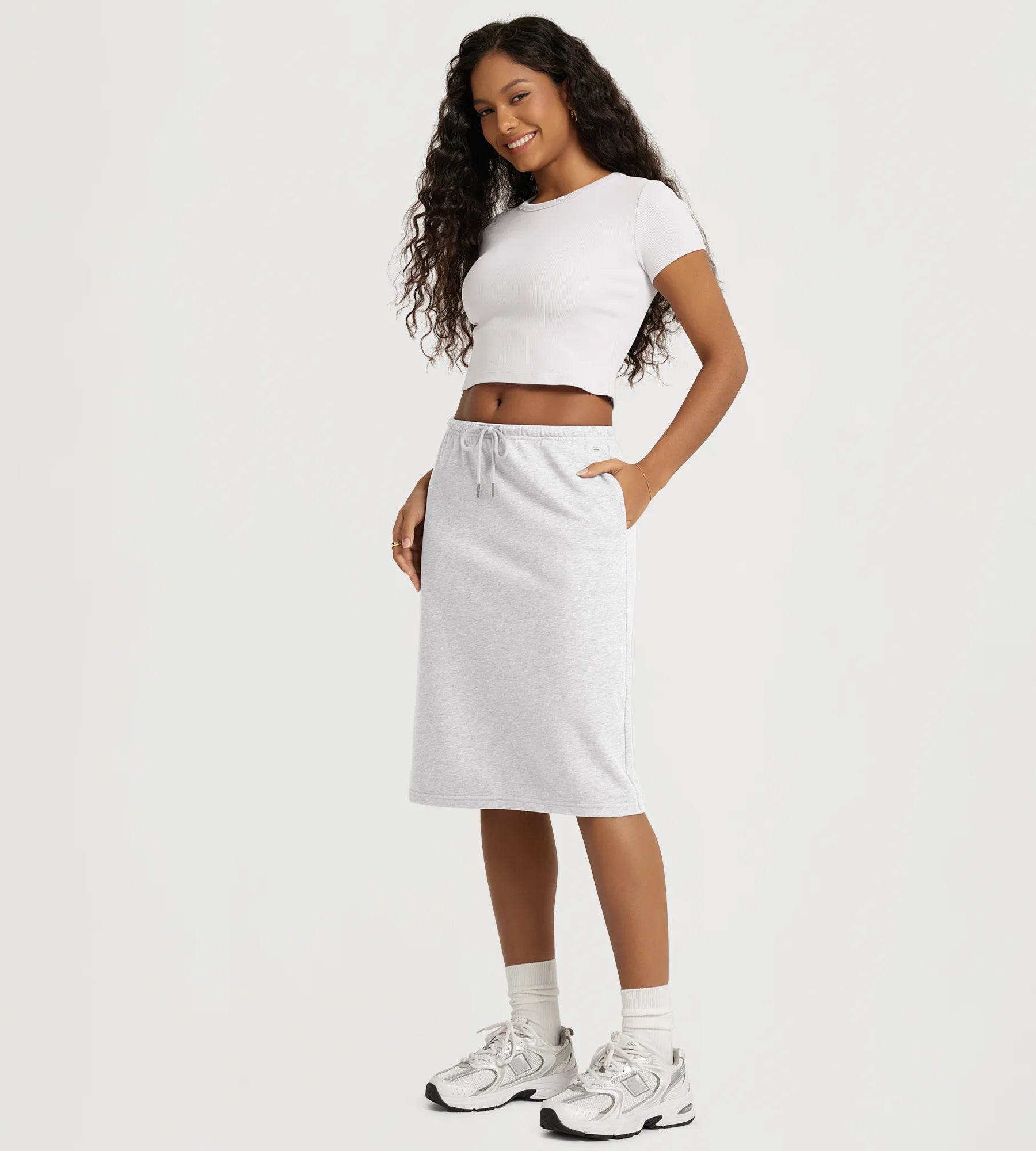 Back Split Drawstring Tie Midi Skirt with Pockets