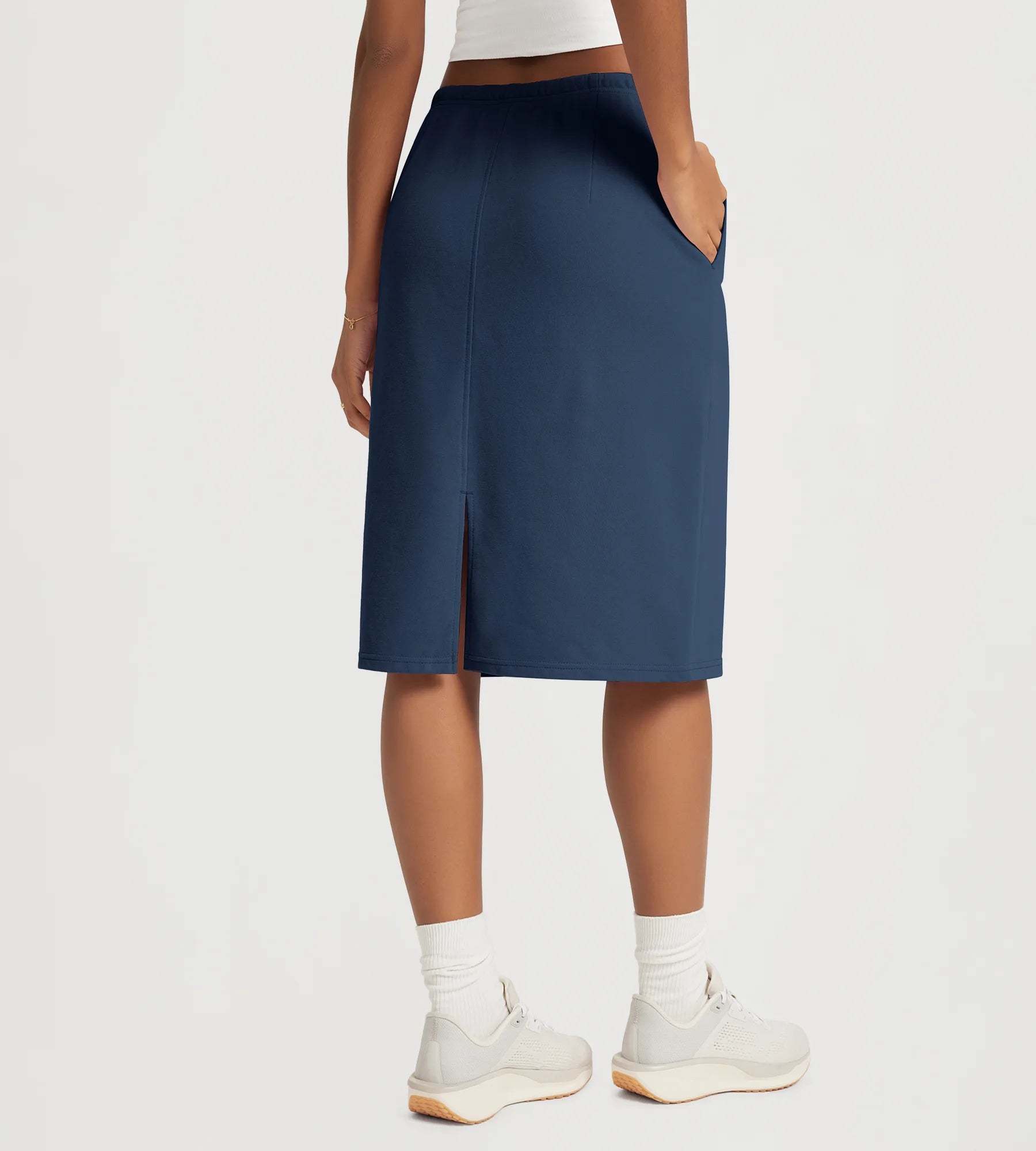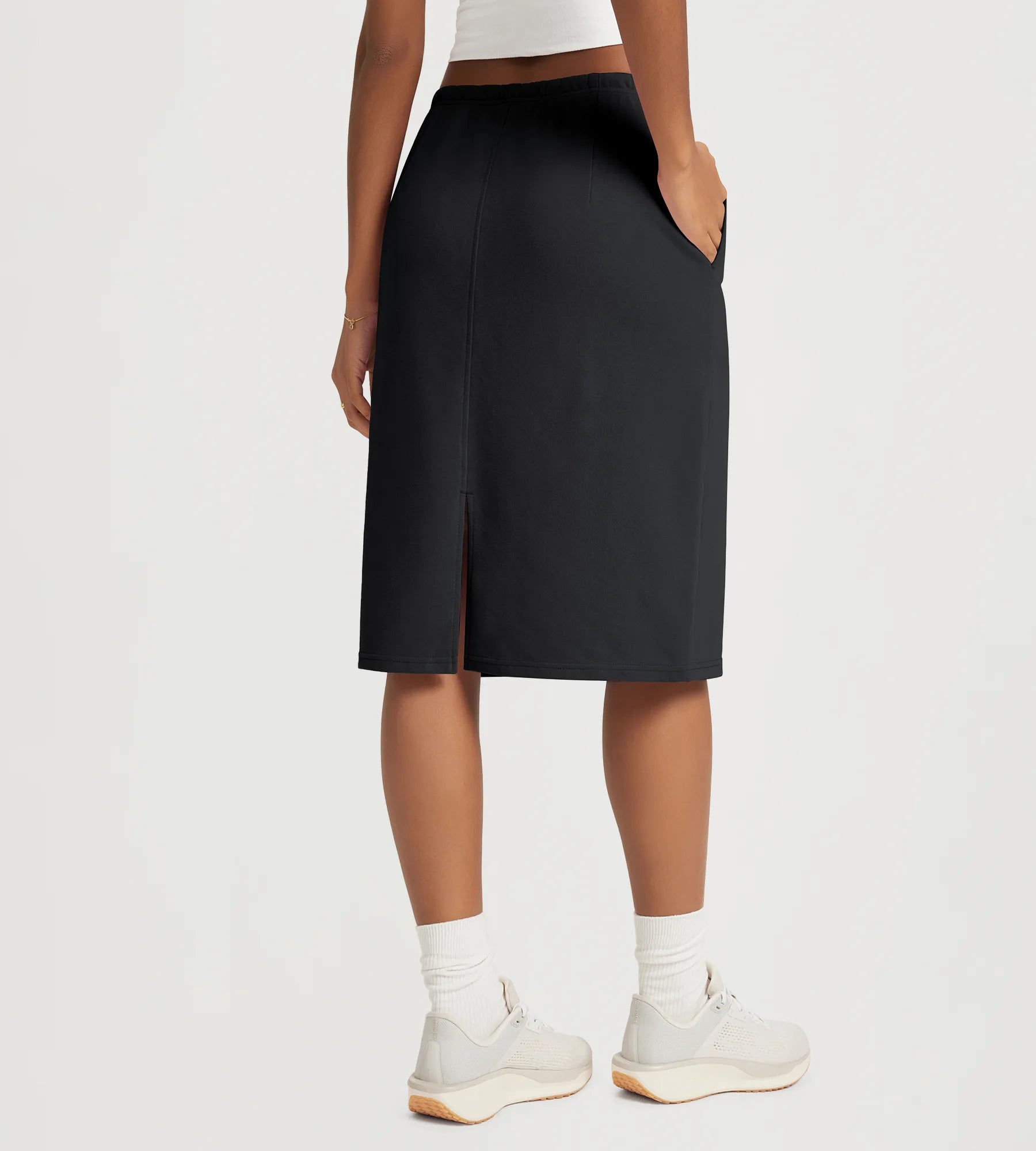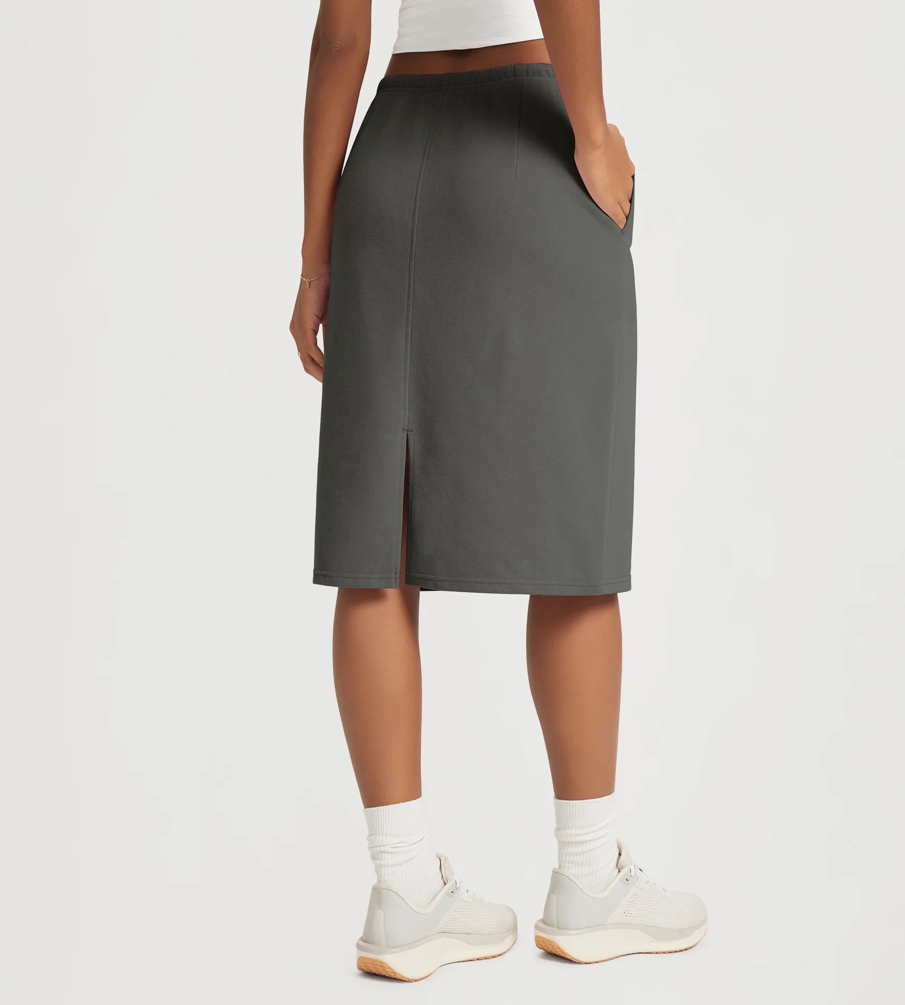 Back Split Knee Length Skirt with Pockets