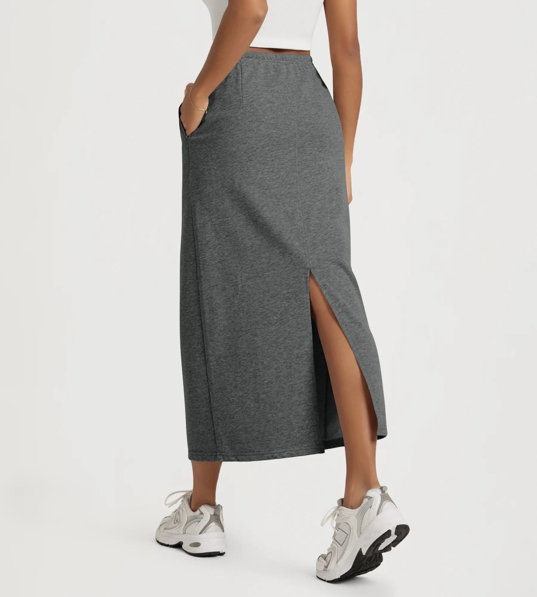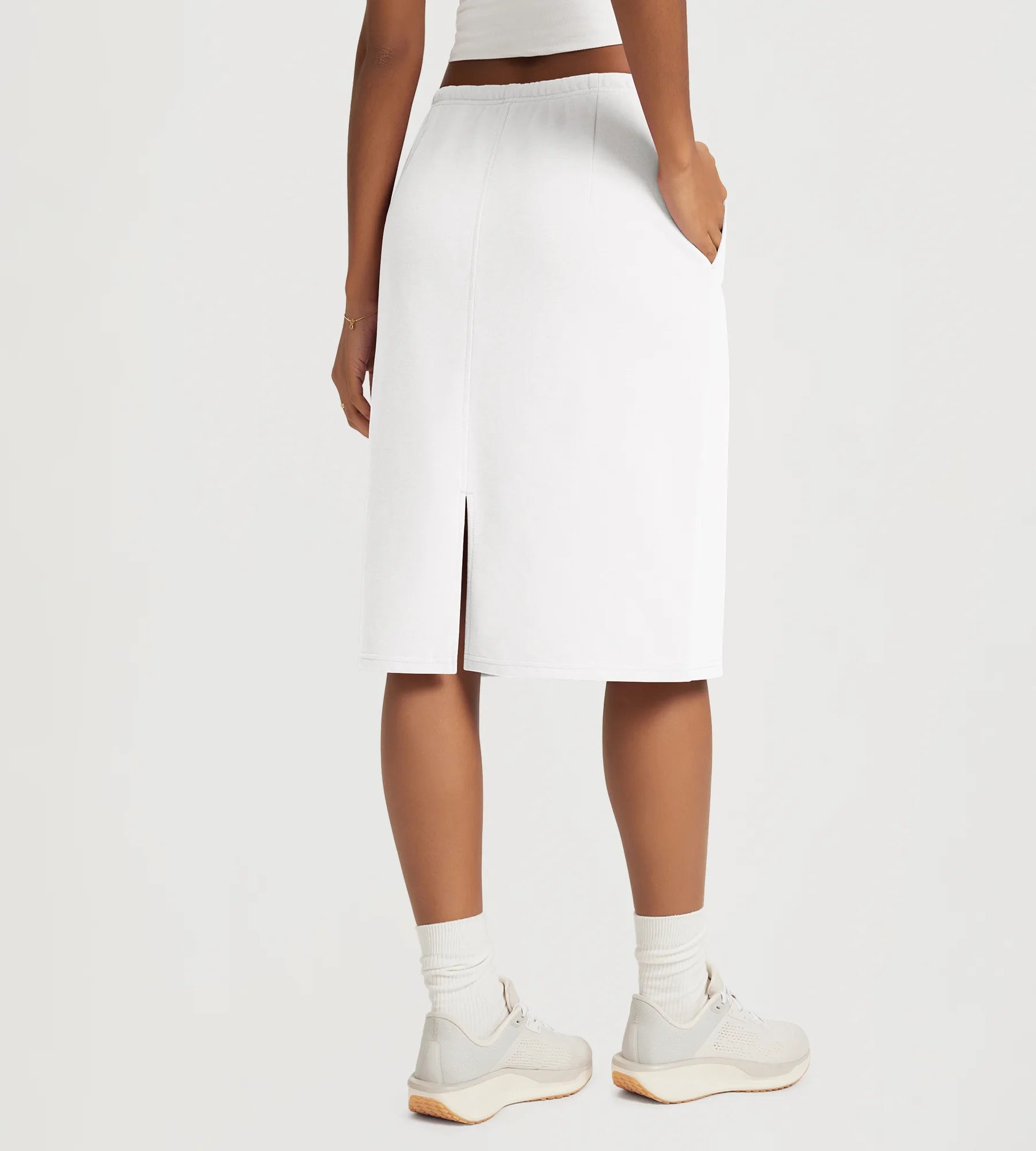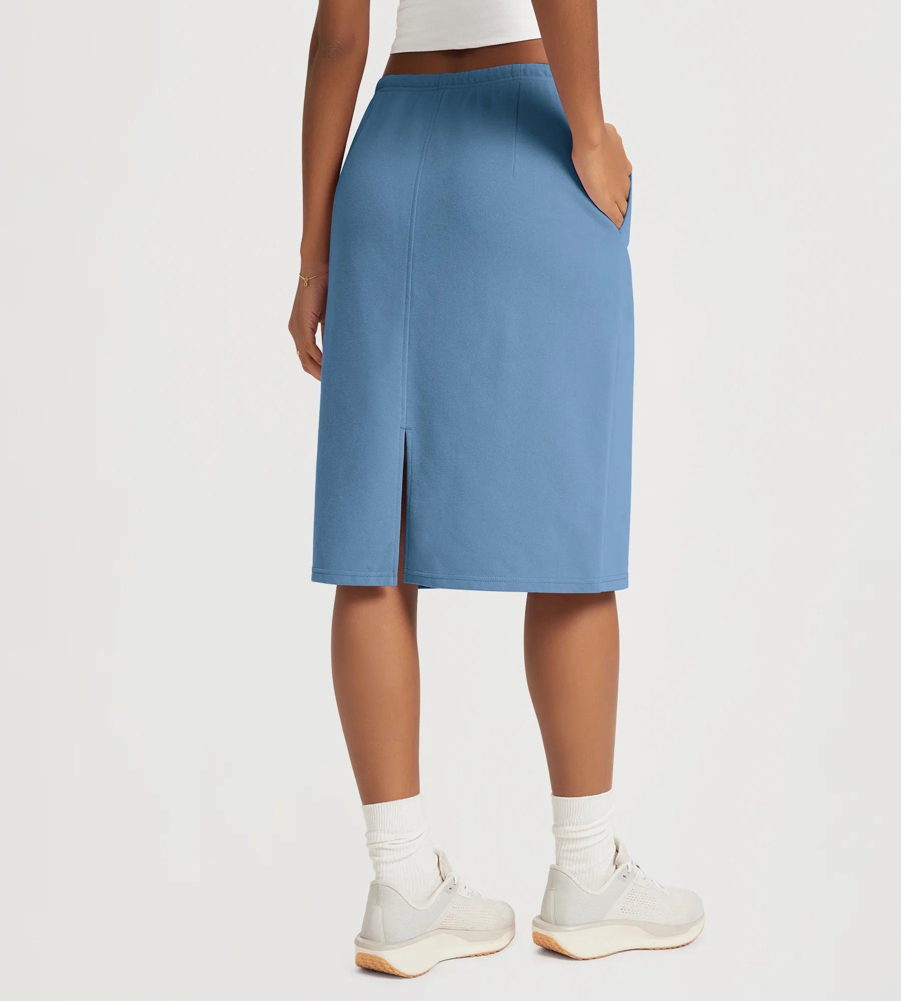 Back Split Knee Length Skirt with Pockets