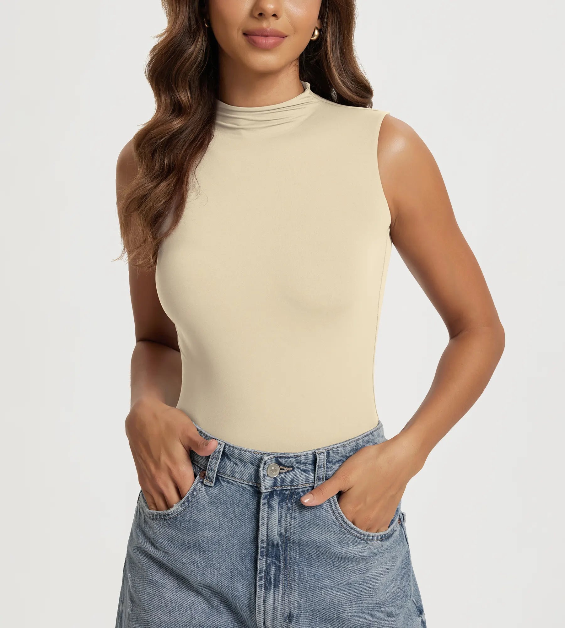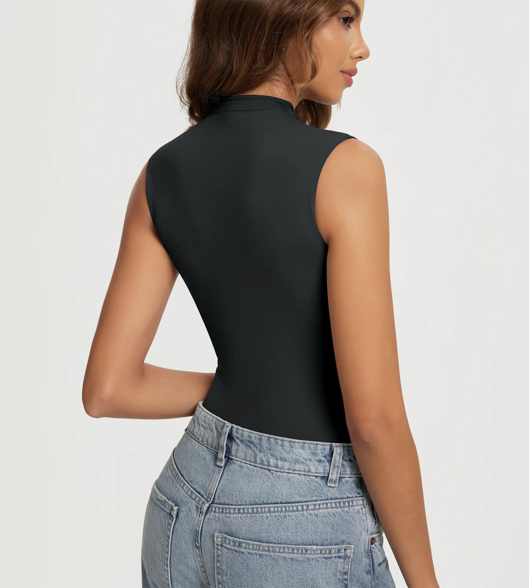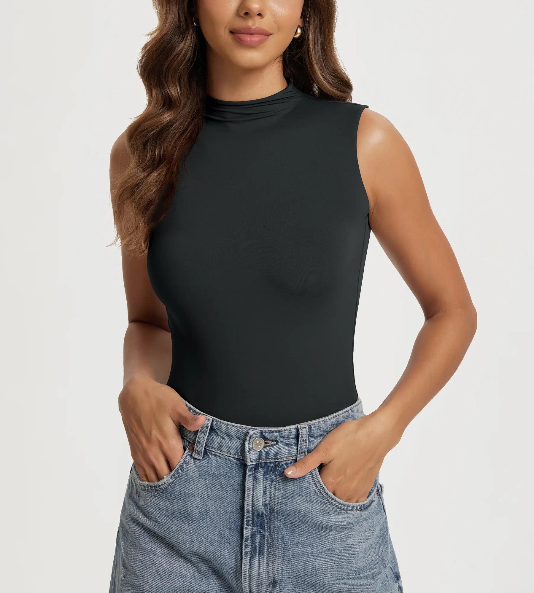 ODODOS Women's Double Layer Mock Neck Tank Top