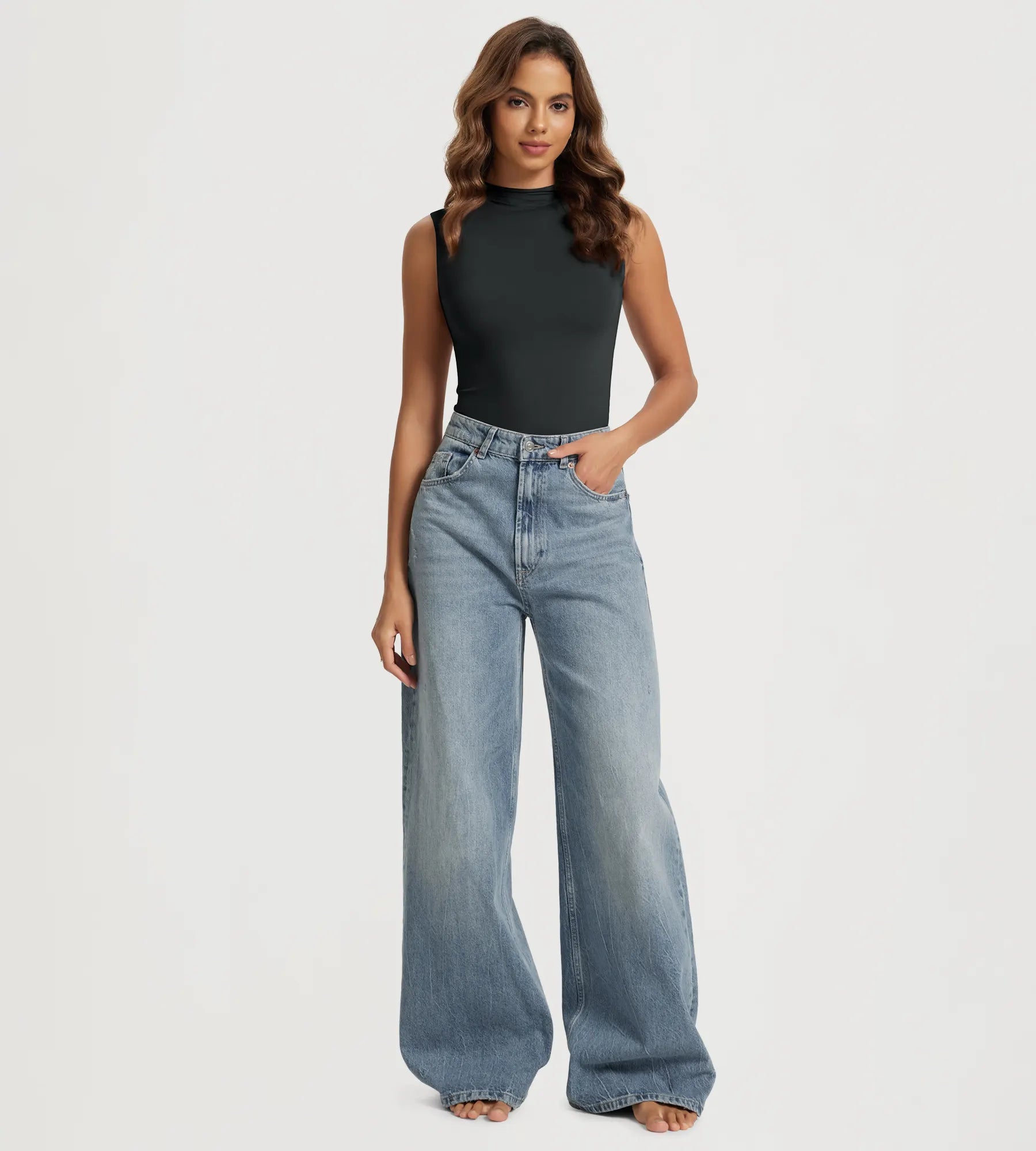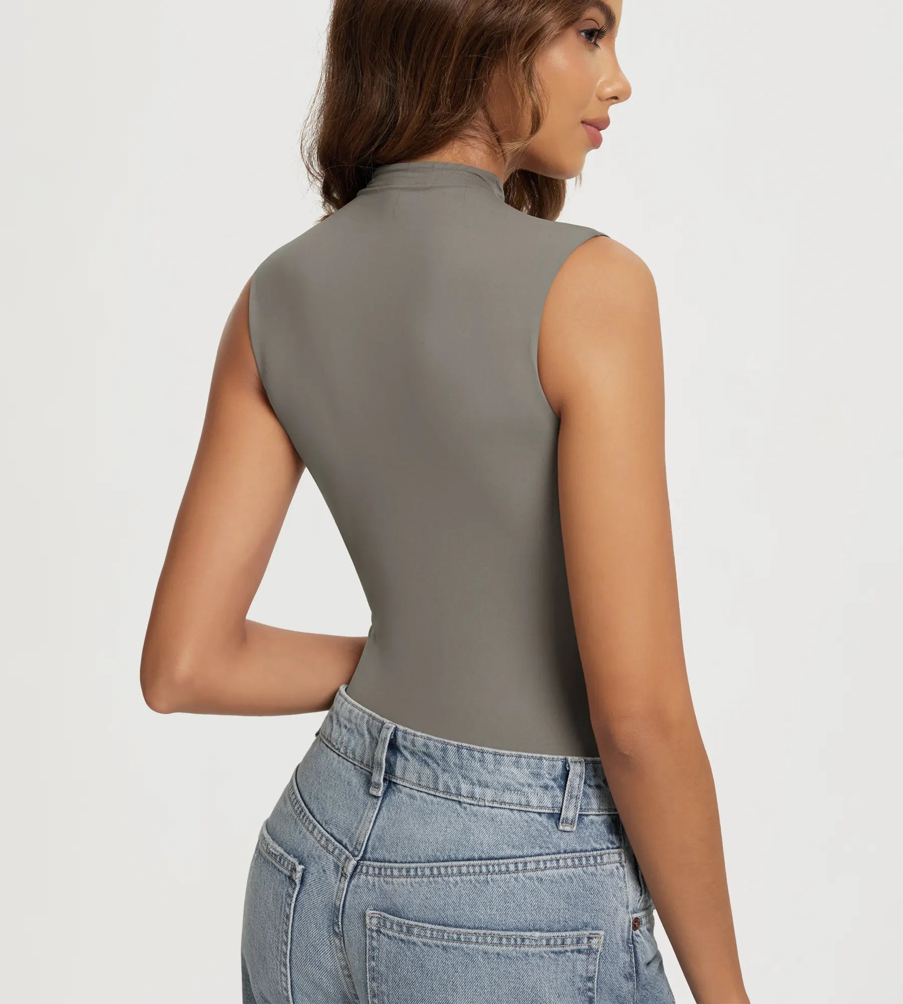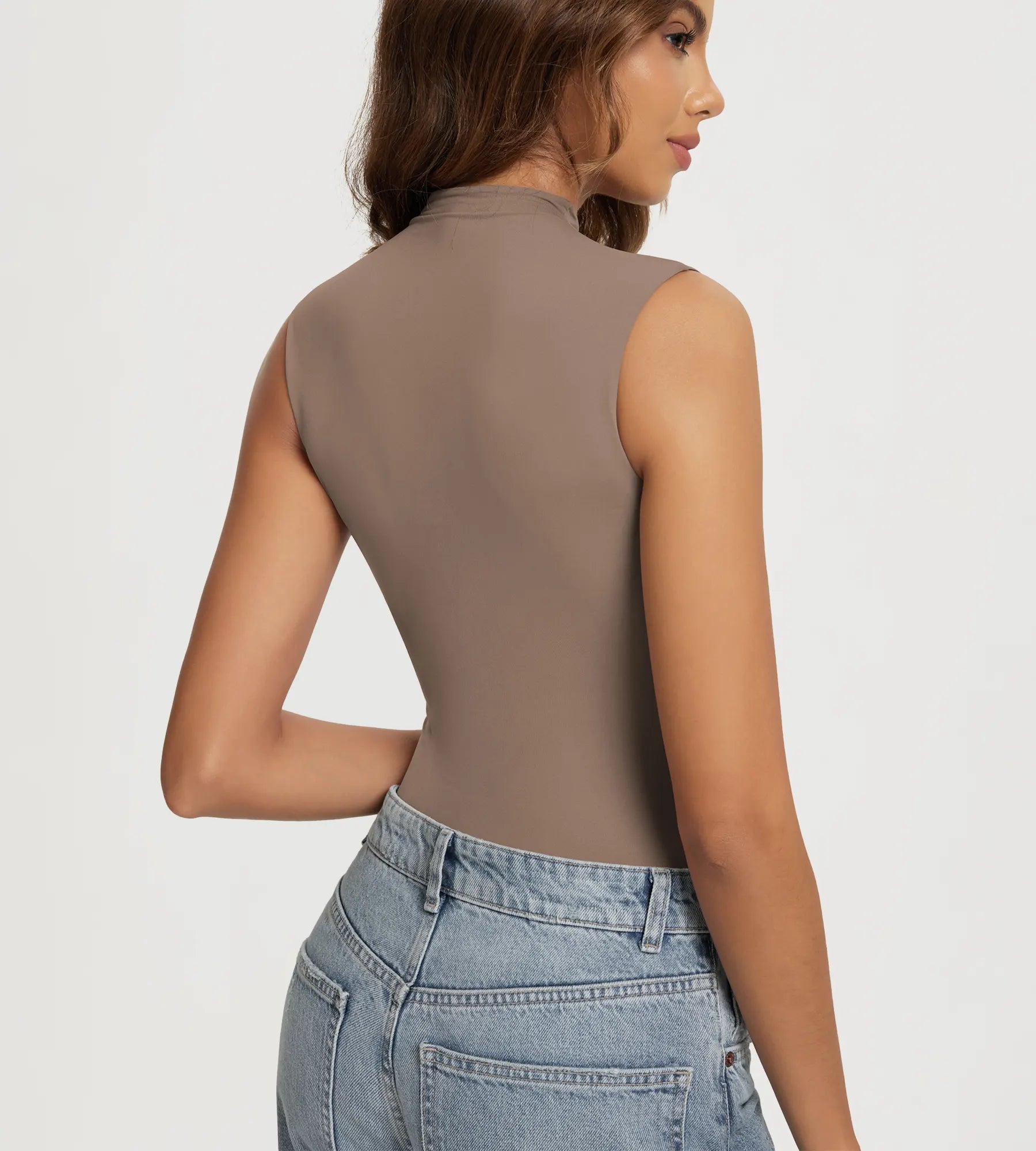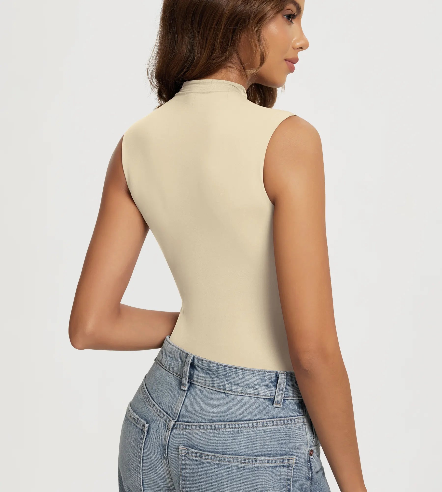 ODODOS Women's Double Layer Mock Neck Tank Top