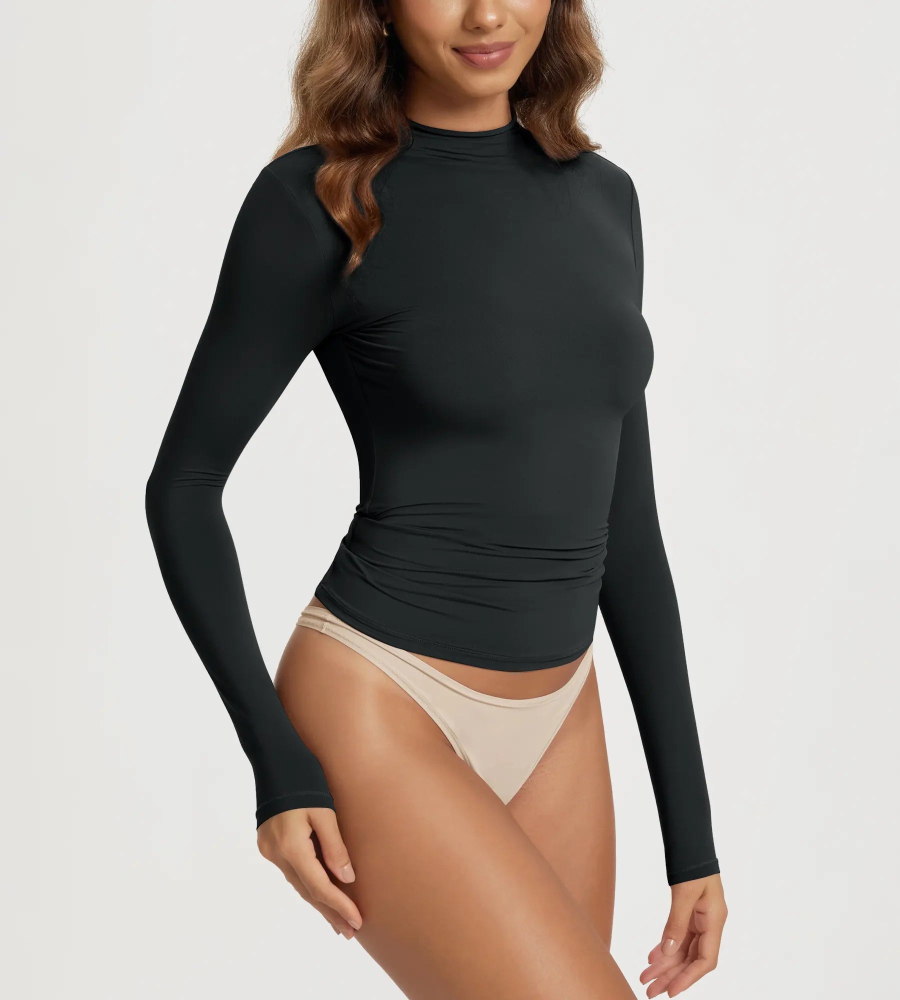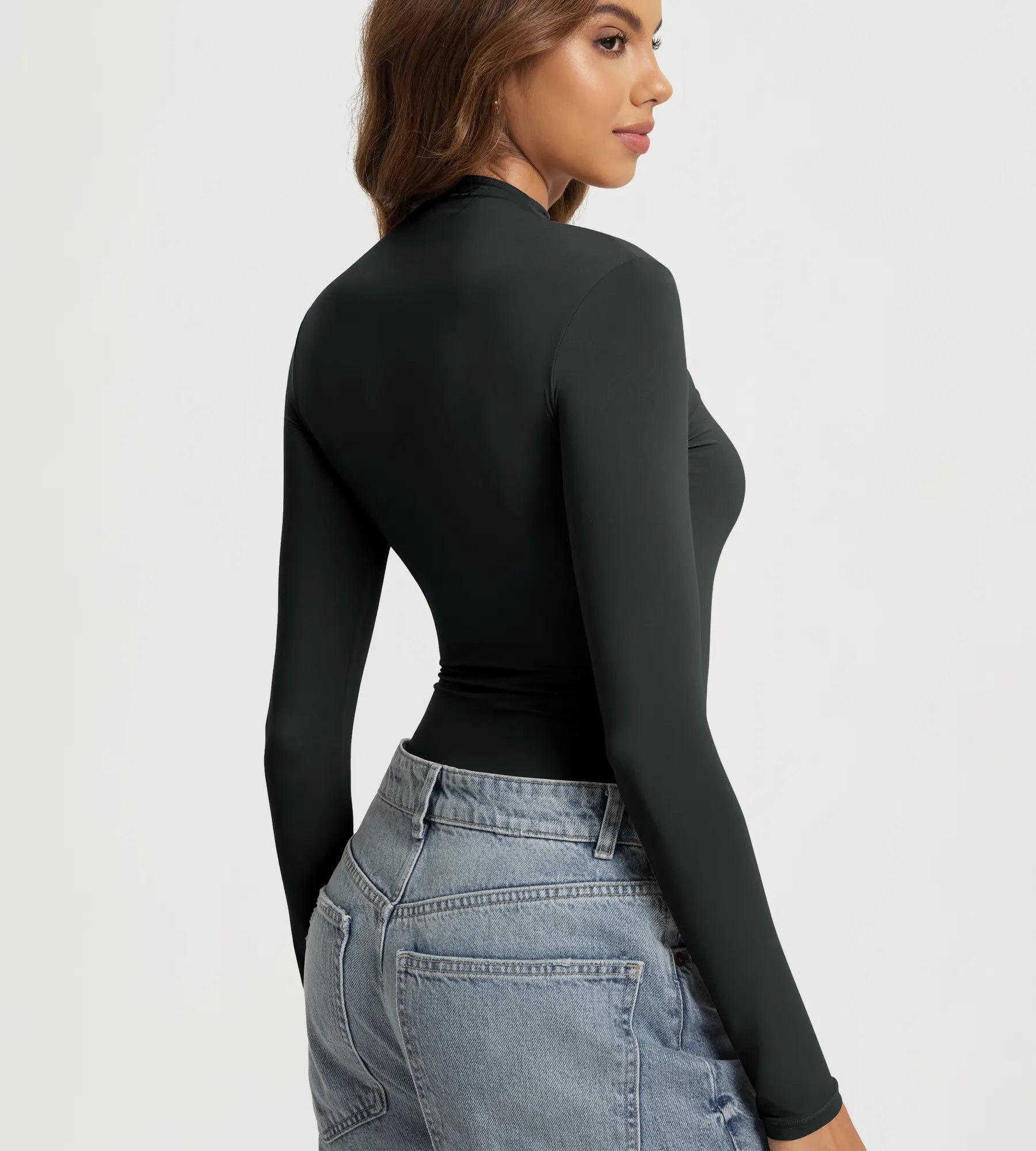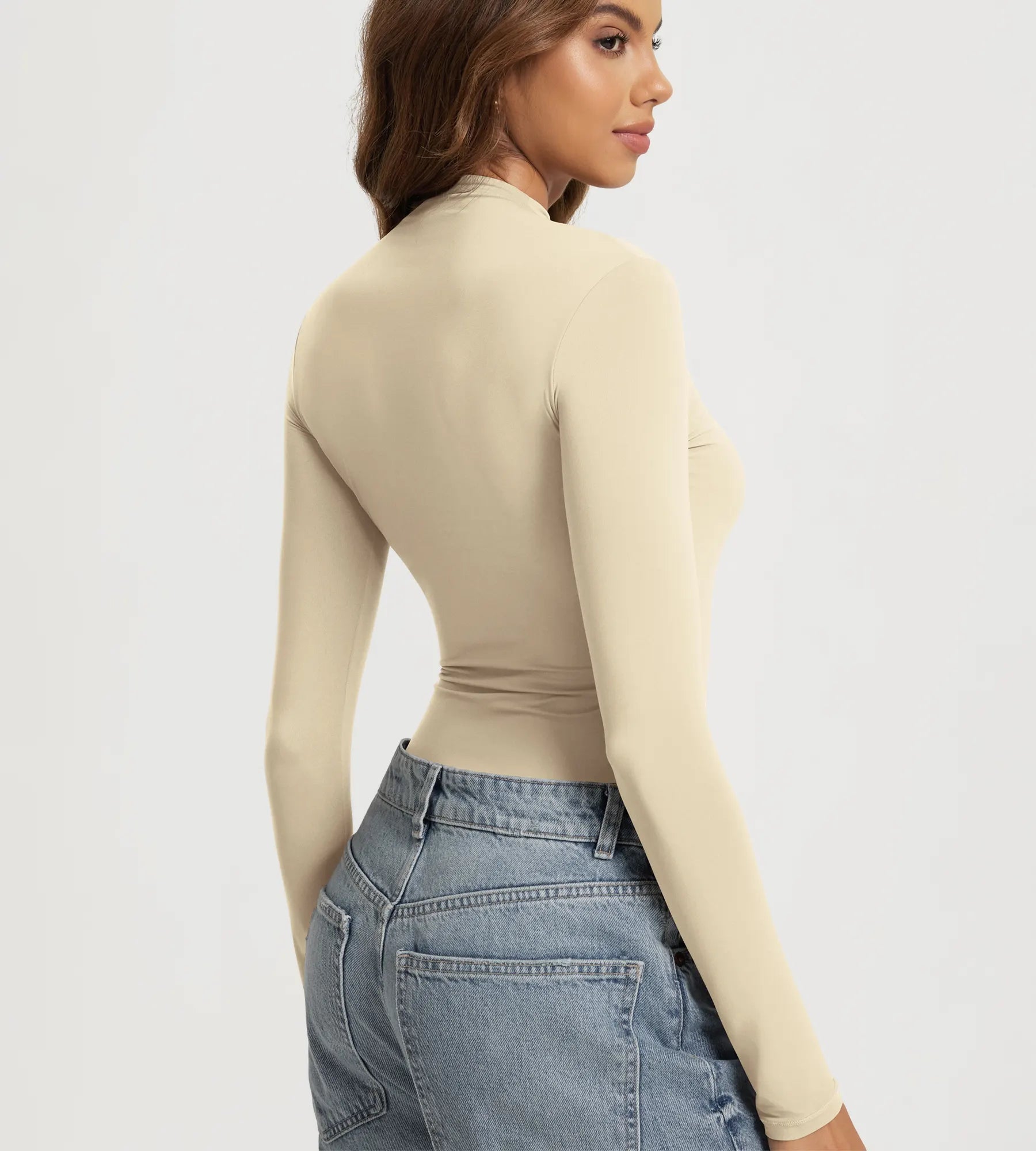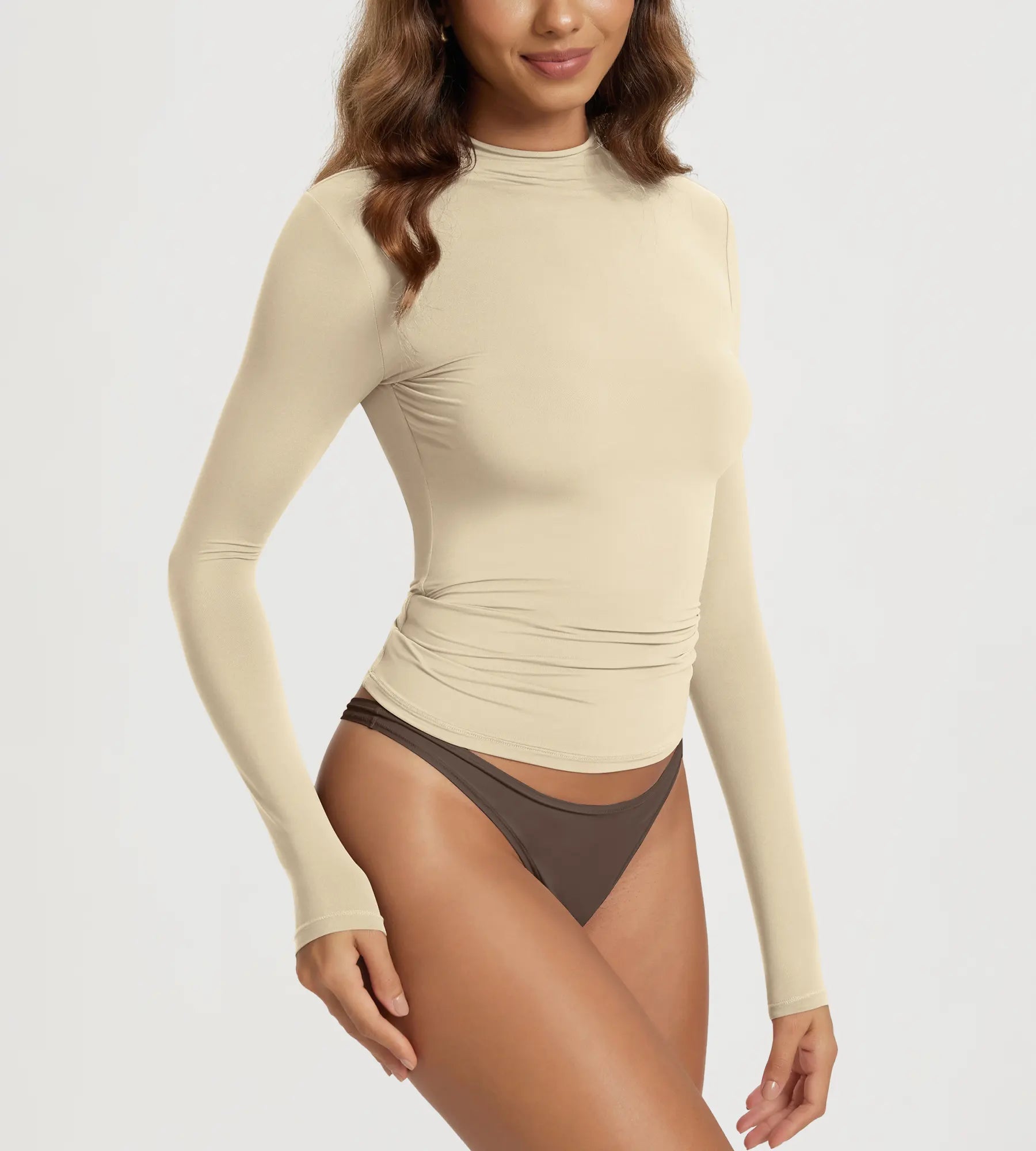 ODODOS Women's Double Layer Mock Neck Long Sleeve