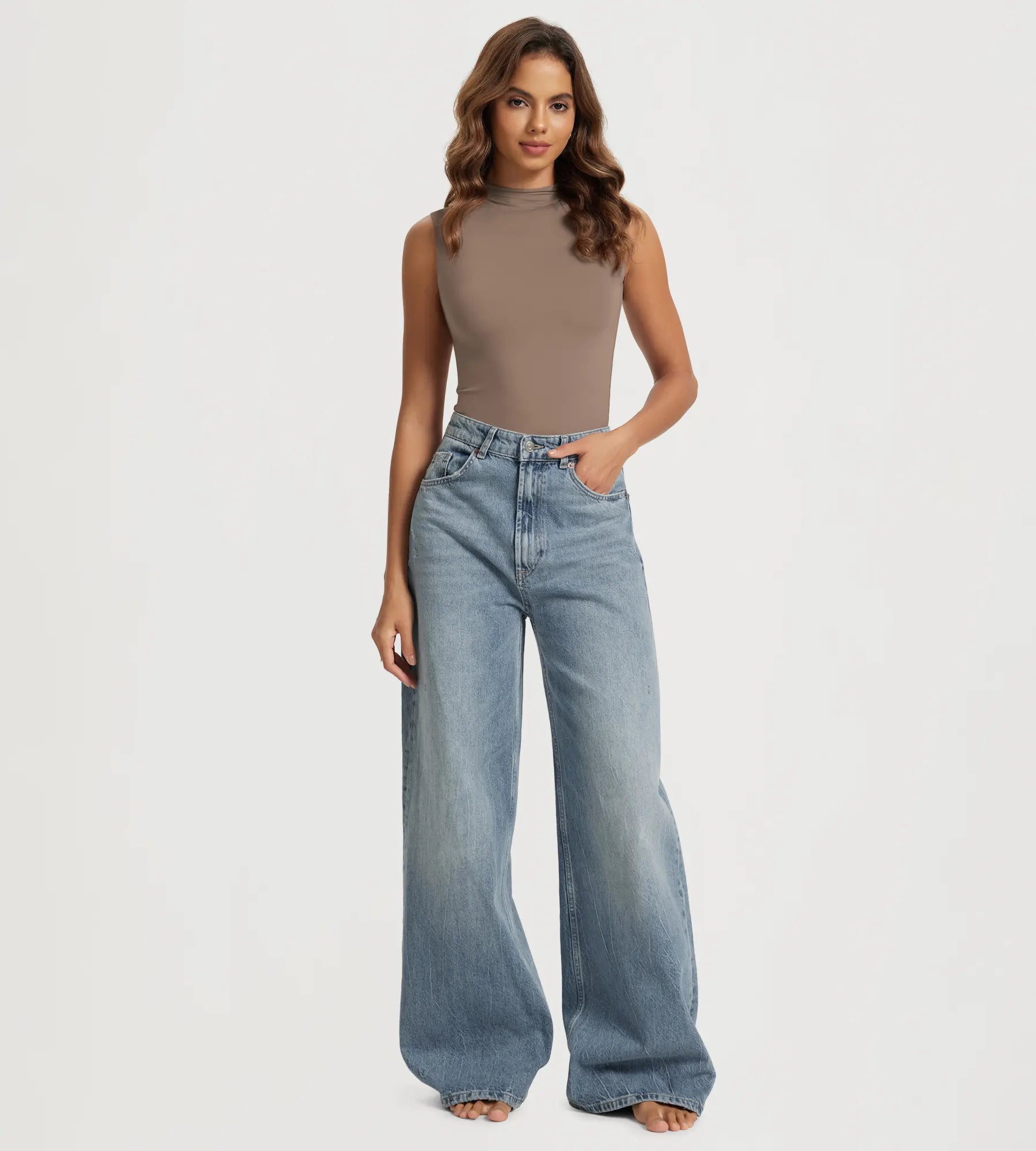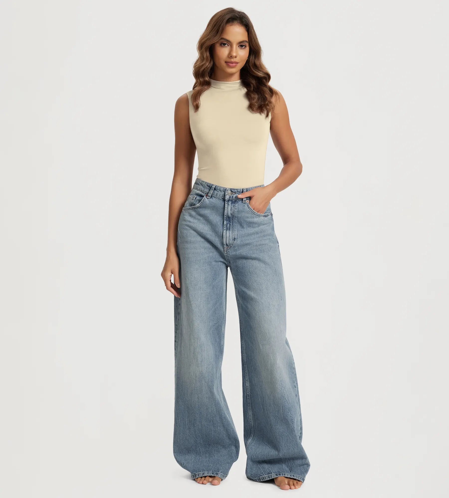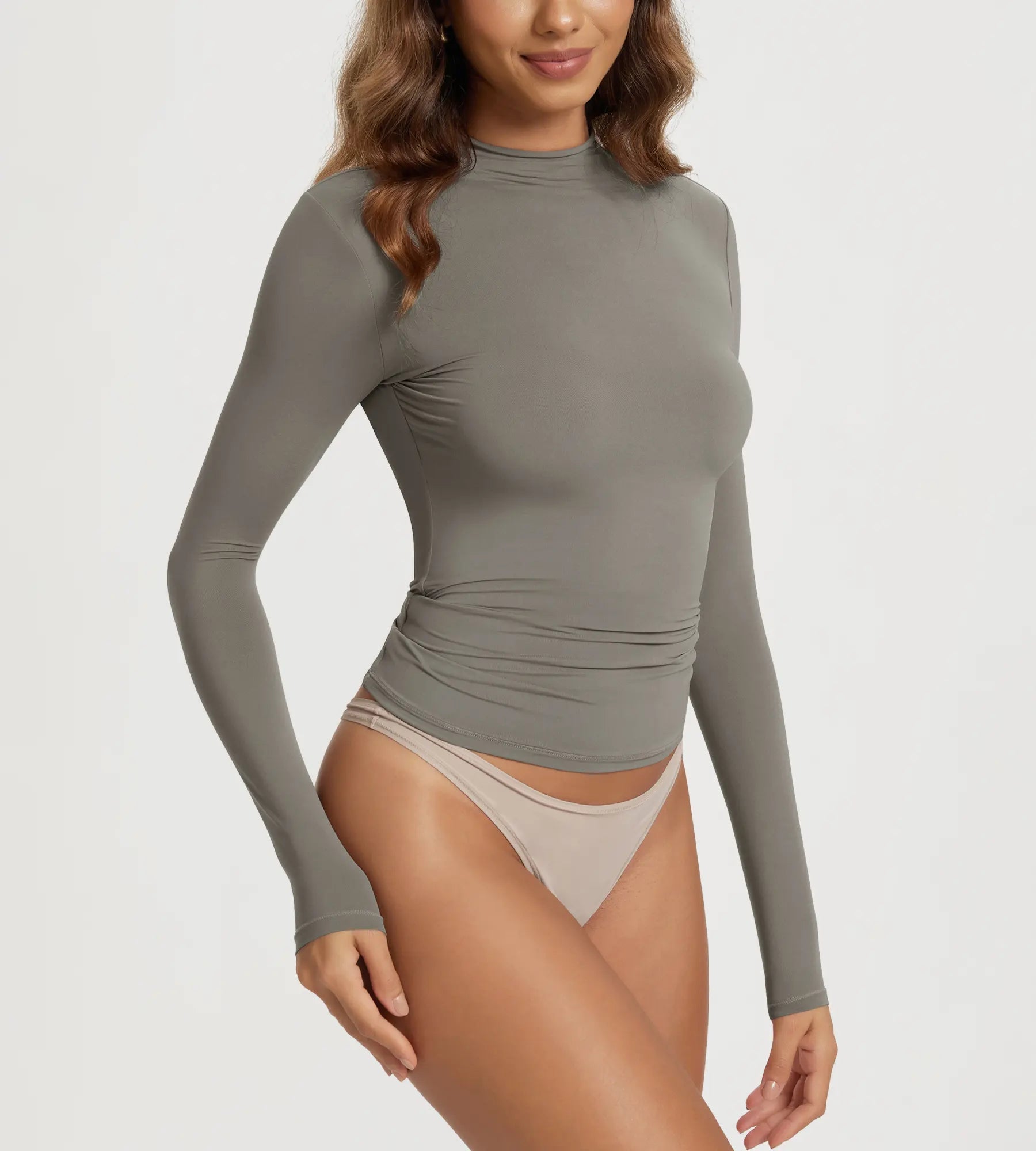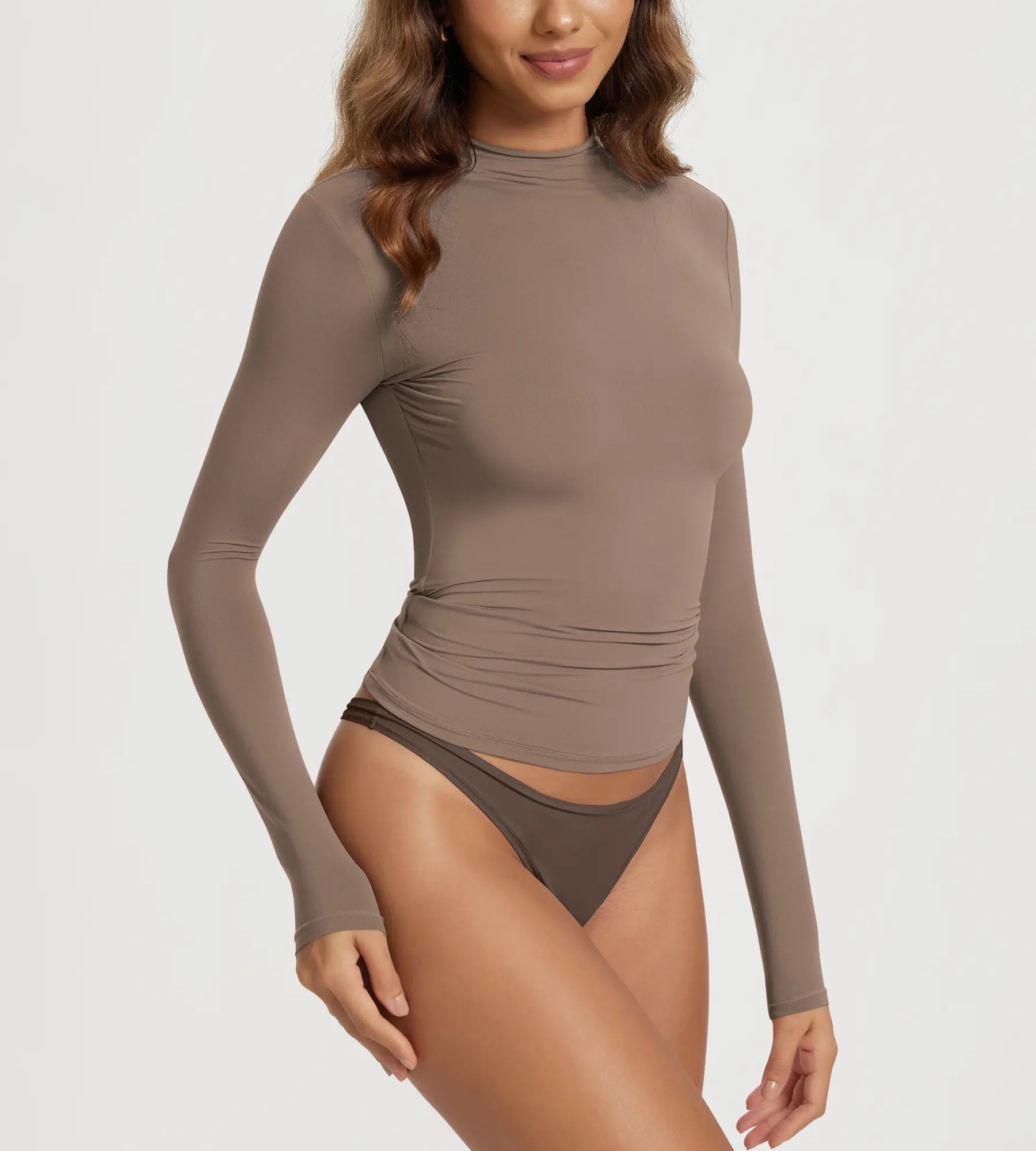 ODODOS Women's Double Layer Mock Neck Long Sleeve