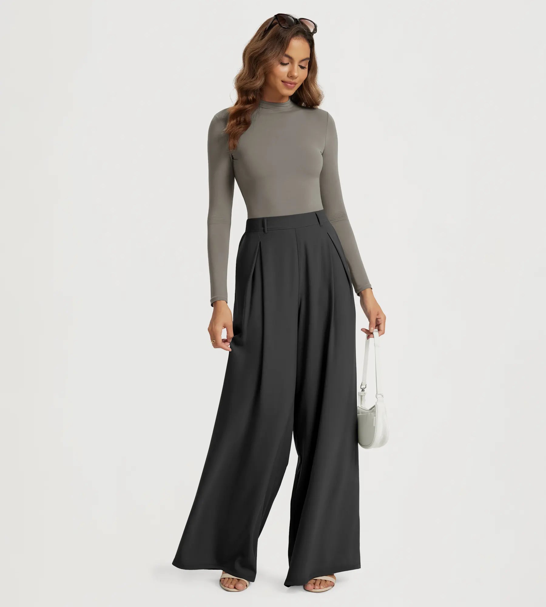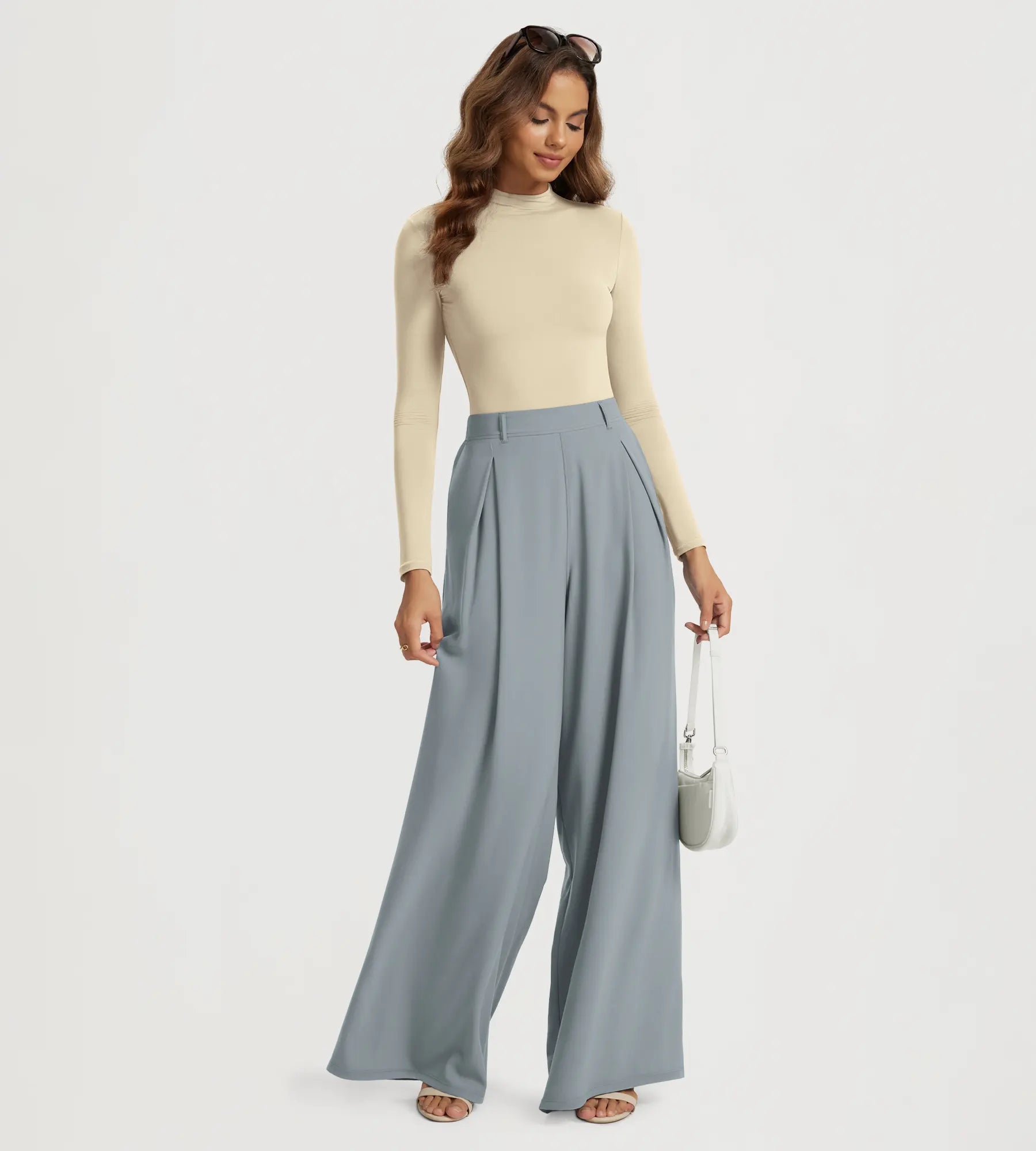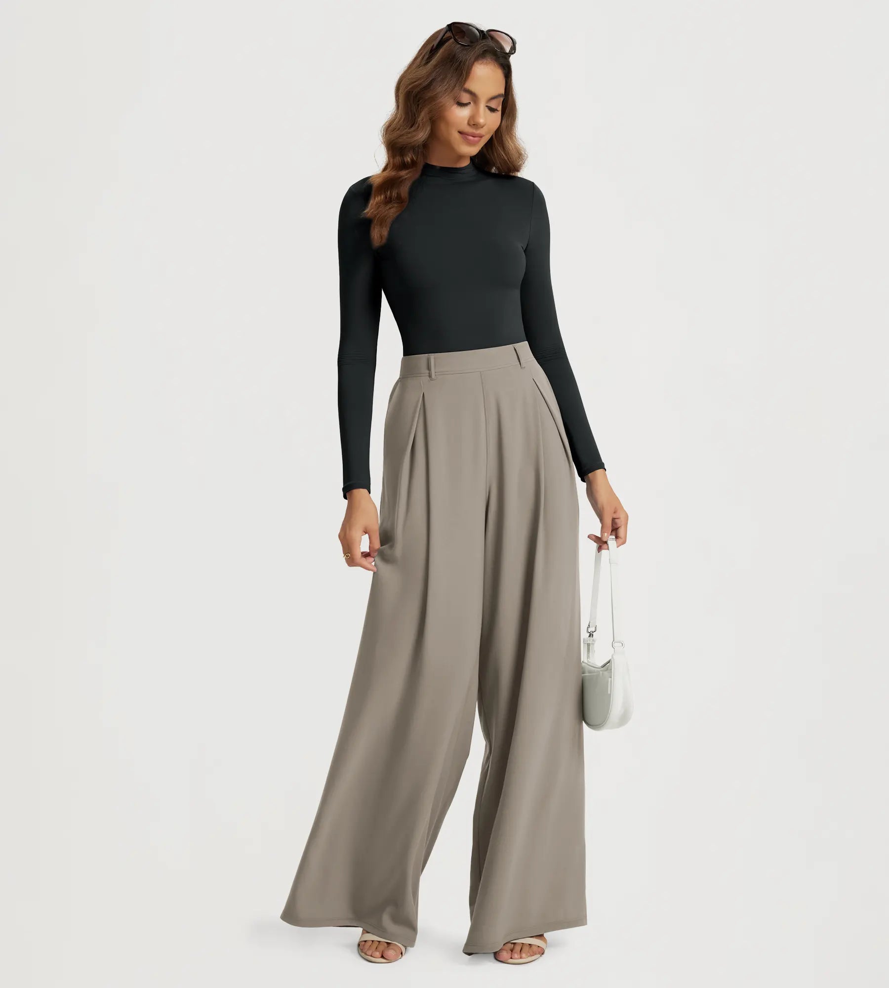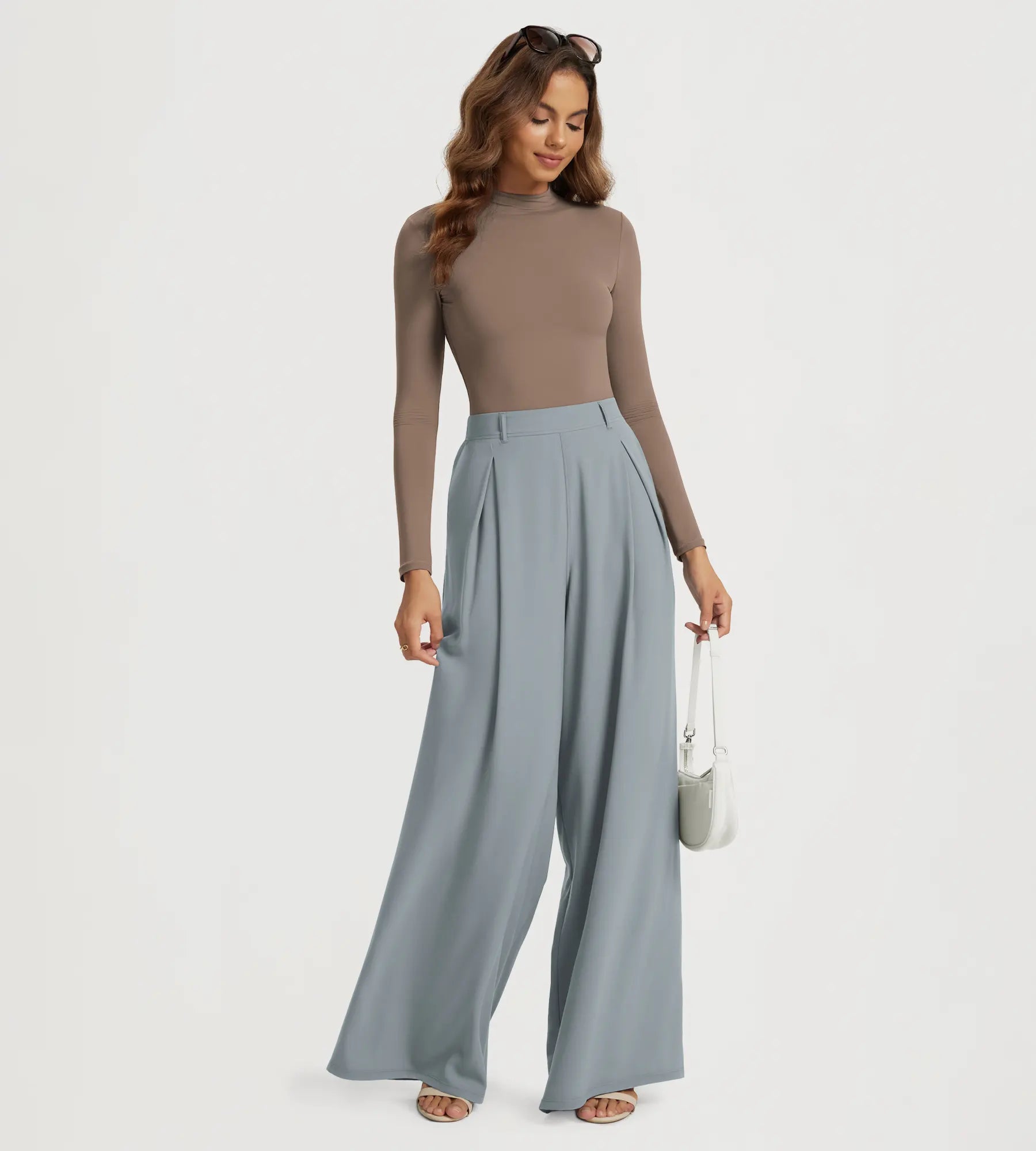 30" High Waist Casual Straight Leg Pants with Back Pocket