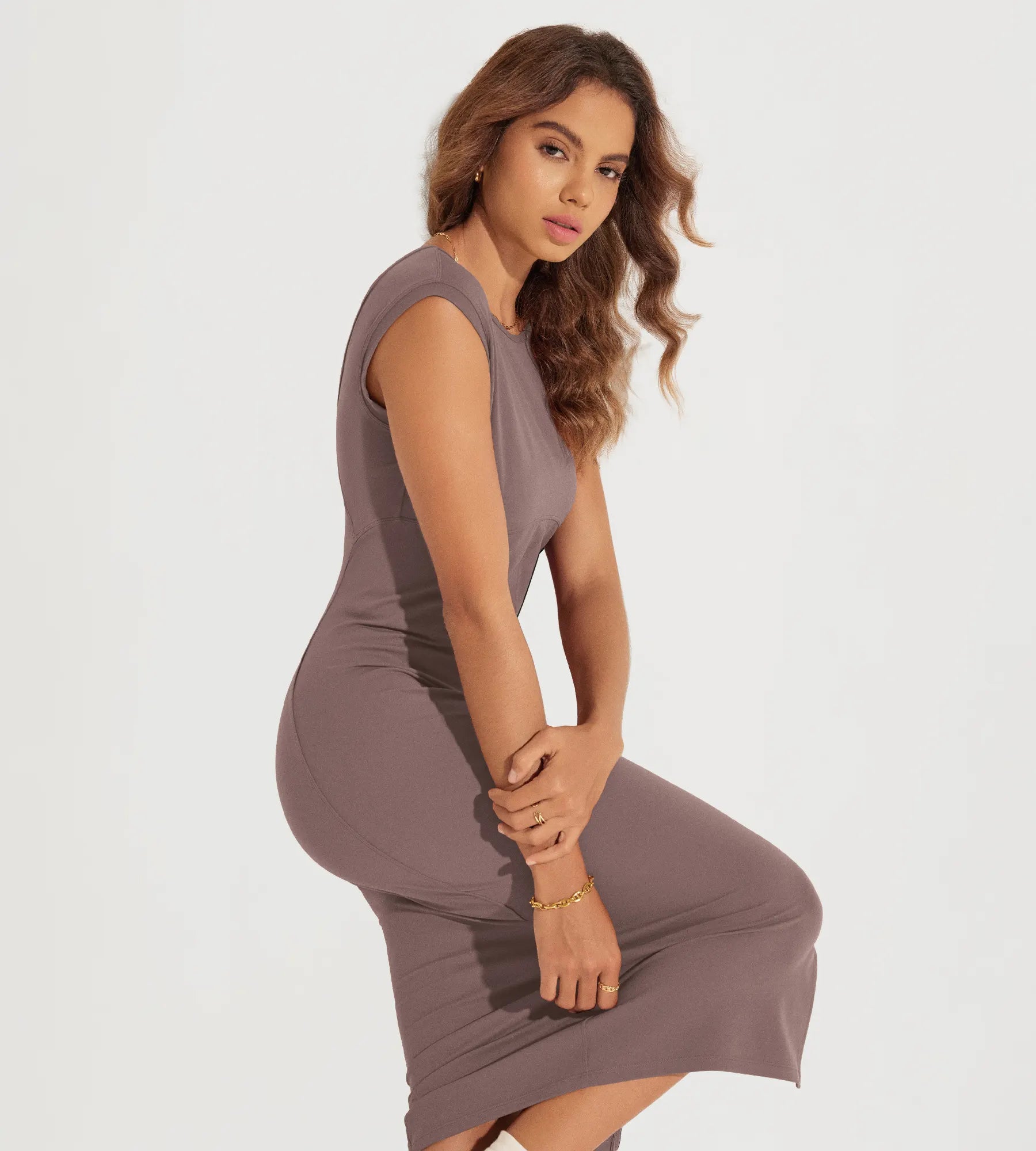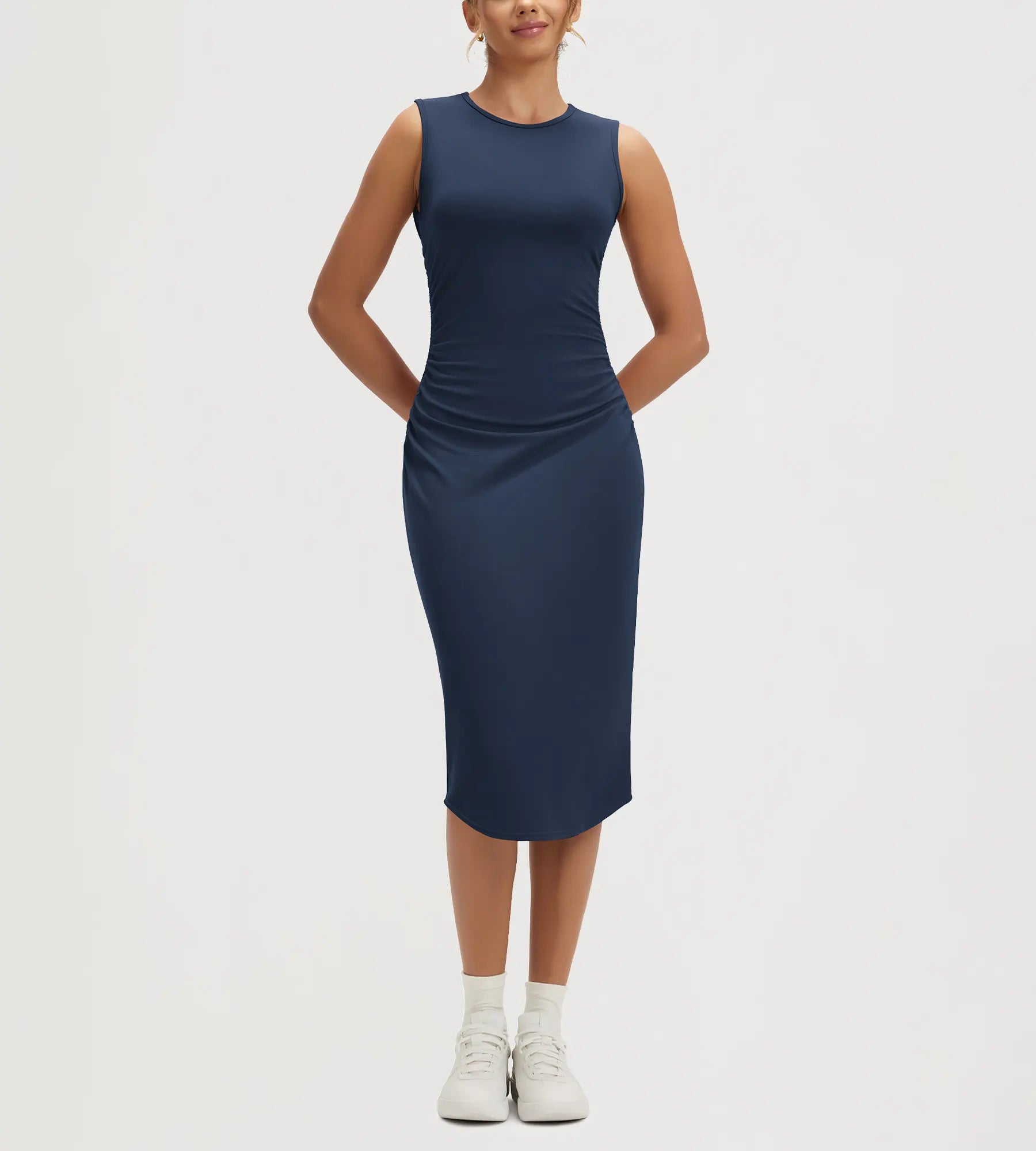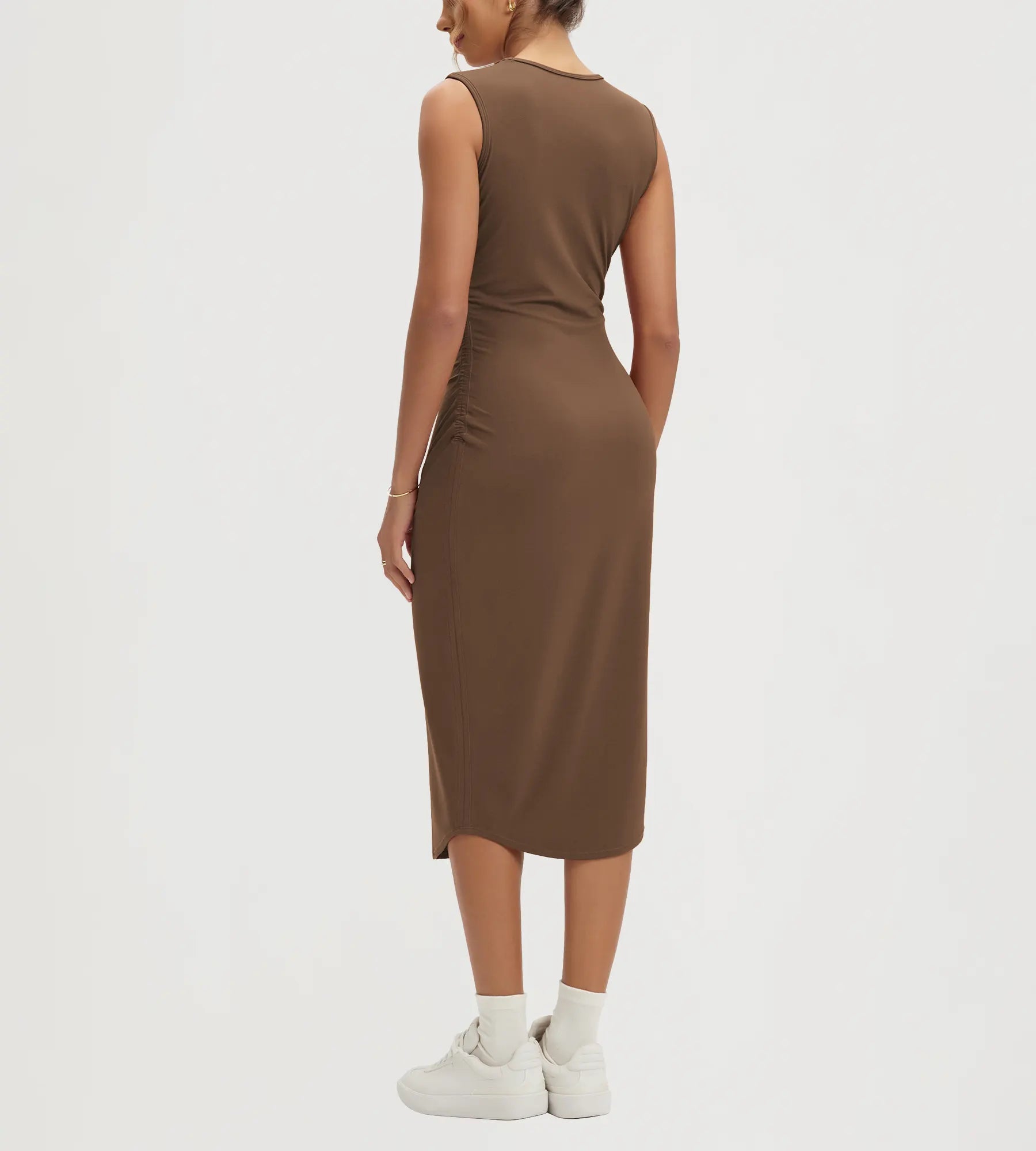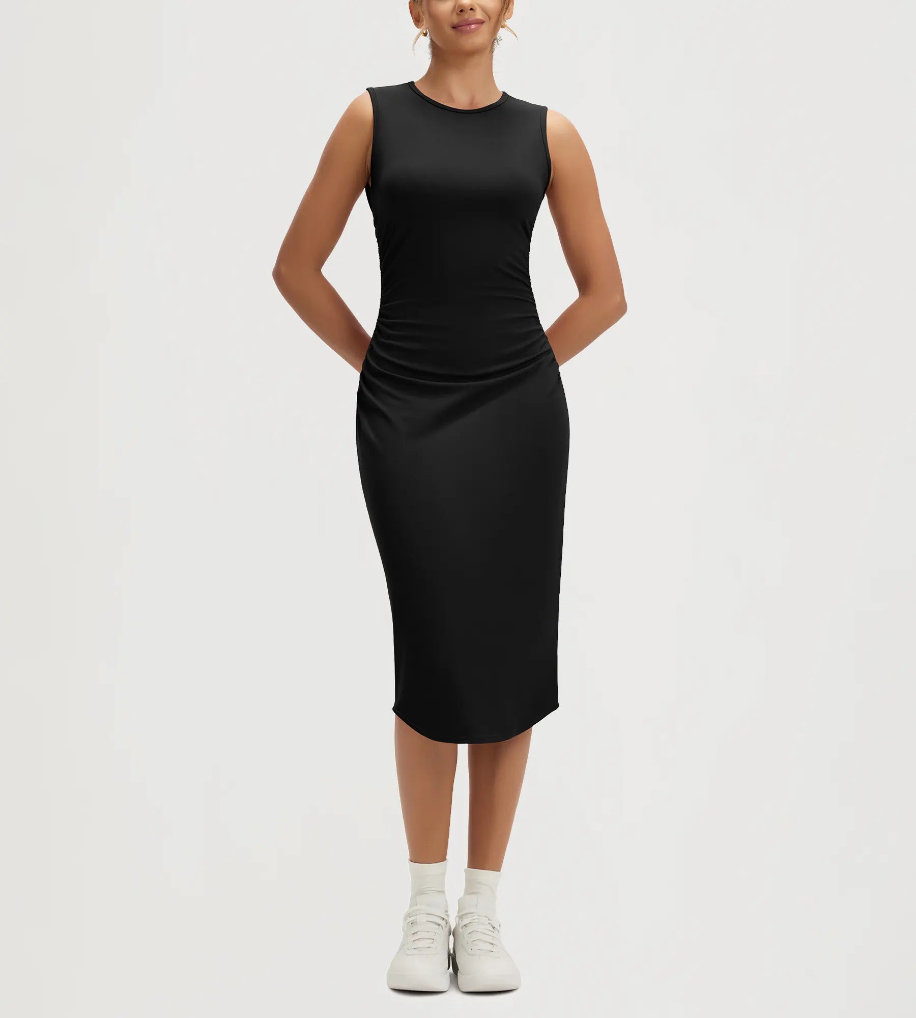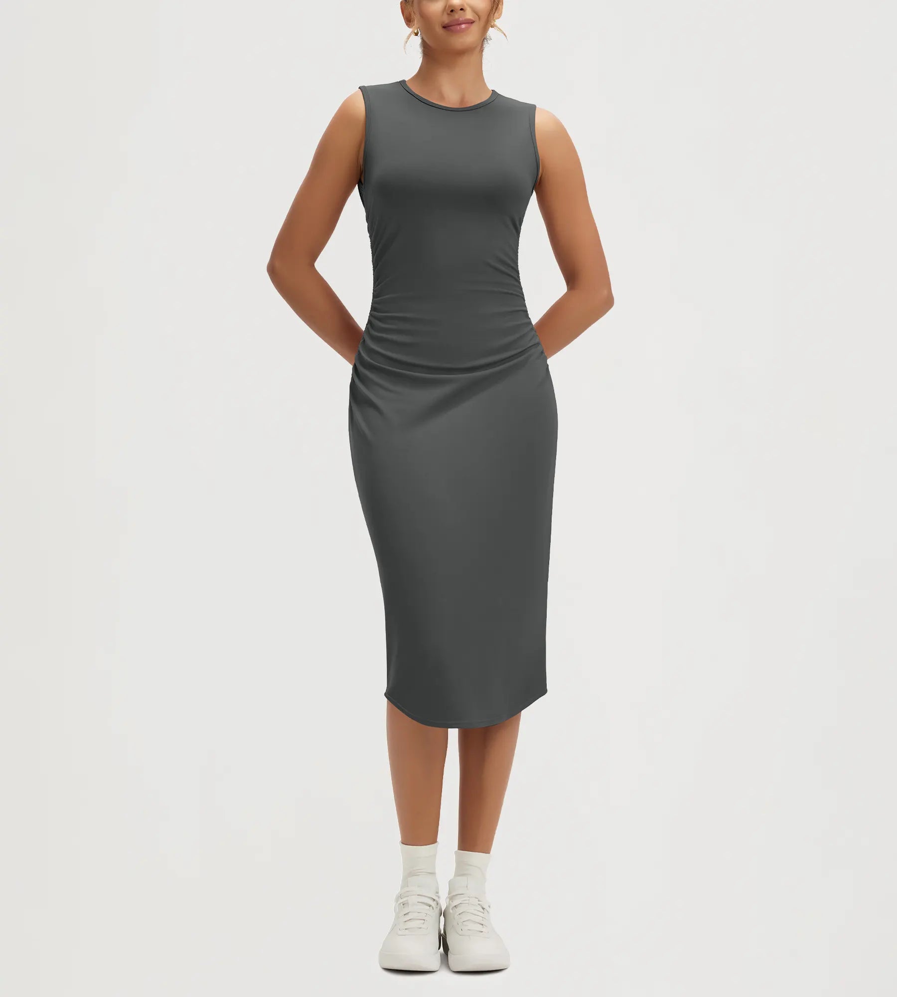 ODODOS Women's Side Shirred Midi Bodycon Tank Dress Crewneck