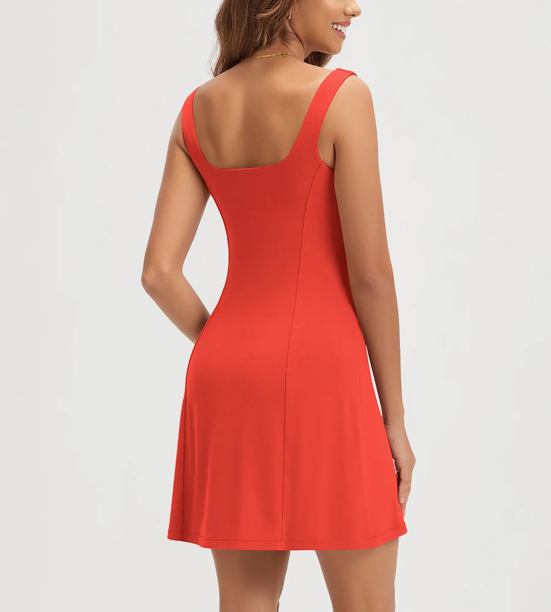ODODOS Women's Front Slit Tank Dress with Separate Shorts and Built in Bra