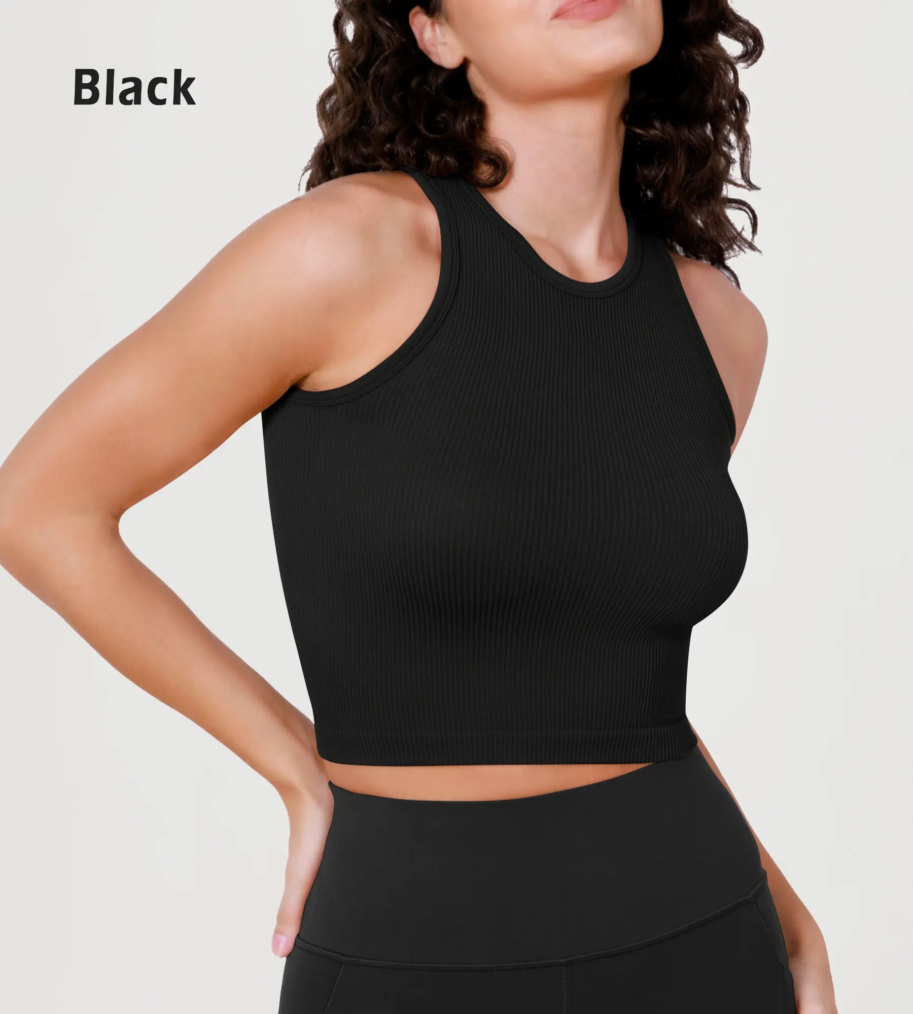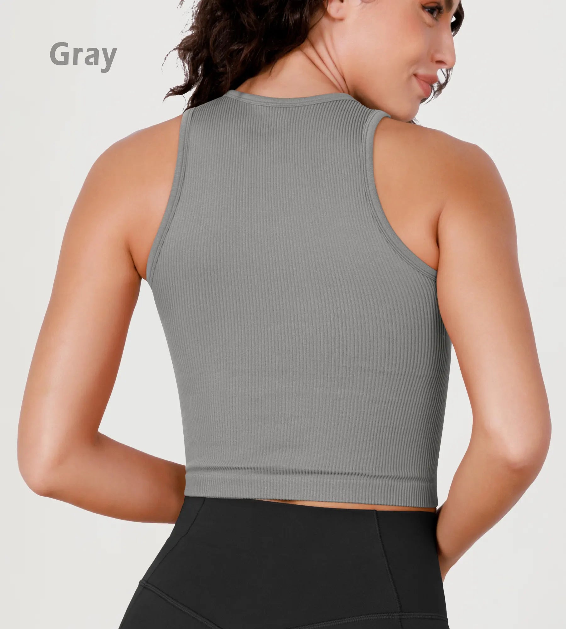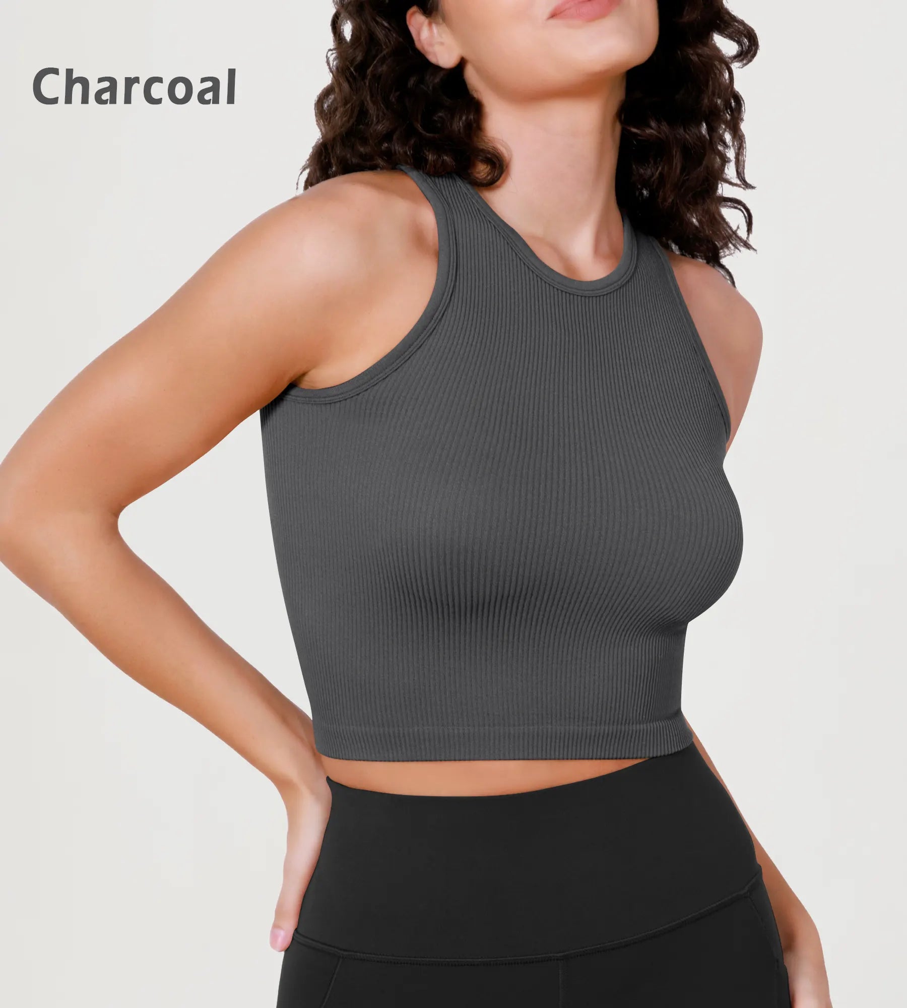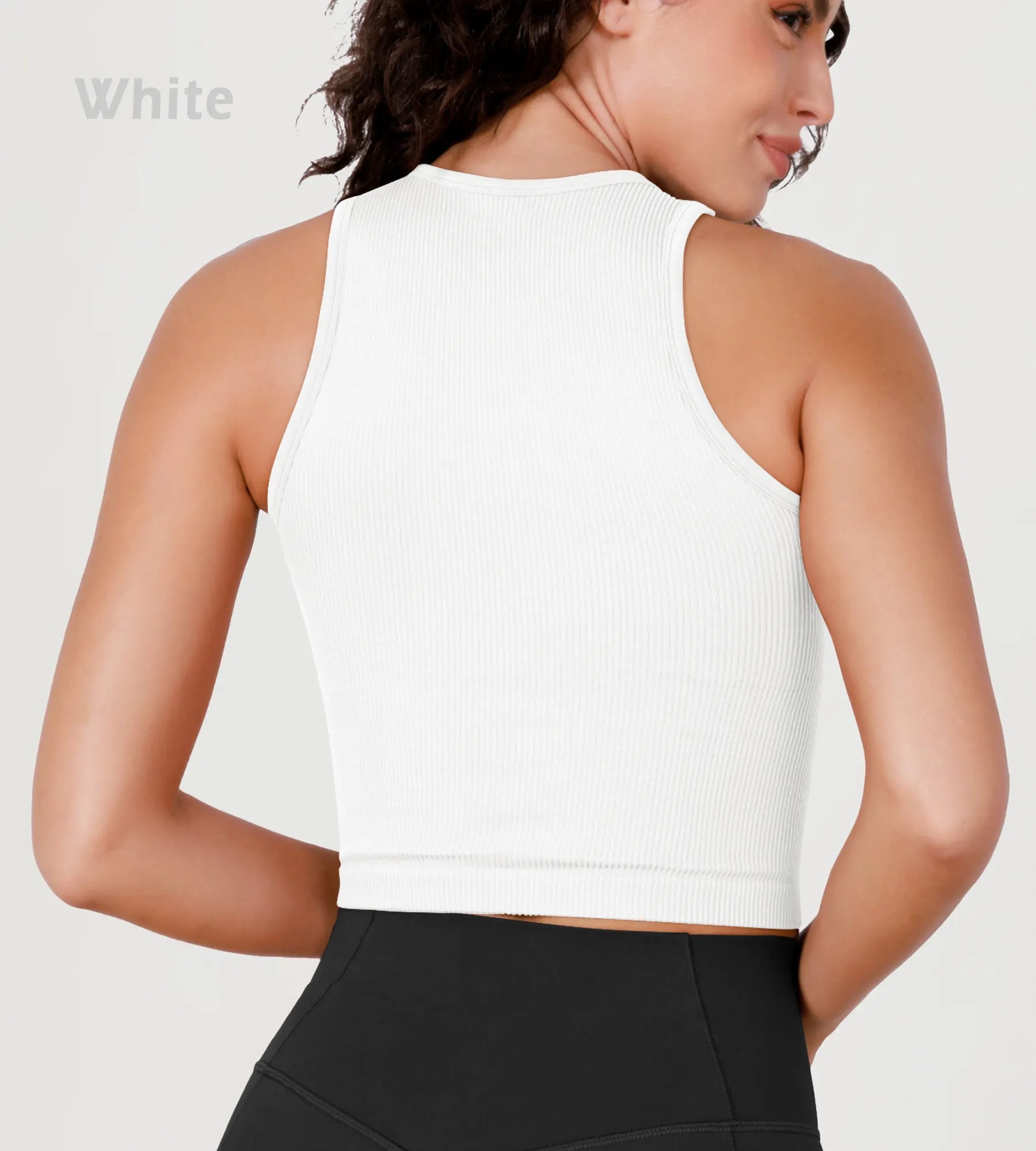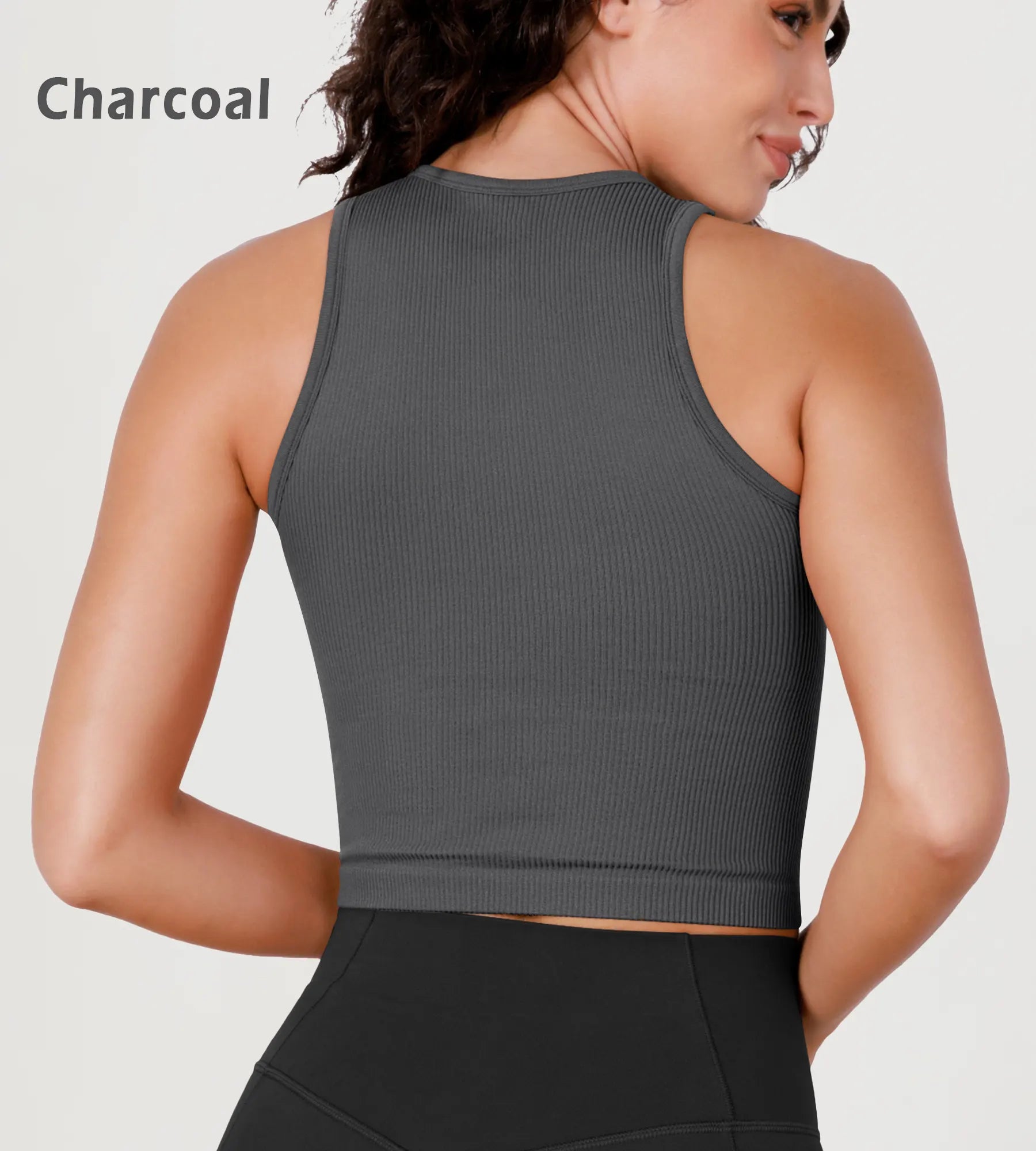 3-Pack Seamless Ribbed High Neck Long Crop Tank Tops
