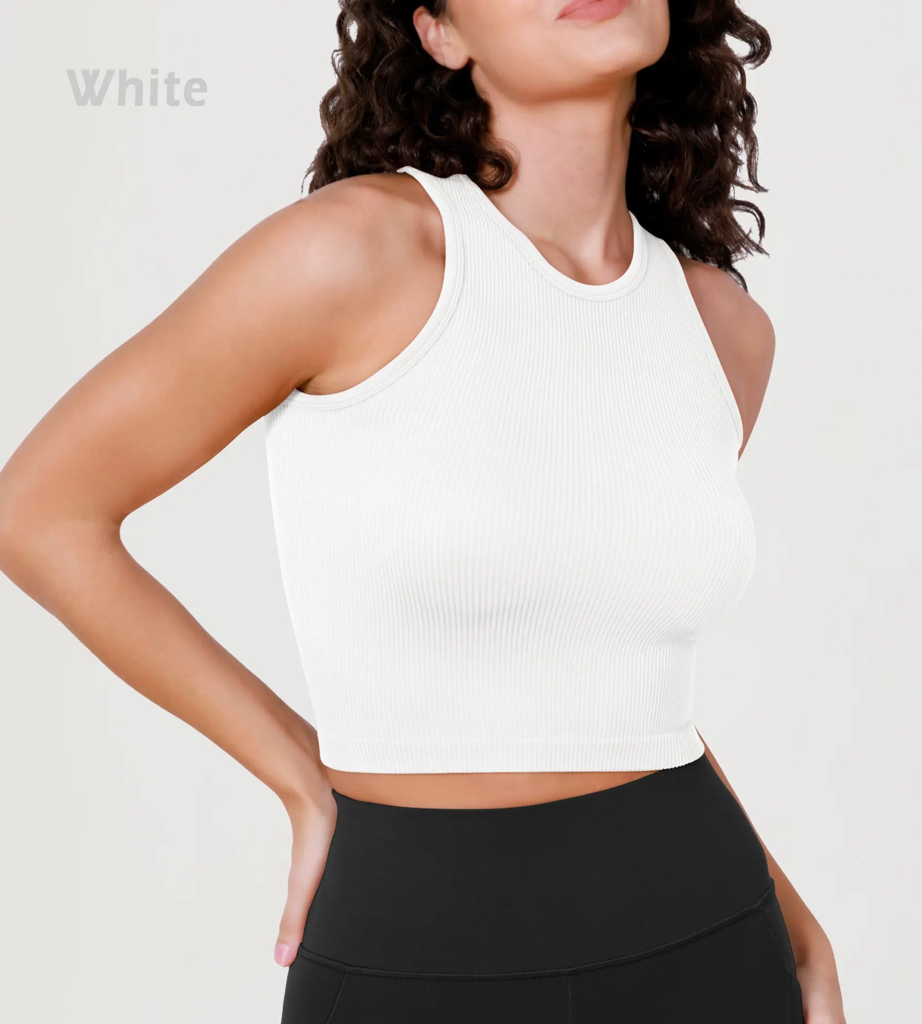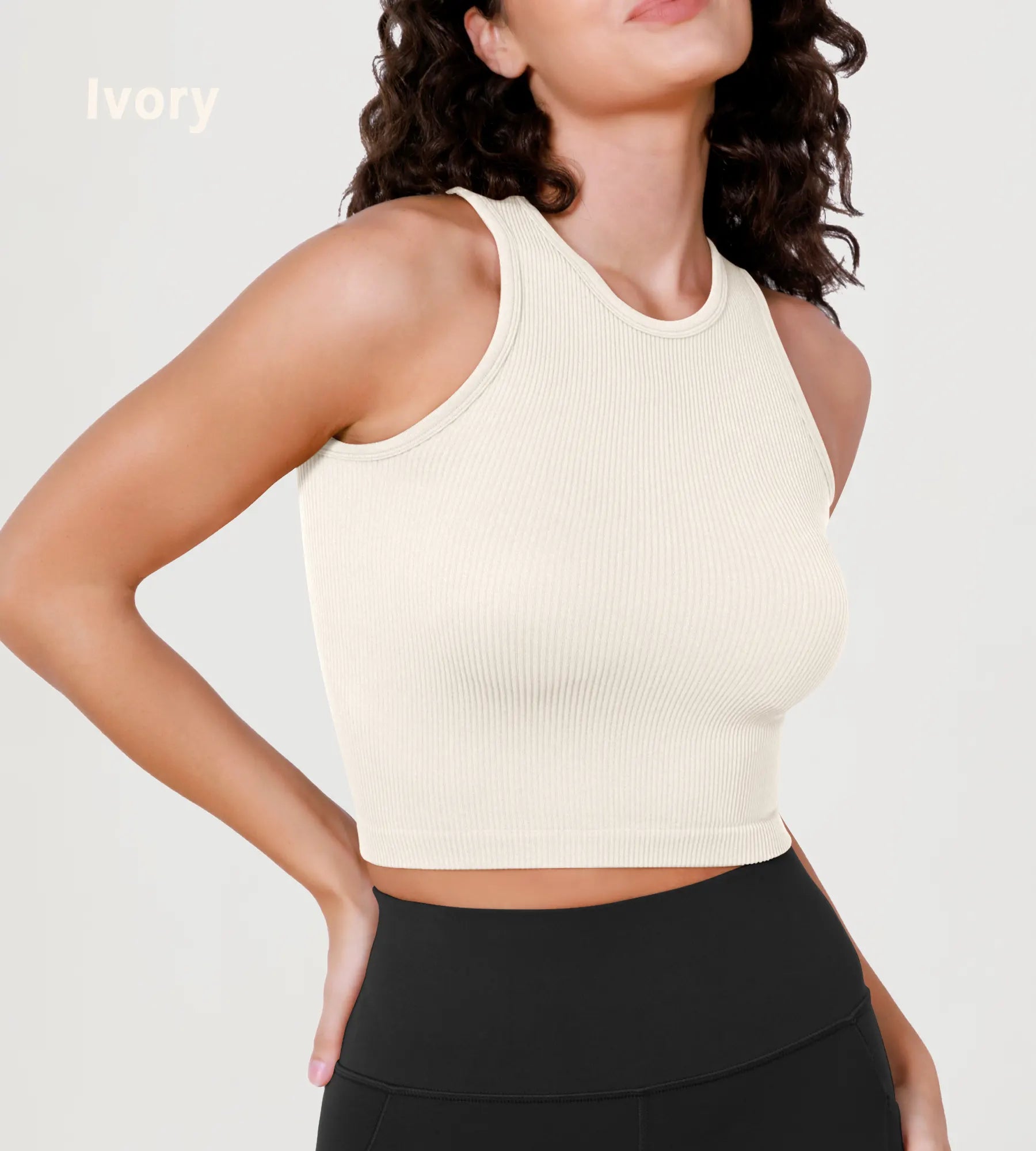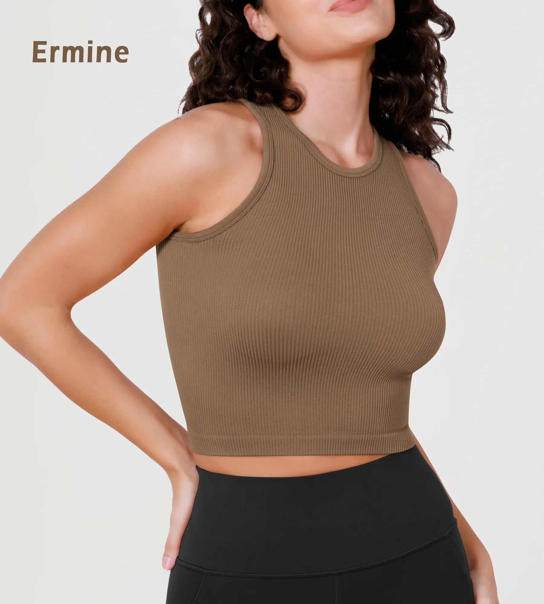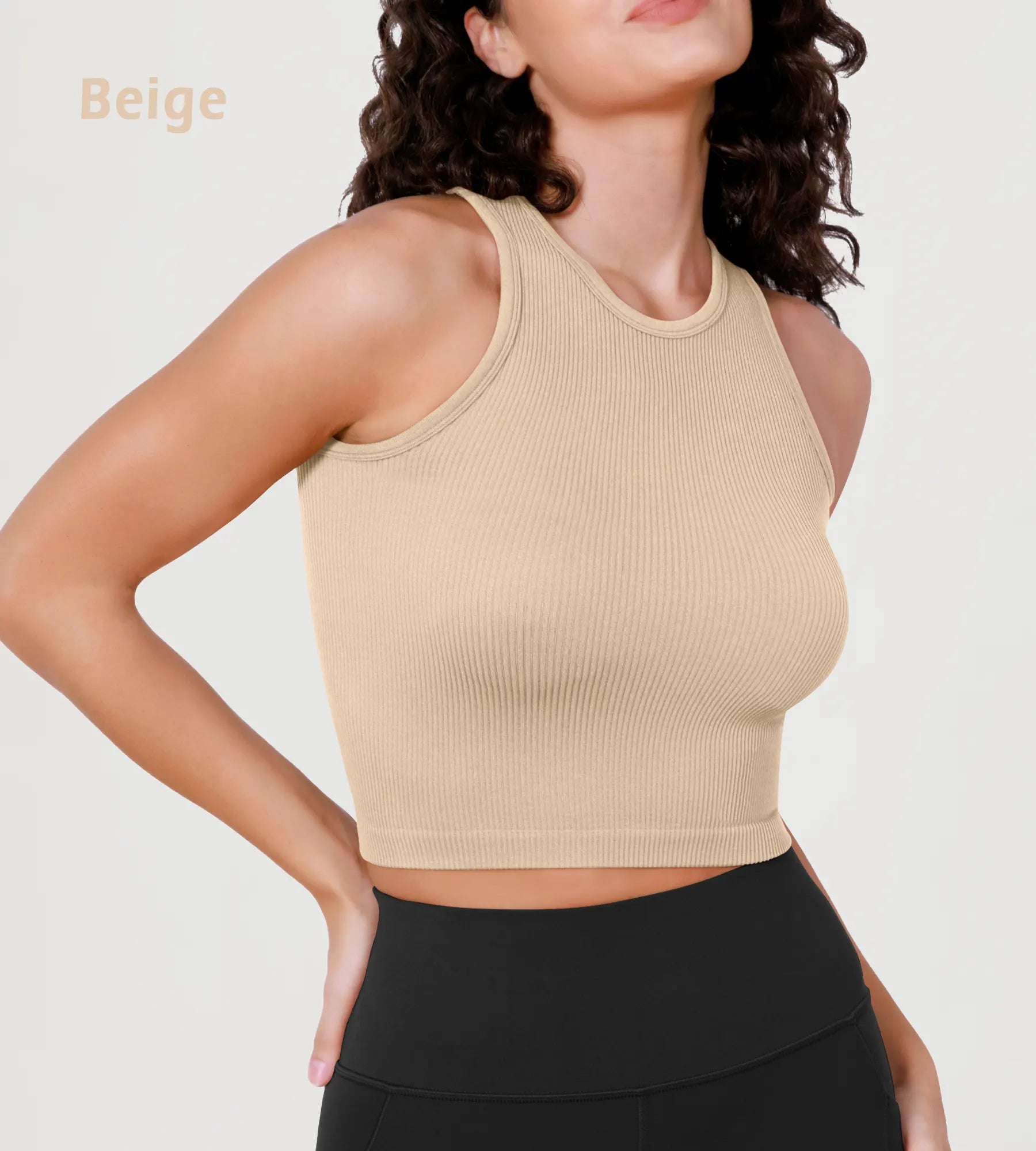3-Pack Seamless Ribbed High Neck Long Crop Tank Tops