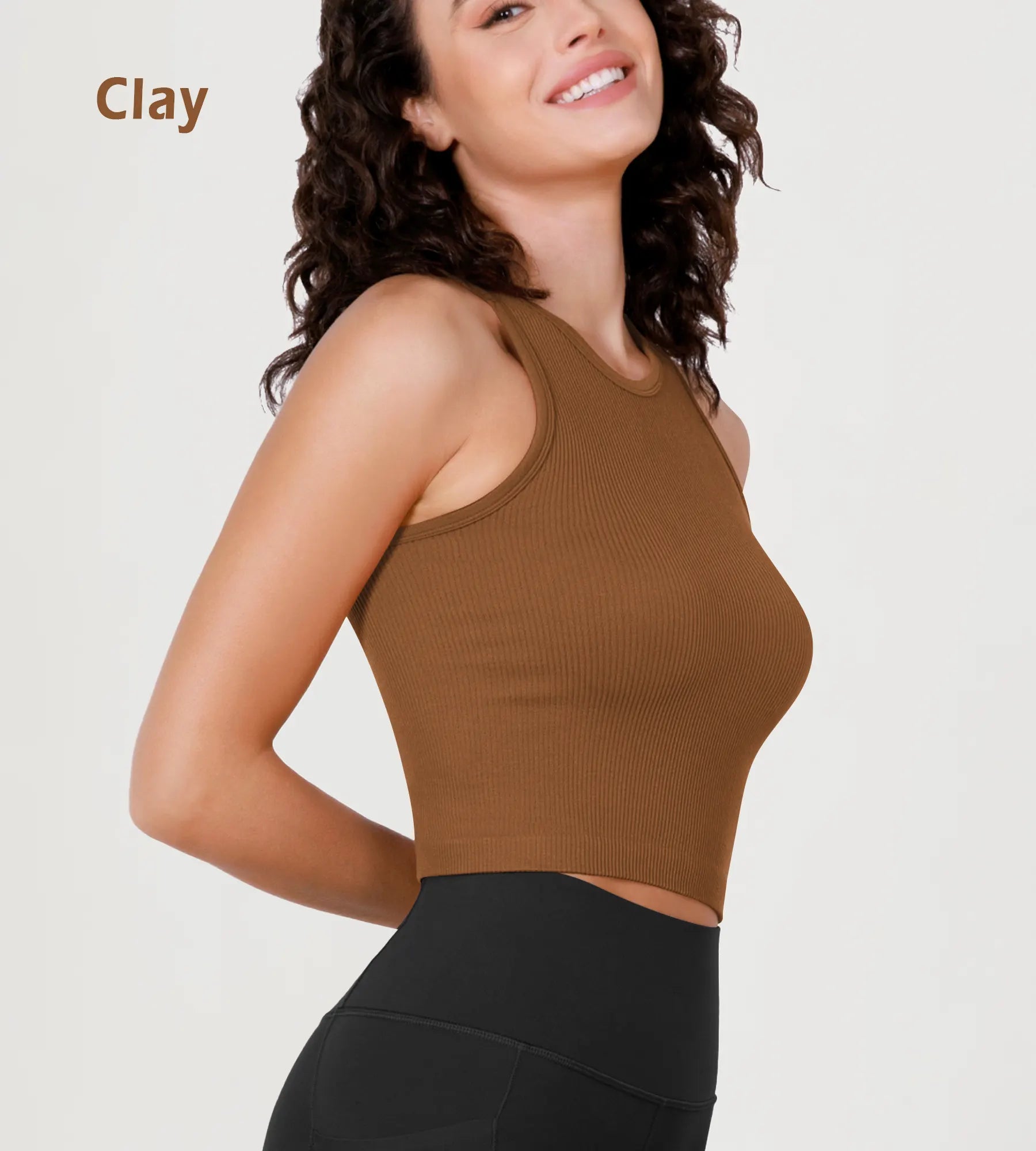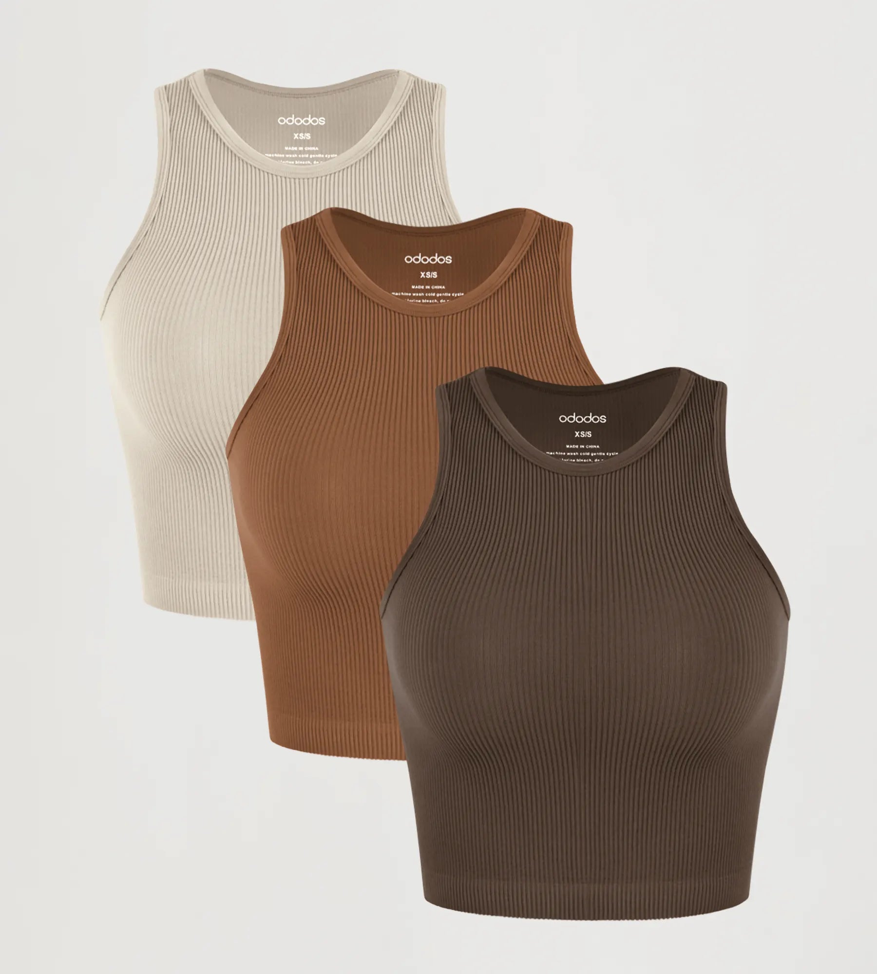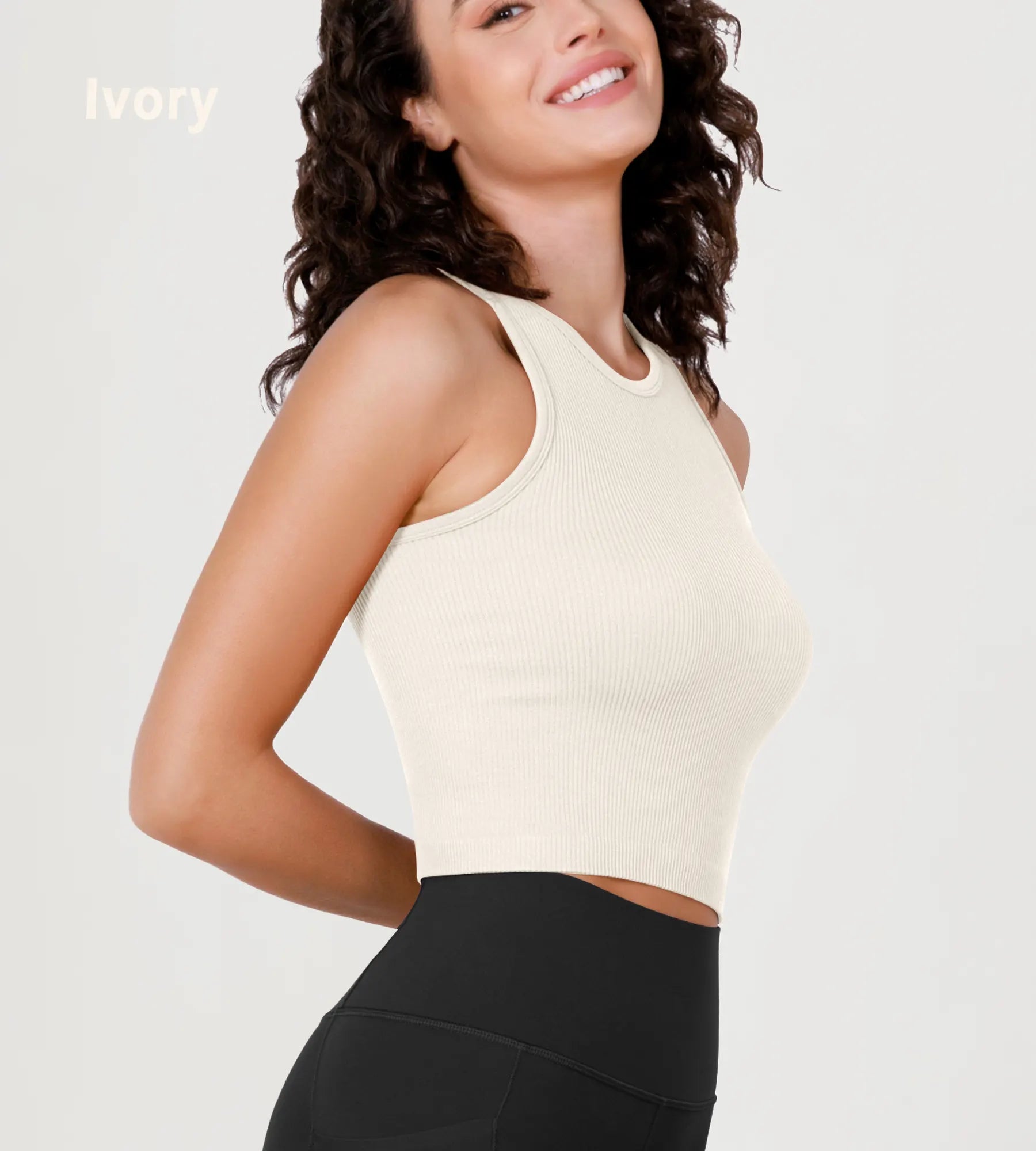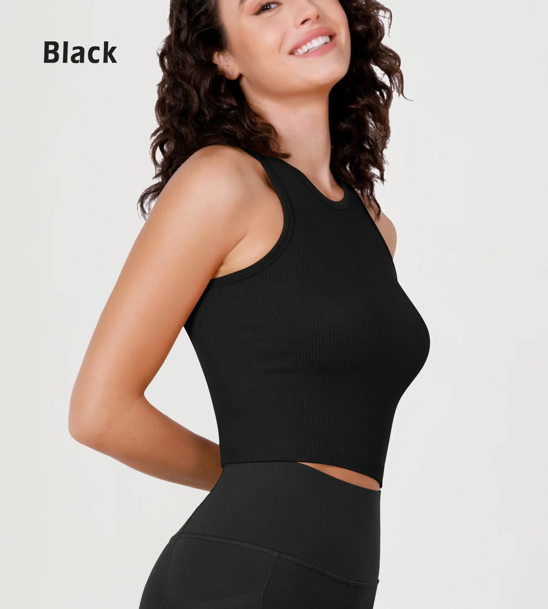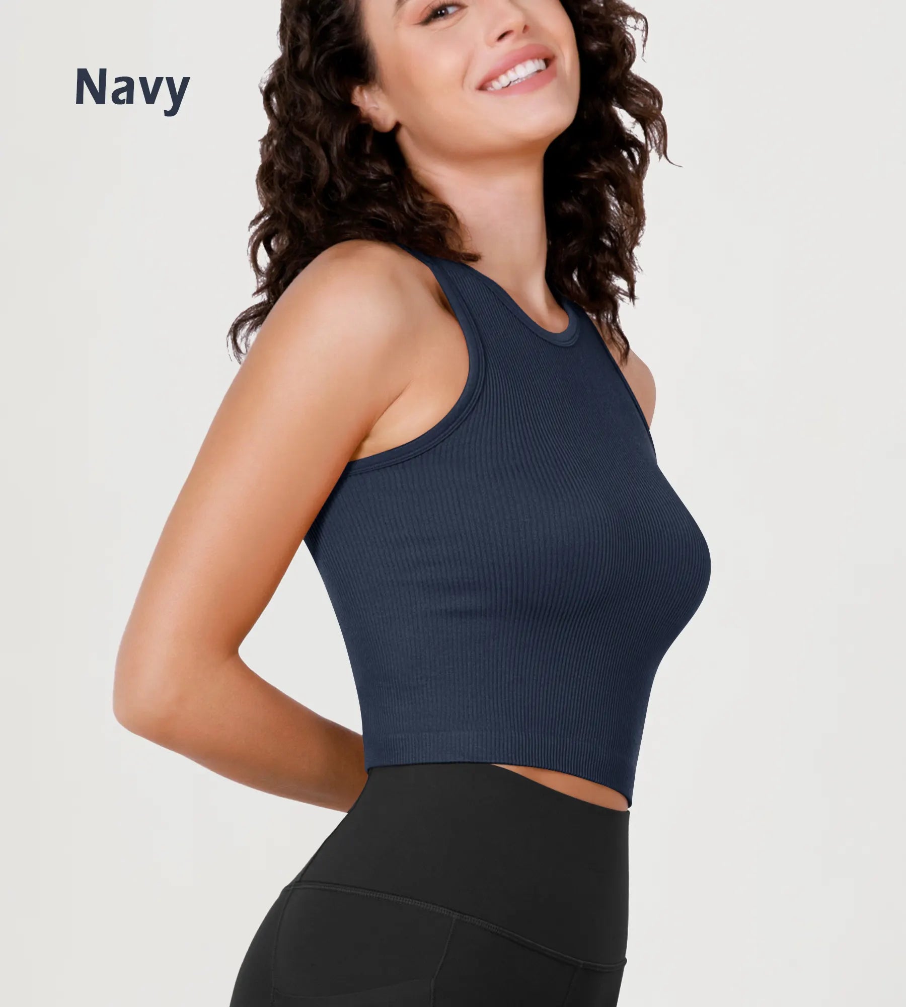 3-Pack Seamless Ribbed High Neck Long Crop Tank Tops