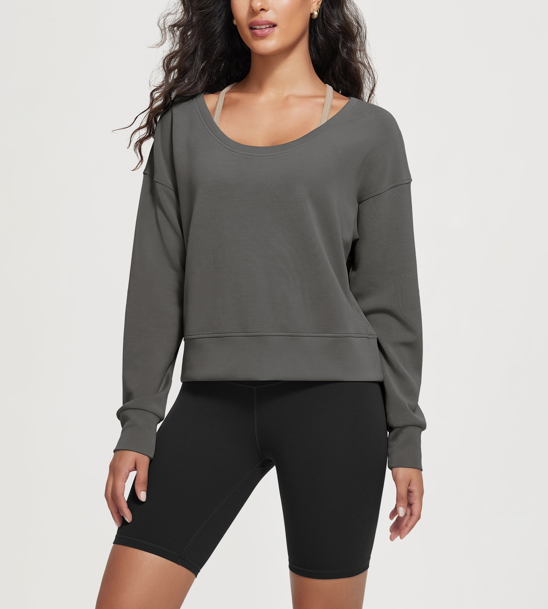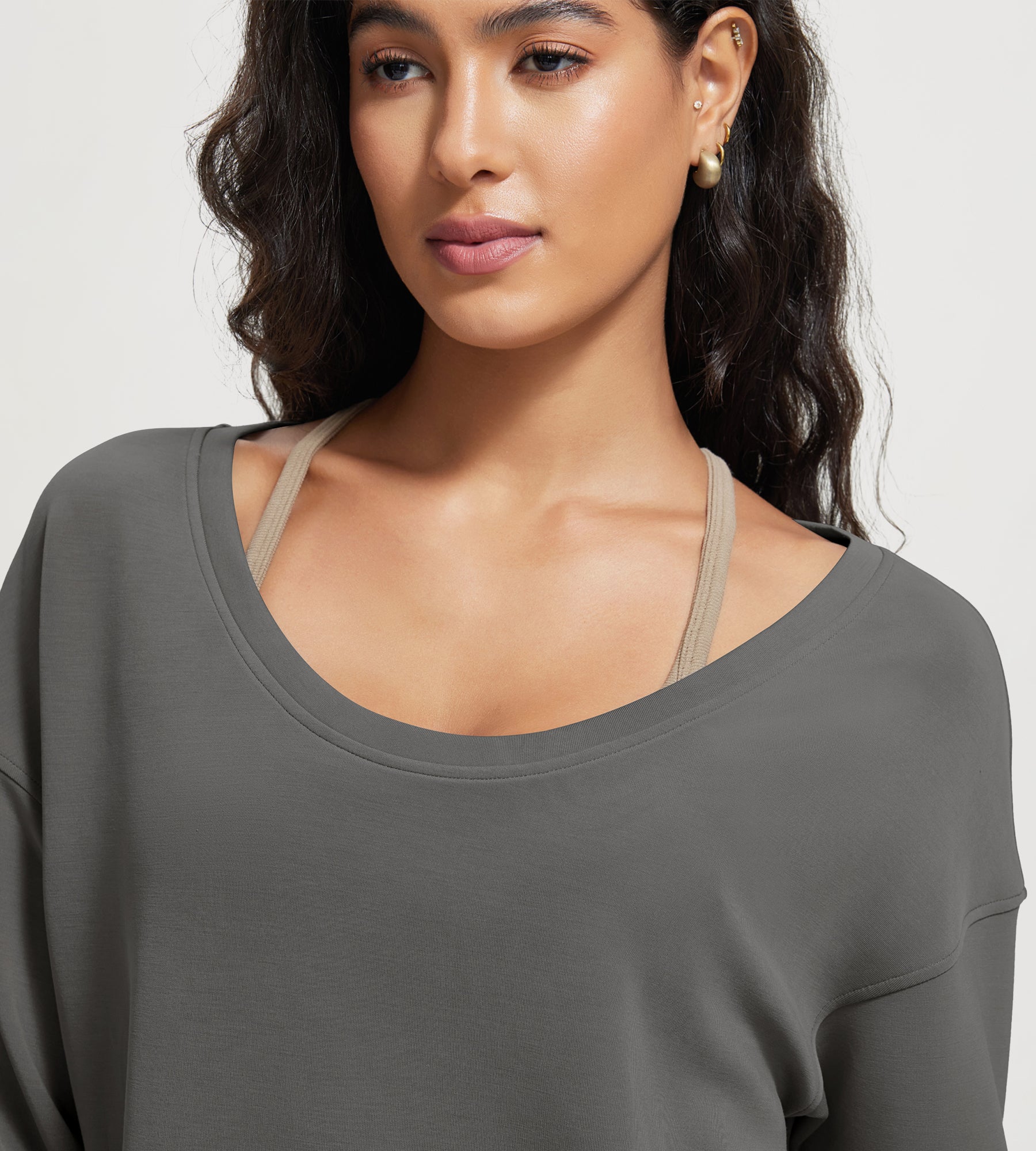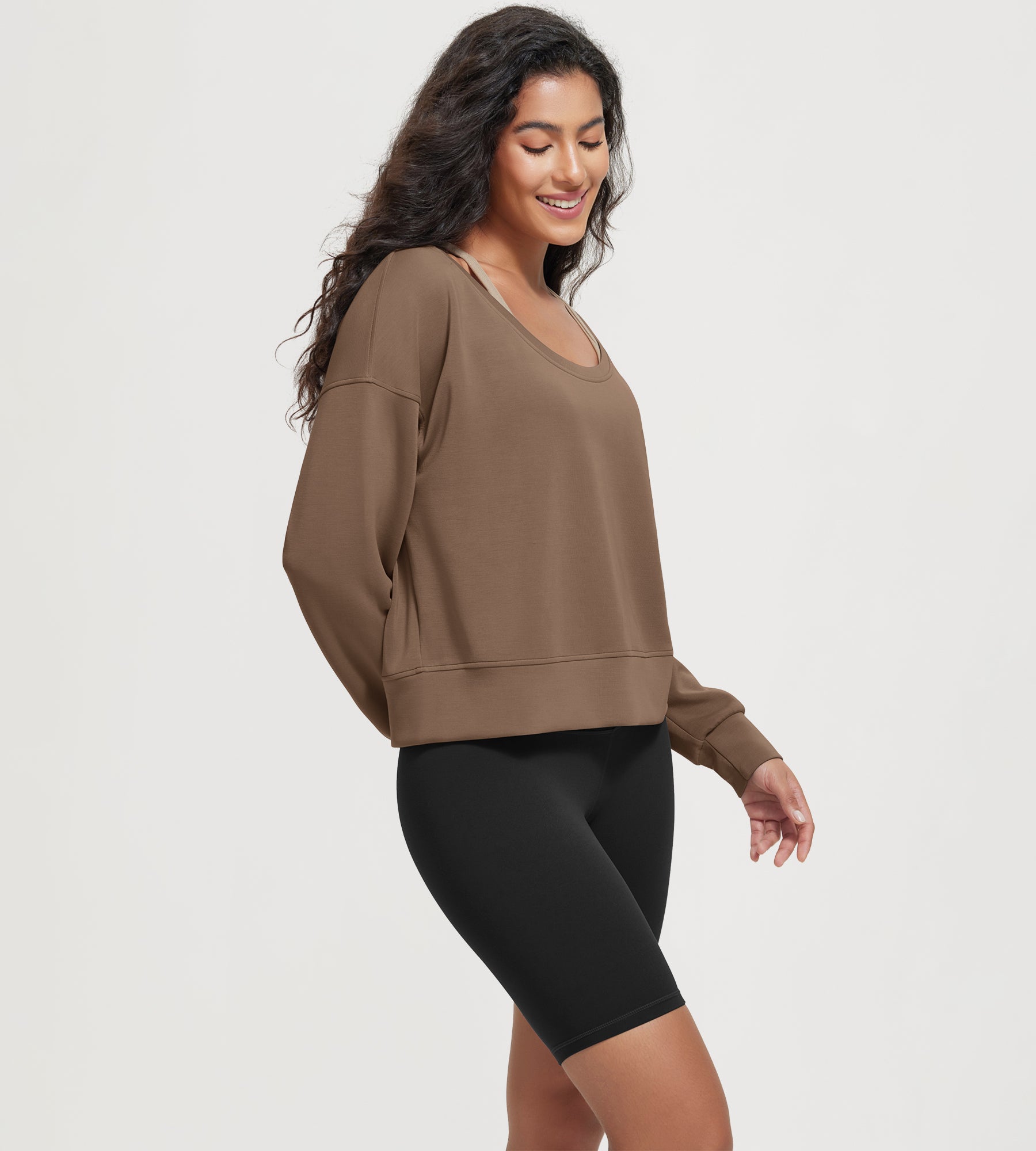 ODODOS Women's Modal Wide Scoop Neck Oversize Sweatshirts