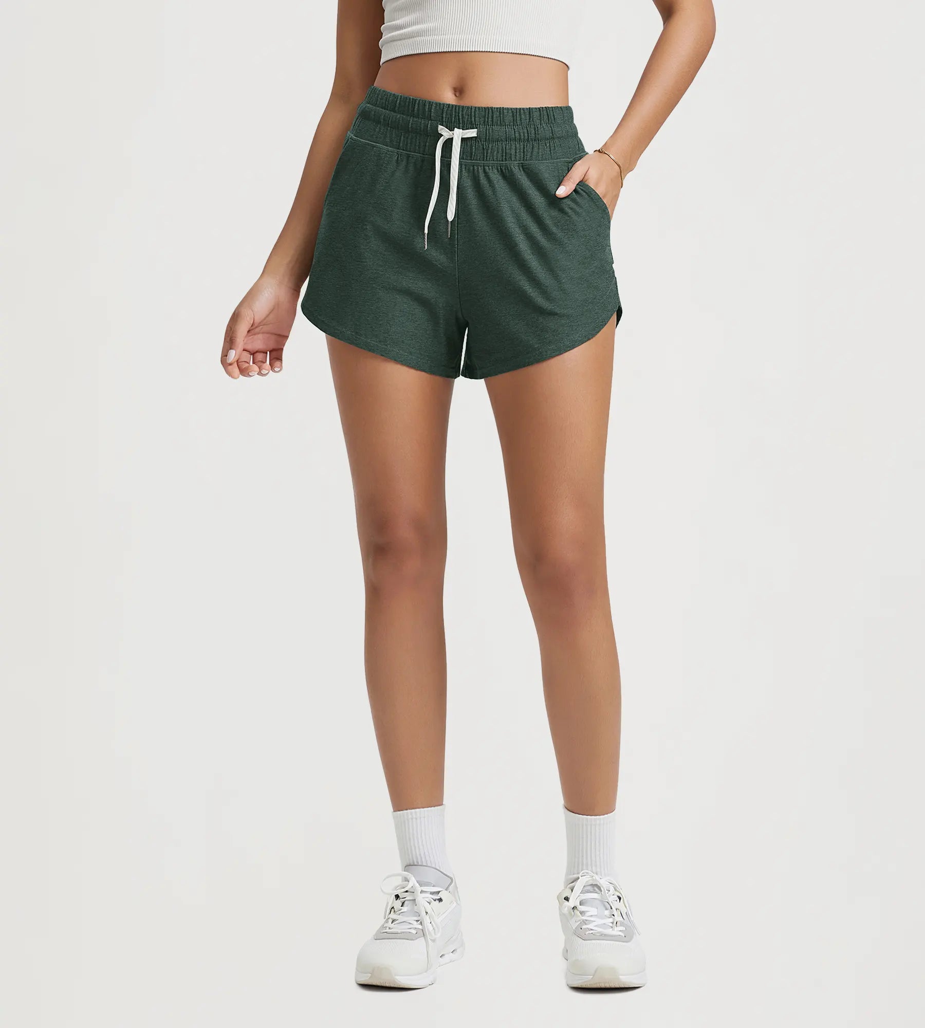 With a 3-inch inseam and curved V-cut hem, these shorts are built for free movement and a flattering fit. Durable odSTRATUM fabric resists shrinking, pilling, and fading—perfect for repeated wear and washes.